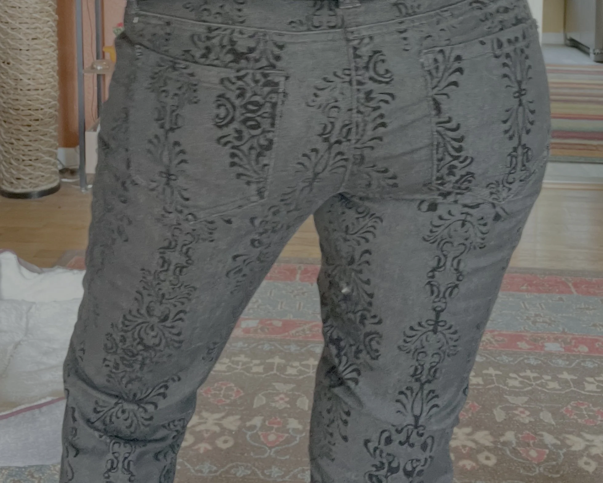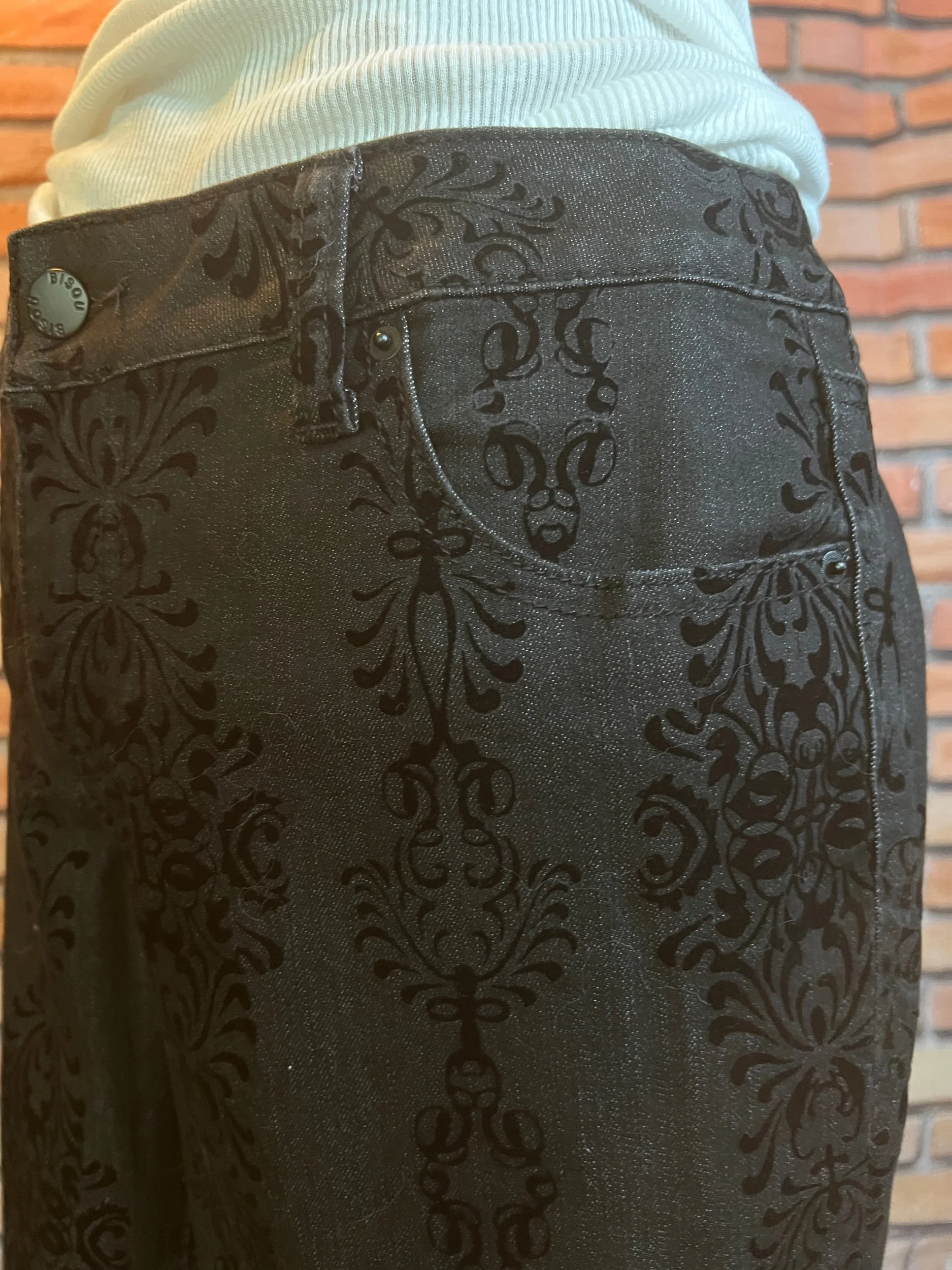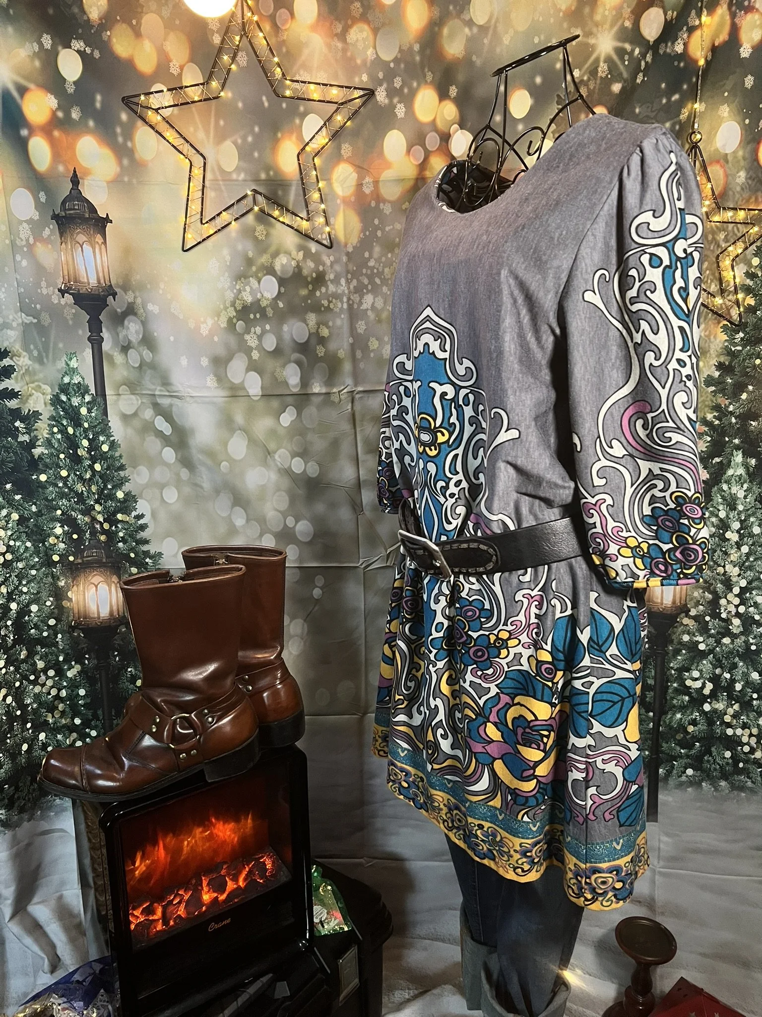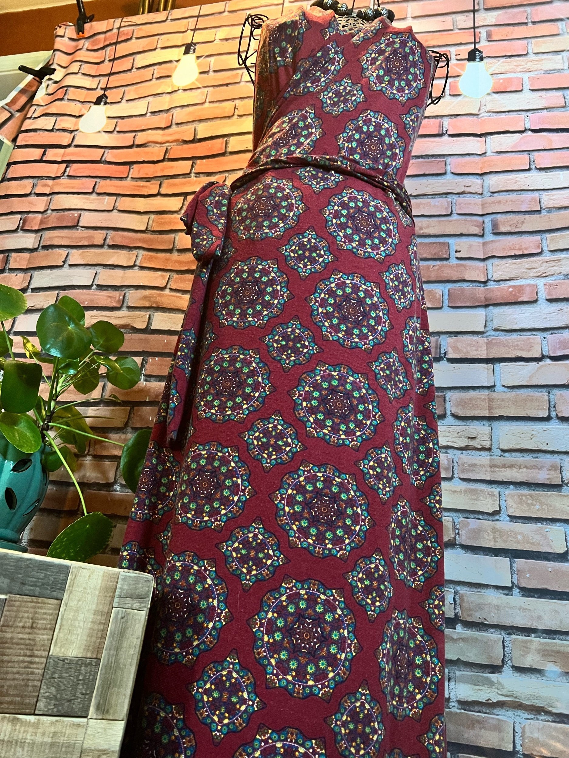 Style Notes: Wild intricate print, luxe feel, takes belts extremely well