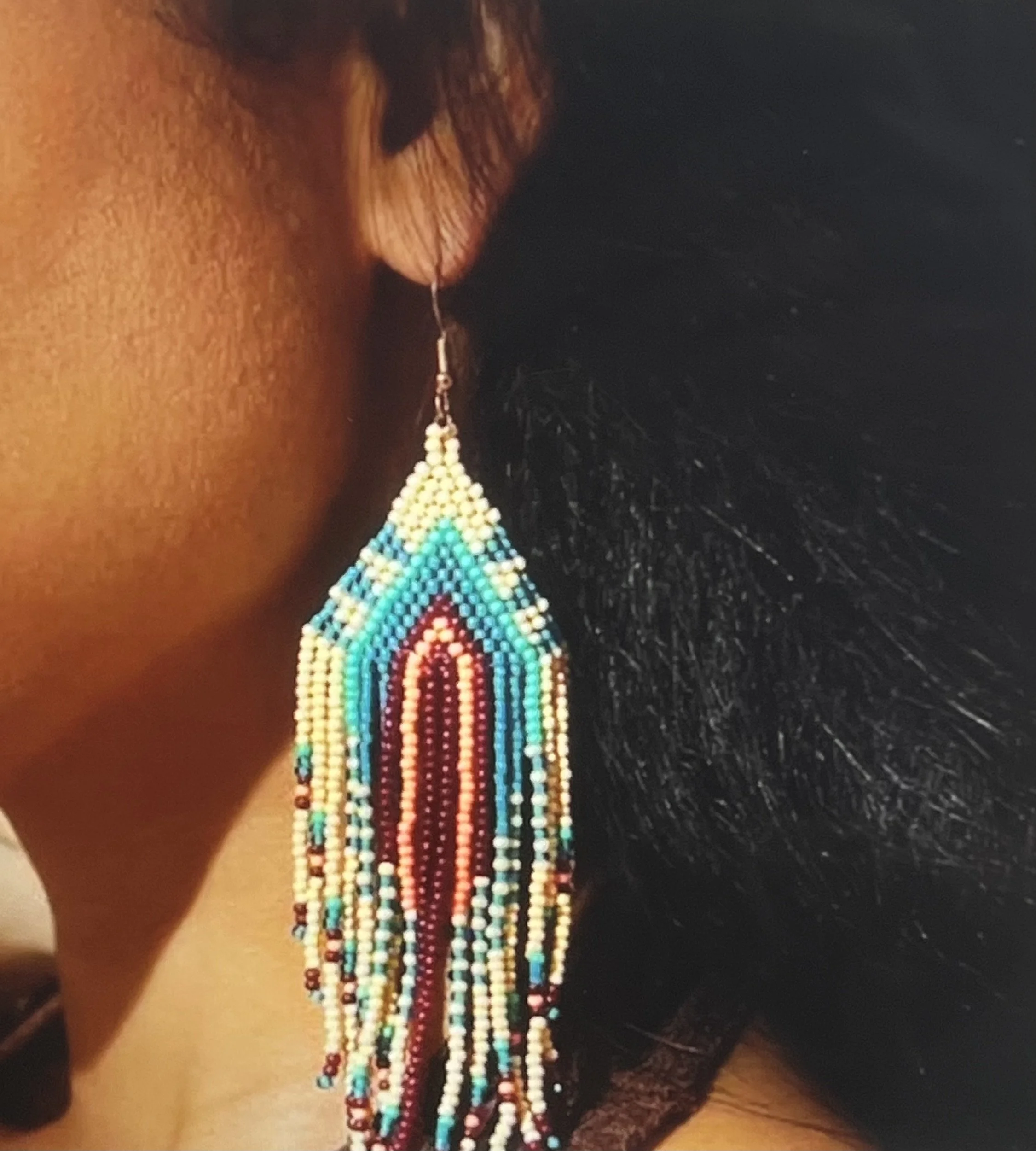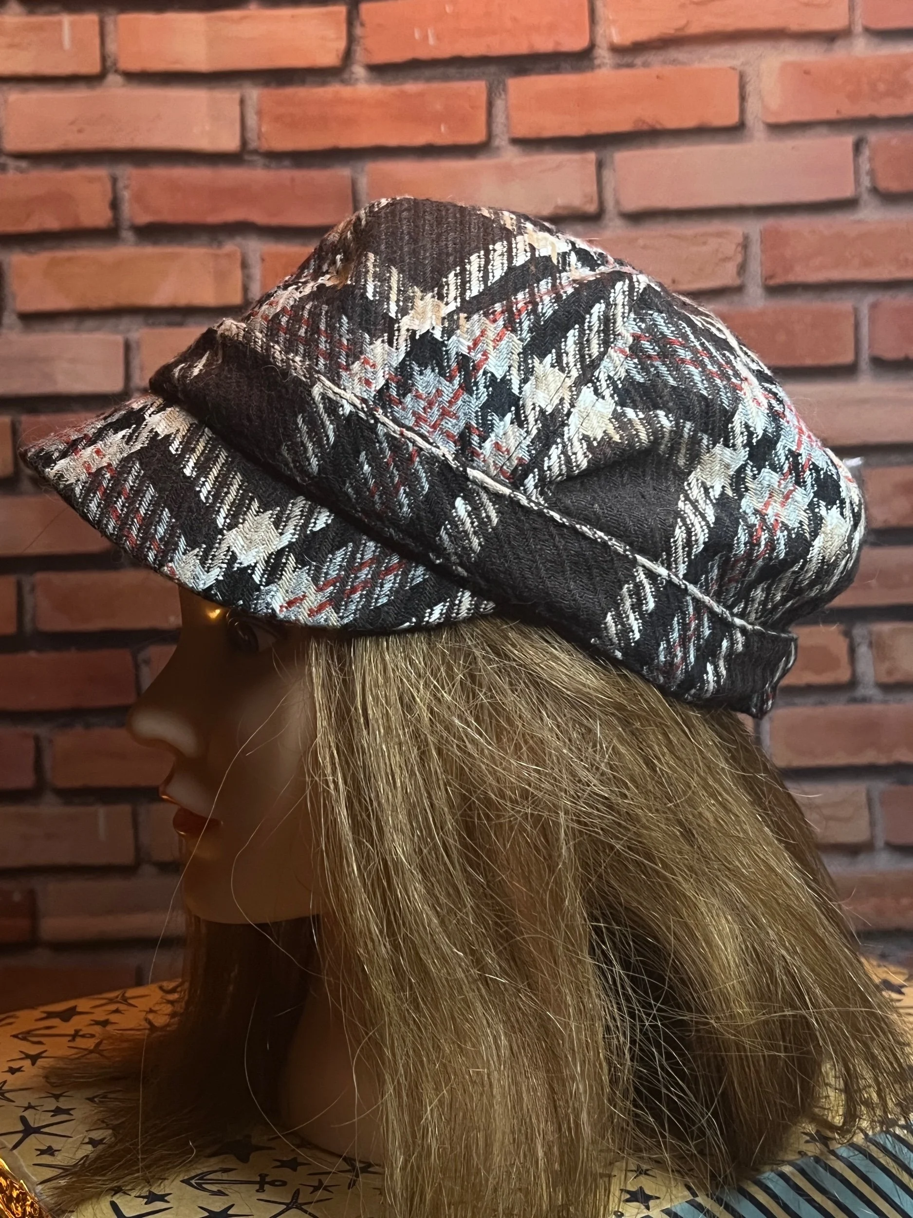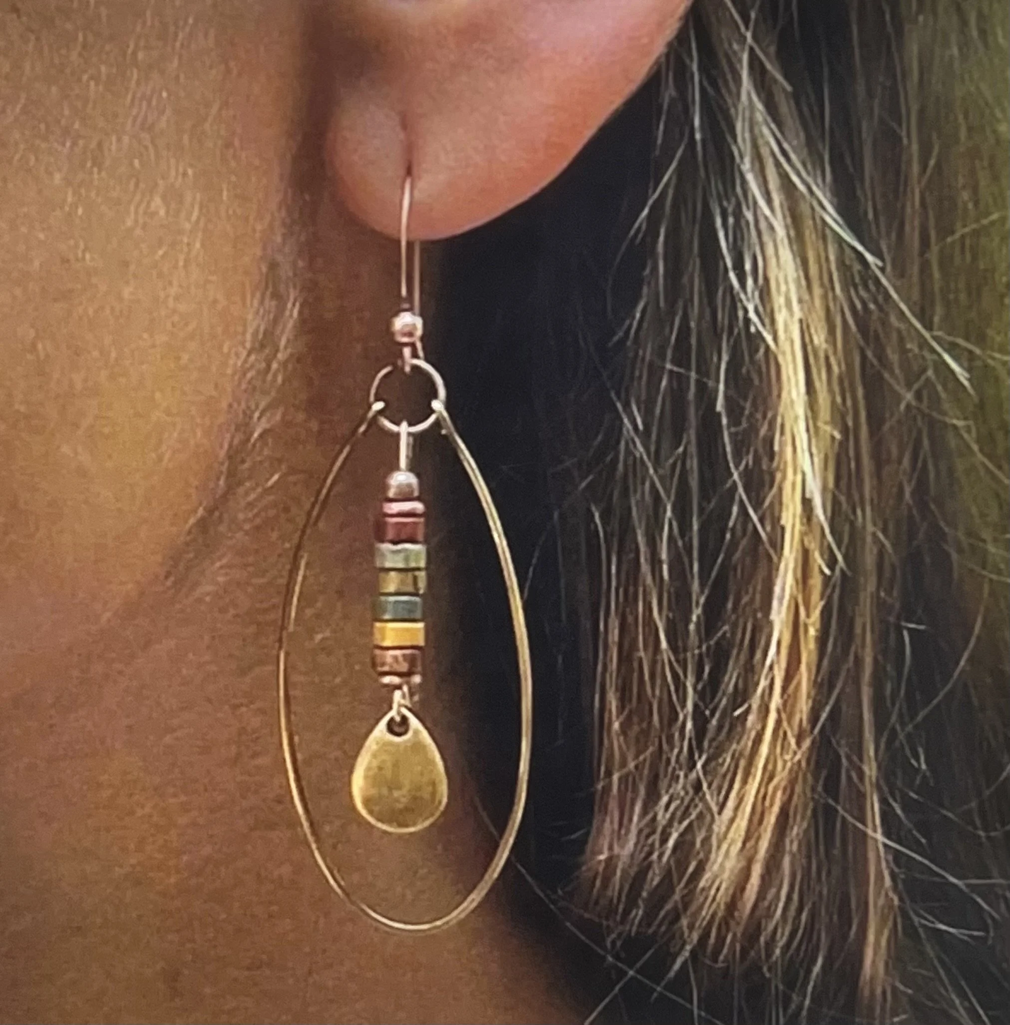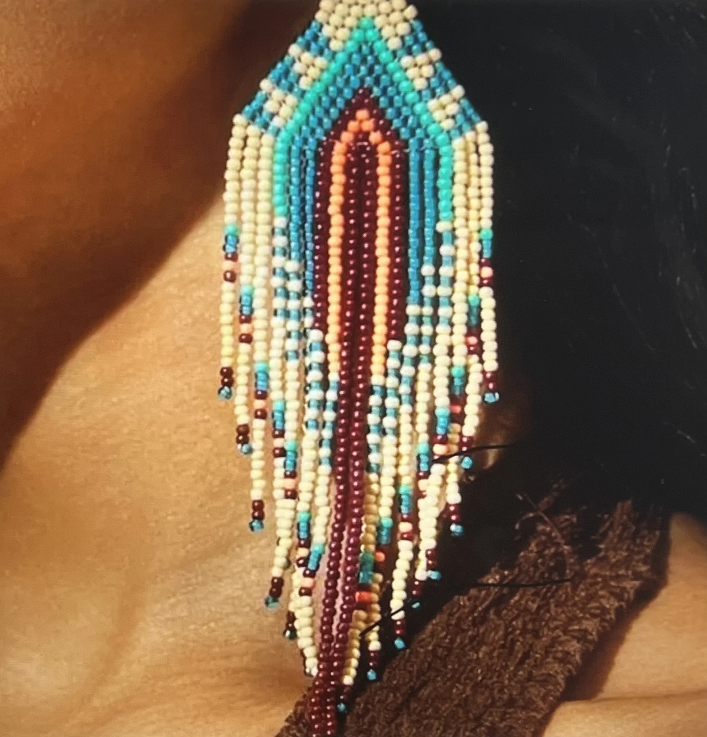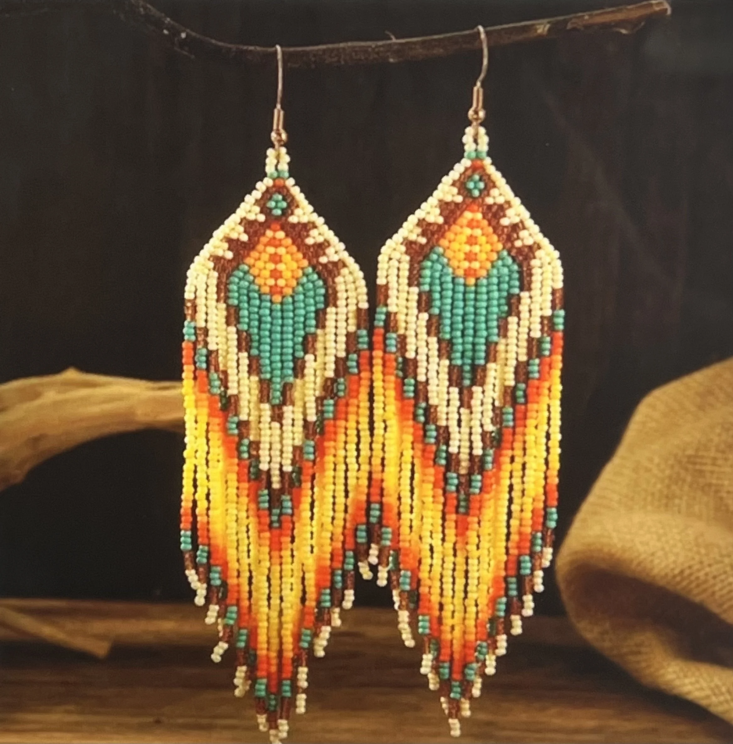 Colorway: Earth-tone multicolor (camel, espresso, forest, aubergine, teal, rust)