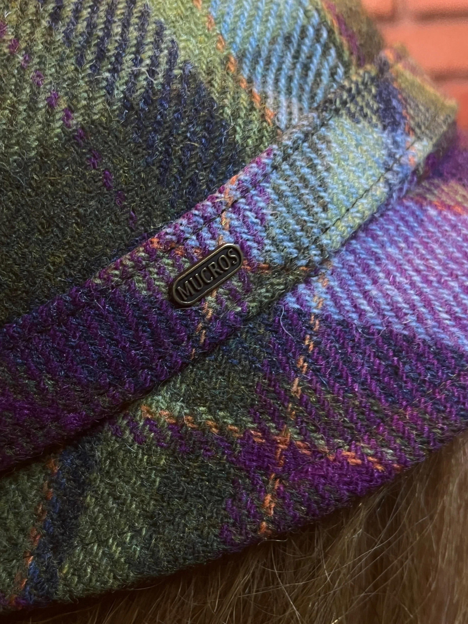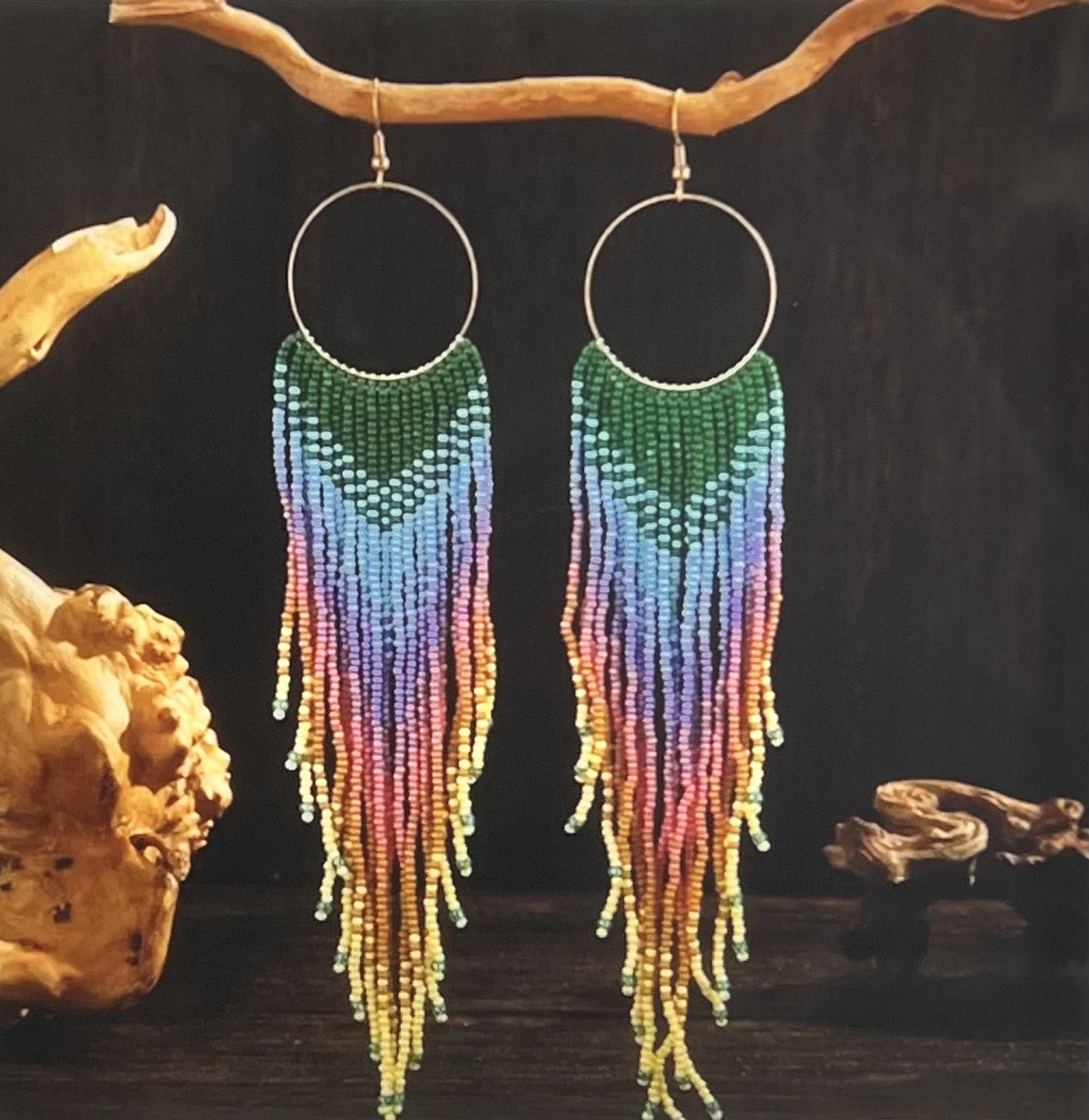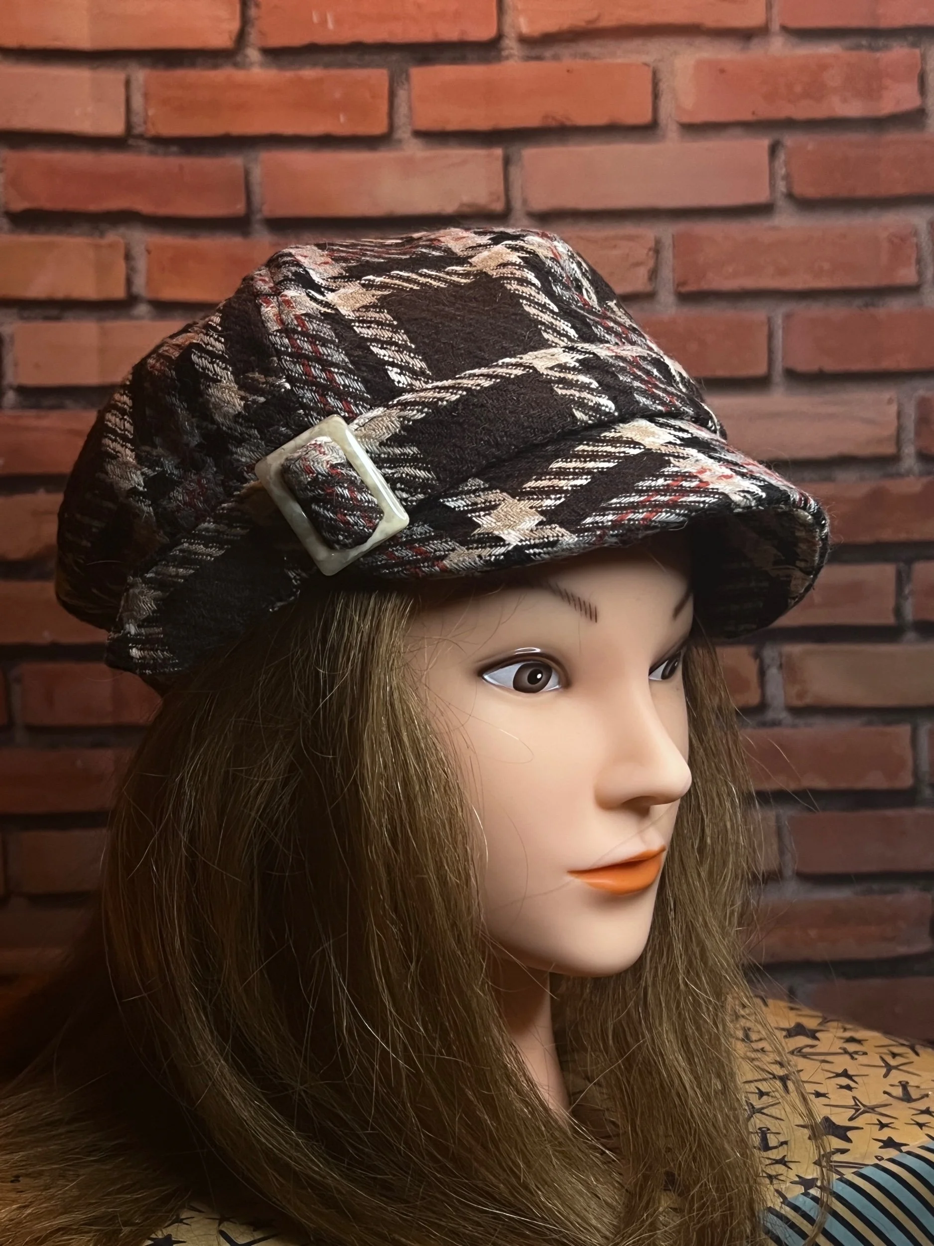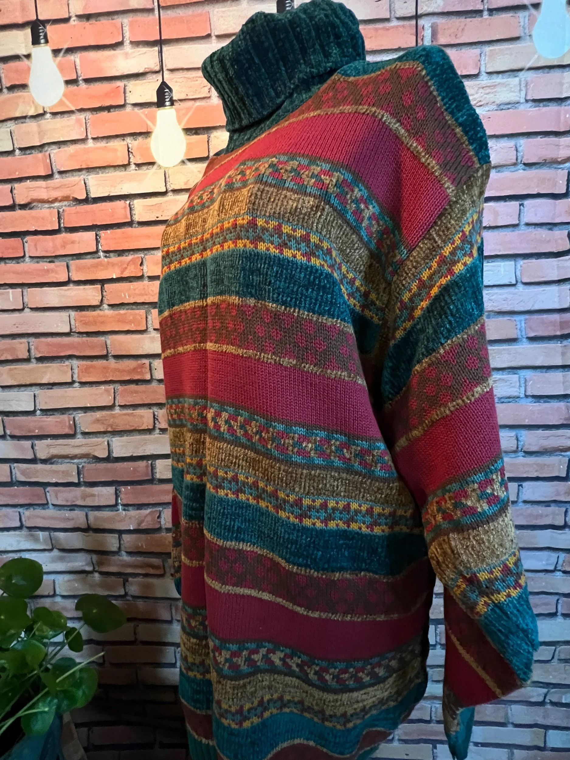 Colorway: Earth-tone multicolor (camel, espresso, forest, aubergine, teal, rust)