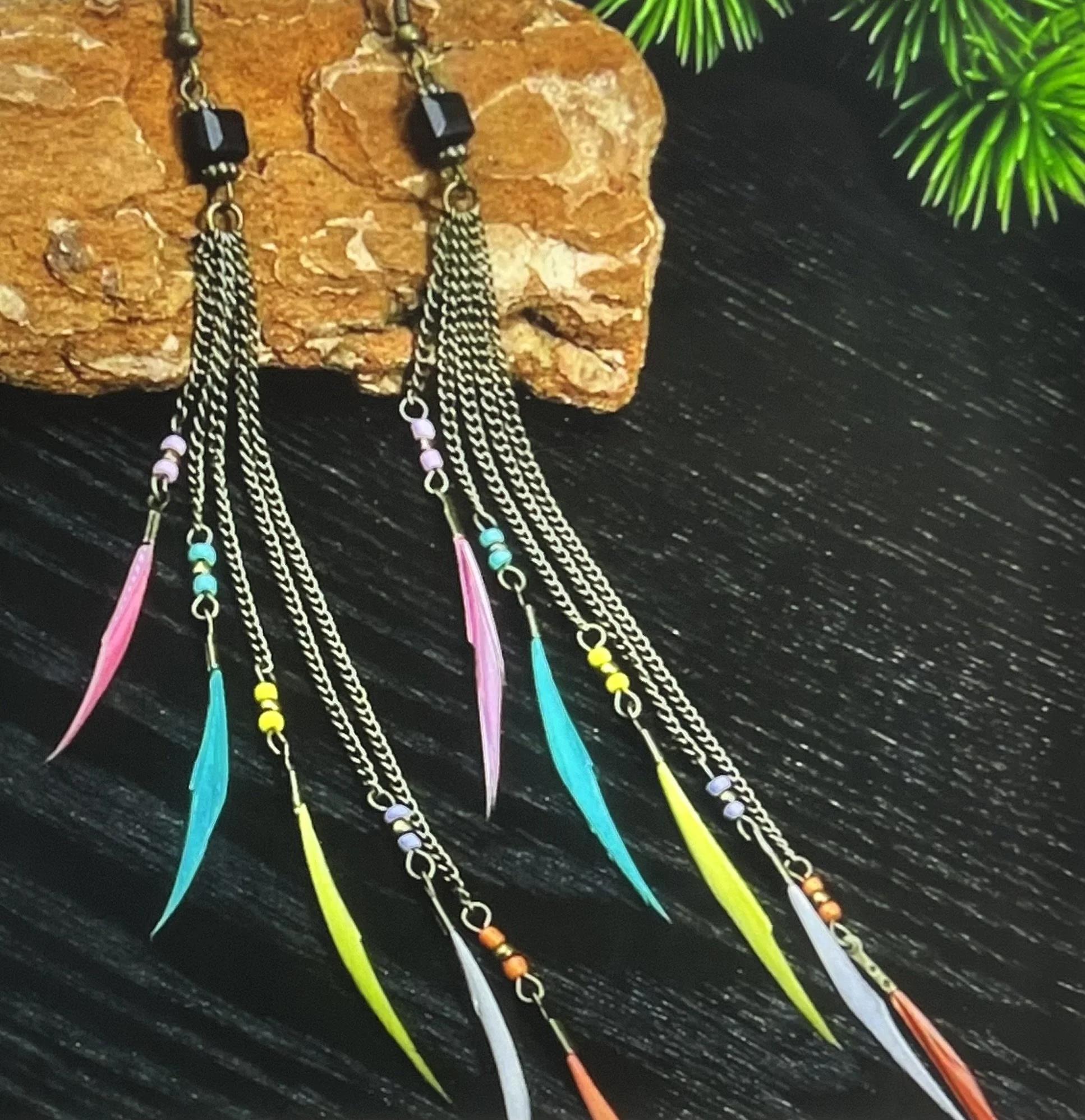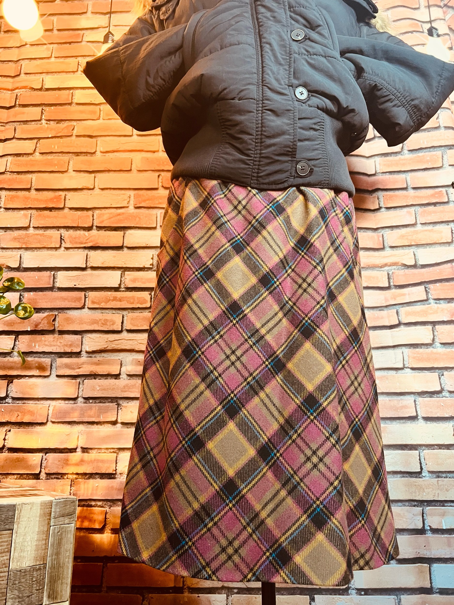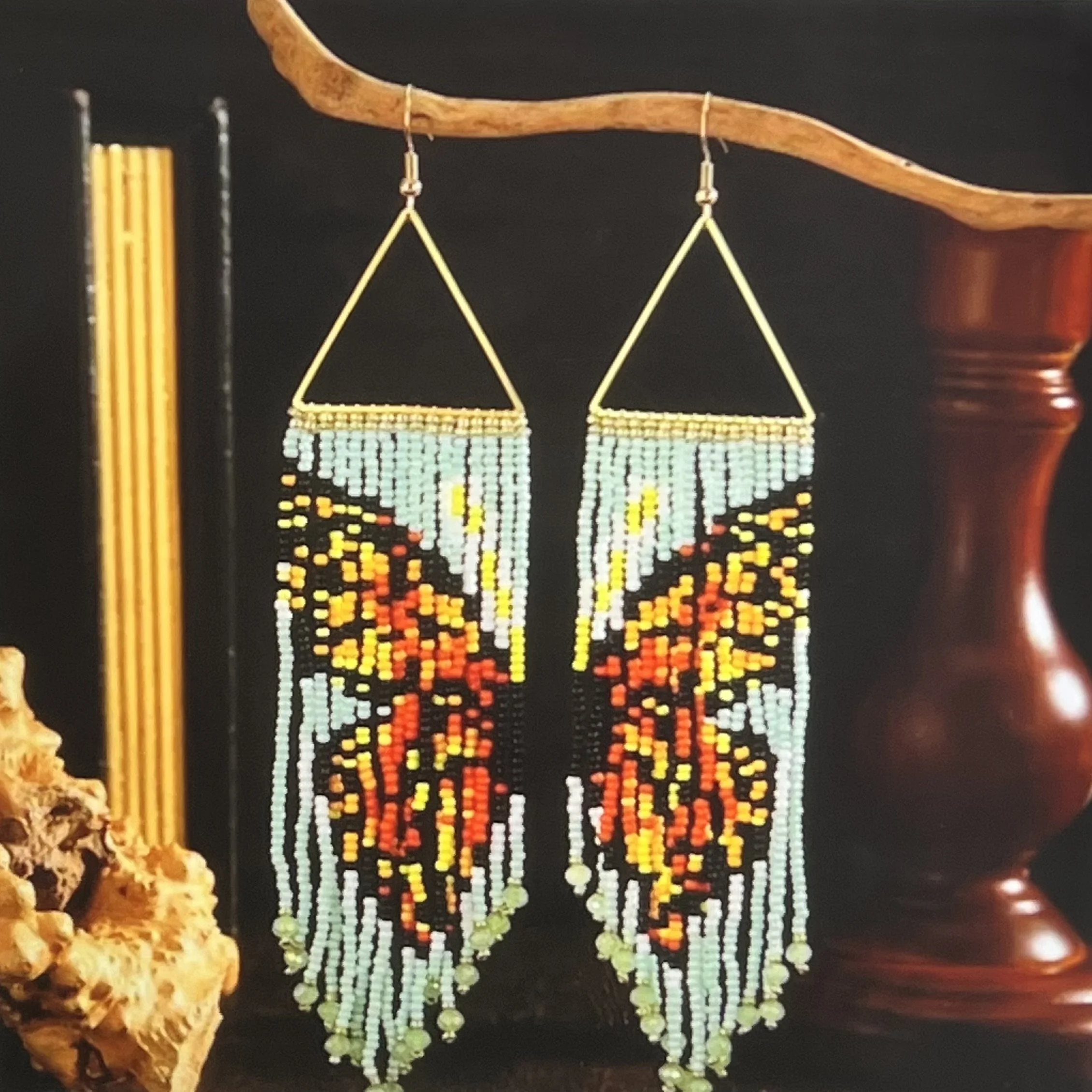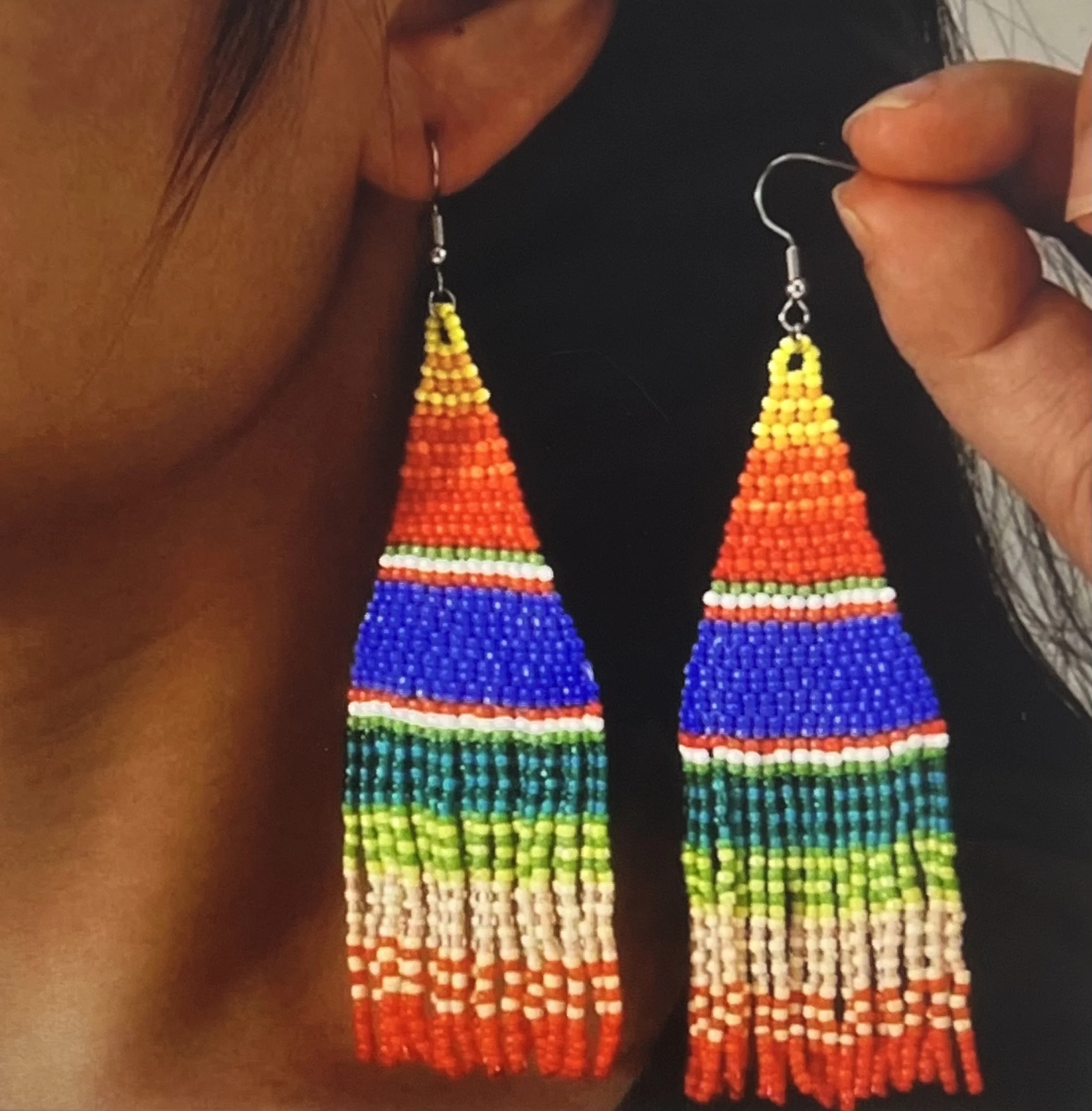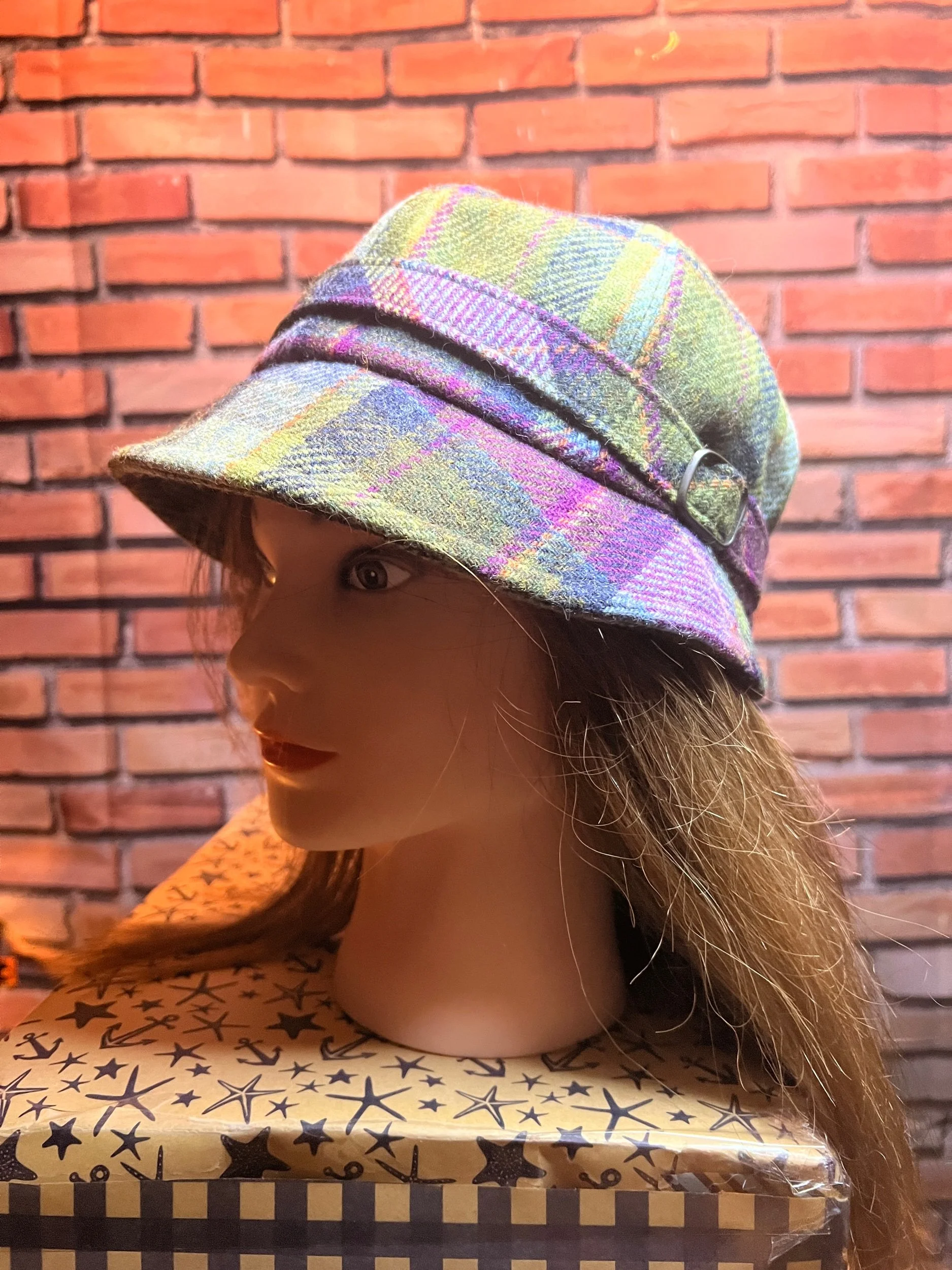 Colorway: Earth-tone multicolor (camel, espresso, forest, aubergine, teal, rust)