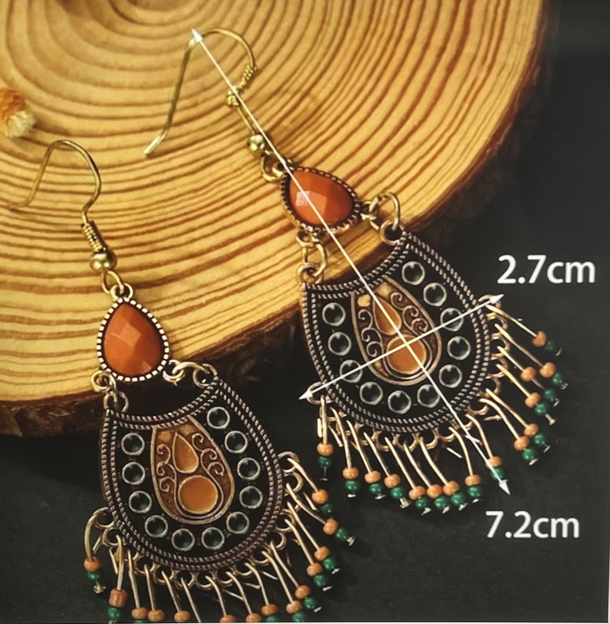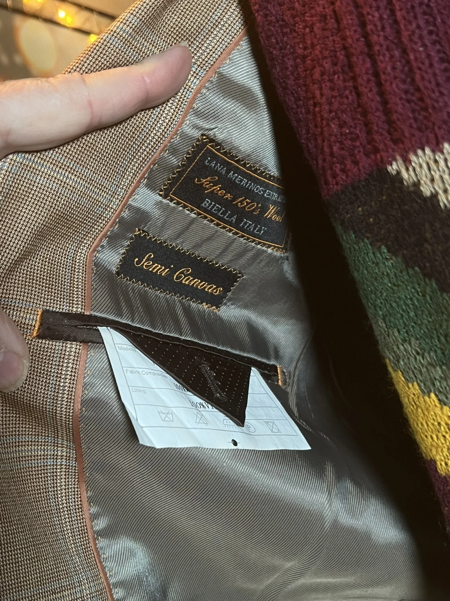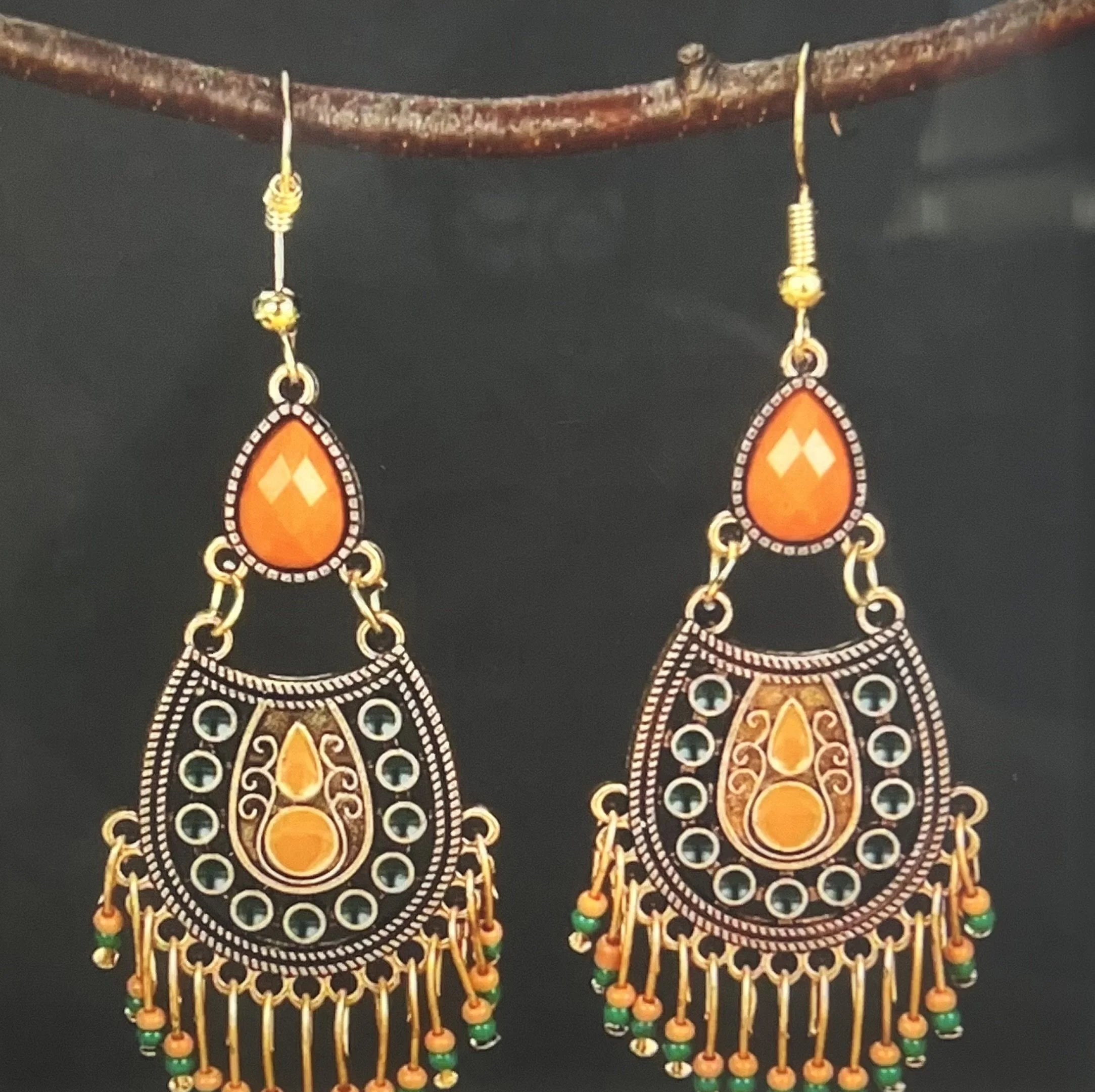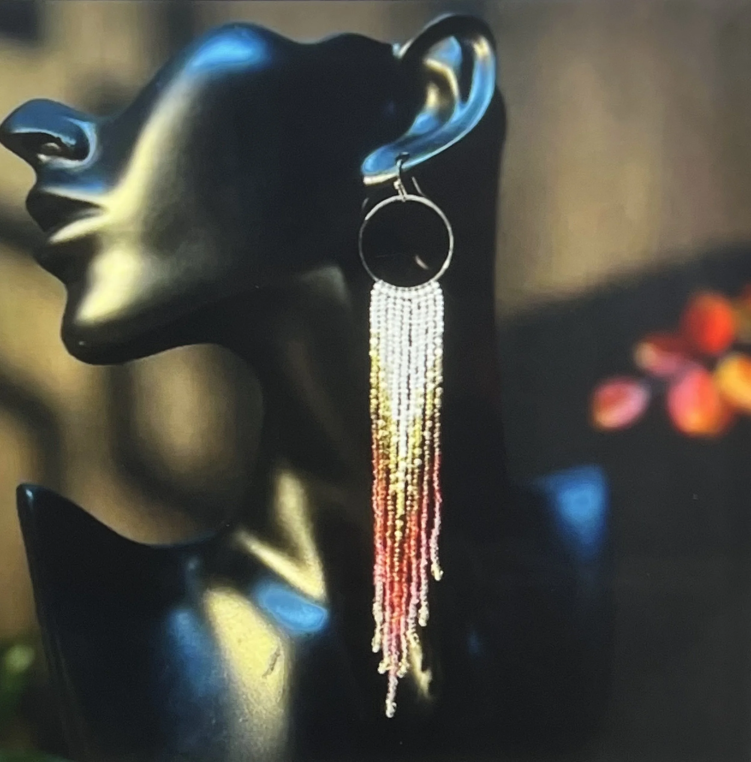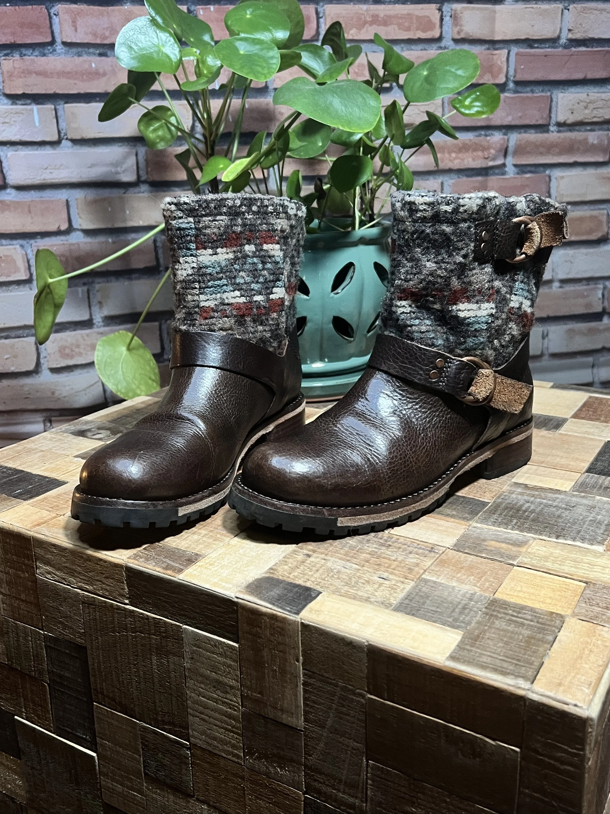 Colorway: Earth-tone multicolor (camel, espresso, forest, aubergine, teal, rust)
