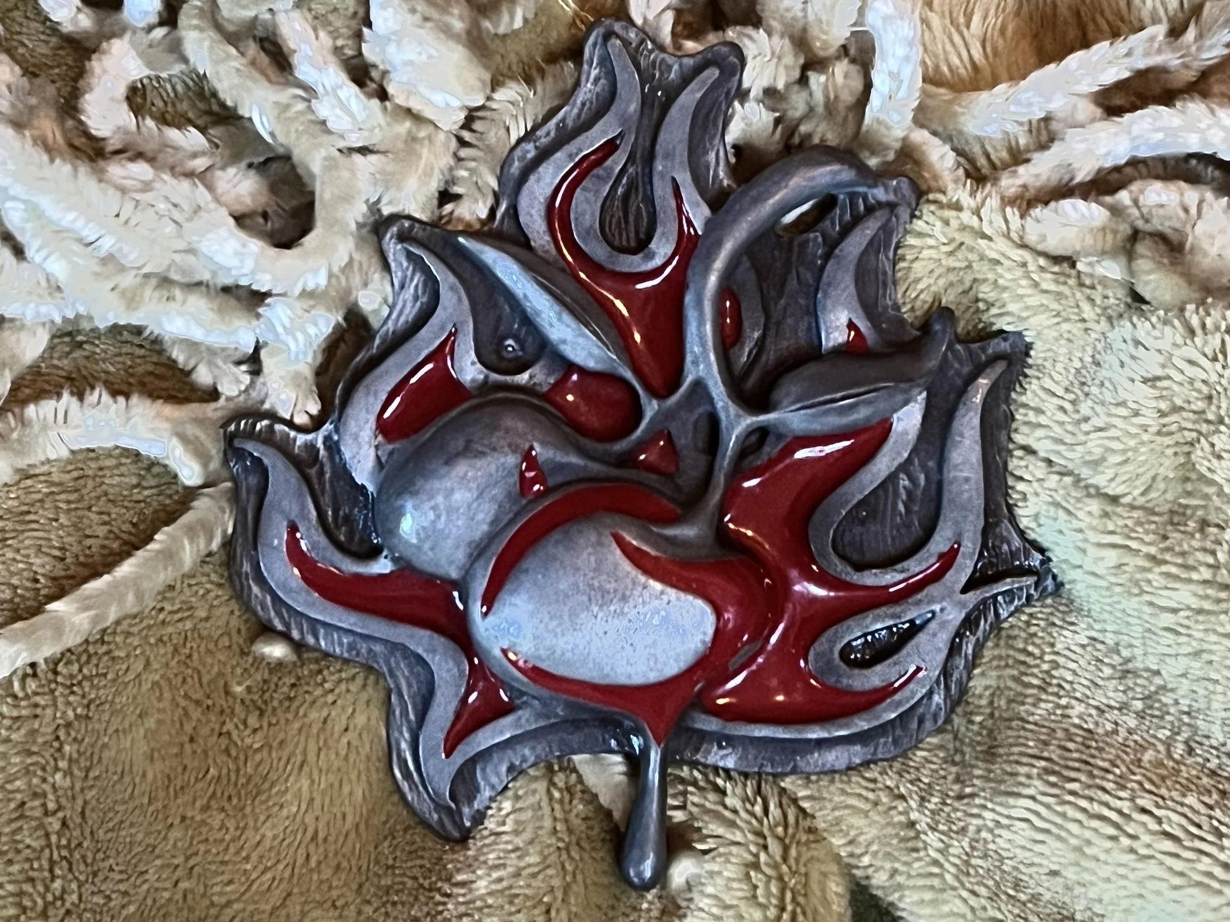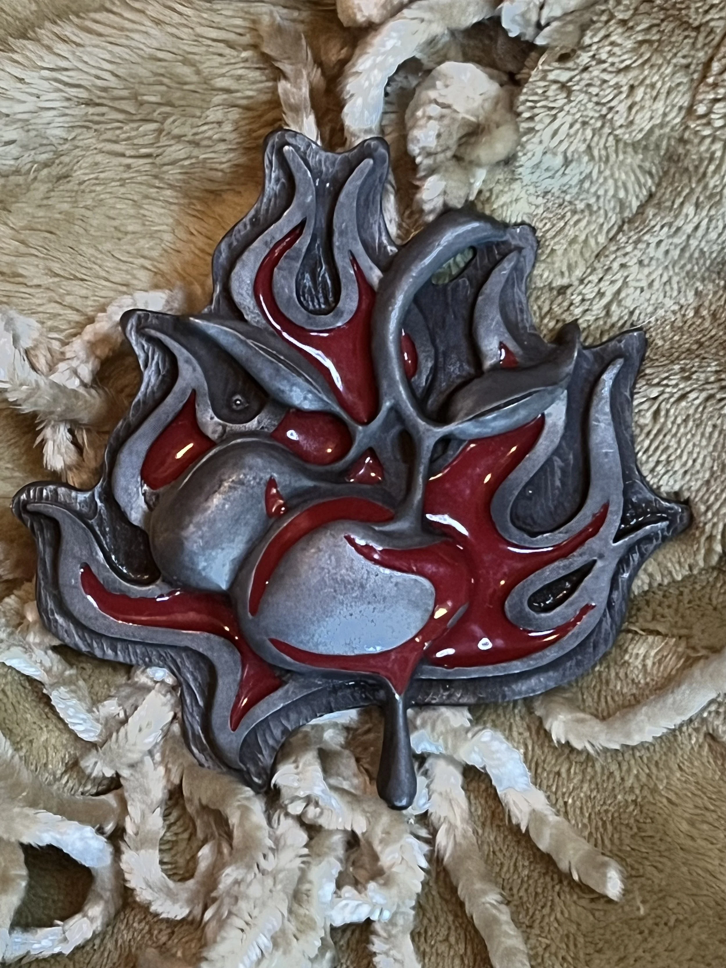 Bold and striking gold design with a unique angel in flames motif.