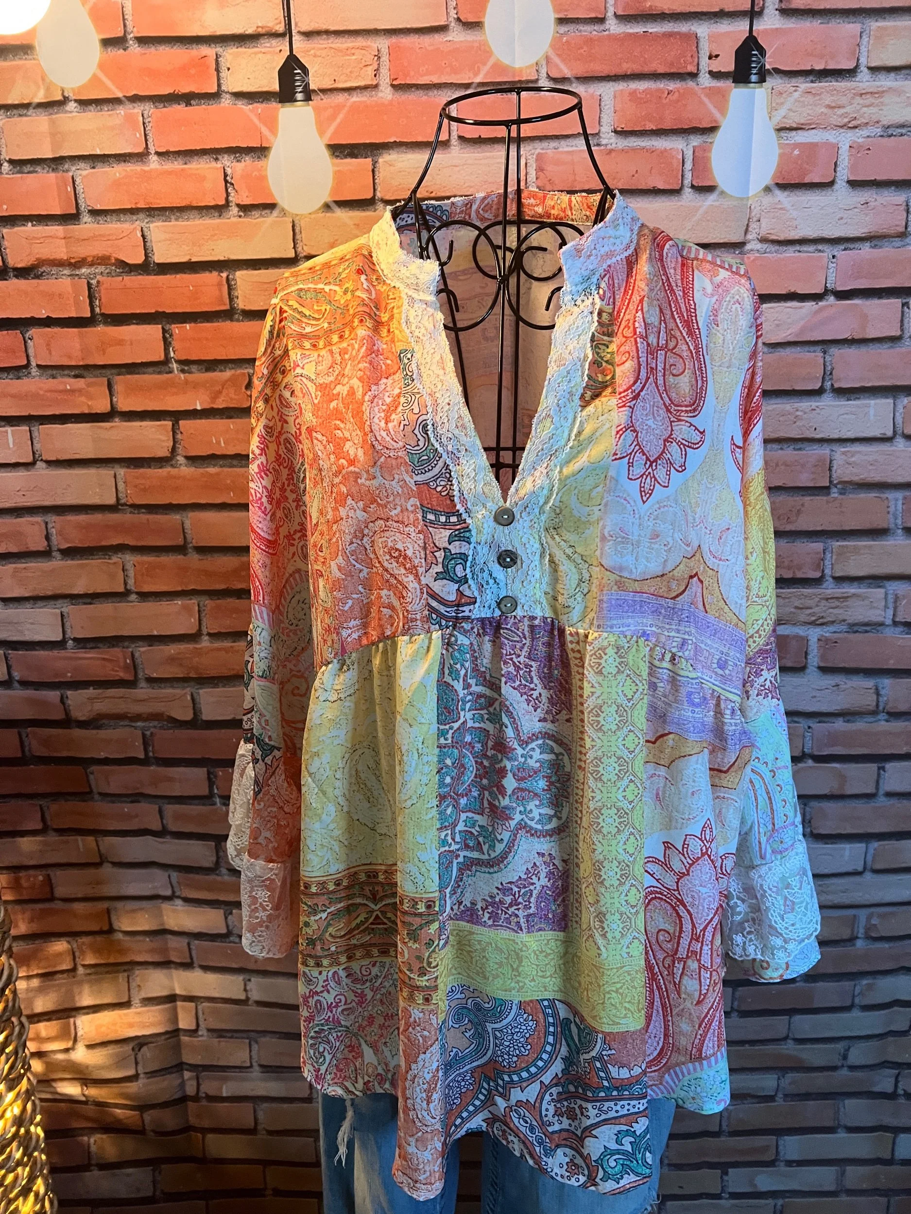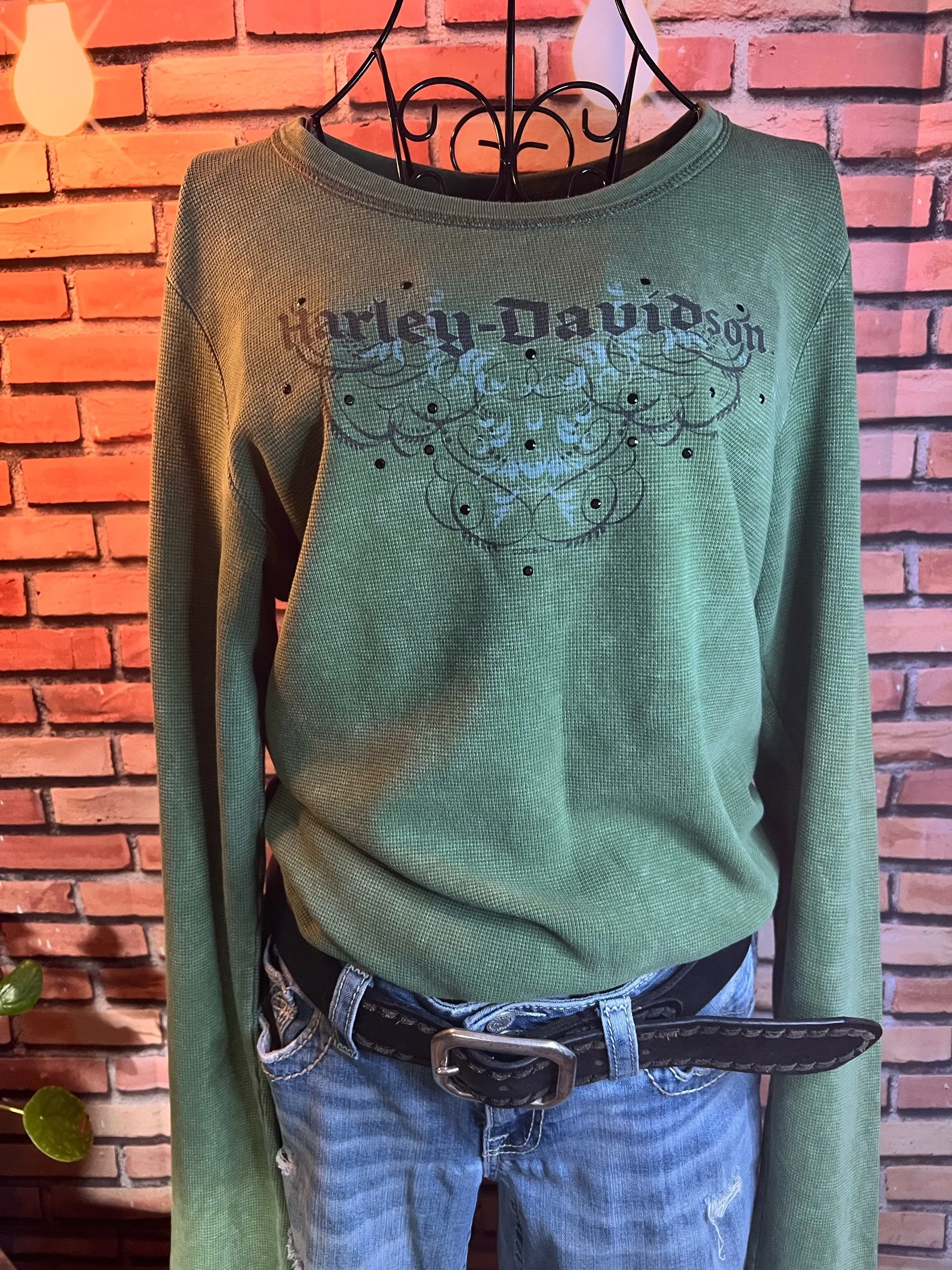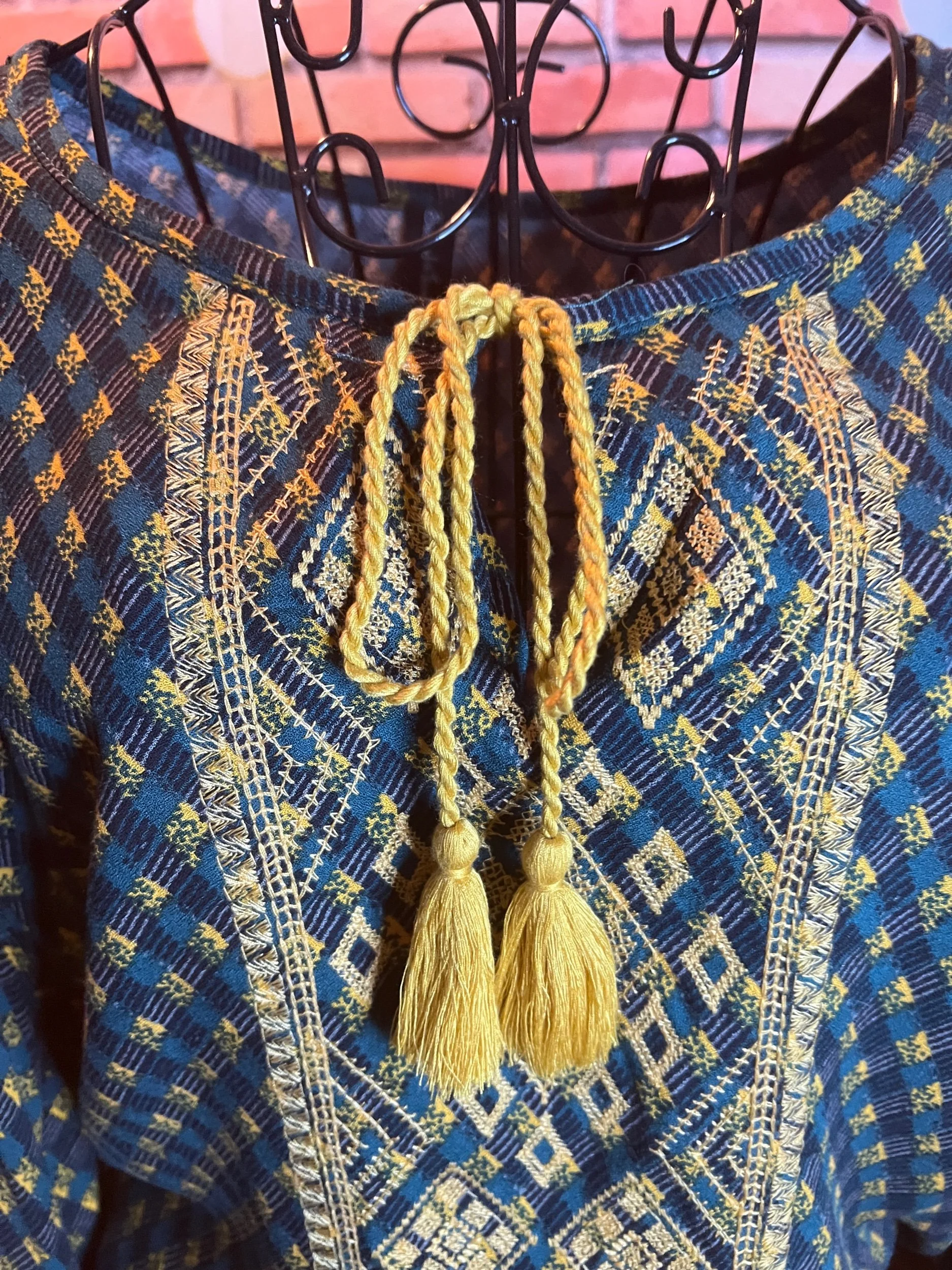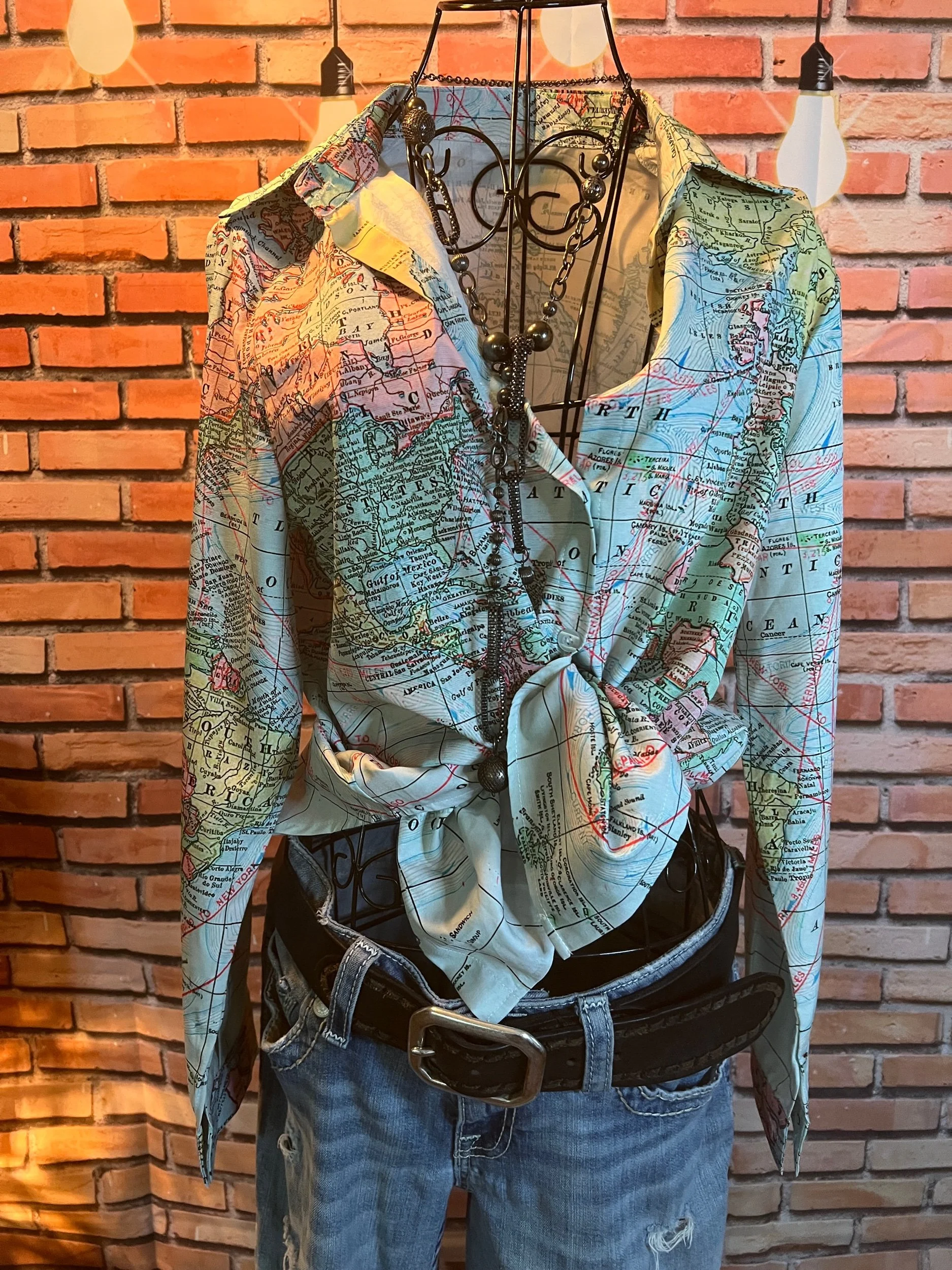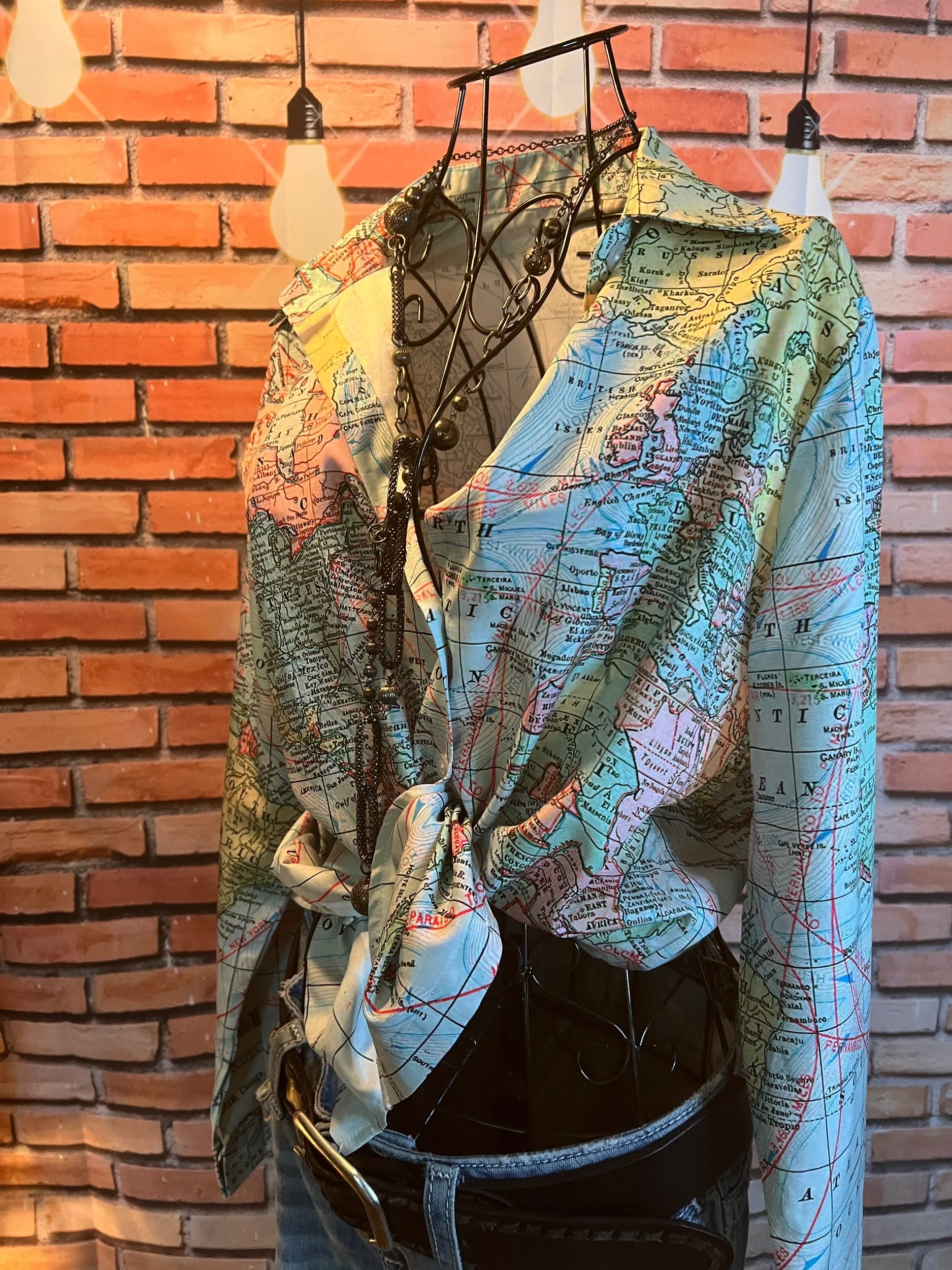 Don’t let the polyester fool you—this one’s a soft-daydream kind of top that happens to survive laundry day like a champ. Romantic floral print, breezy fit, and that quiet confidence that says, “Yeah, I thrift better than you.”