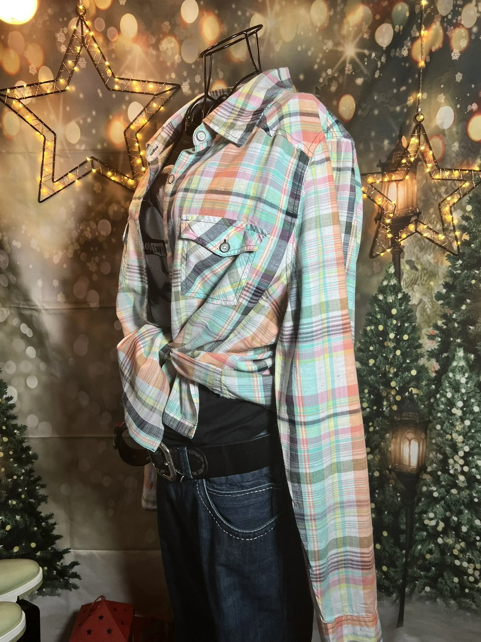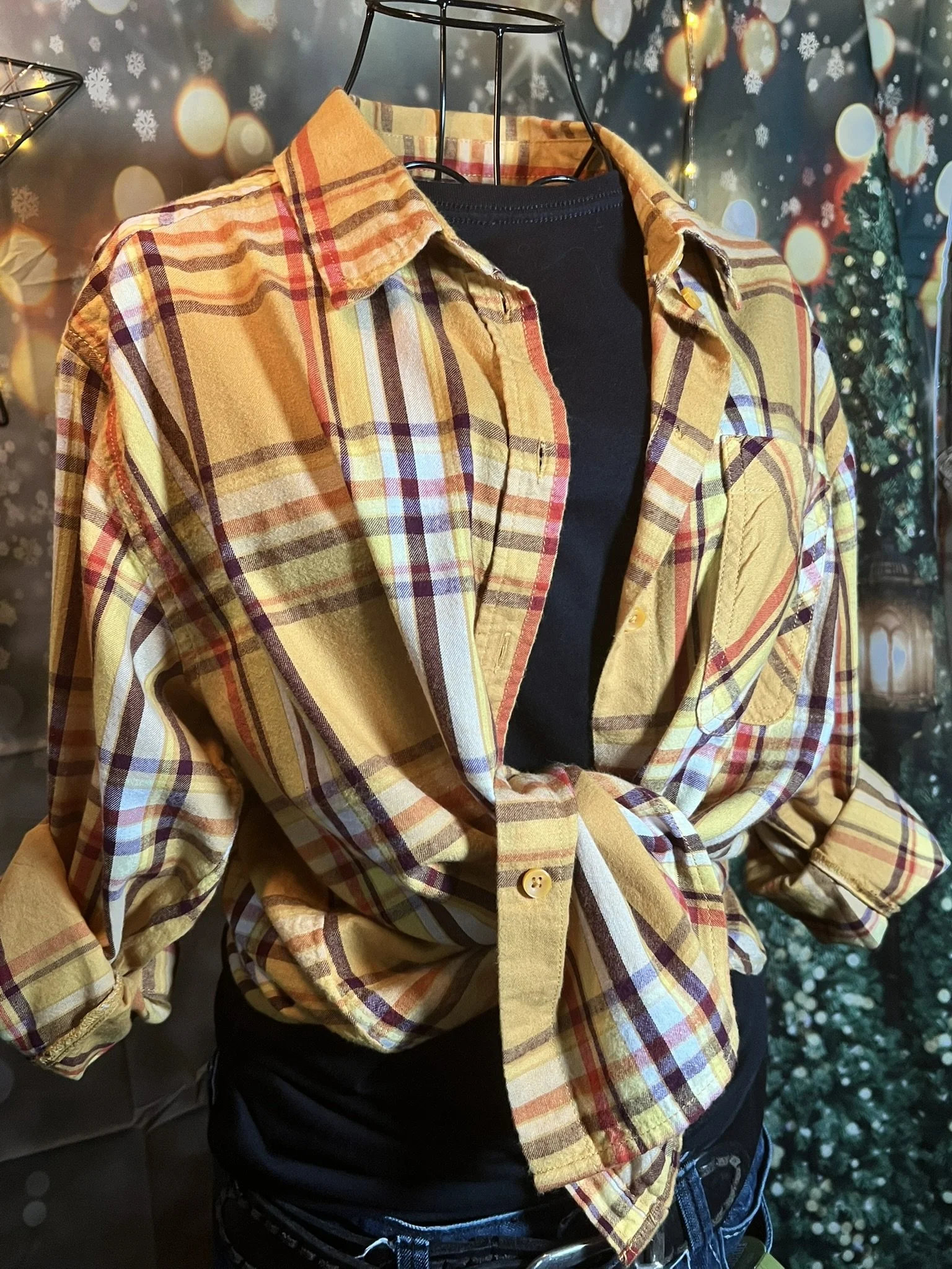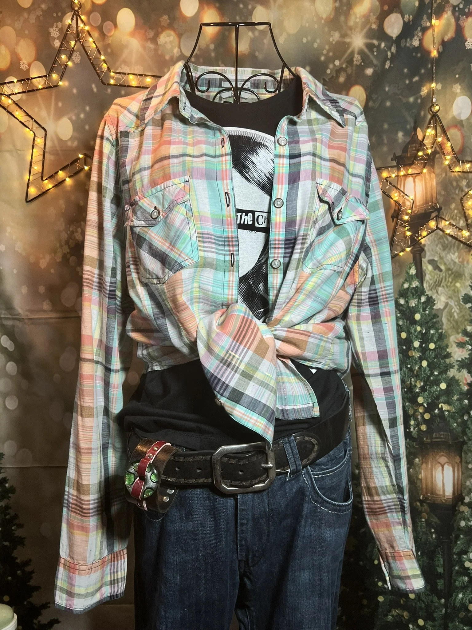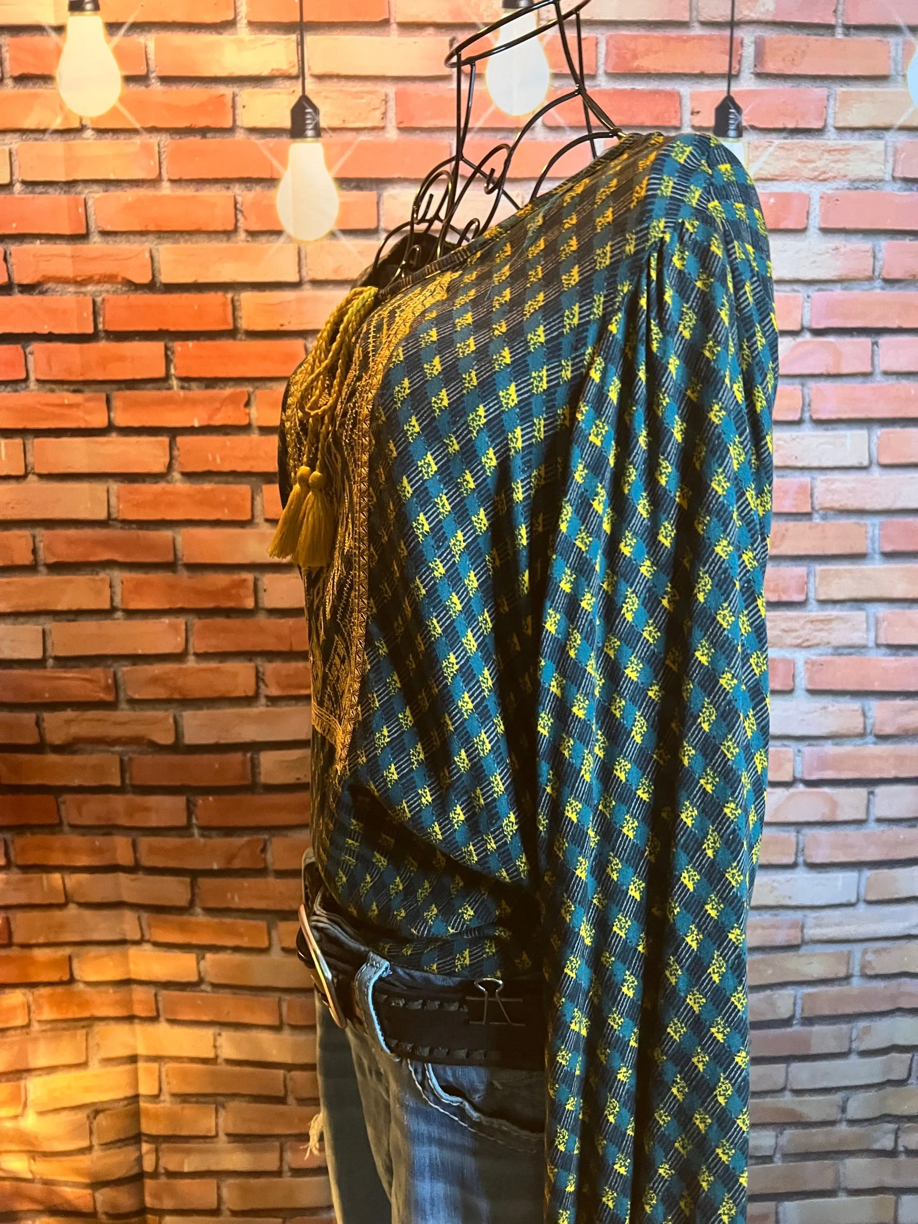 Don’t let the polyester fool you—this one’s a soft-daydream kind of top that happens to survive laundry day like a champ. Romantic floral print, breezy fit, and that quiet confidence that says, “Yeah, I thrift better than you.”