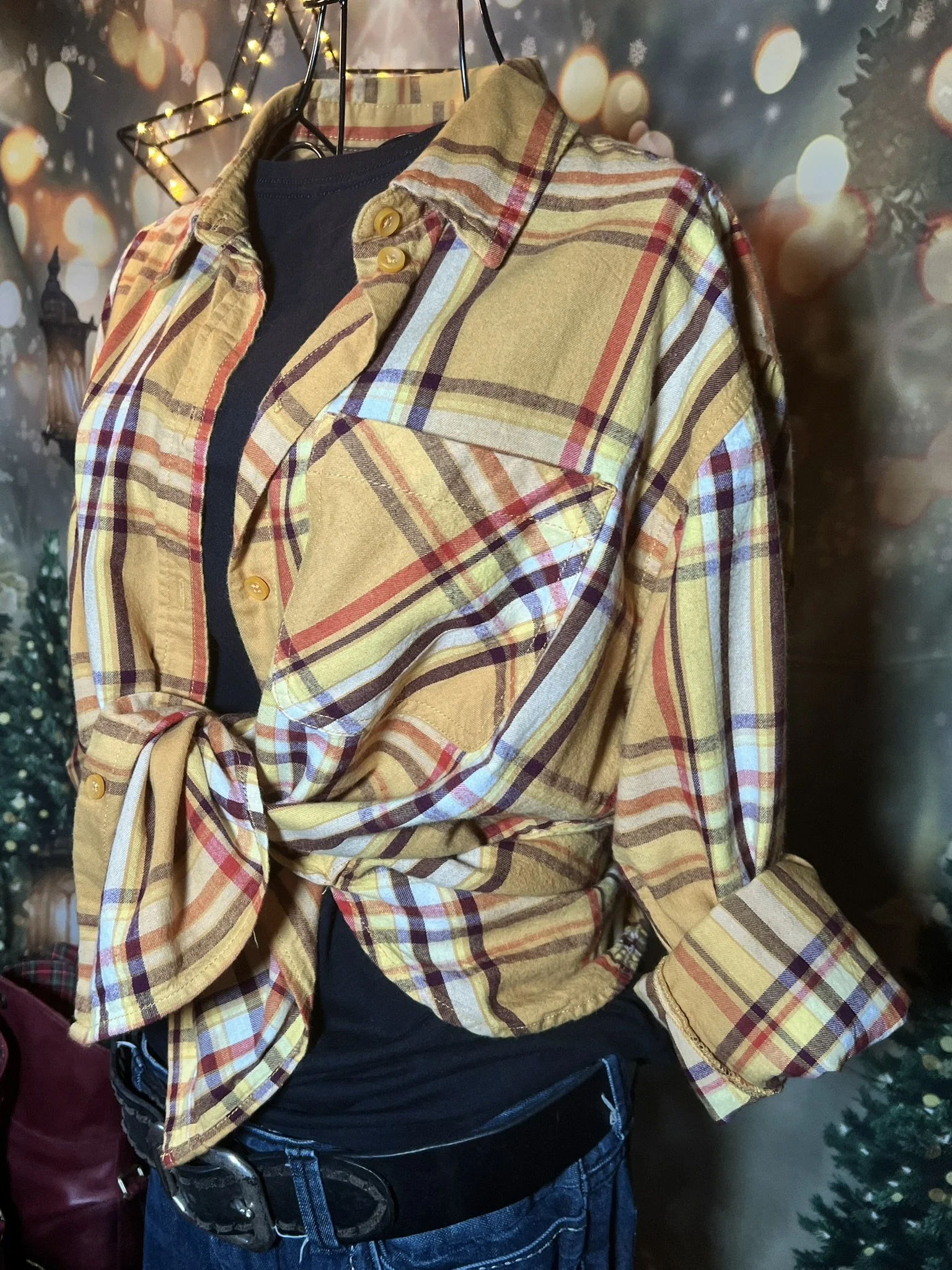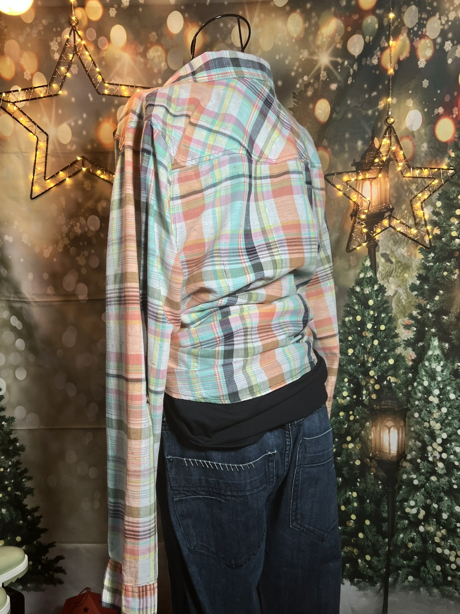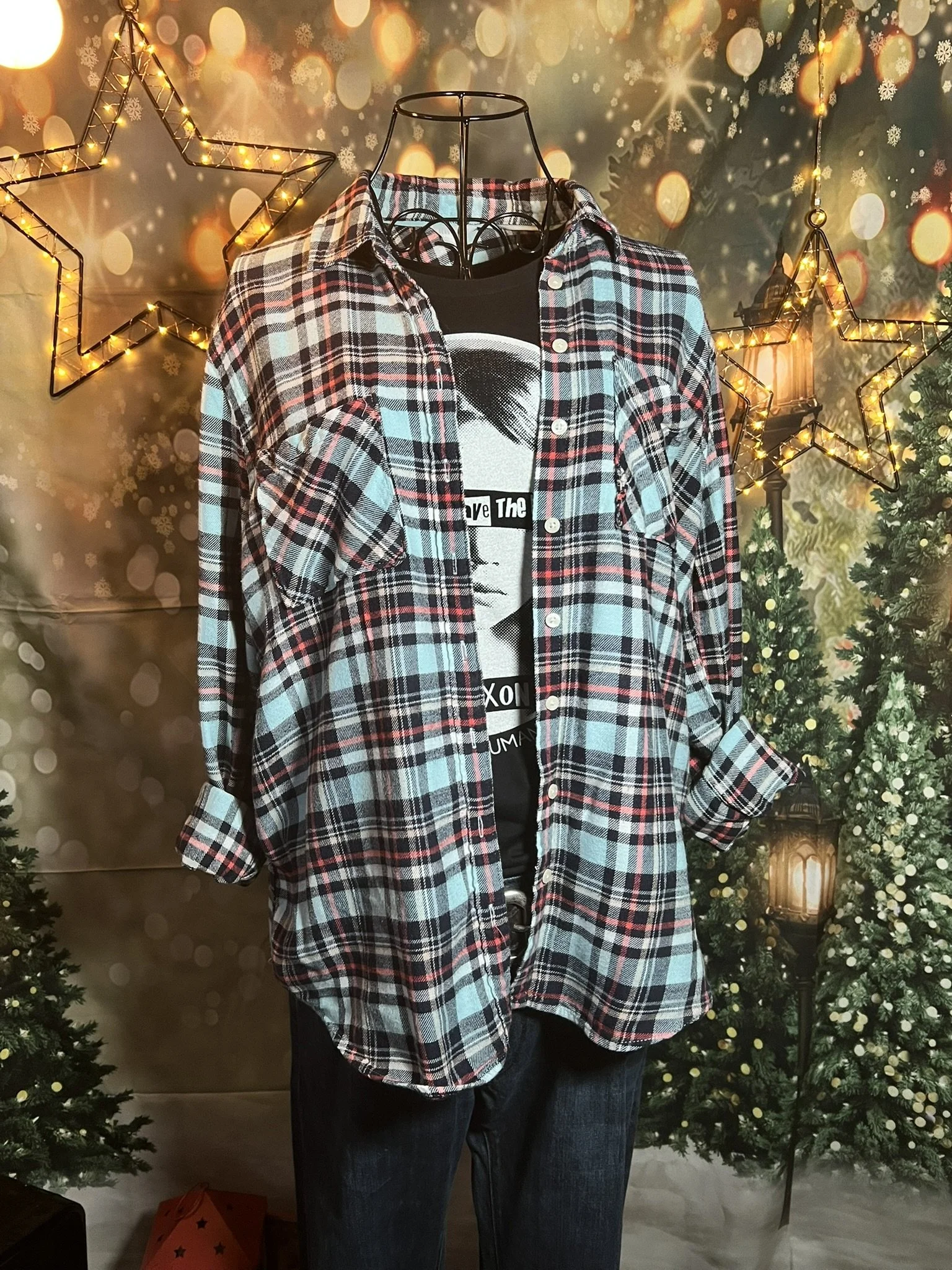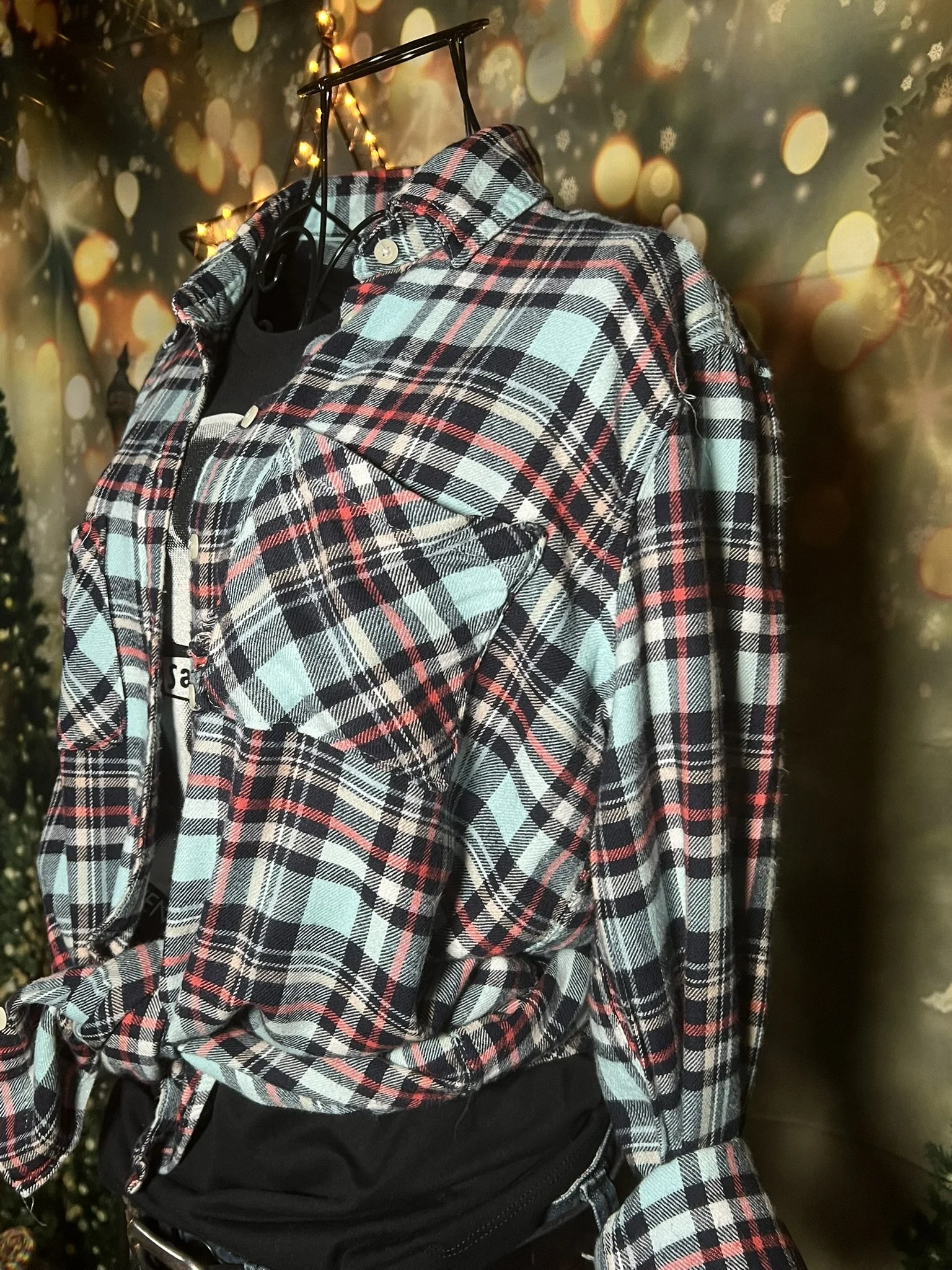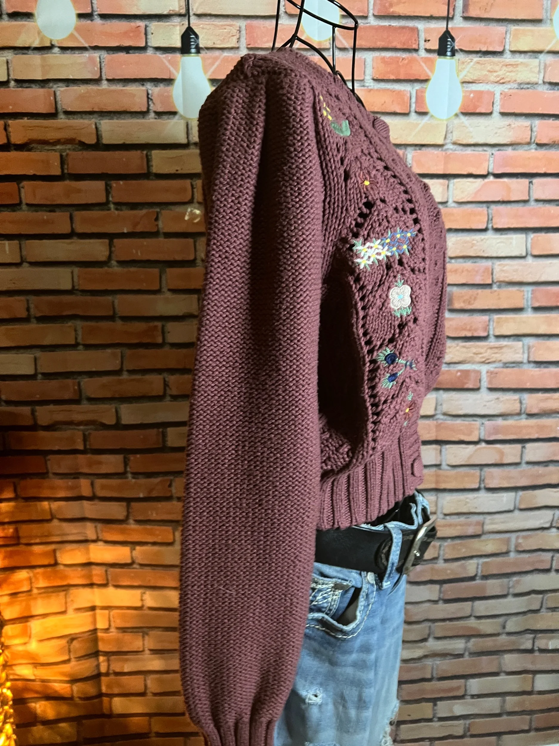 Don’t let the polyester fool you—this one’s a soft-daydream kind of top that happens to survive laundry day like a champ. Romantic floral print, breezy fit, and that quiet confidence that says, “Yeah, I thrift better than you.”
