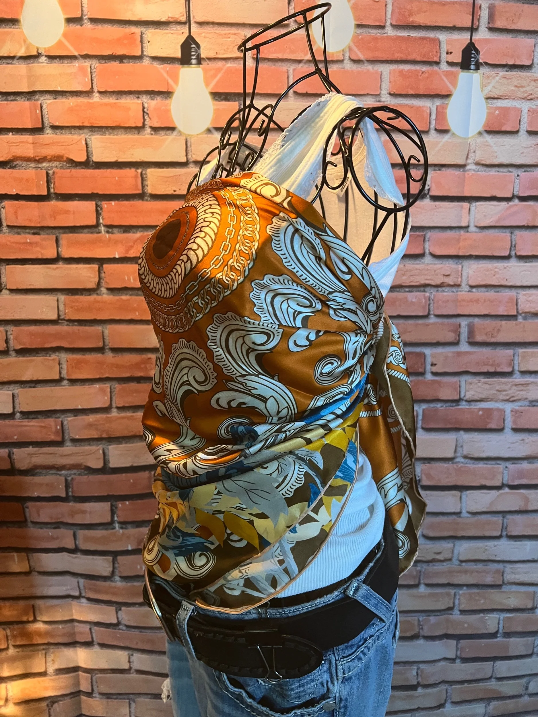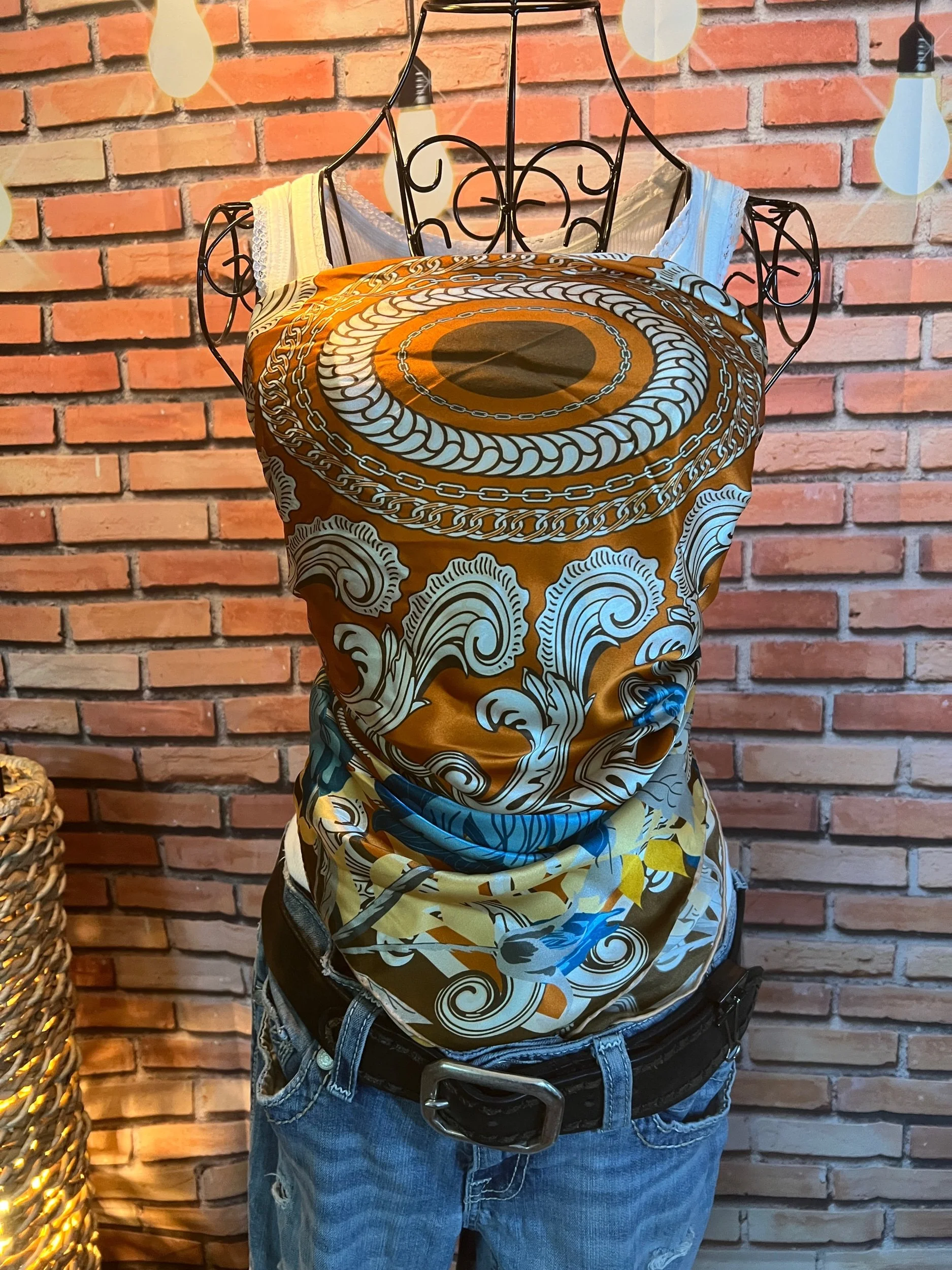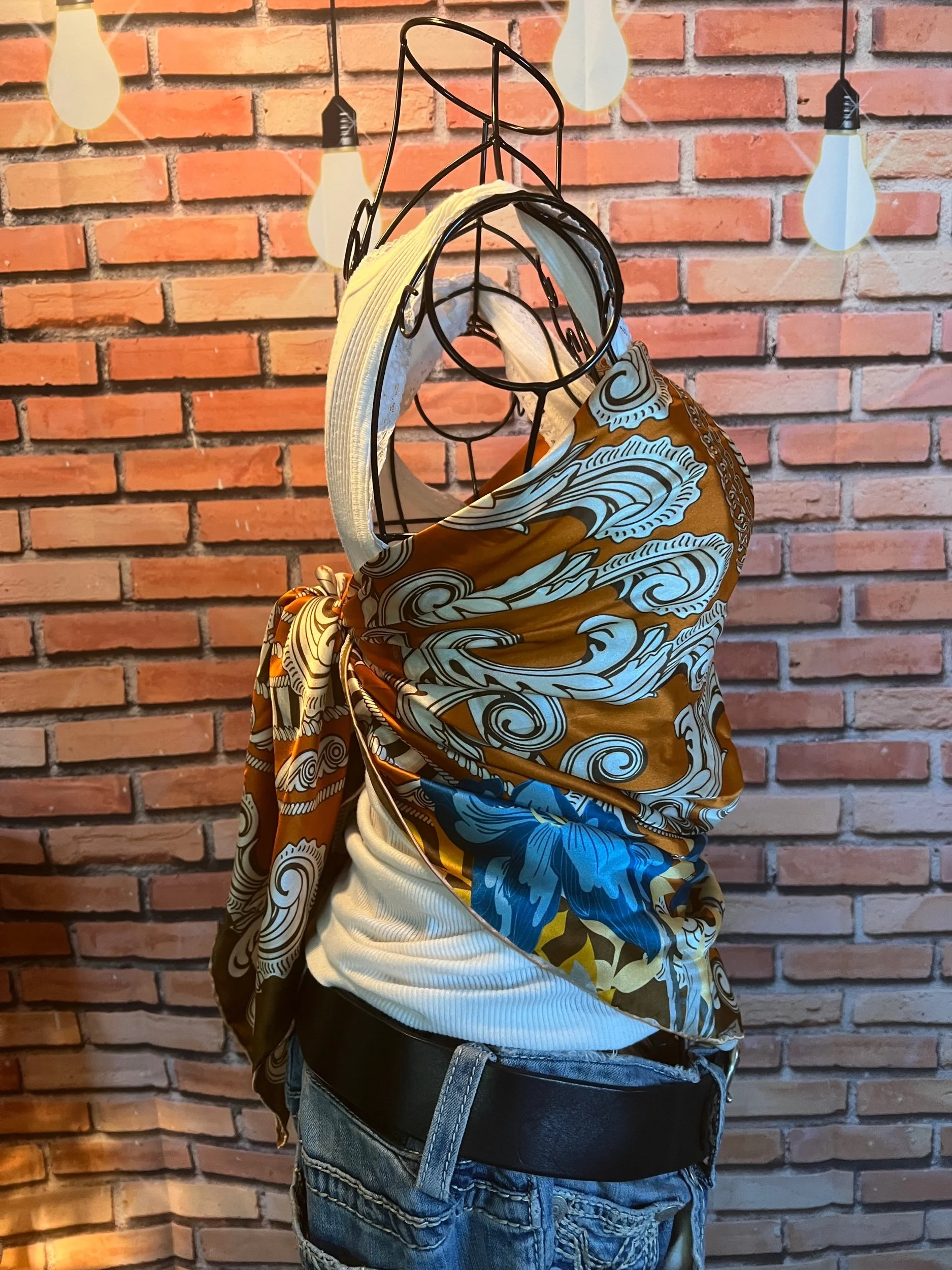 Silk that feels like a secret. Buttery soft, fluid, and unapologetically luxurious — this one shifts from “headband in the summer” to “torso wrap at festivals” to “sweater accent in winter.” Abstract floral print with painterly flair. A statement piece for rule breakers who still appreciate refinement.