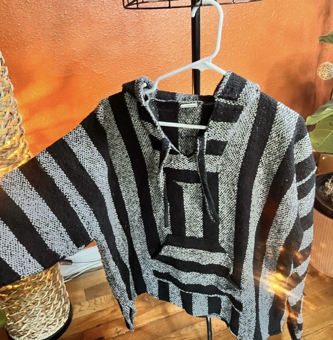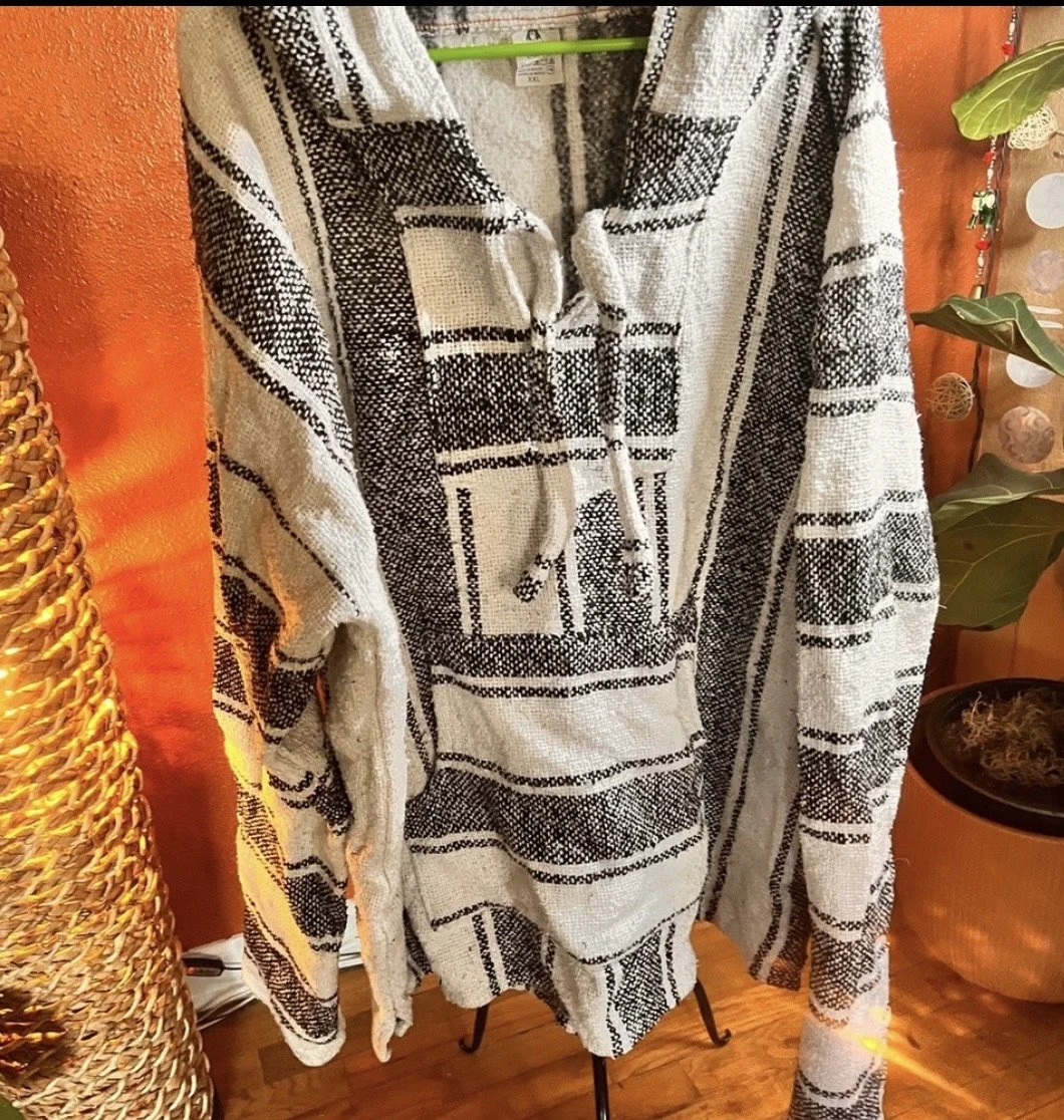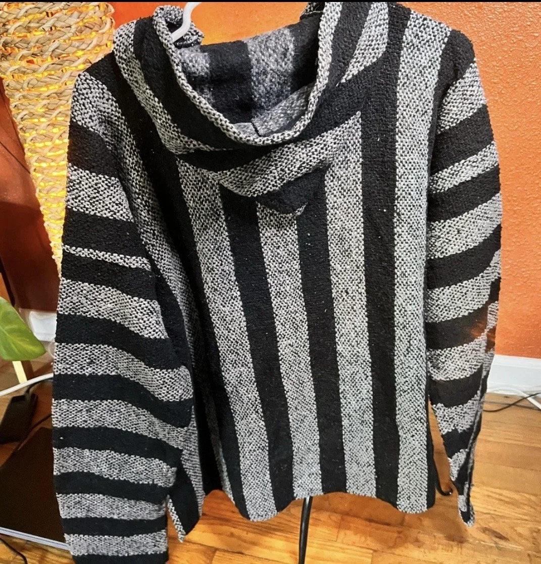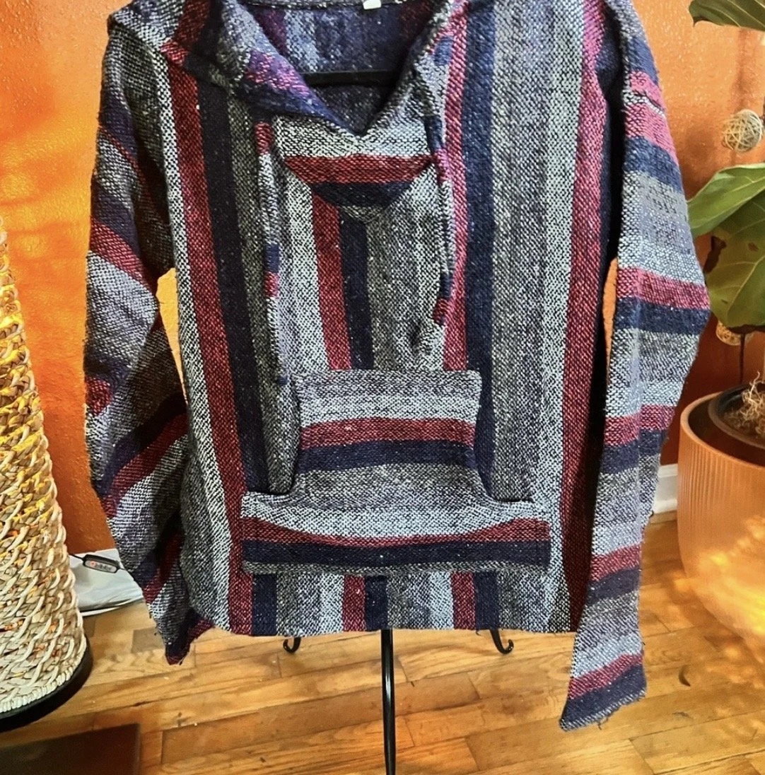 Part boho, part desert outlaw. This Lucky Brand wrap throws down a storm of rust, indigo, and cream with just enough fringe to make a statement when you walk away. Textured knit with an open front, asymmetrical hem, and that signature draped silhouette that looks effortless but hits hard. Excellent condition with no visible wear — just attitude.
