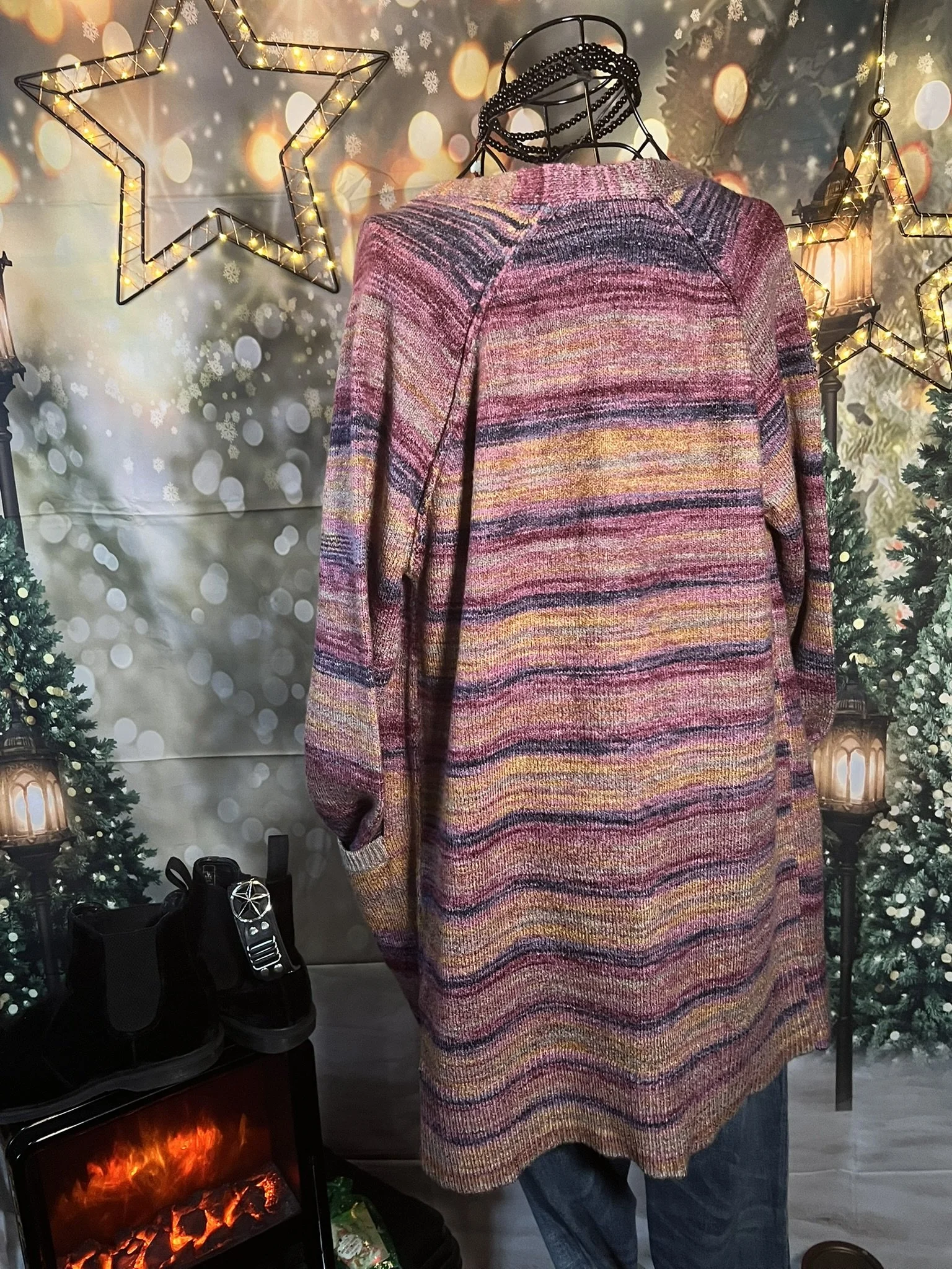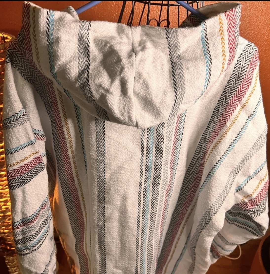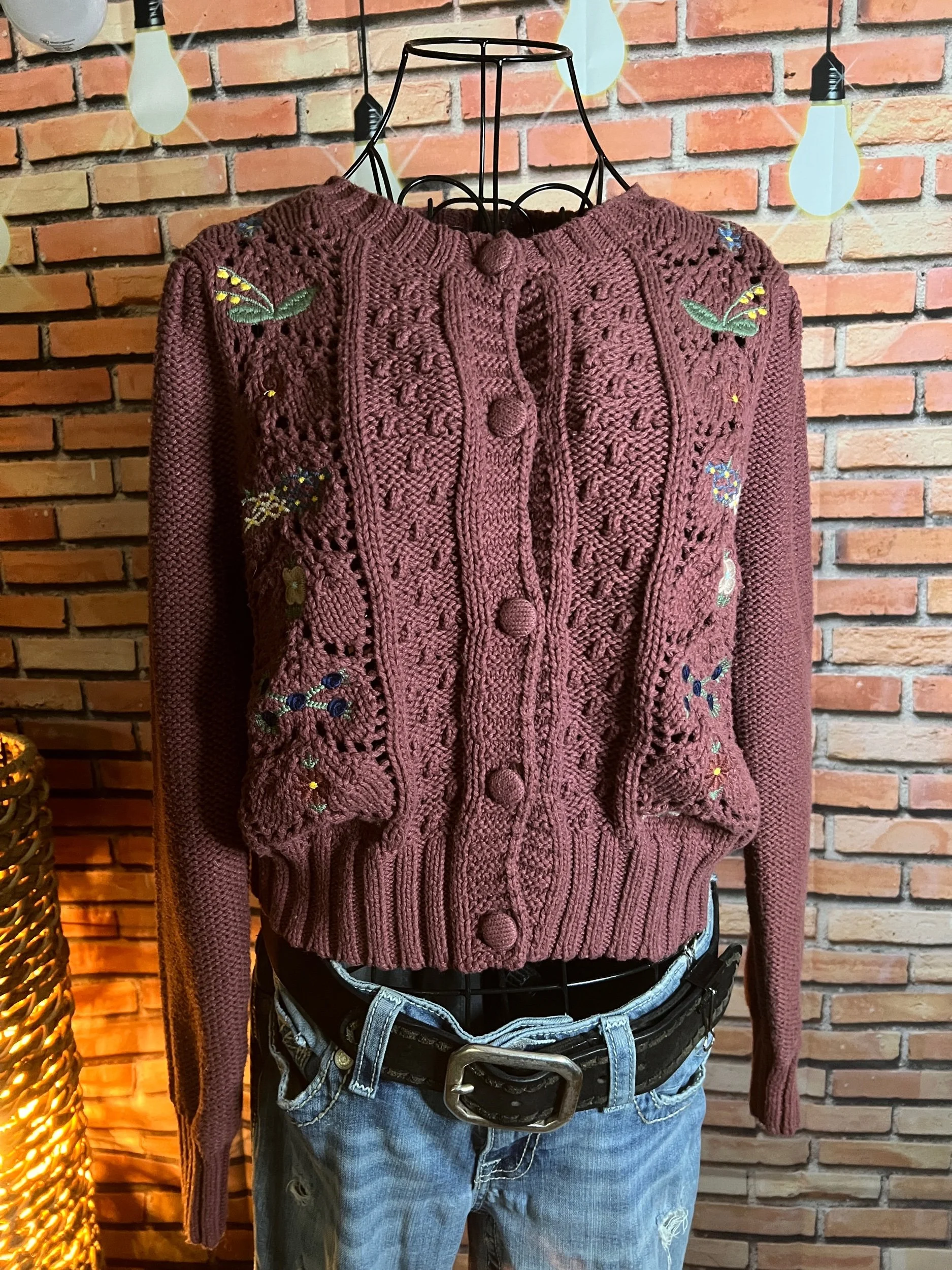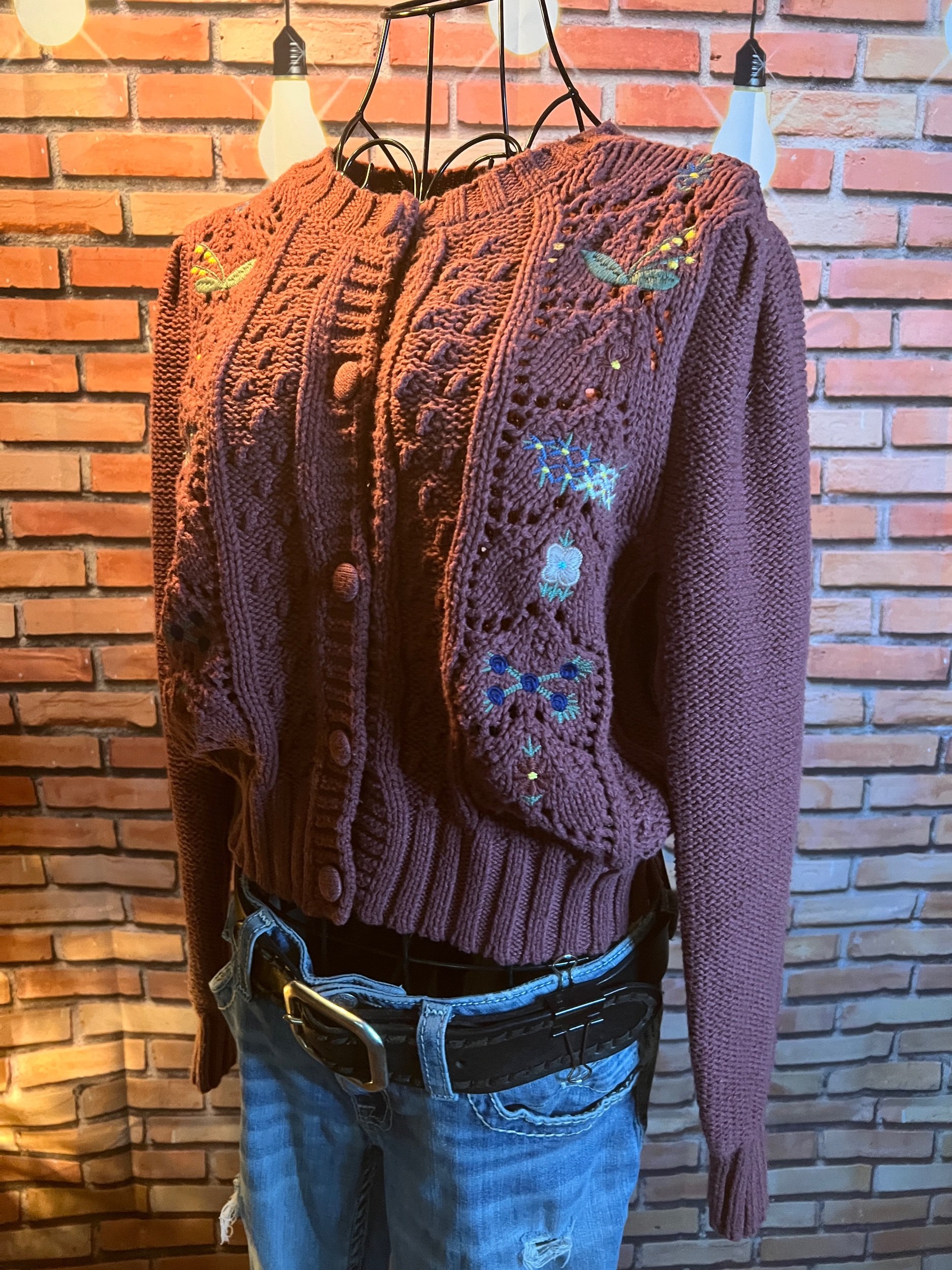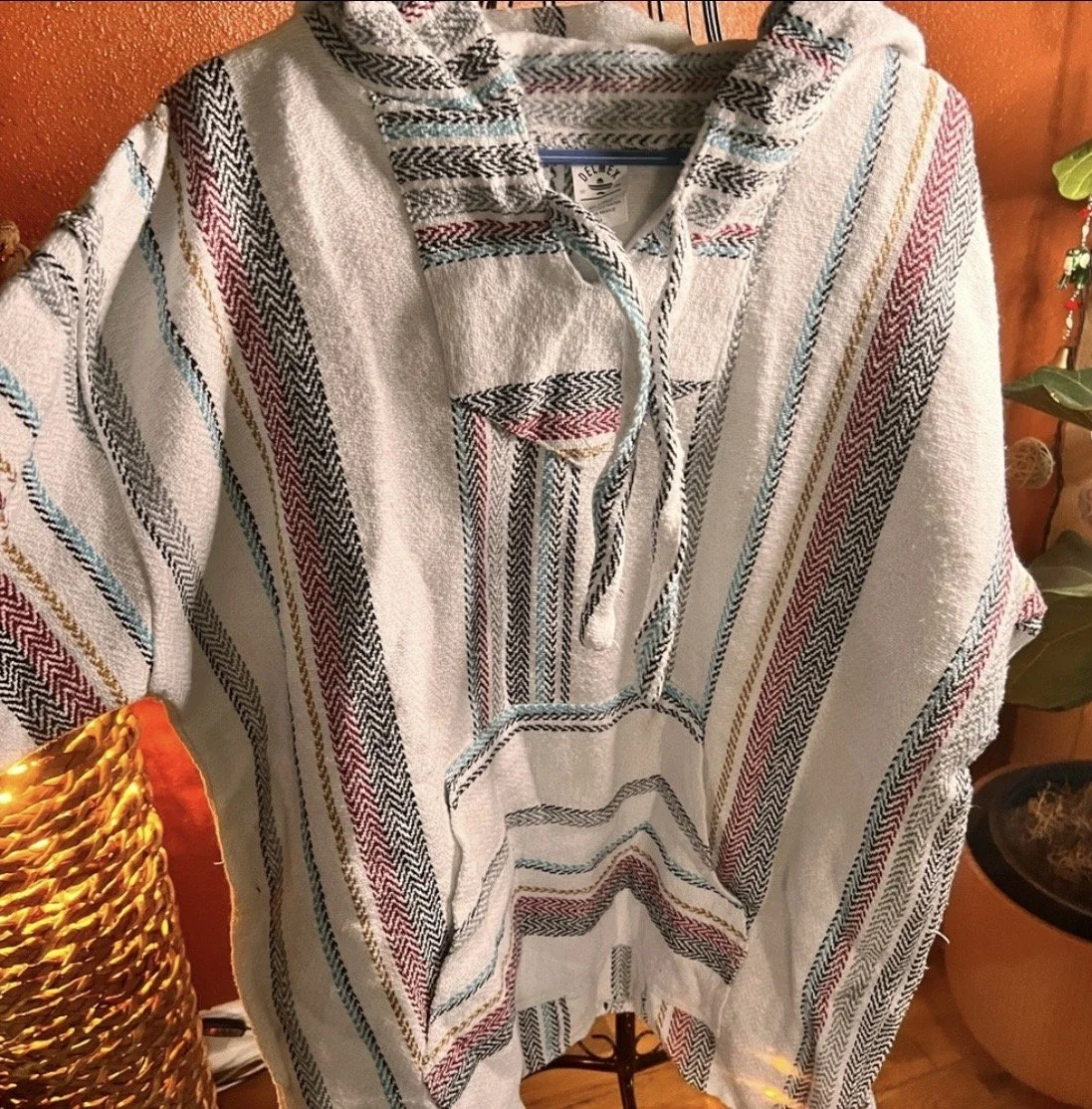 Part boho, part desert outlaw. This Lucky Brand wrap throws down a storm of rust, indigo, and cream with just enough fringe to make a statement when you walk away. Textured knit with an open front, asymmetrical hem, and that signature draped silhouette that looks effortless but hits hard. Excellent condition with no visible wear — just attitude.
