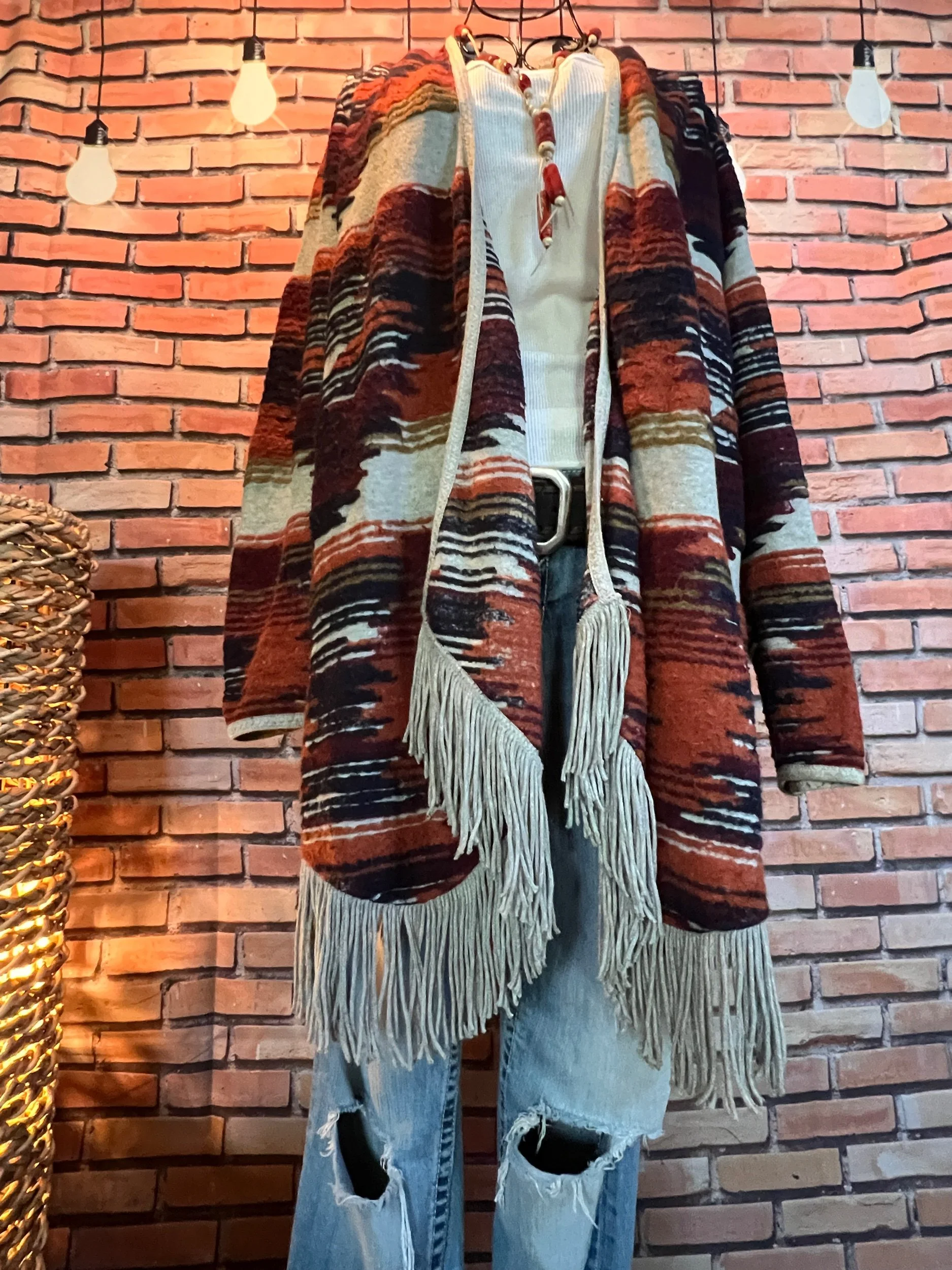 Fringed hem and cuffs