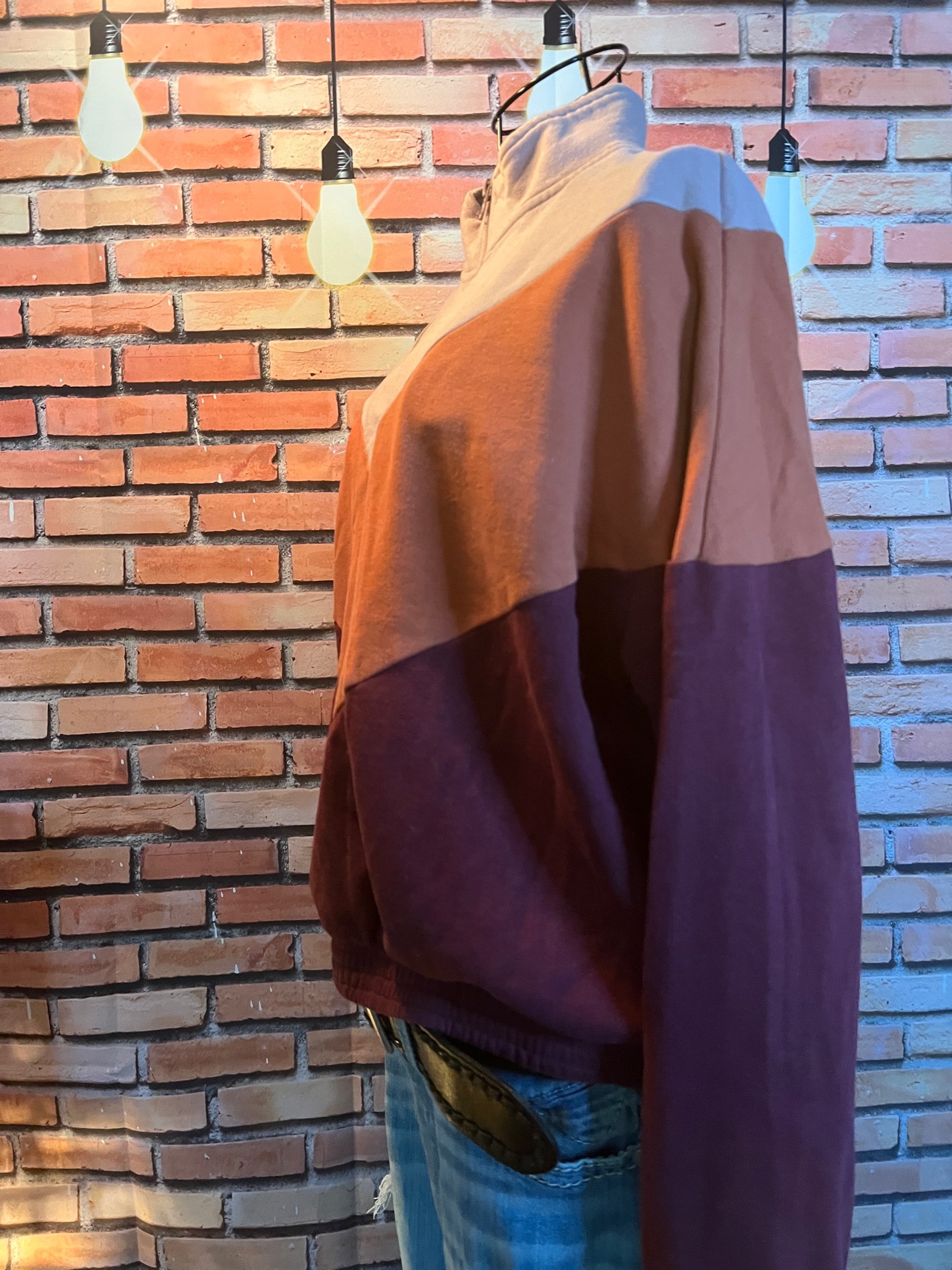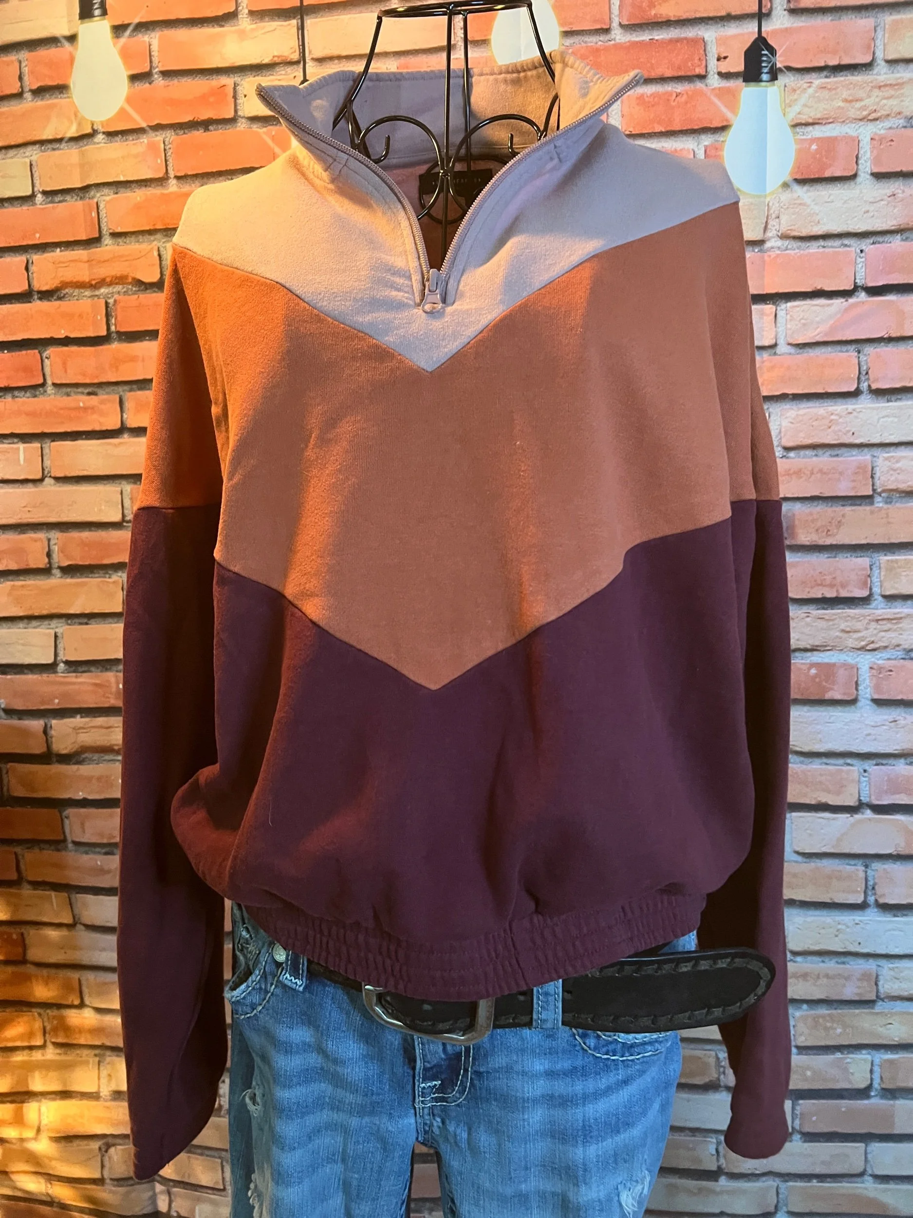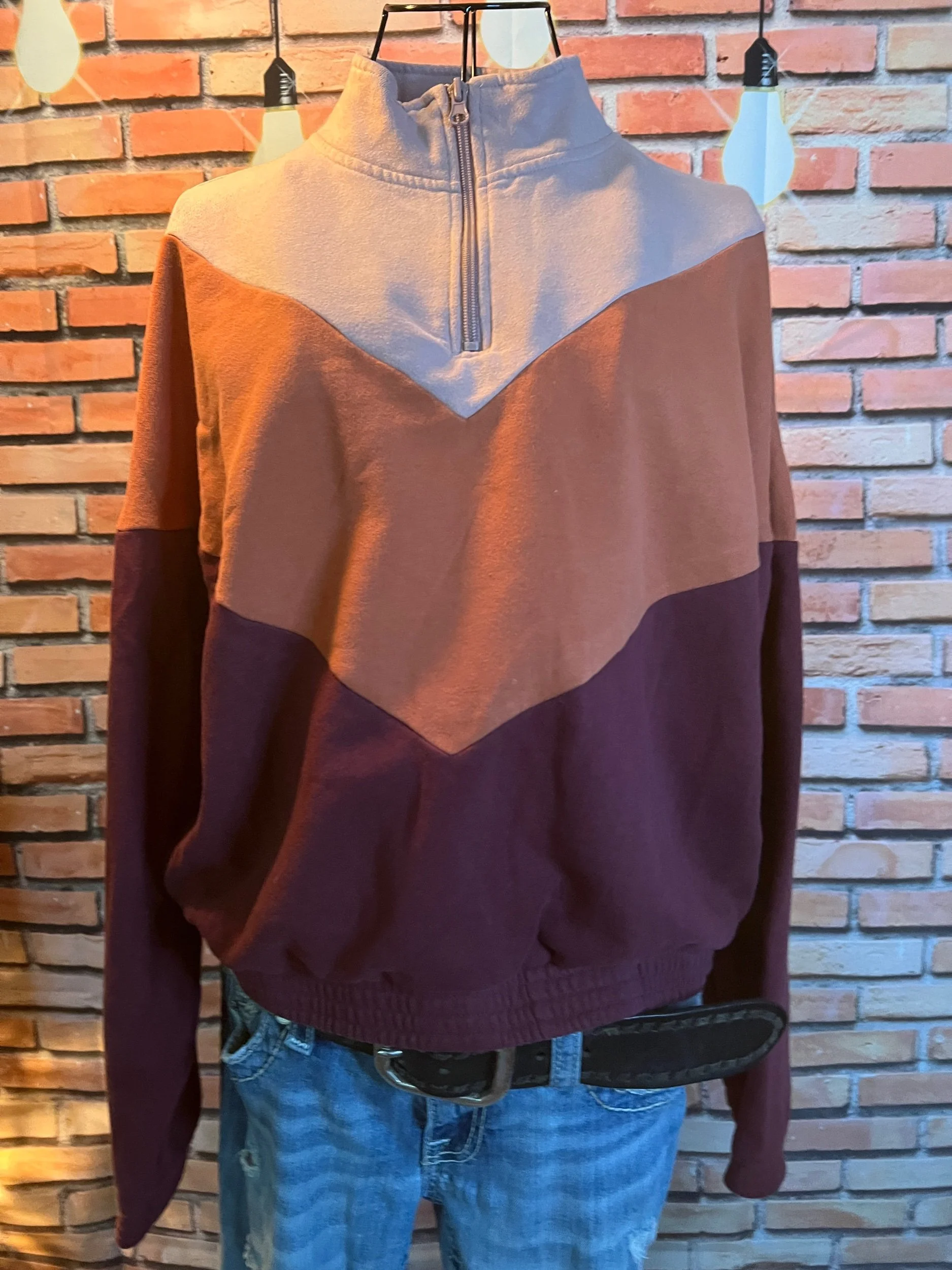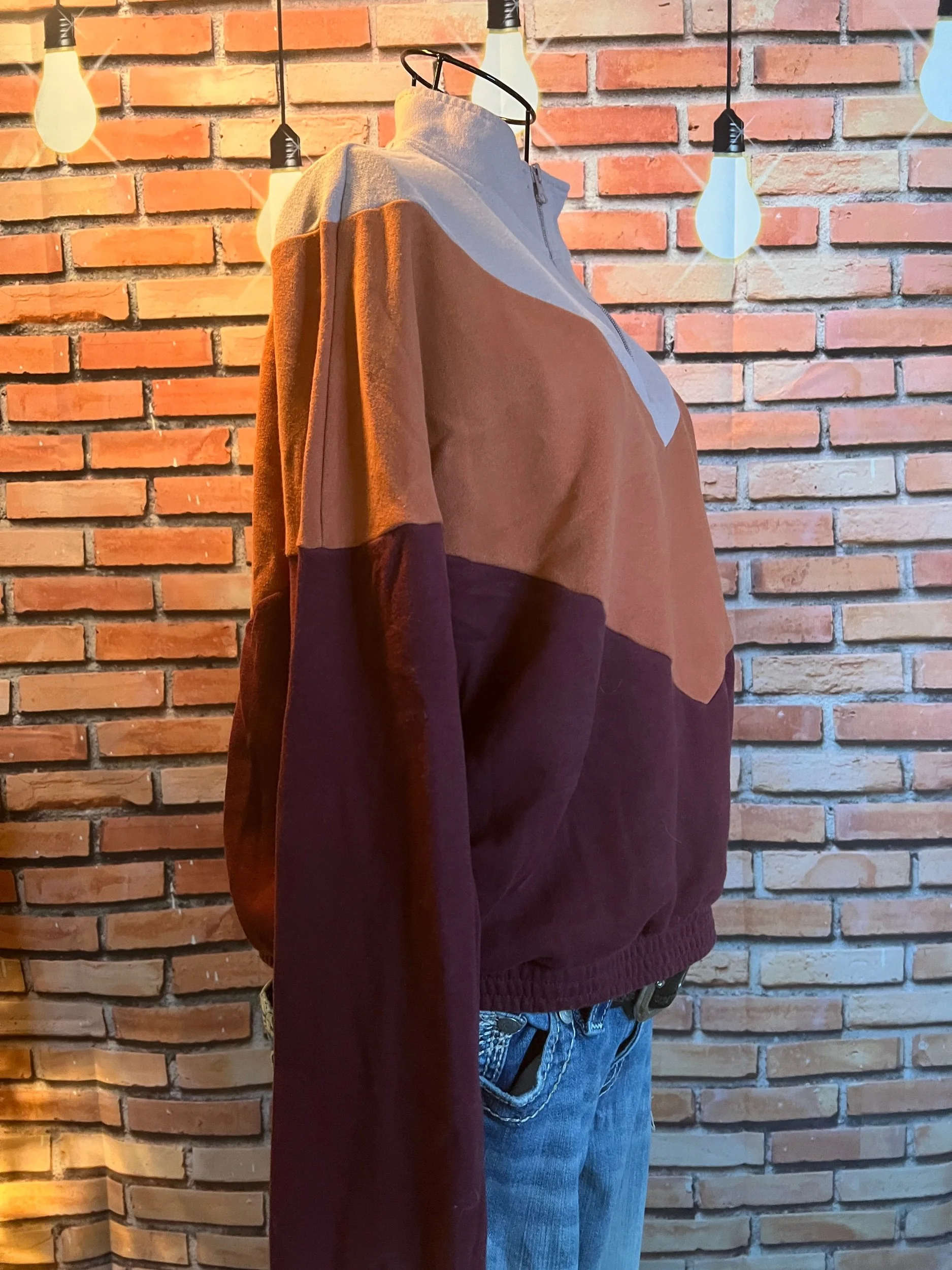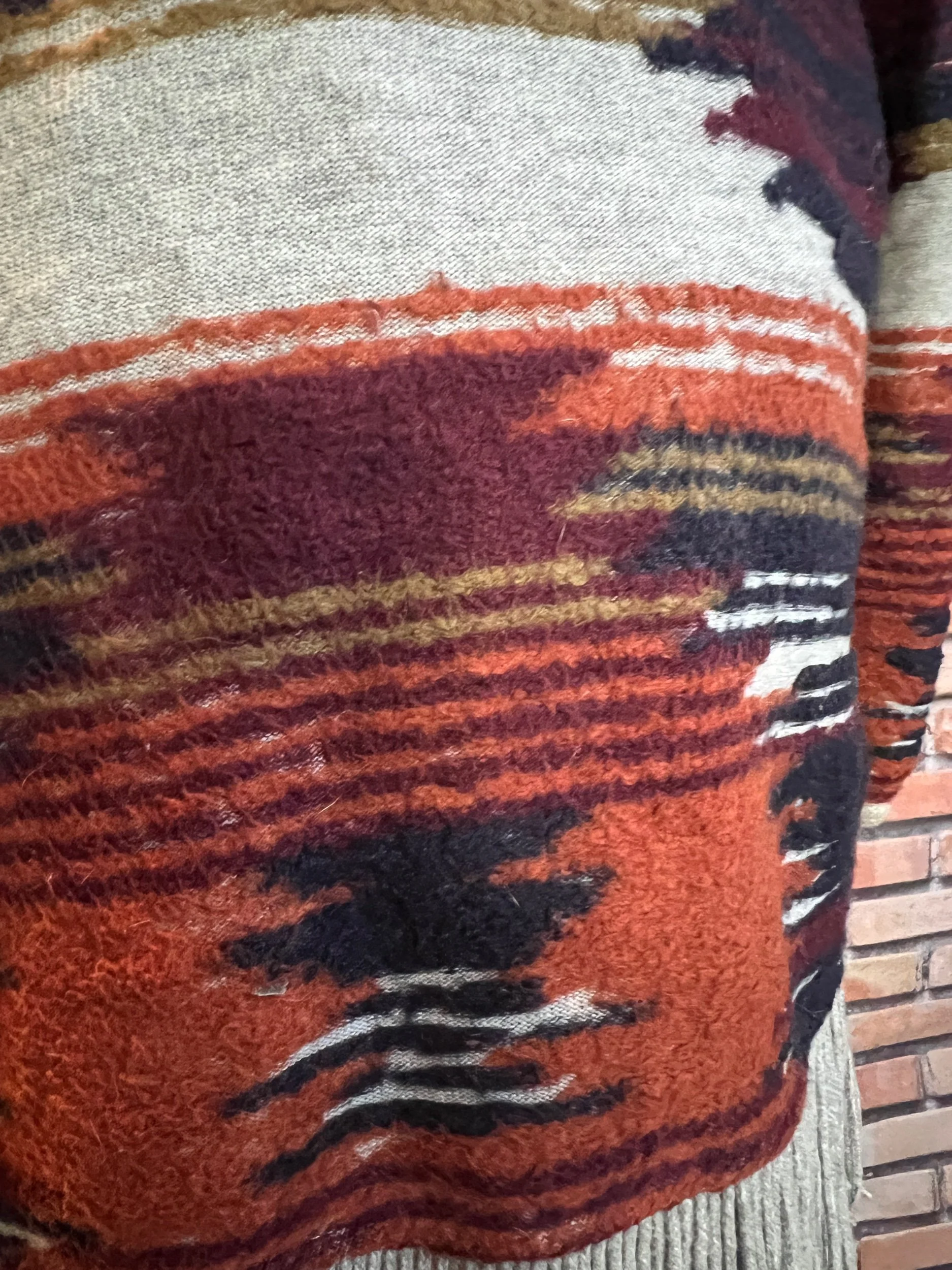 Retro meets road-trip cozy. This LA Hearts quarter-zip rocks a soft chevron block in blush, rust, and deep wine — like a sunset bottled into fleece form. Midweight, perfectly broken in, and ideal for layering when you want comfort without looking like you gave up. Good condition with minimal wear.
