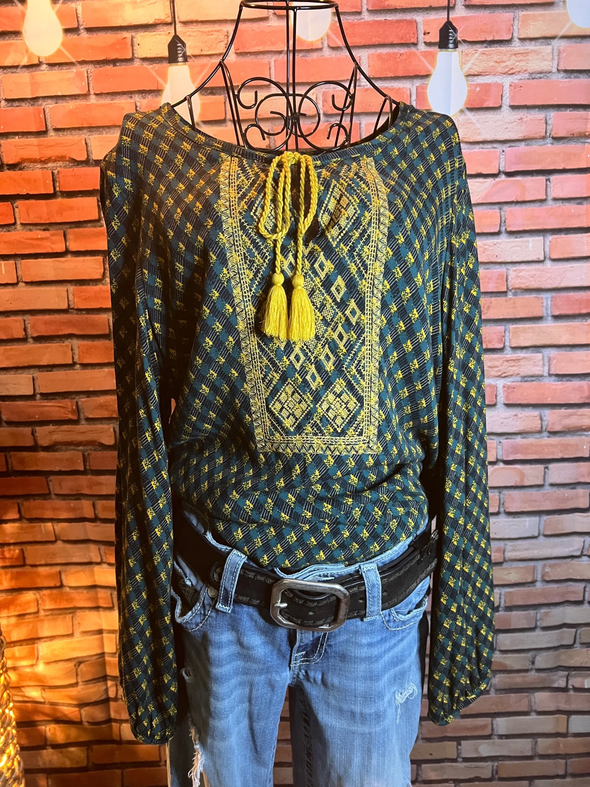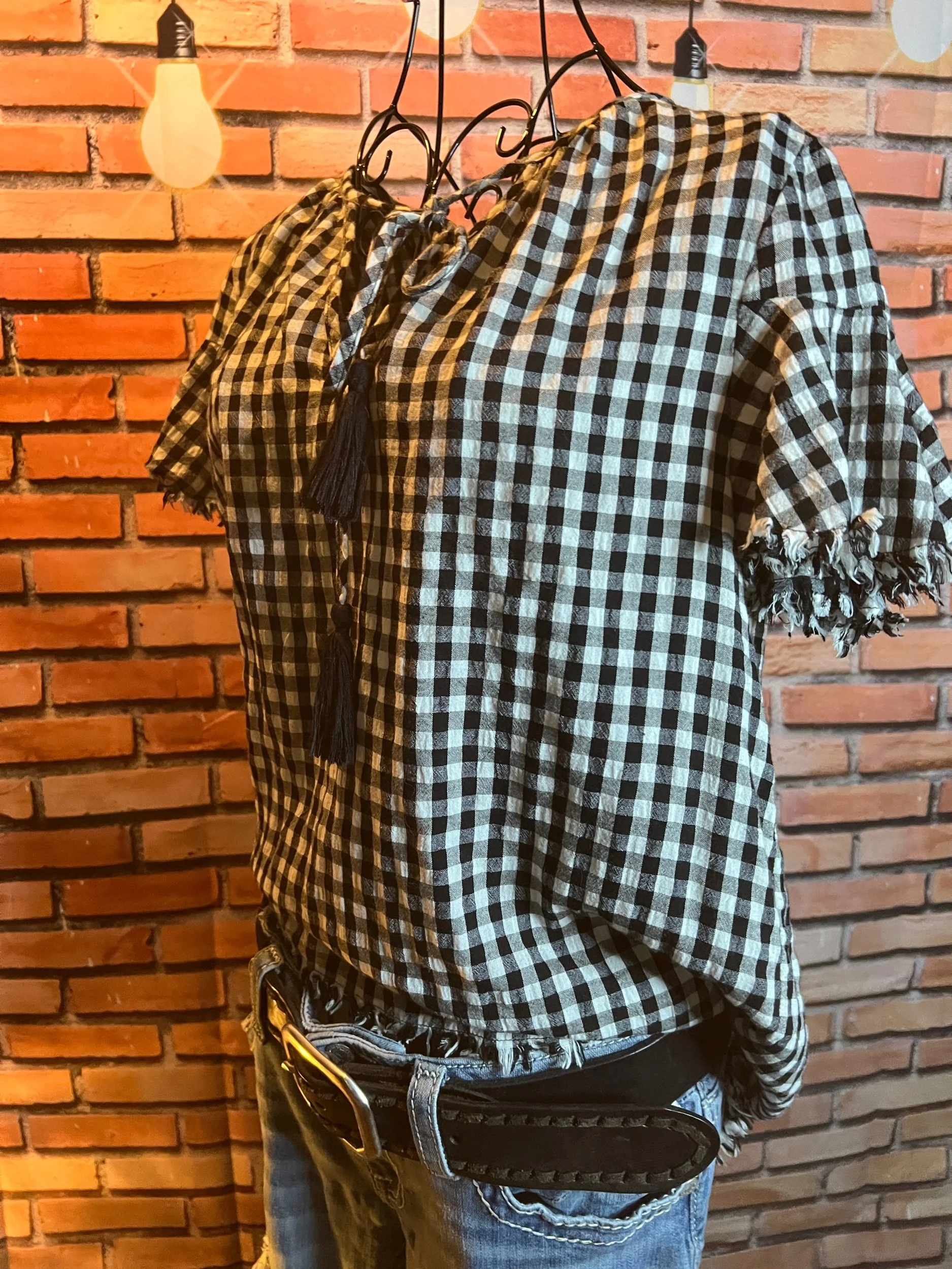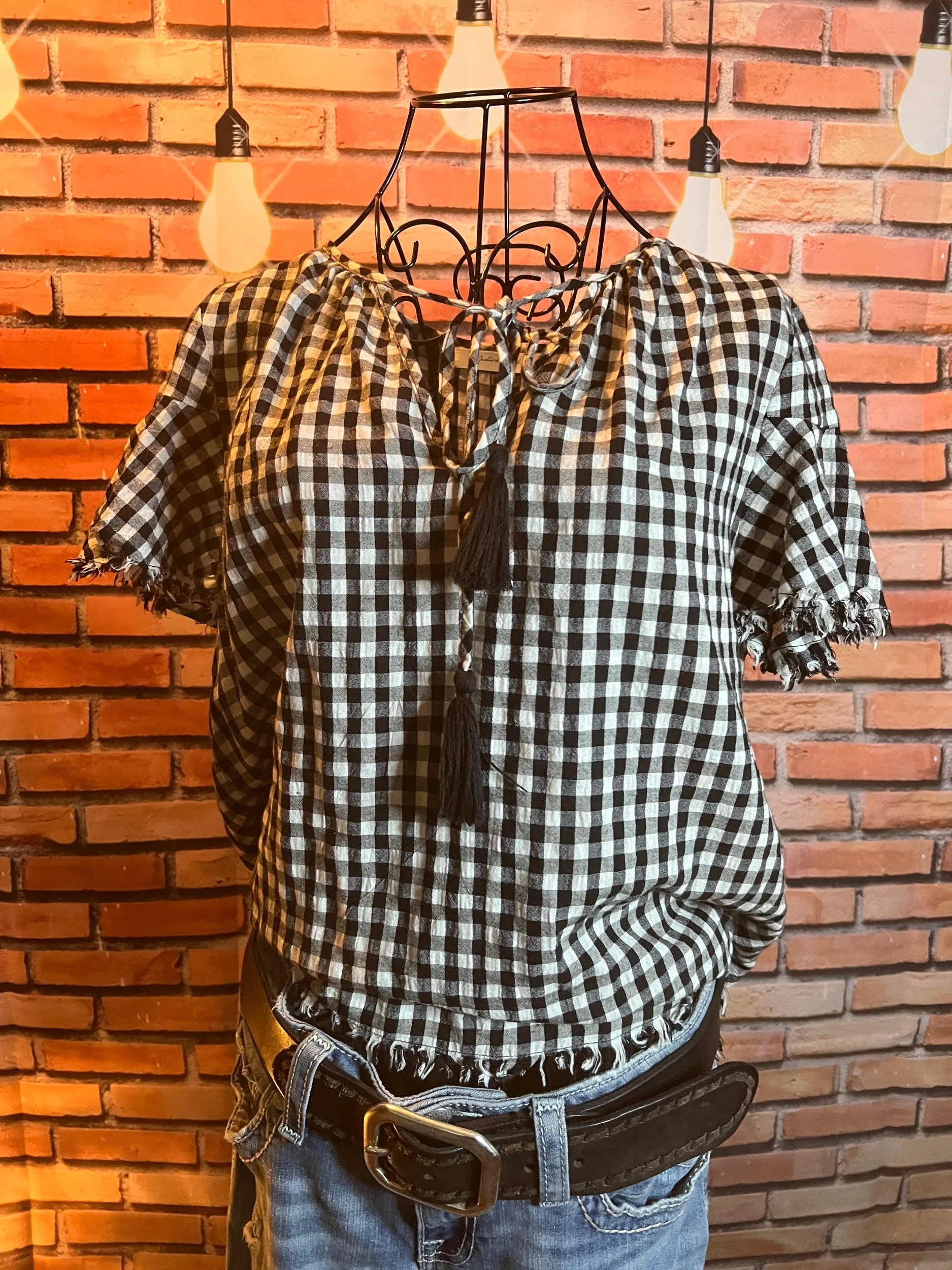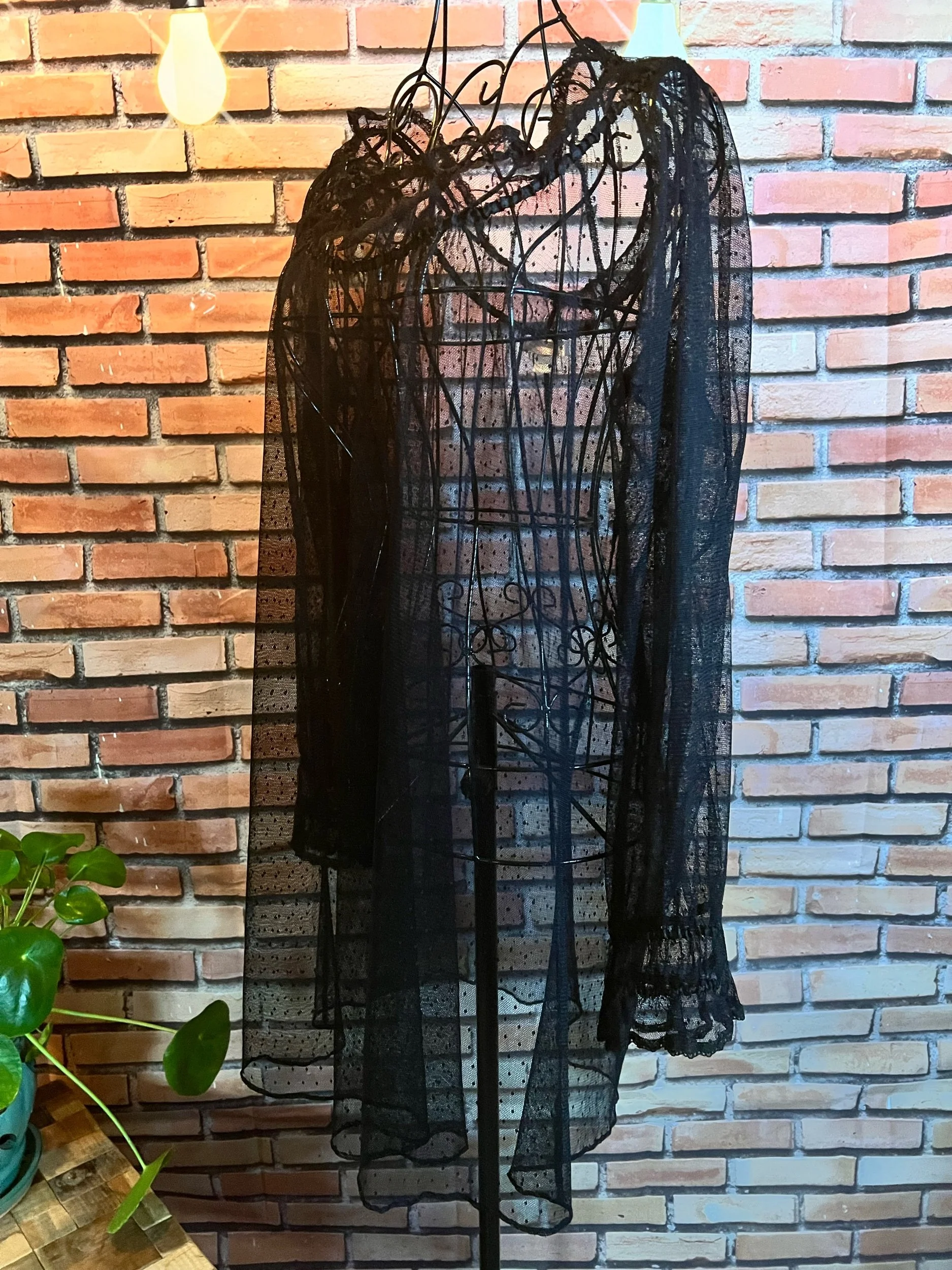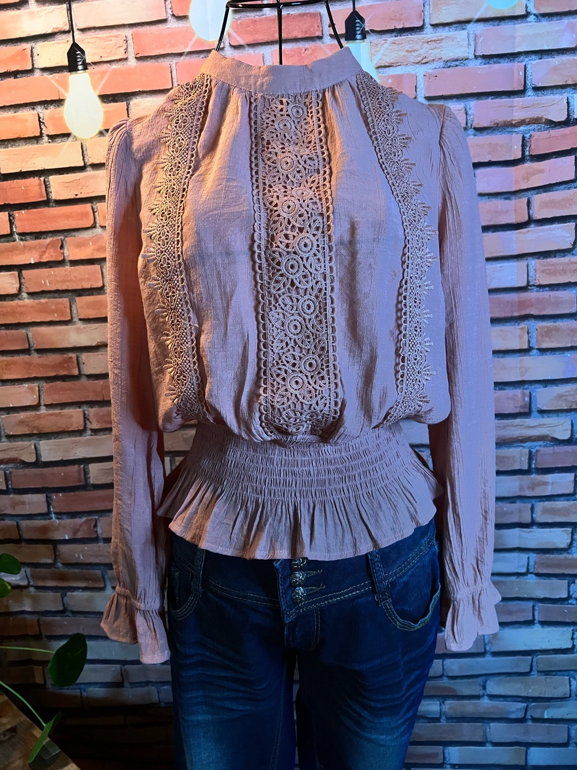 Soft, vintage-inspired ruffle blouse with a lightweight drape and that “I behave… until I accessorize” energy. The kind of top that goes from garden-party polite to dive-bar loud depending on what you pair it with.