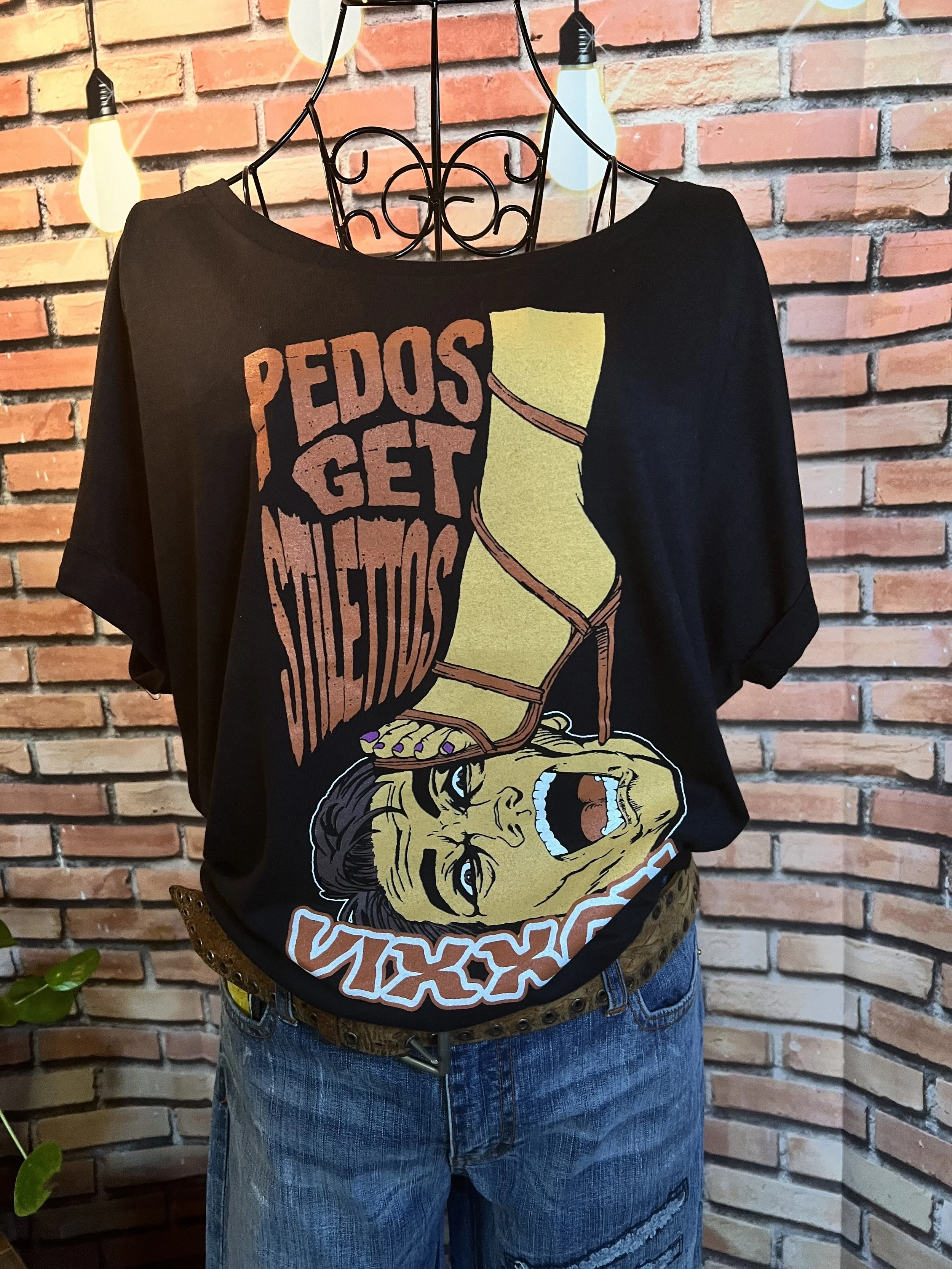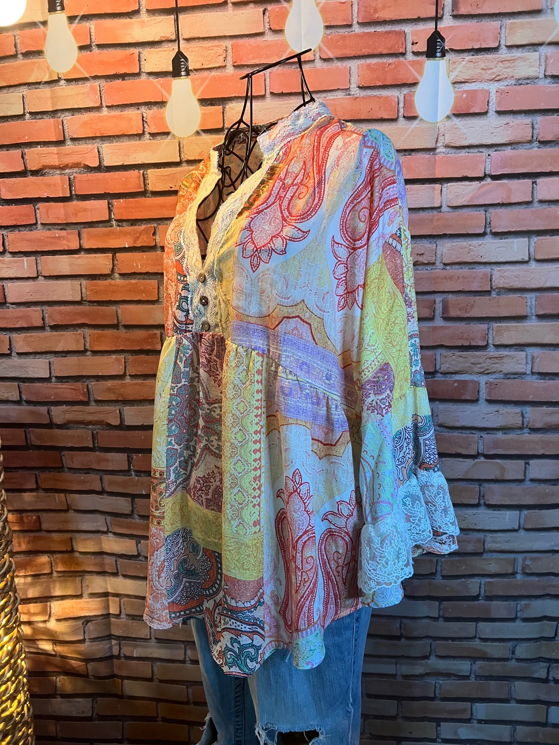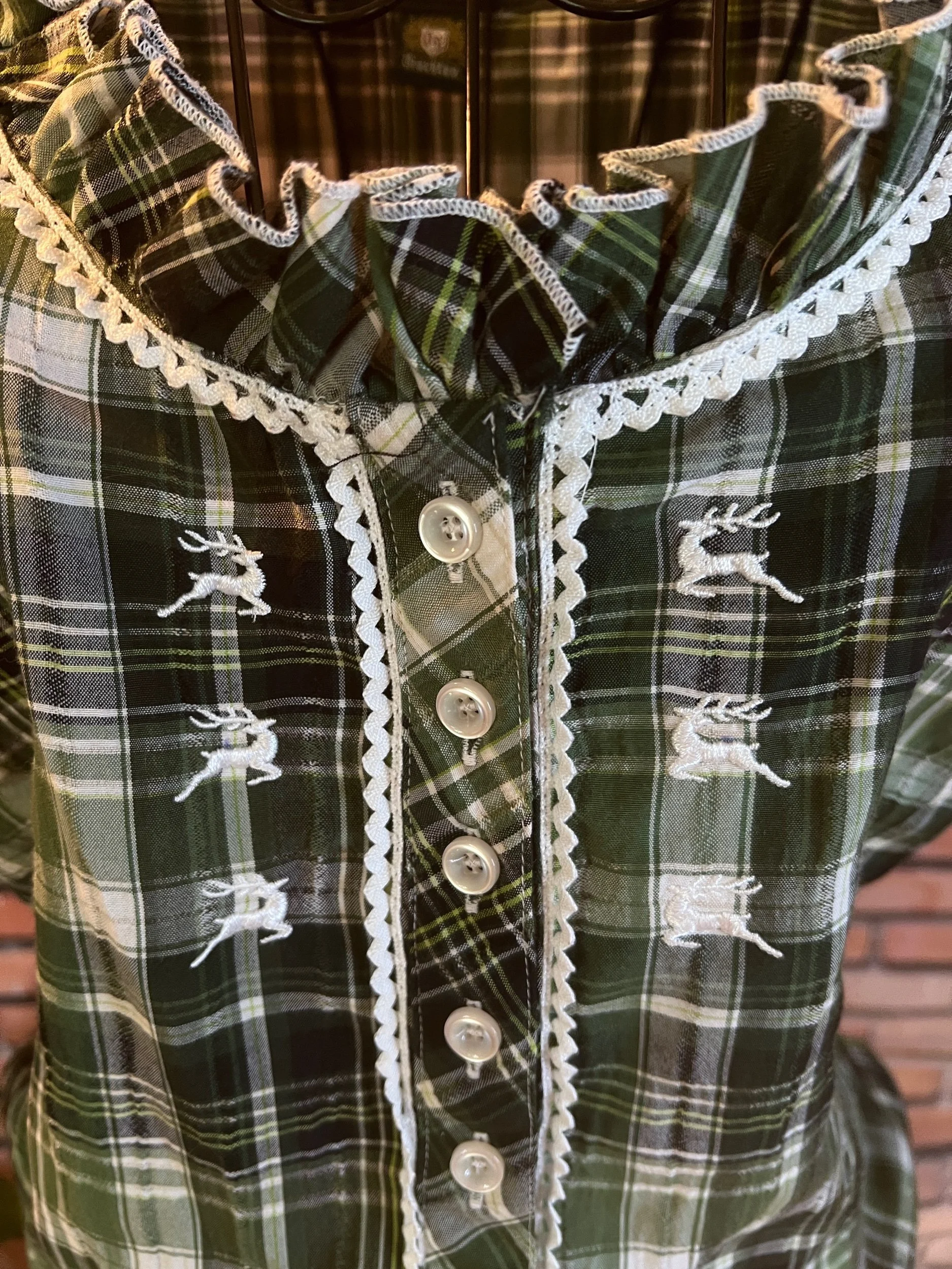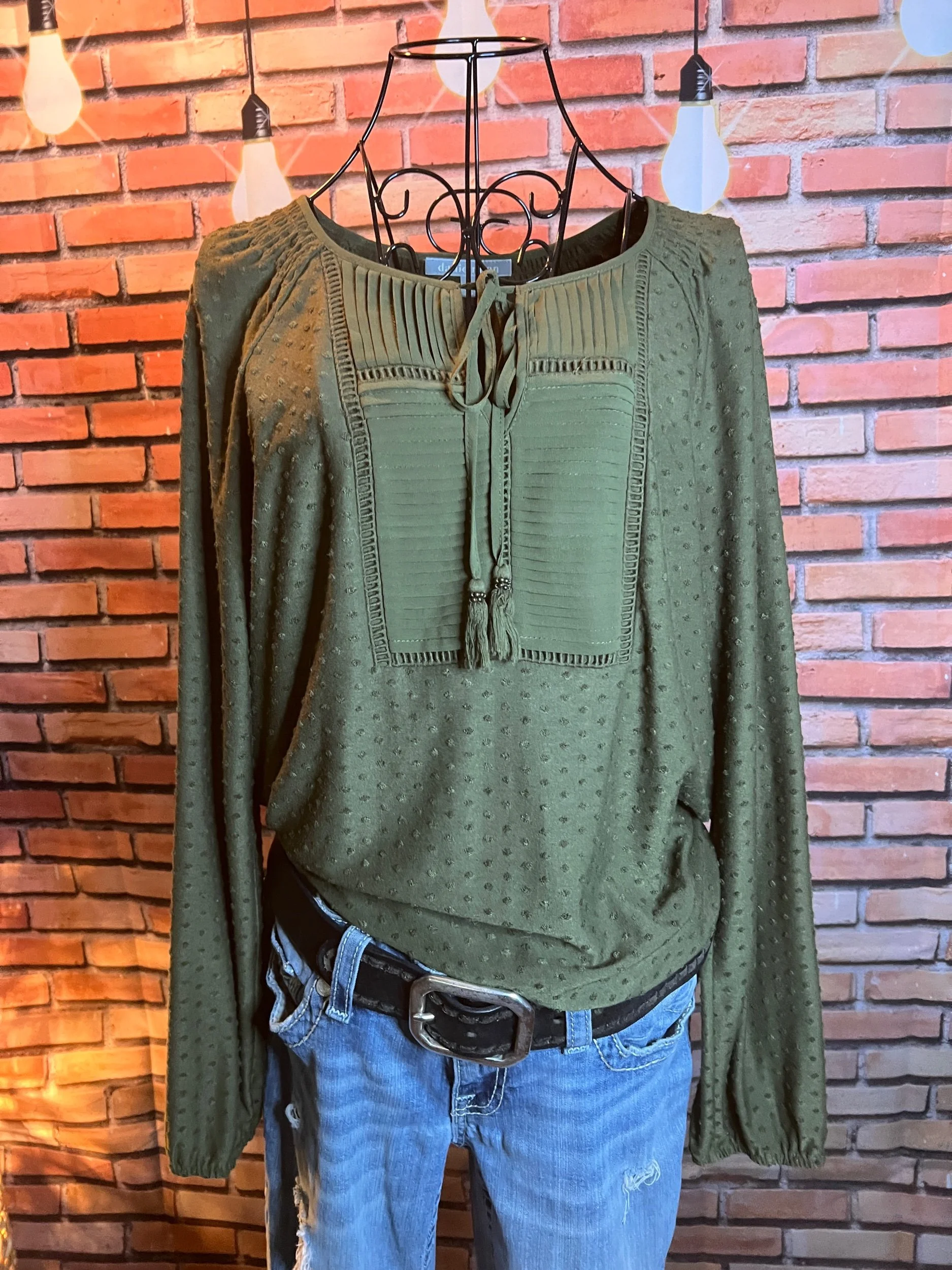 Soft, vintage-inspired ruffle blouse with a lightweight drape and that “I behave… until I accessorize” energy. The kind of top that goes from garden-party polite to dive-bar loud depending on what you pair it with.