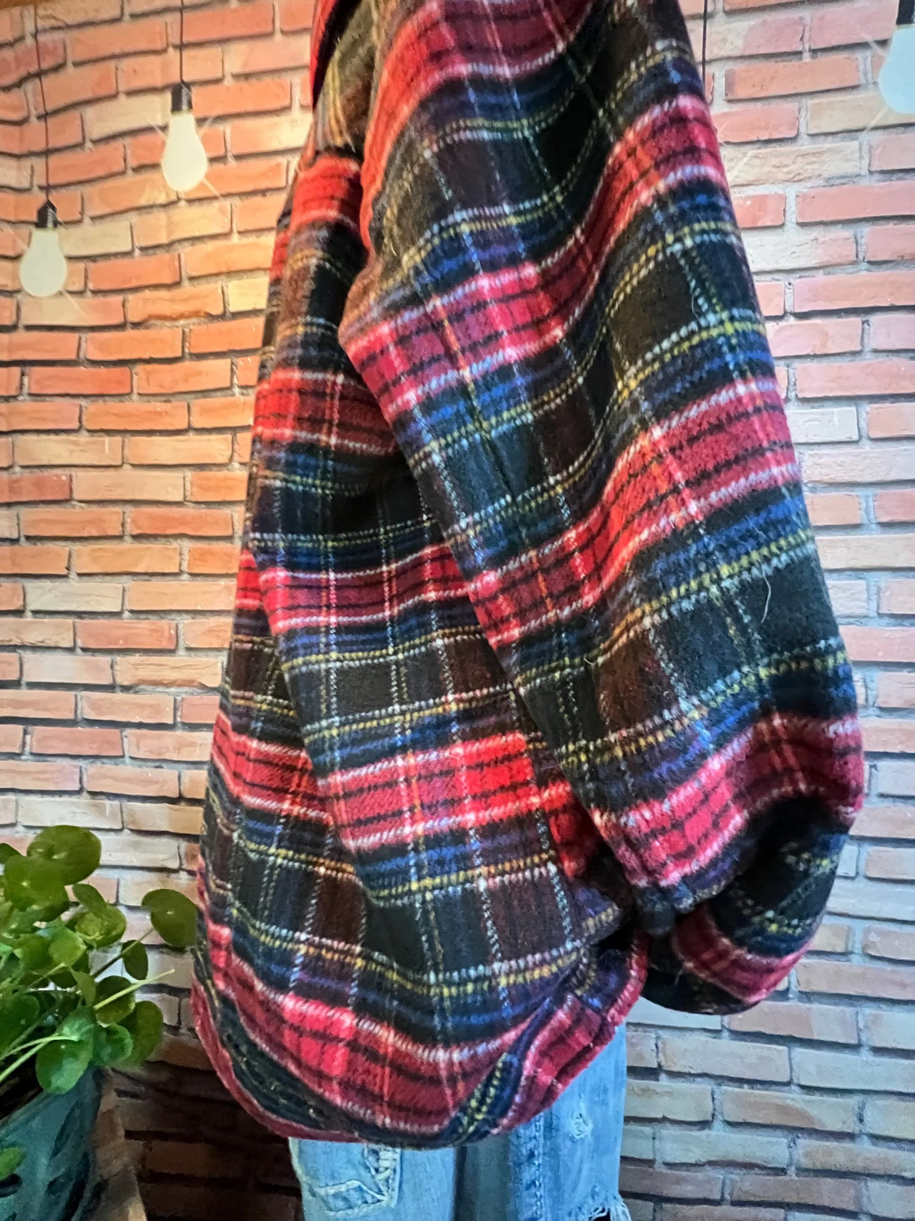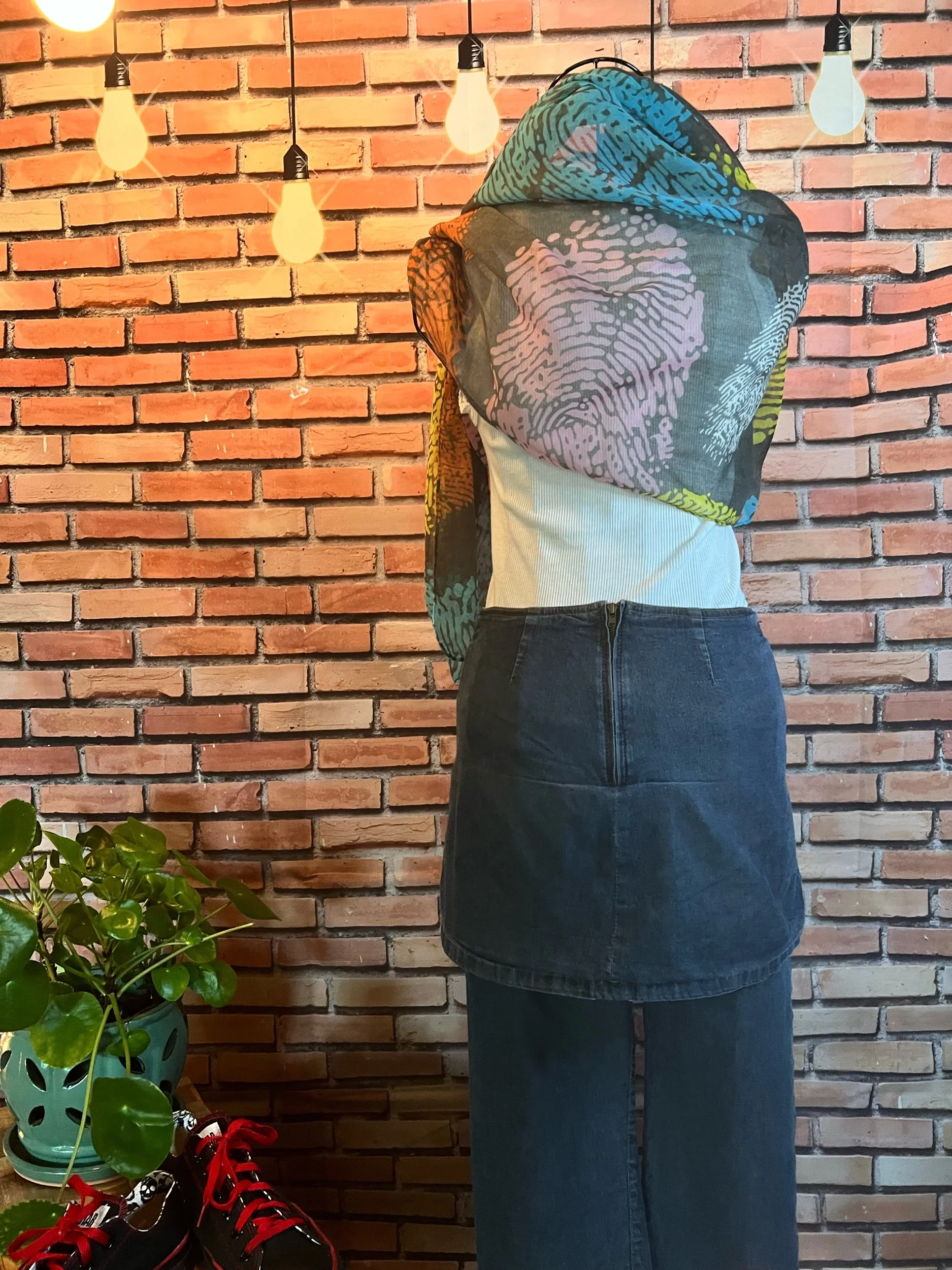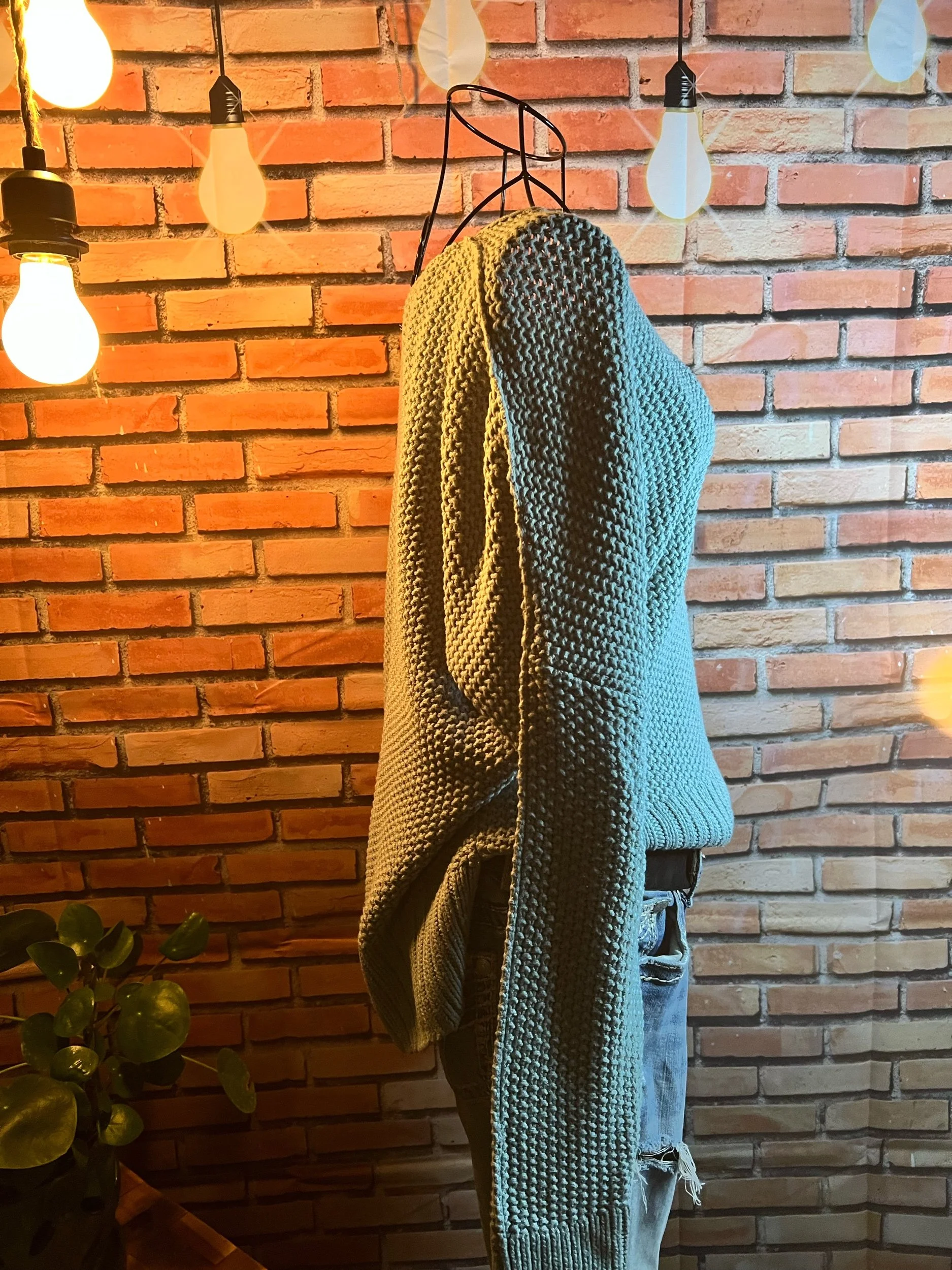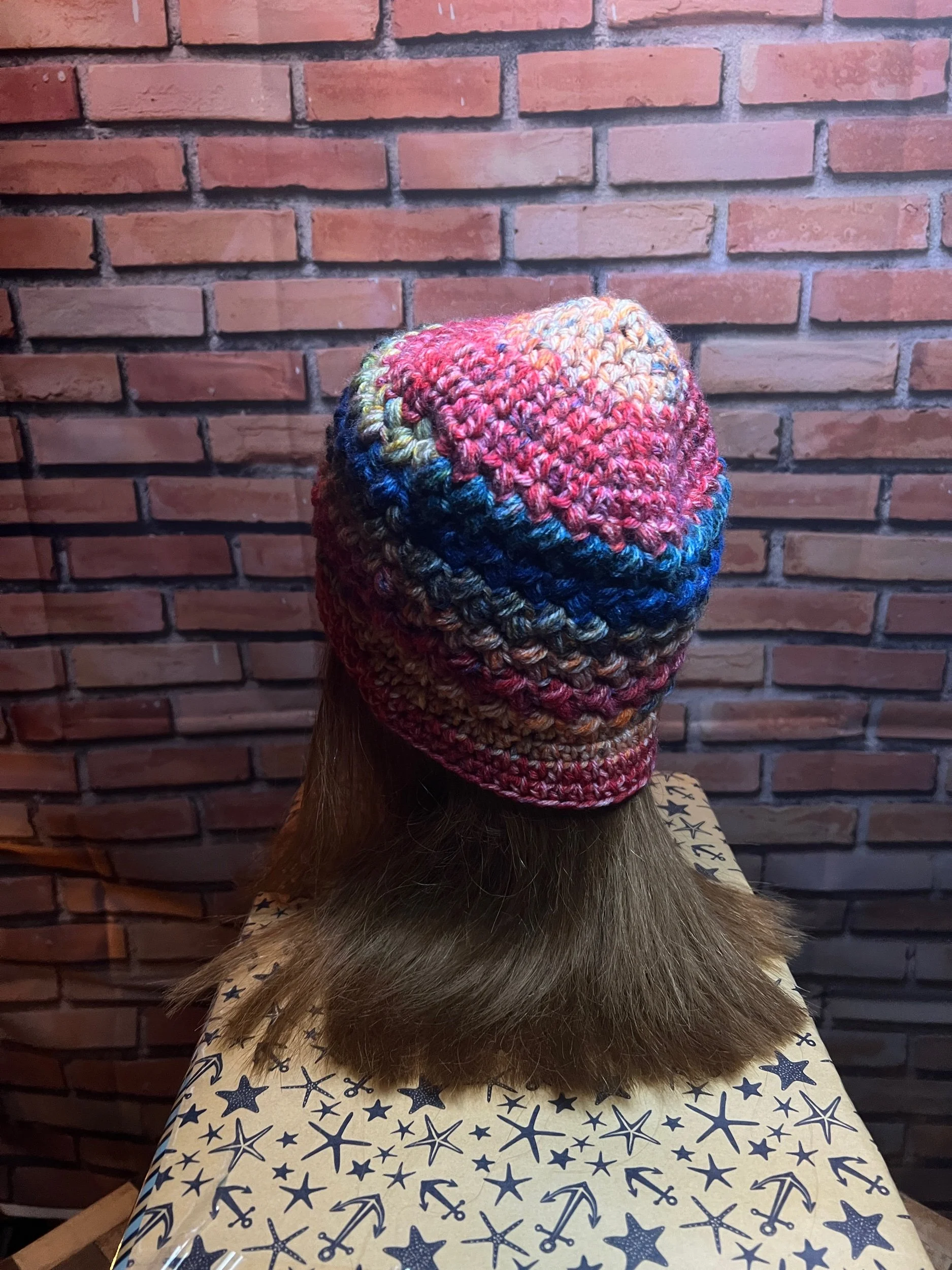 A scarf so massive it deserves its own zip code. Hand-crocheted by Anka from ultra-thick, premium wool blend yarn in earthy jewel tones that shift with the light. It’s plush, heavy, and warm enough to double as outerwear. Every stitch was laid with intention, giving it that sculptural, textured feel no machine could ever fake.