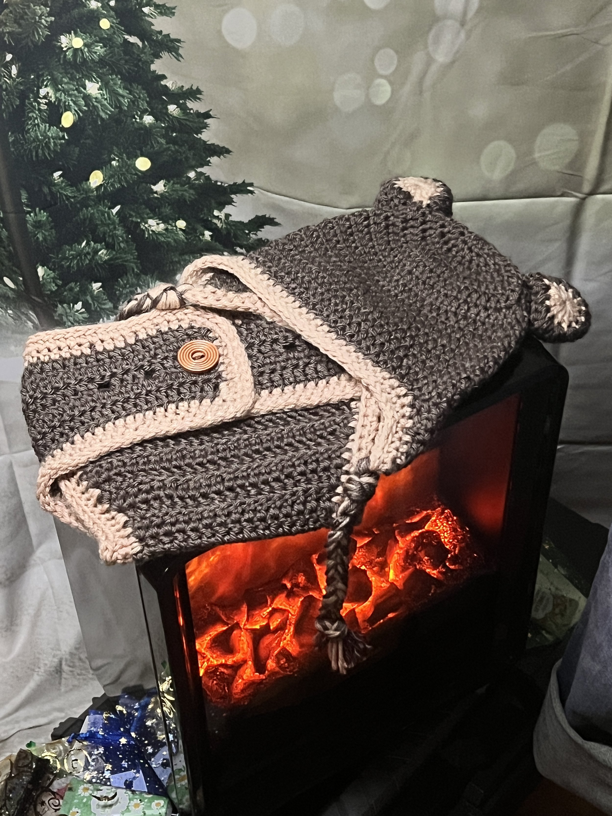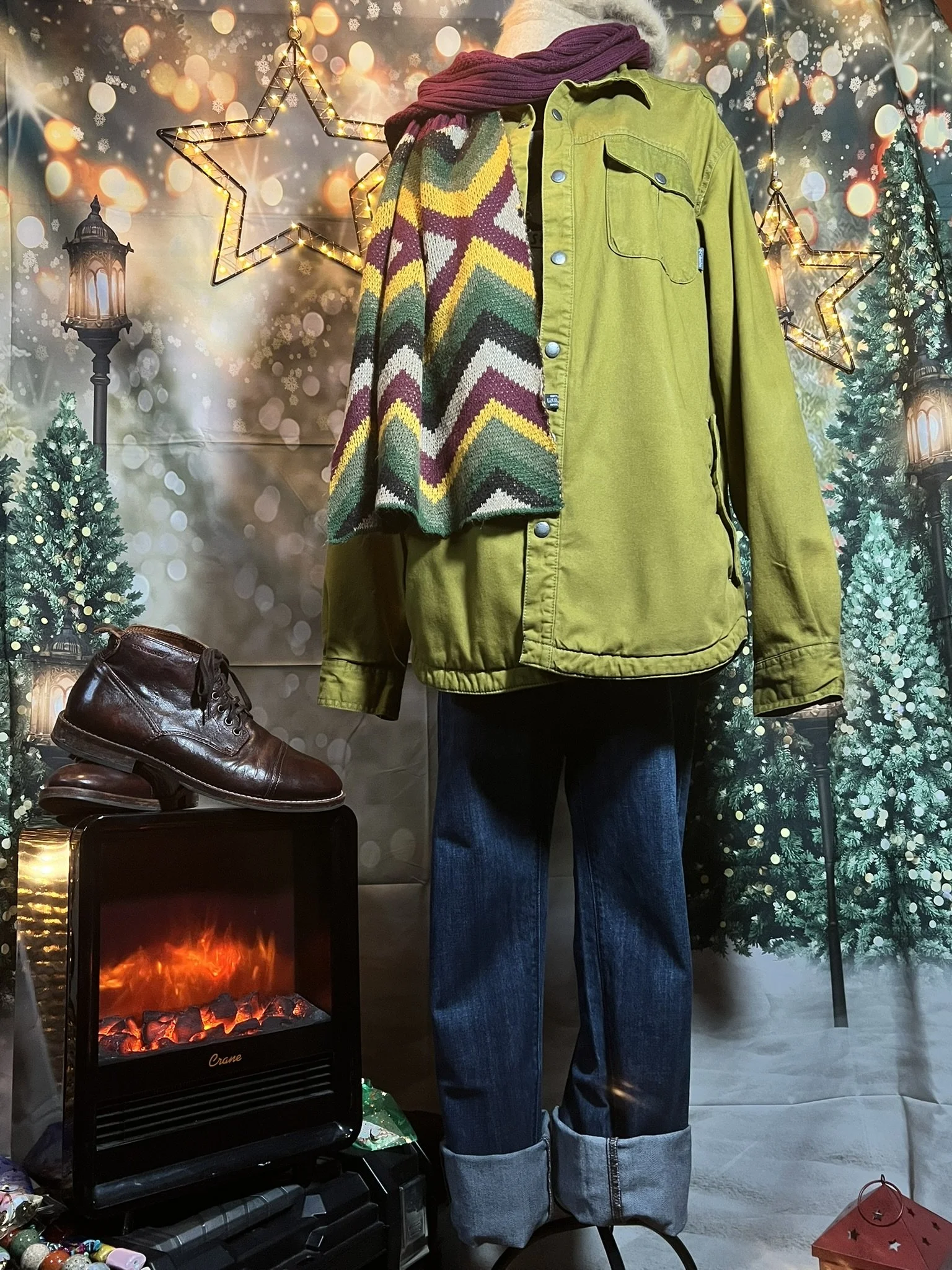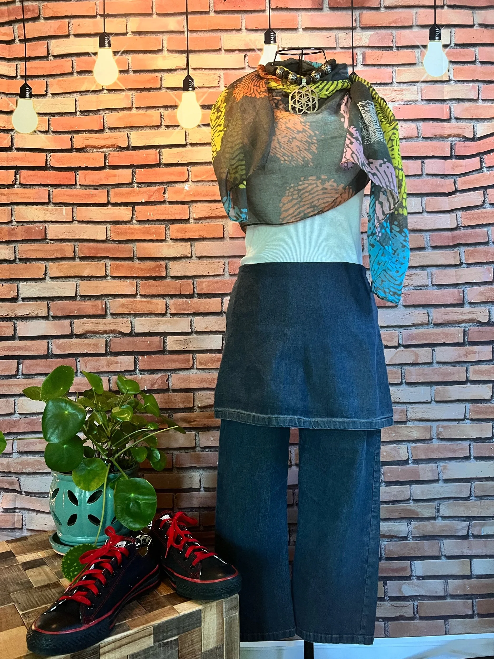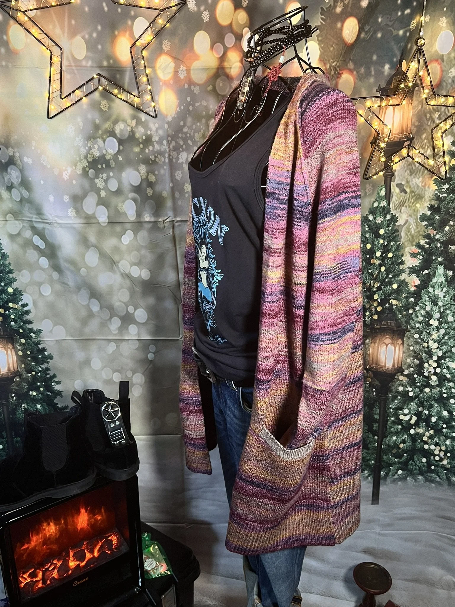 A scarf so massive it deserves its own zip code. Hand-crocheted by Anka from ultra-thick, premium wool blend yarn in earthy jewel tones that shift with the light. It’s plush, heavy, and warm enough to double as outerwear. Every stitch was laid with intention, giving it that sculptural, textured feel no machine could ever fake.