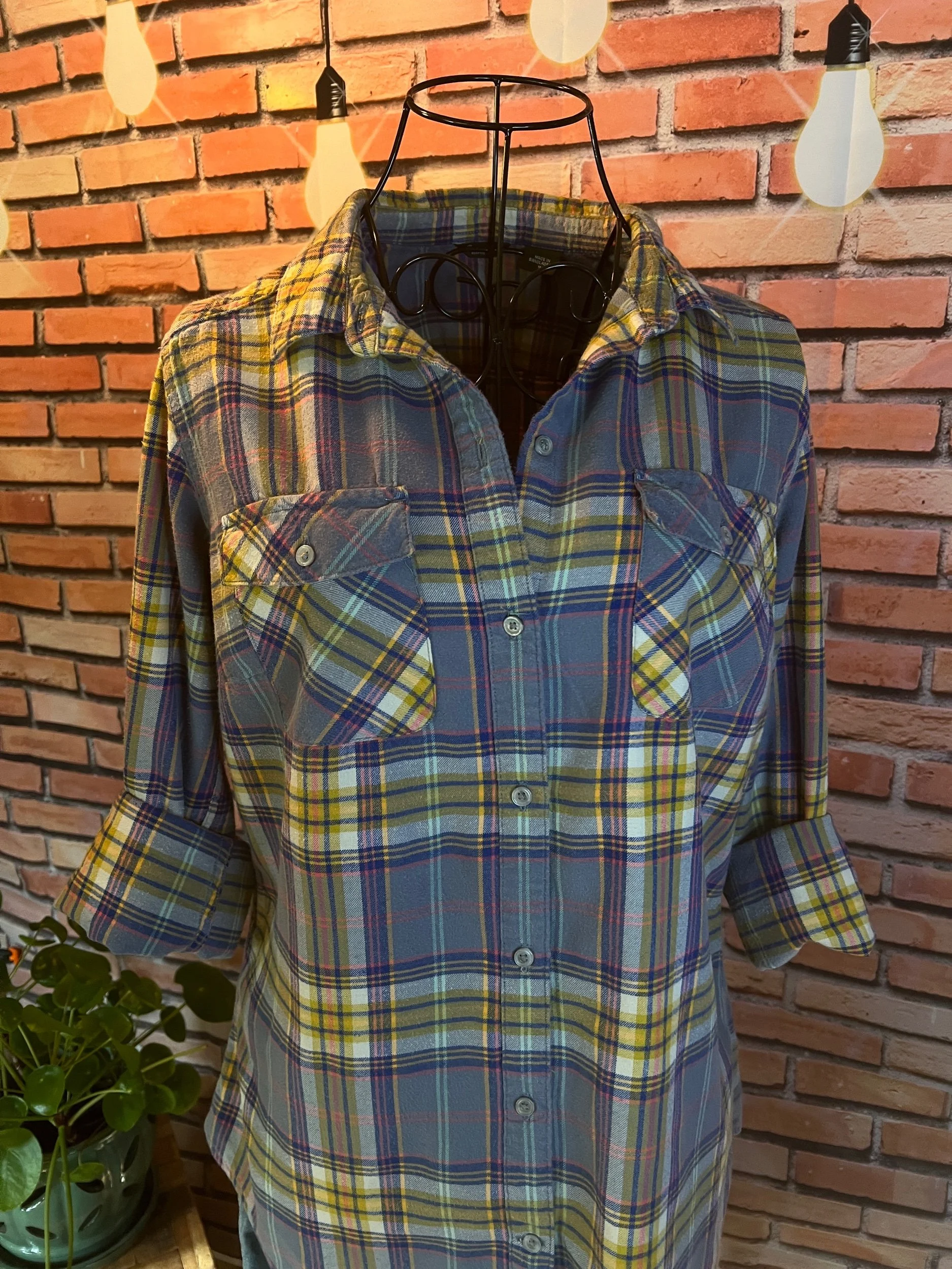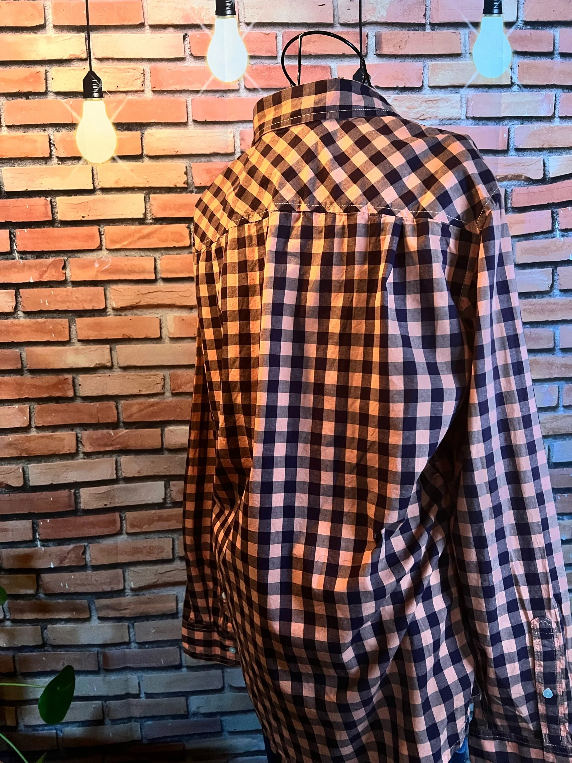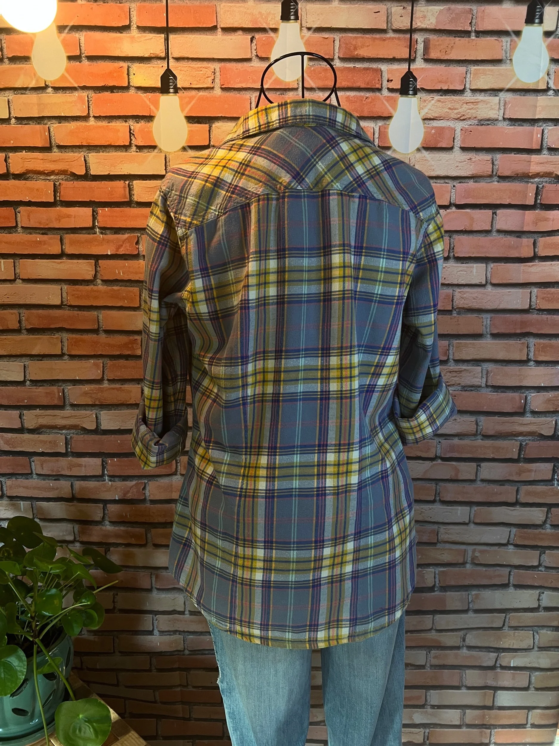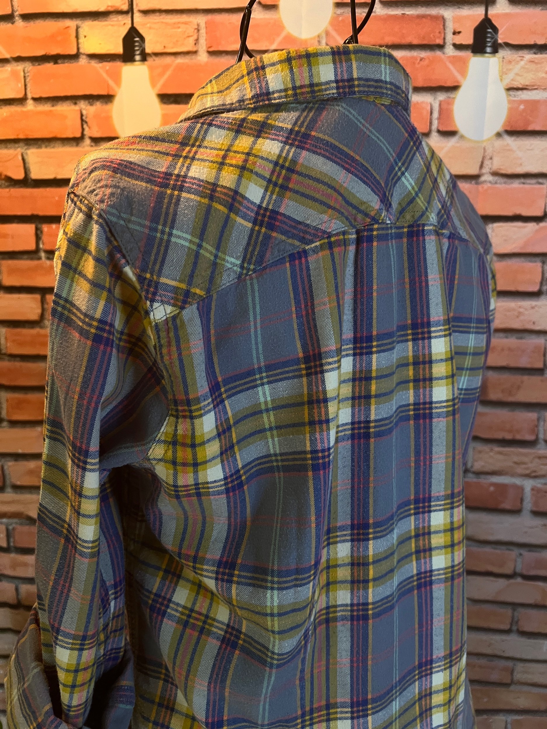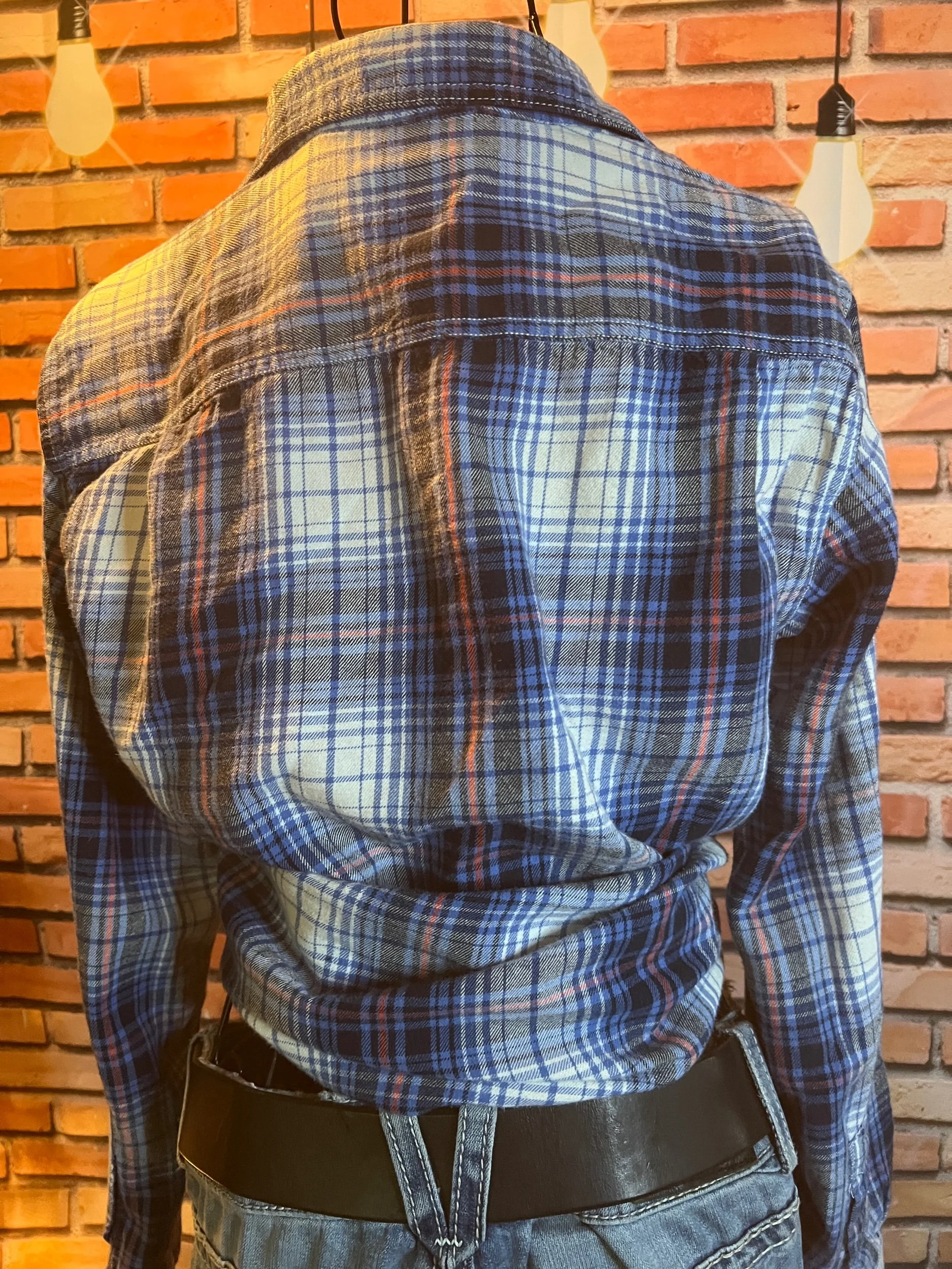 The shirt that says “I’m chill” but also “I ironed this, so don’t test me.” Lightweight woven cotton with soft plaid texture in muted indigo and tan tones — easy to dress up or layer over a tee for that classic Lucky Brand rocker feel. Freshly pressed, looks unworn, and feels like your favorite shirt from day one.
