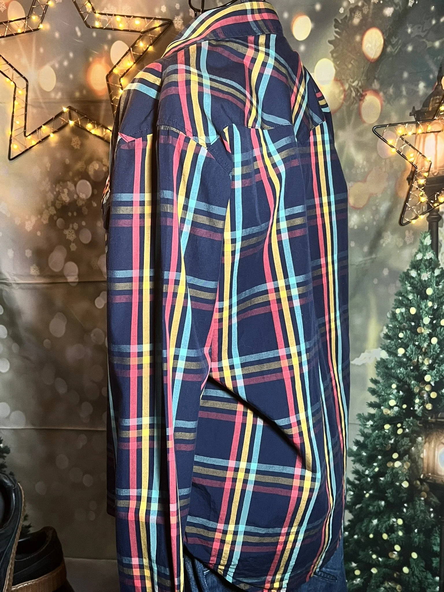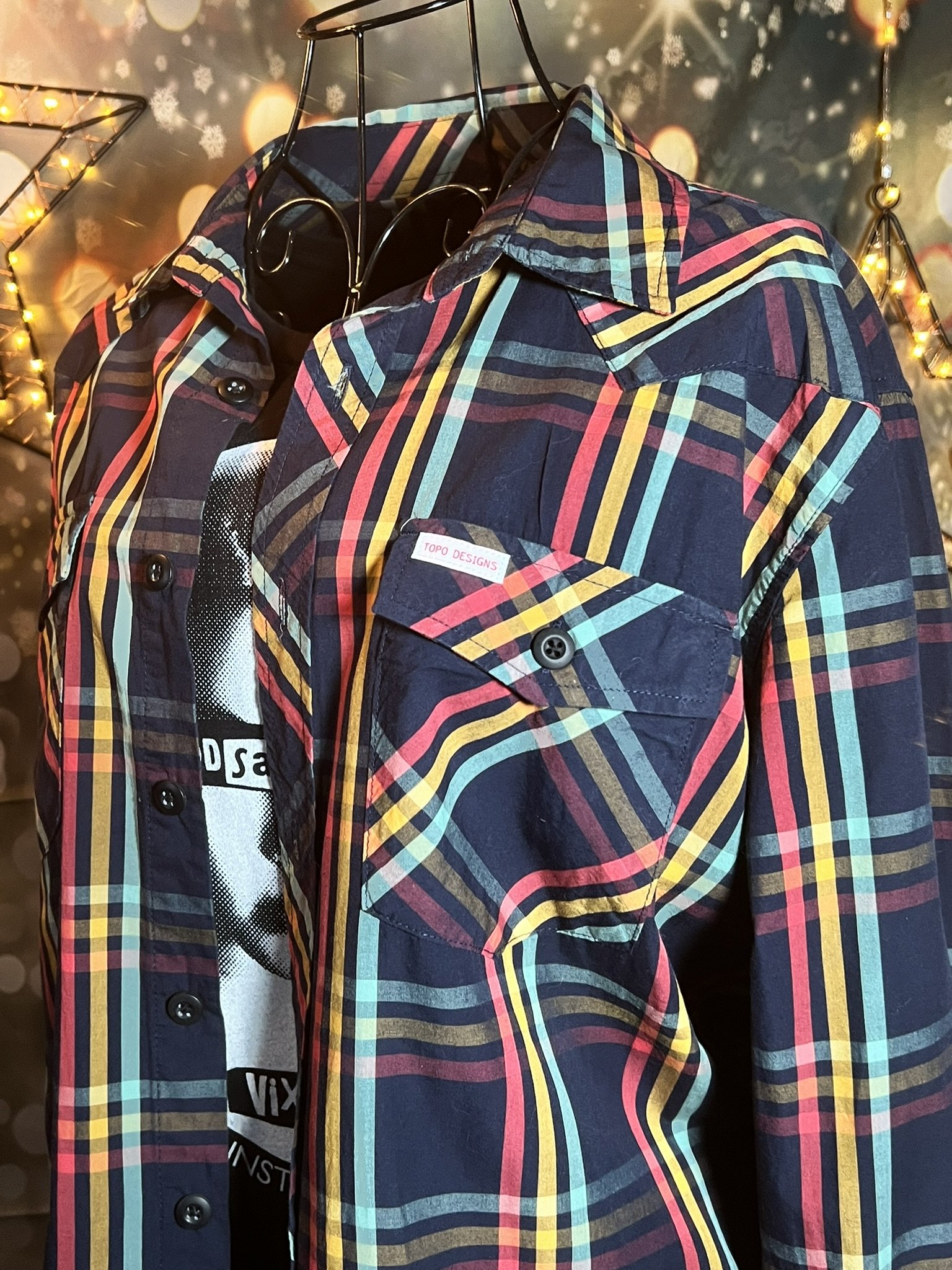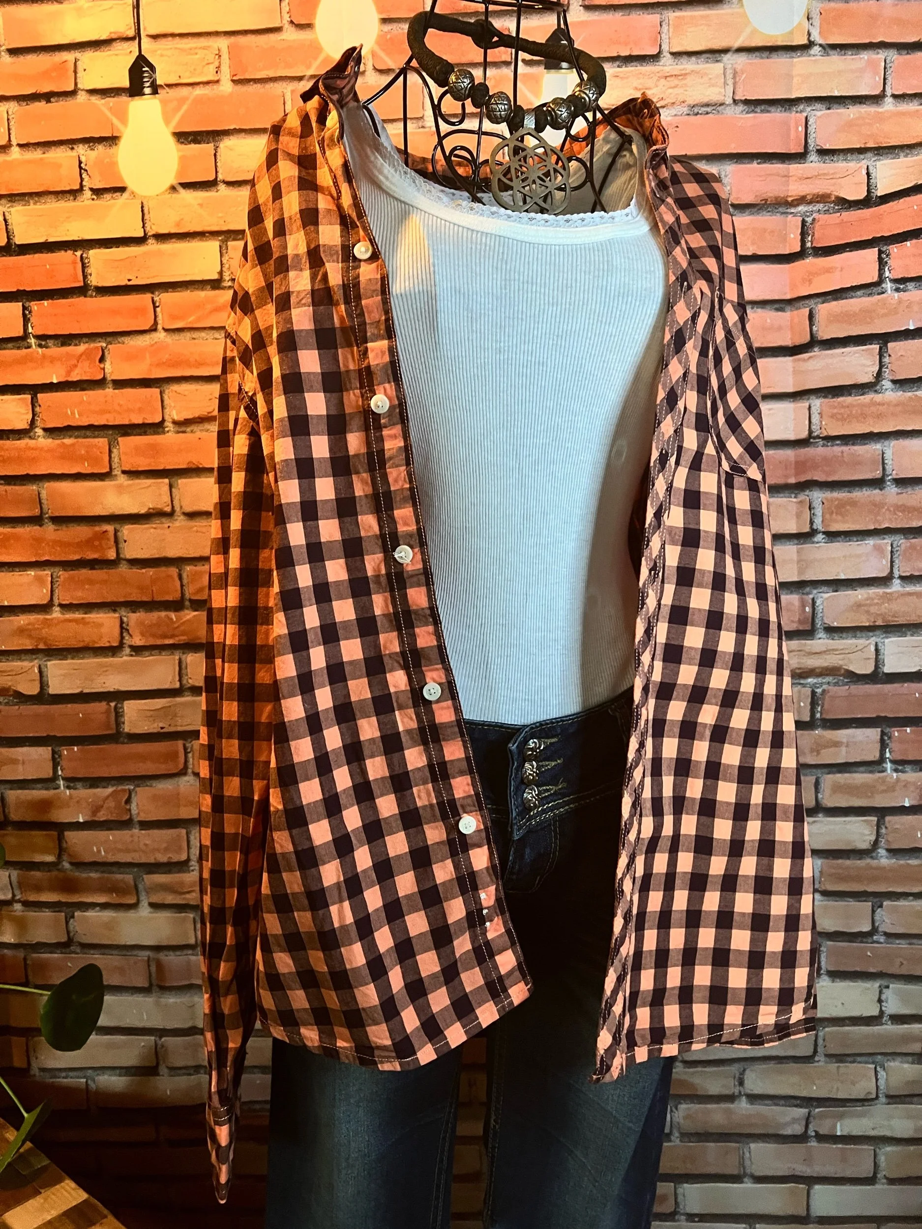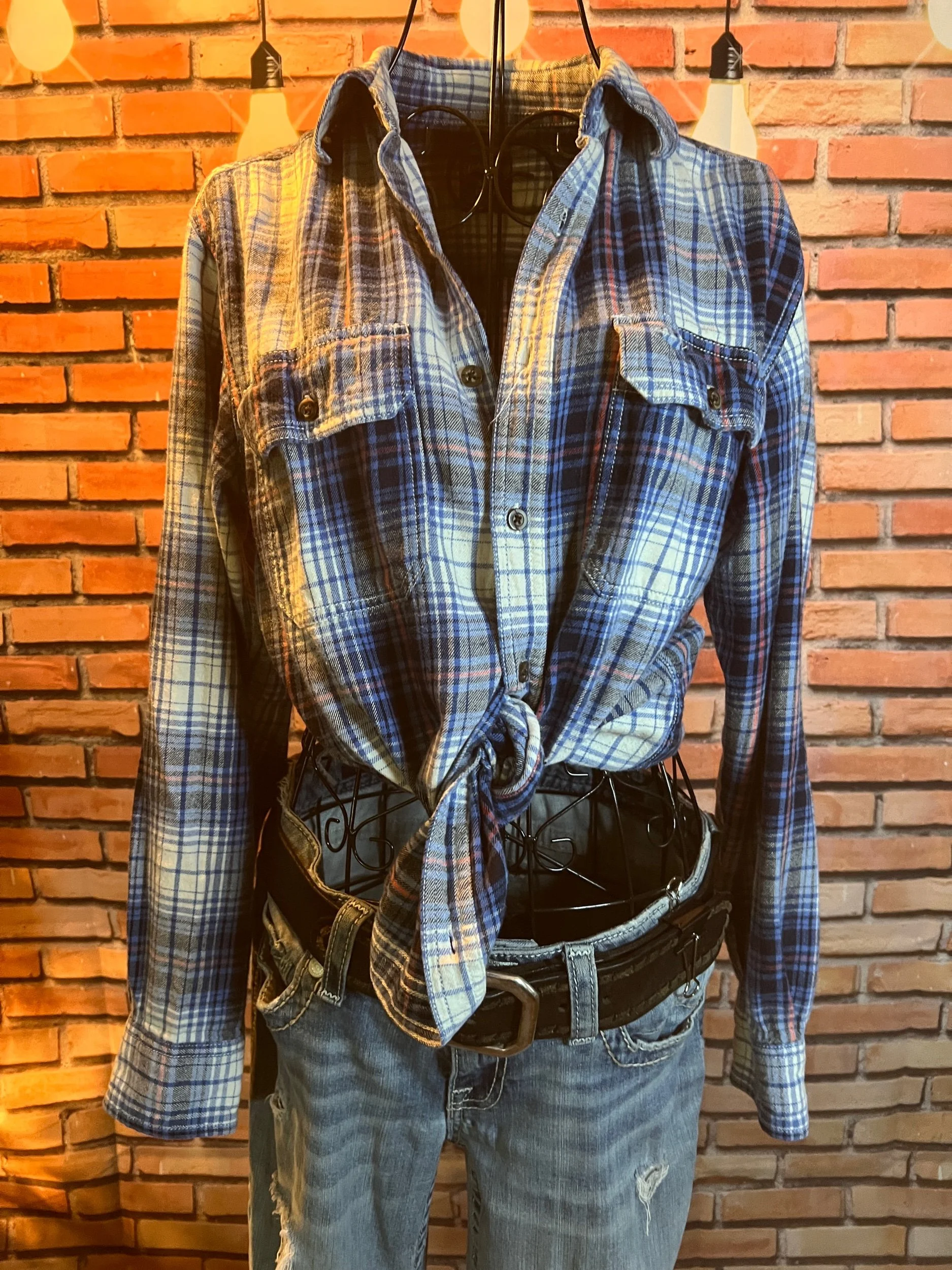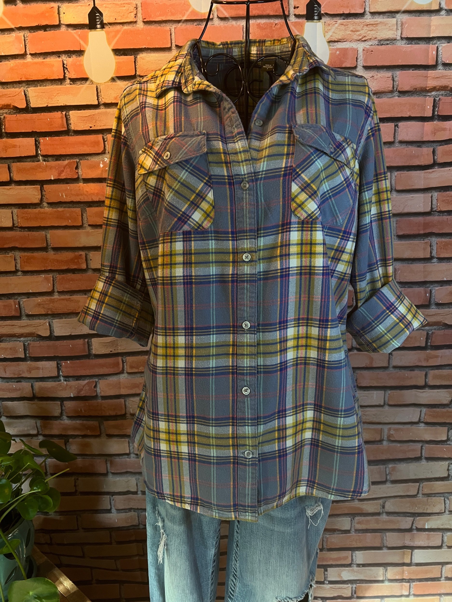 The shirt that says “I’m chill” but also “I ironed this, so don’t test me.” Lightweight woven cotton with soft plaid texture in muted indigo and tan tones — easy to dress up or layer over a tee for that classic Lucky Brand rocker feel. Freshly pressed, looks unworn, and feels like your favorite shirt from day one.