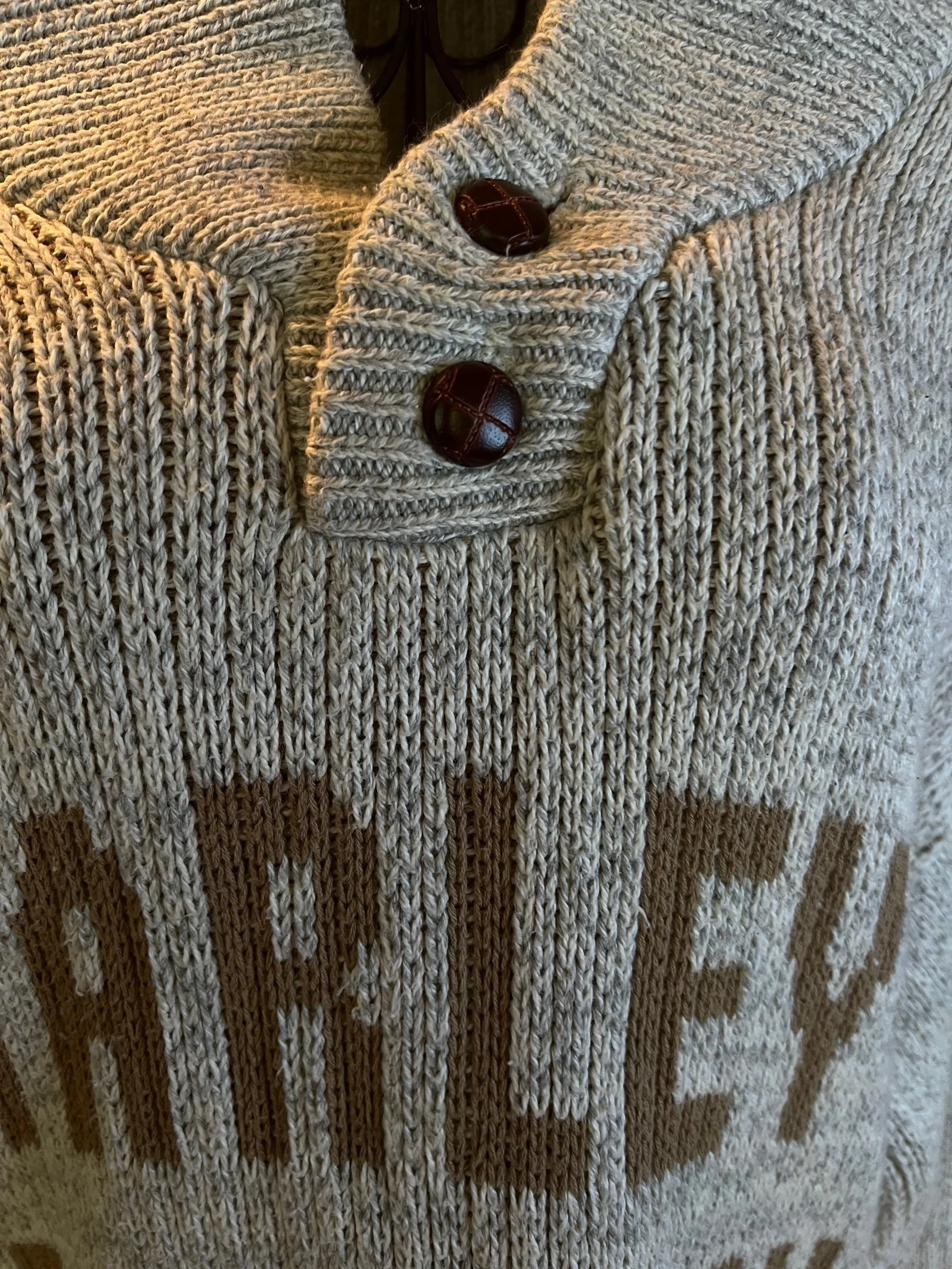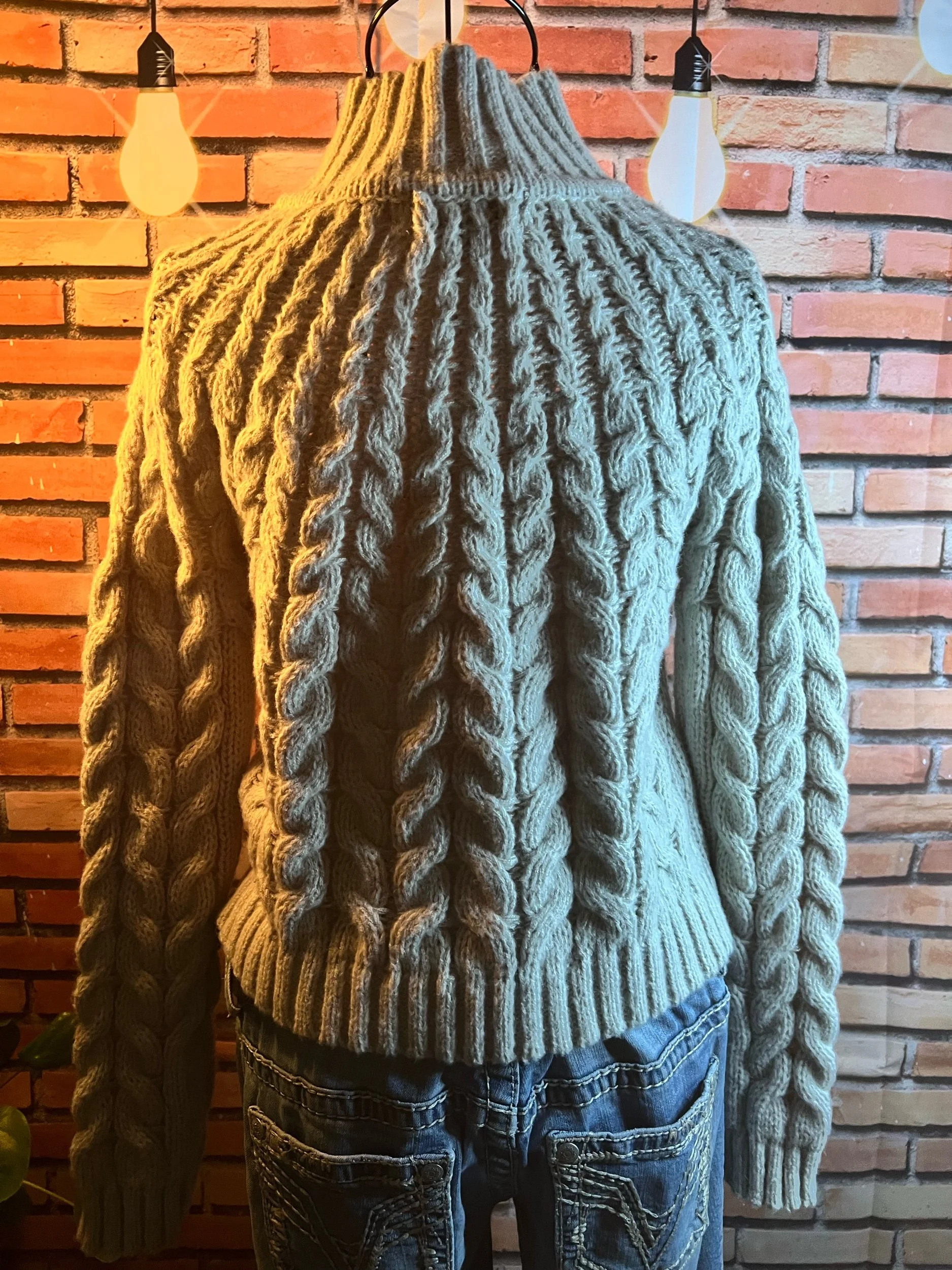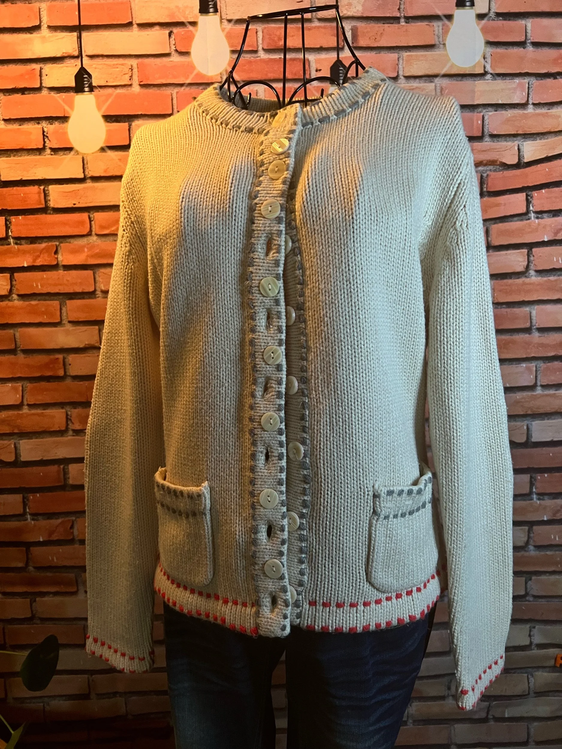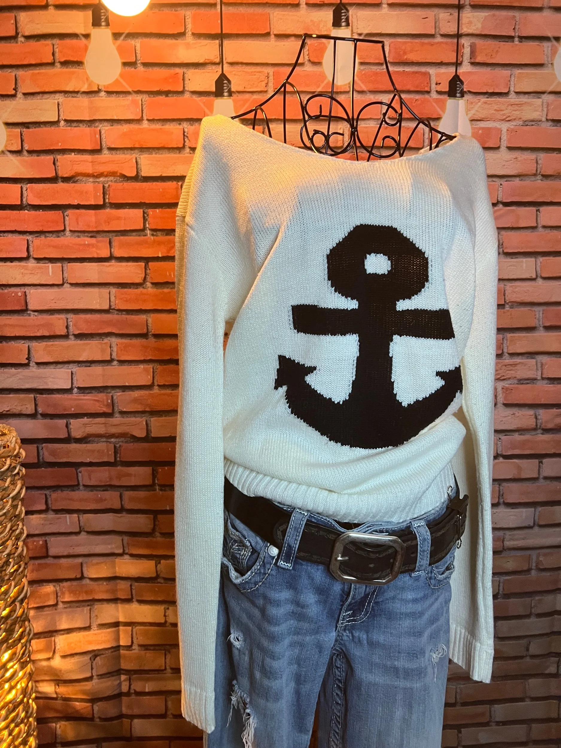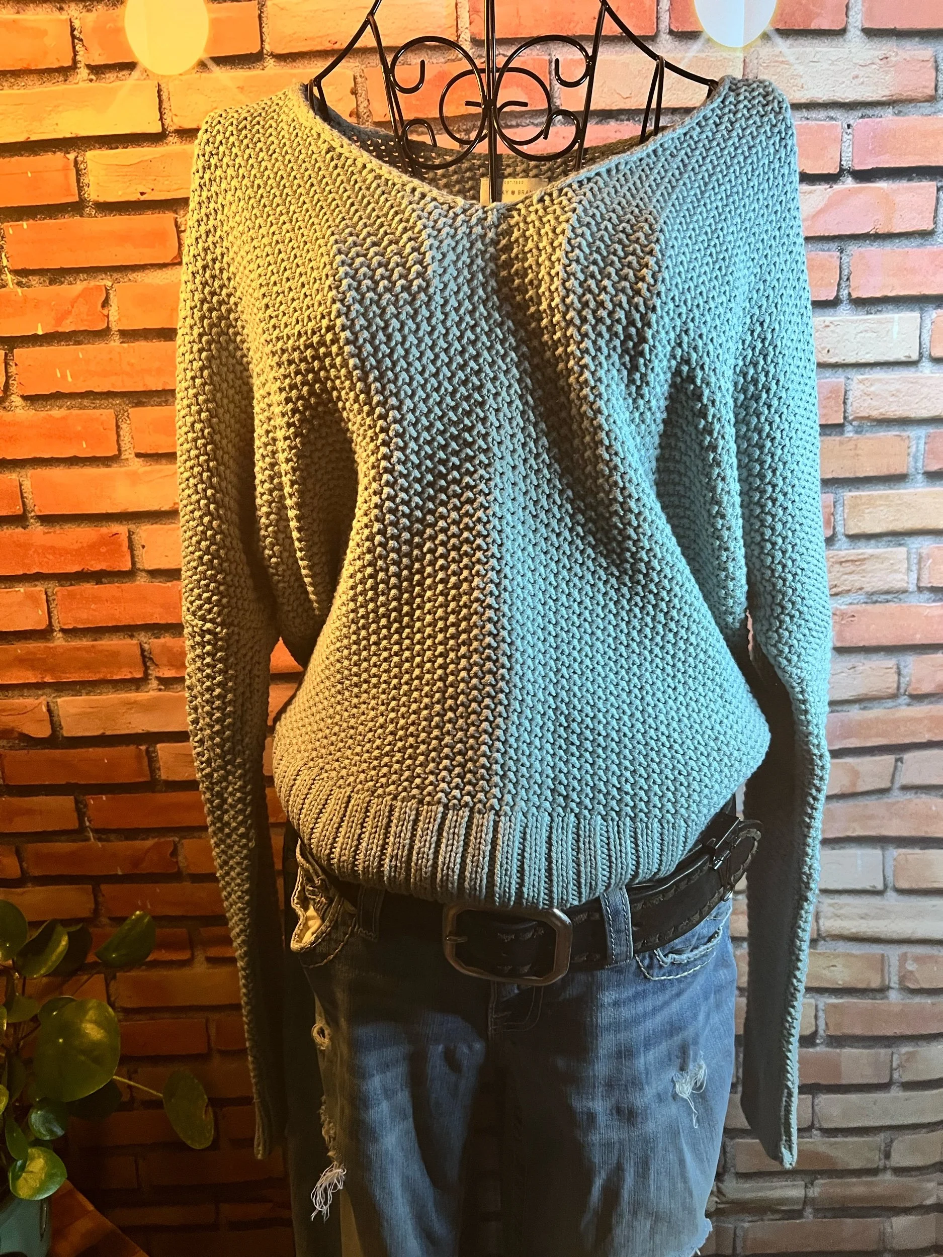 Fresh off the retail rack with tags still attached ($49.95), this 100% cotton sweater nails that balance between cozy and clean-cut. Soft natural tone, relaxed knit texture, and that AEO quality that holds up through actual life—not just selfies.