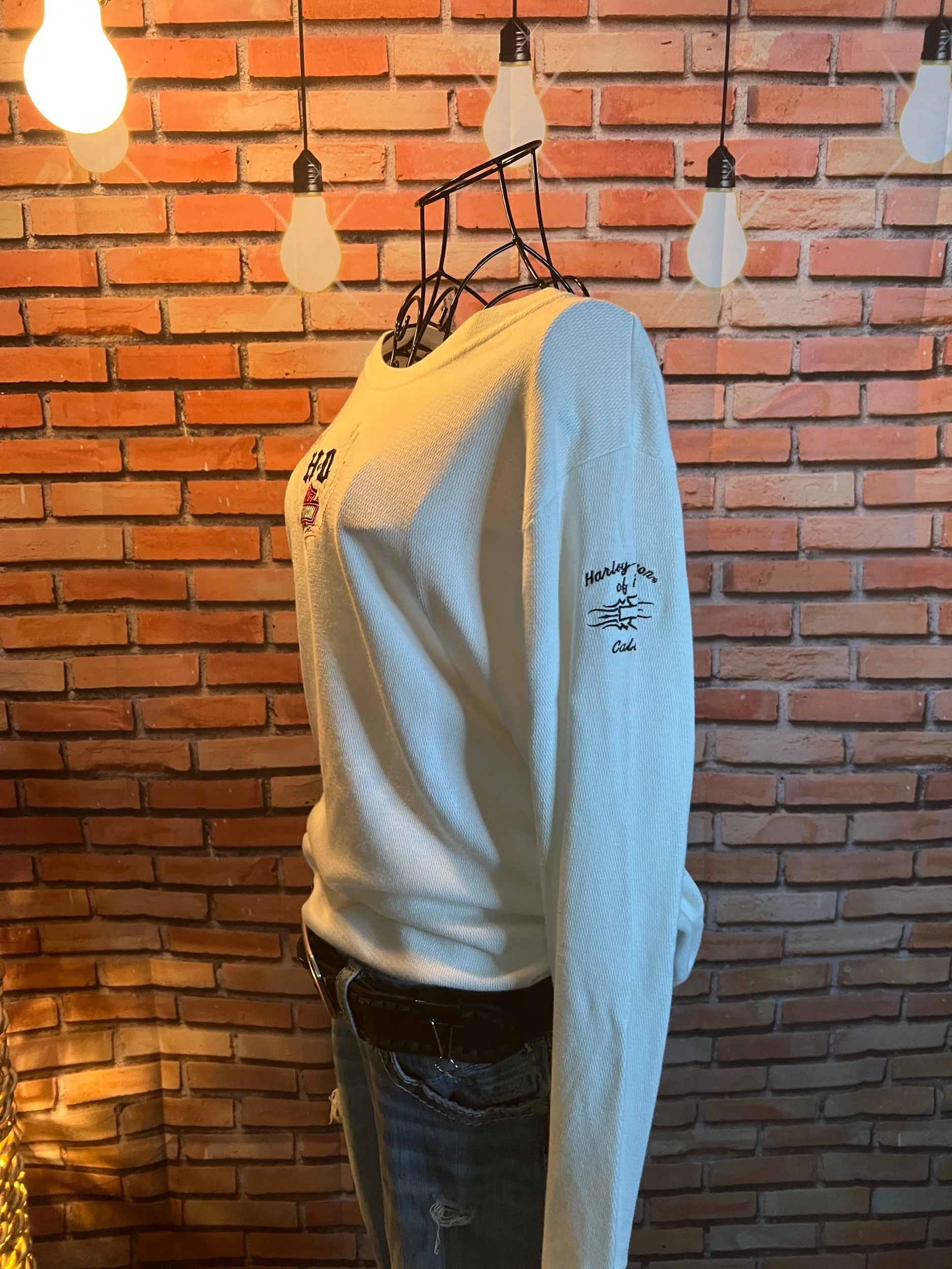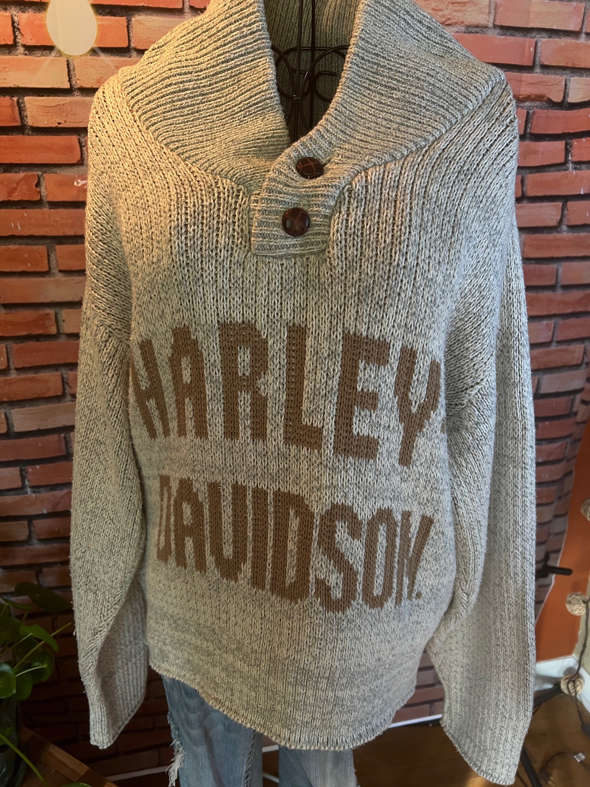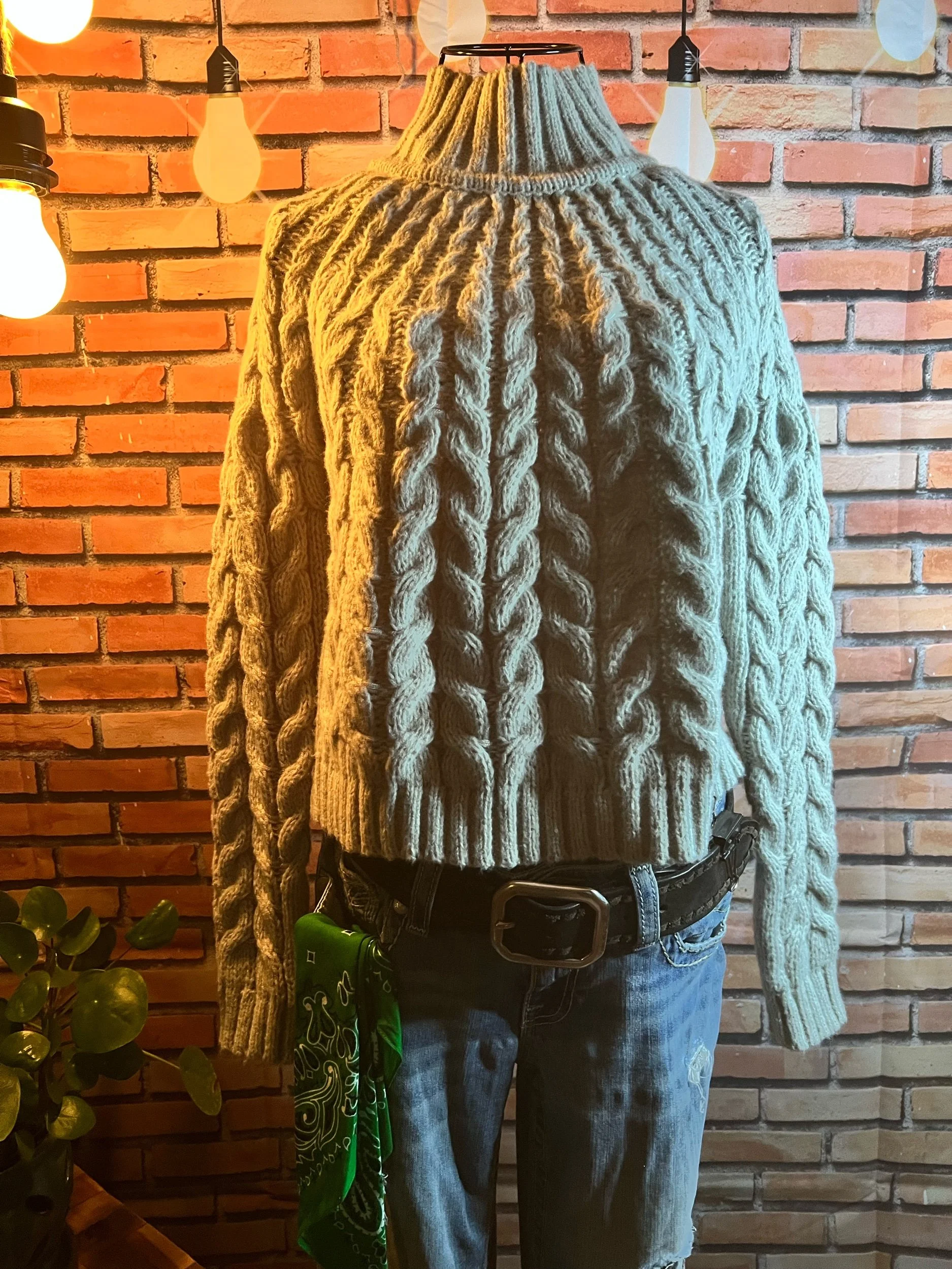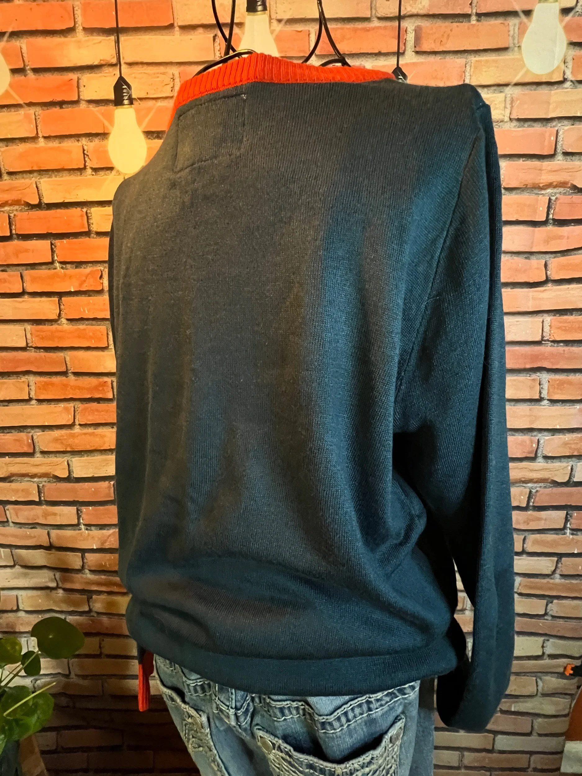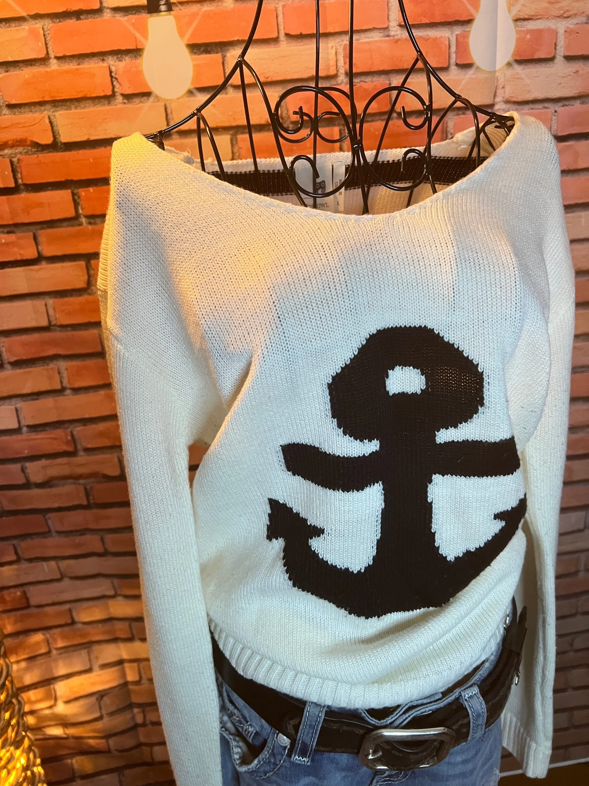 Fresh off the retail rack with tags still attached ($49.95), this 100% cotton sweater nails that balance between cozy and clean-cut. Soft natural tone, relaxed knit texture, and that AEO quality that holds up through actual life—not just selfies.