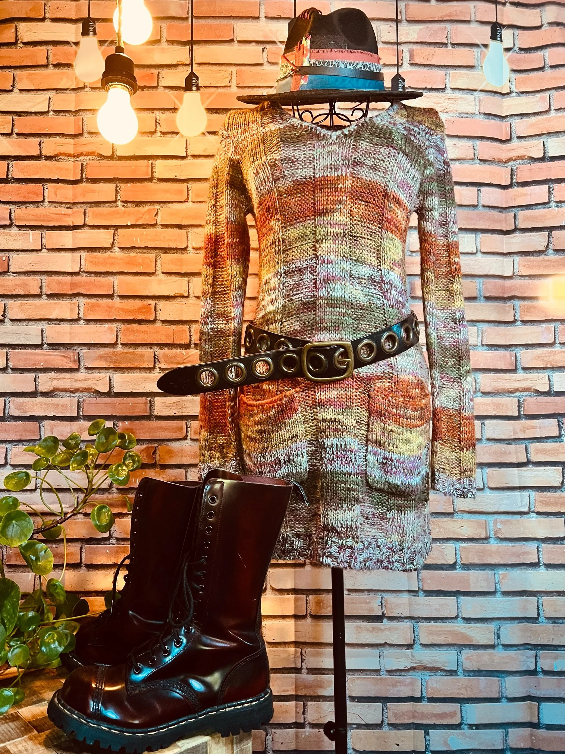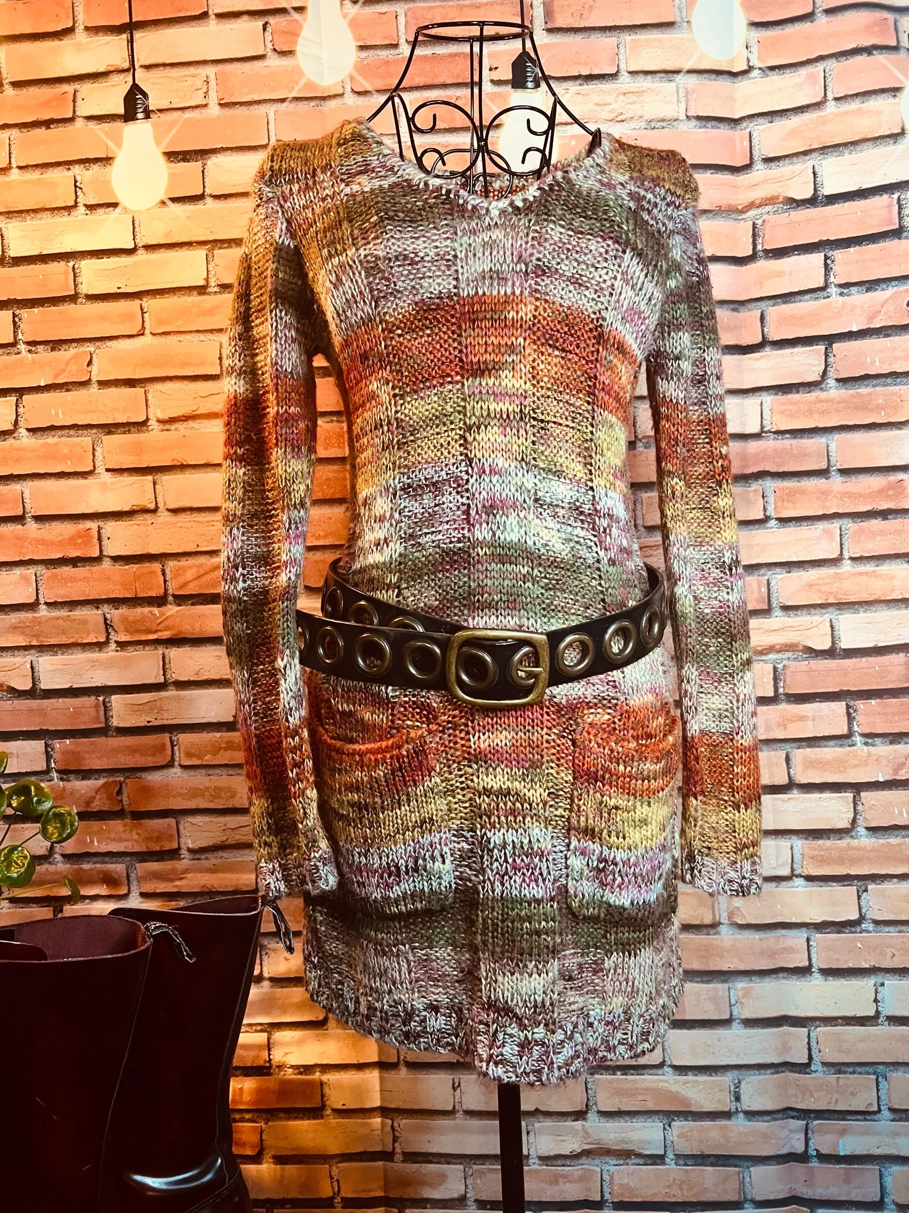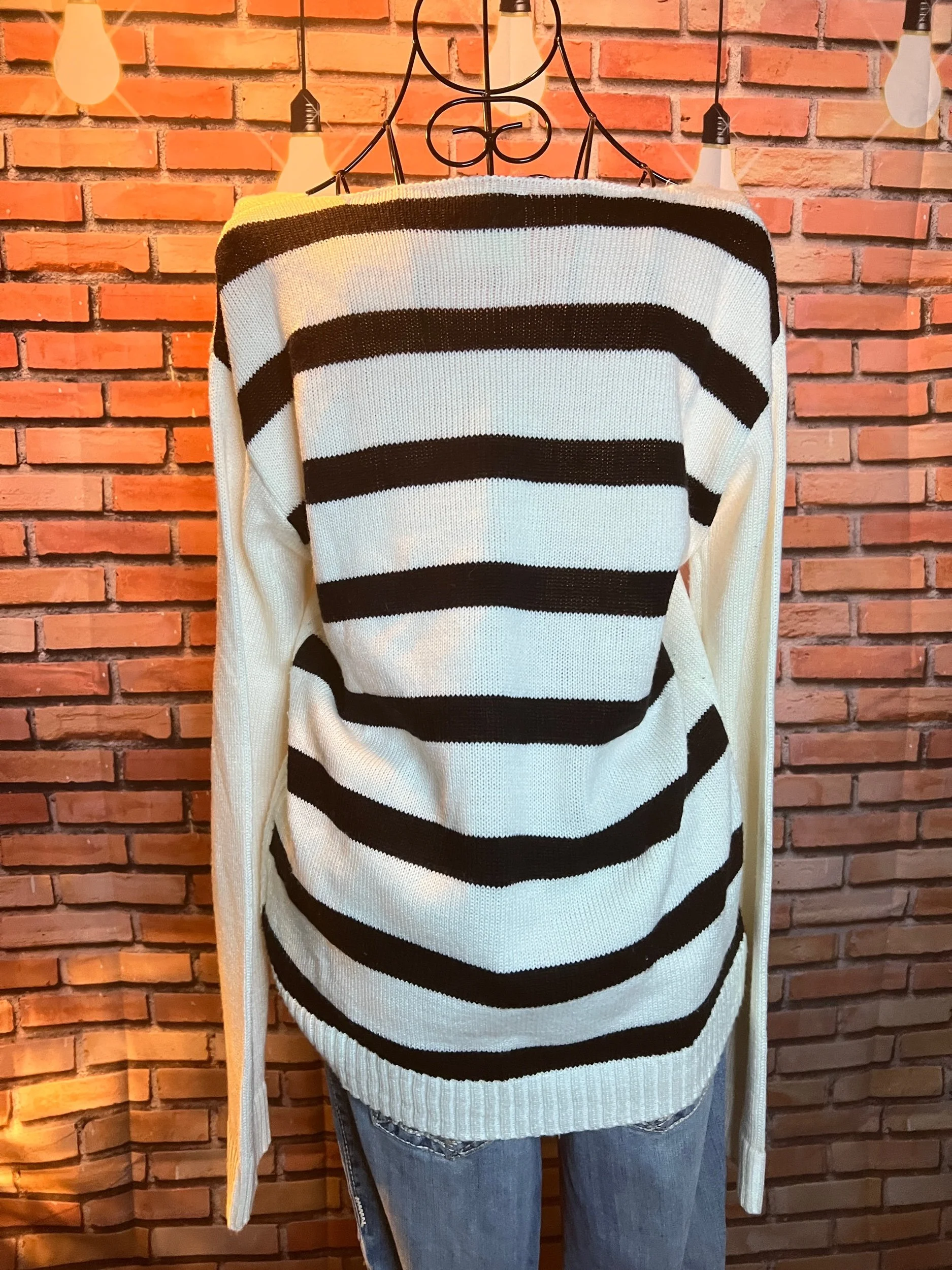 A clean, structured, hourglass-shaped shift dress masquerading as “simple.” Brown + ivory stripes, mid-weight knit, and a cut that actually respects your hips instead of fighting them. New with tags. Side slit for movement, attitude optional. Style it over jeans, with a belt, or just let it do its own thing.