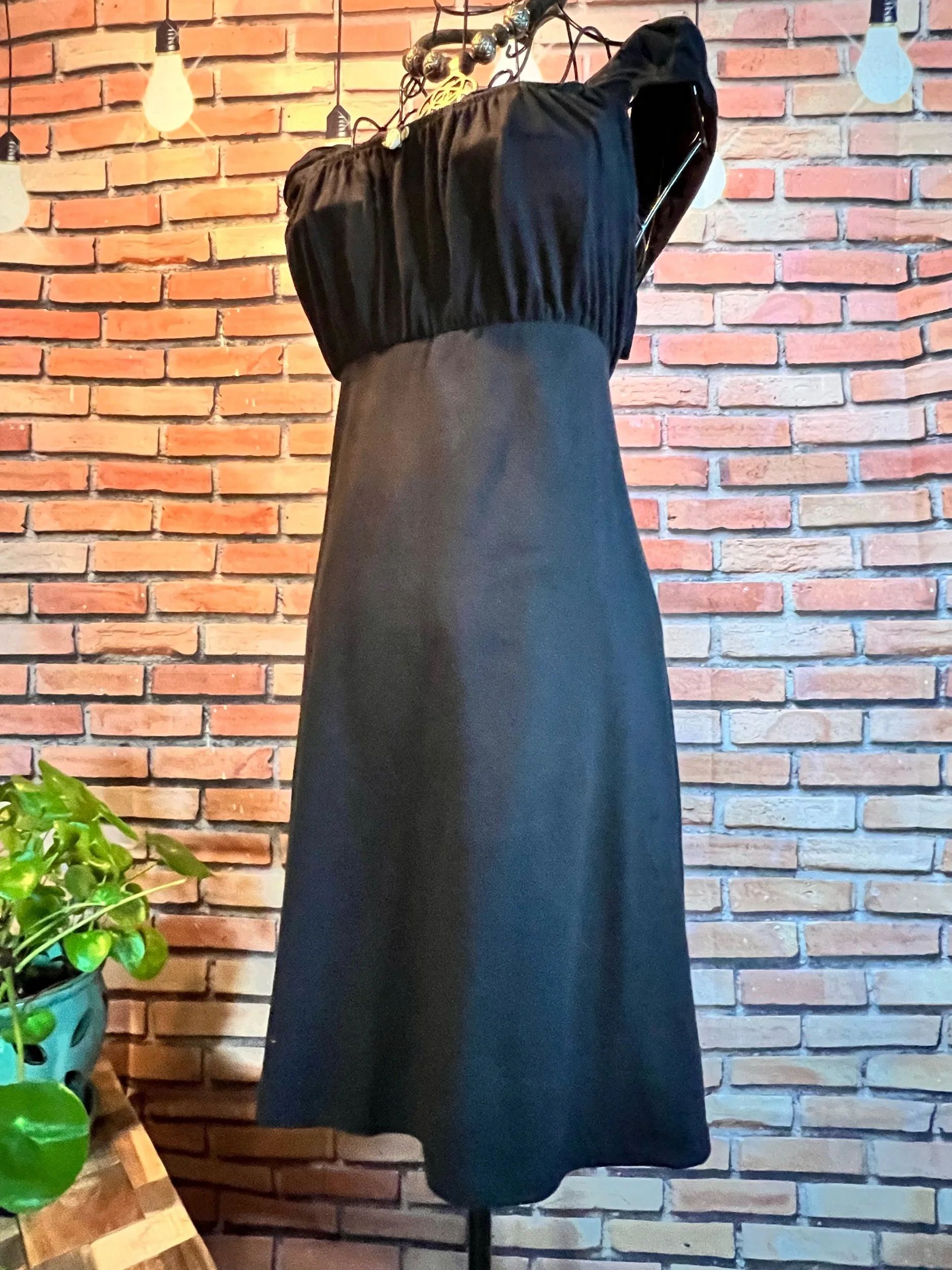 A bold, art-print dress with serious personality. Medium-weight, structured poly-elastane blend that feels almost like soft chambray but has stretch and body. Not flimsy. Not thin. A true statement dress you can style with a heavy belt, leggings, or boots — BayPunk Rag-House style.