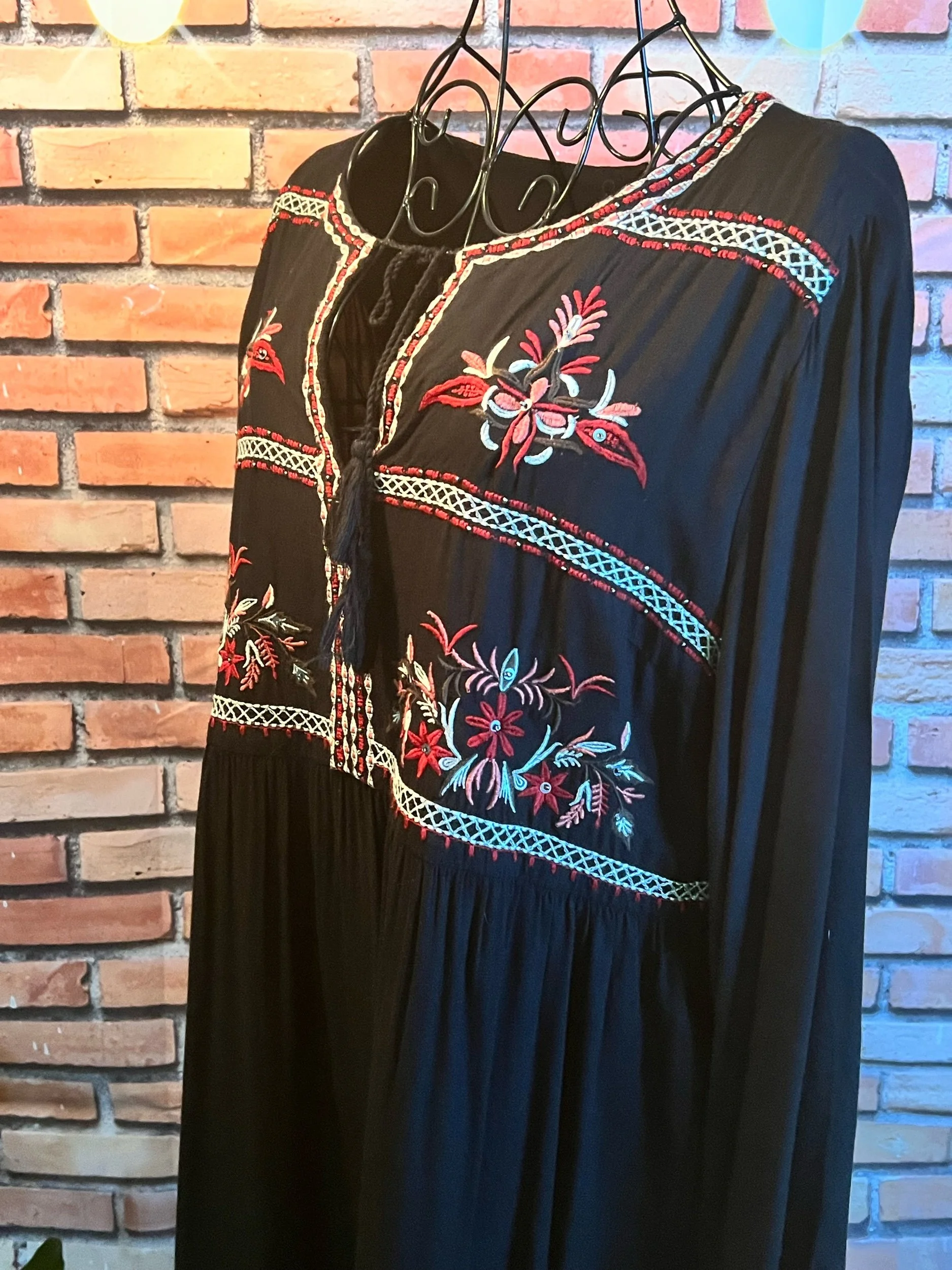 Soft sun-yellow gauze covered in painterly pansies — light, bright, and unapologetically feminine with a wild edge. Think grandma’s garden, but she swears and rides a motorcycle. Oversized and flowy, perfect for layering or draping. Excellent condition.