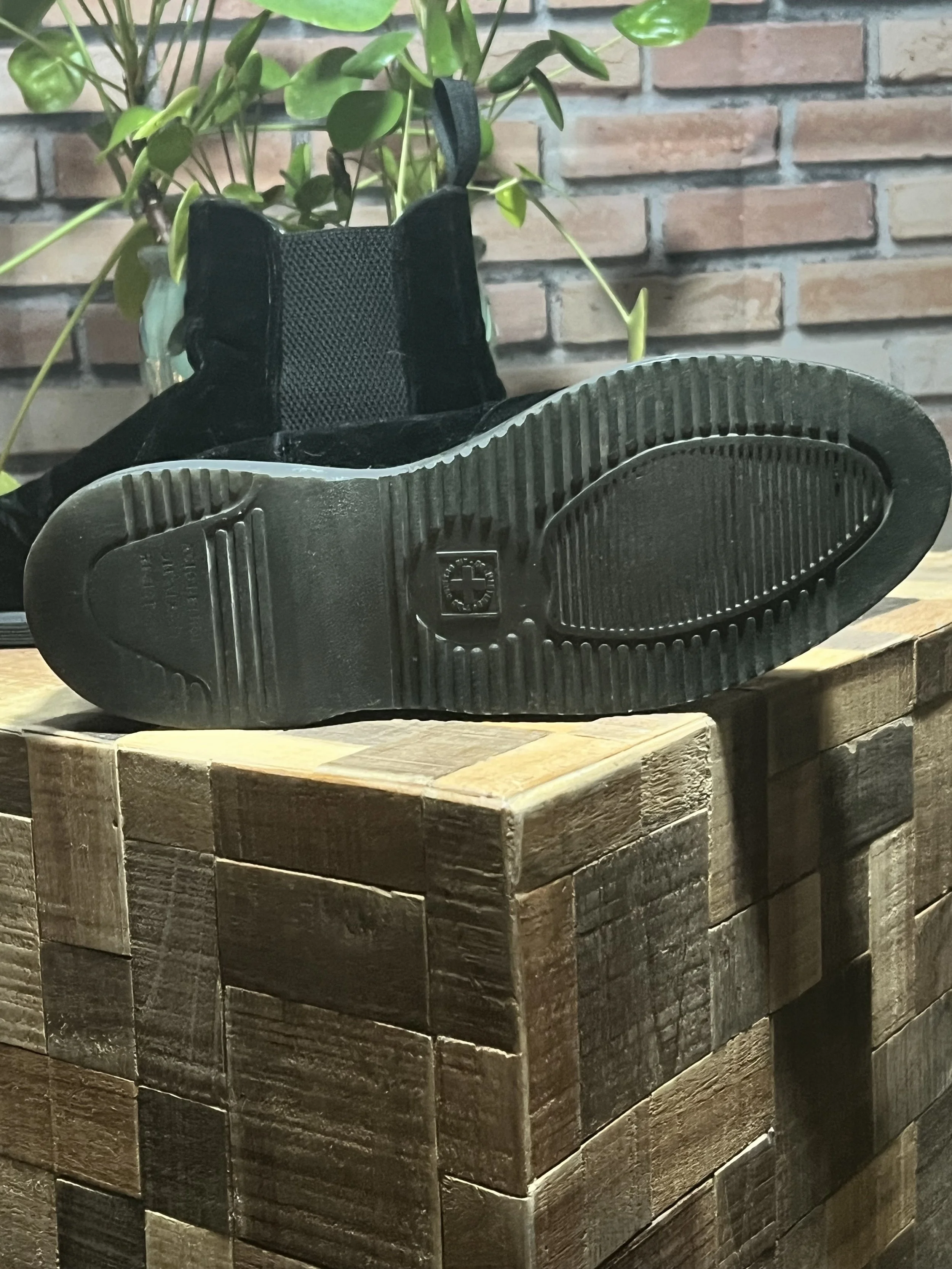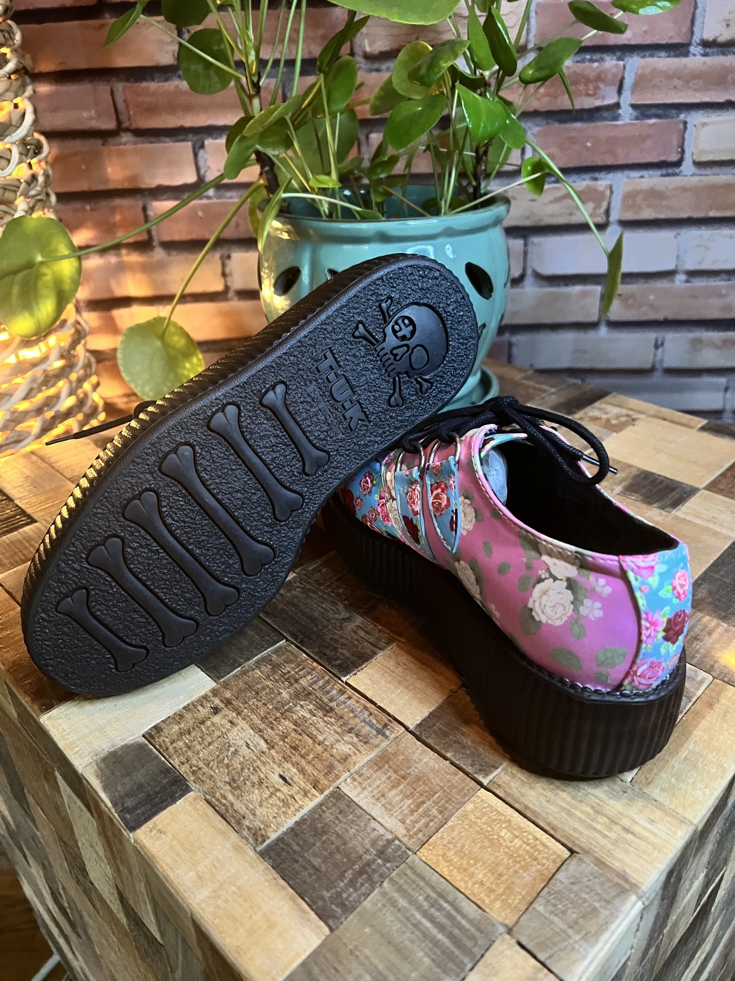 Chunky creeper sole for added height and edgy appeal.
