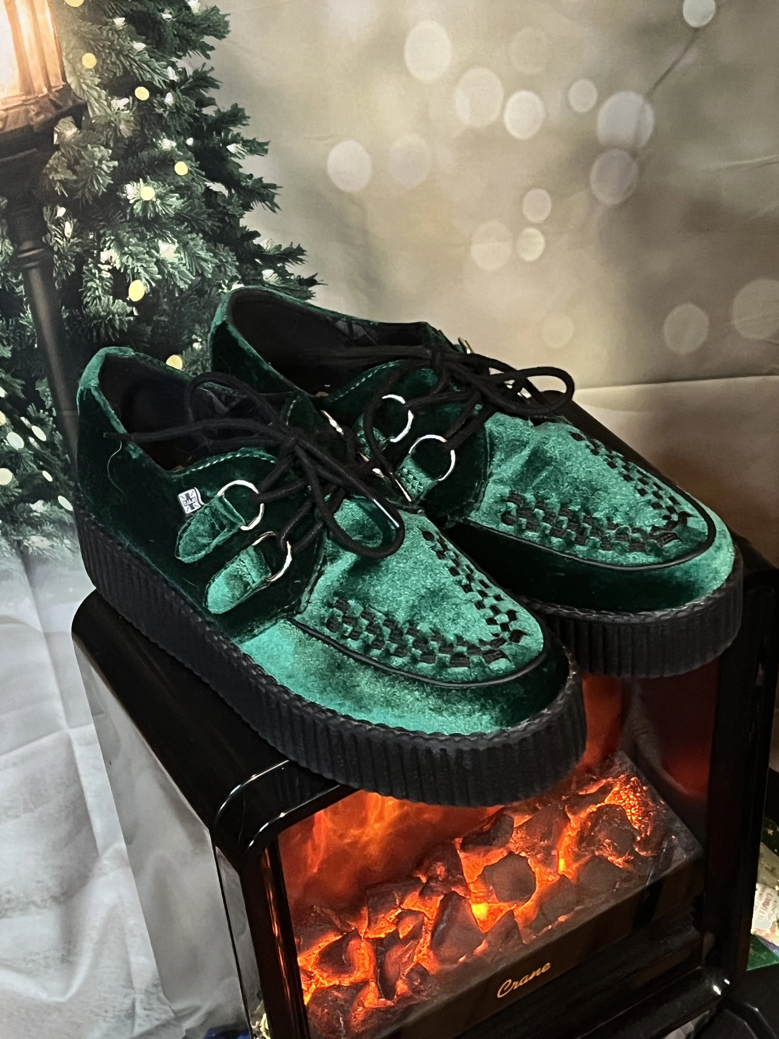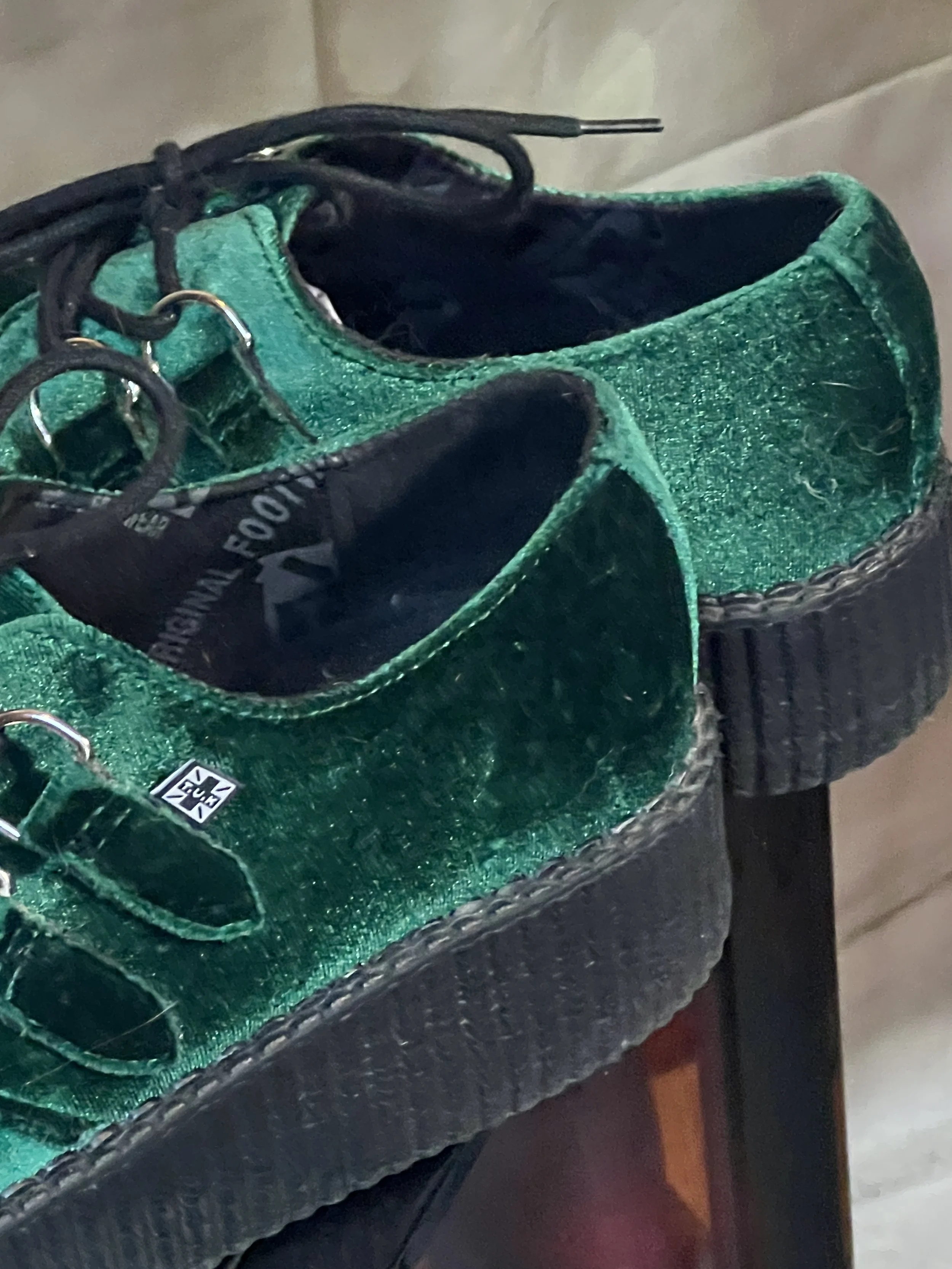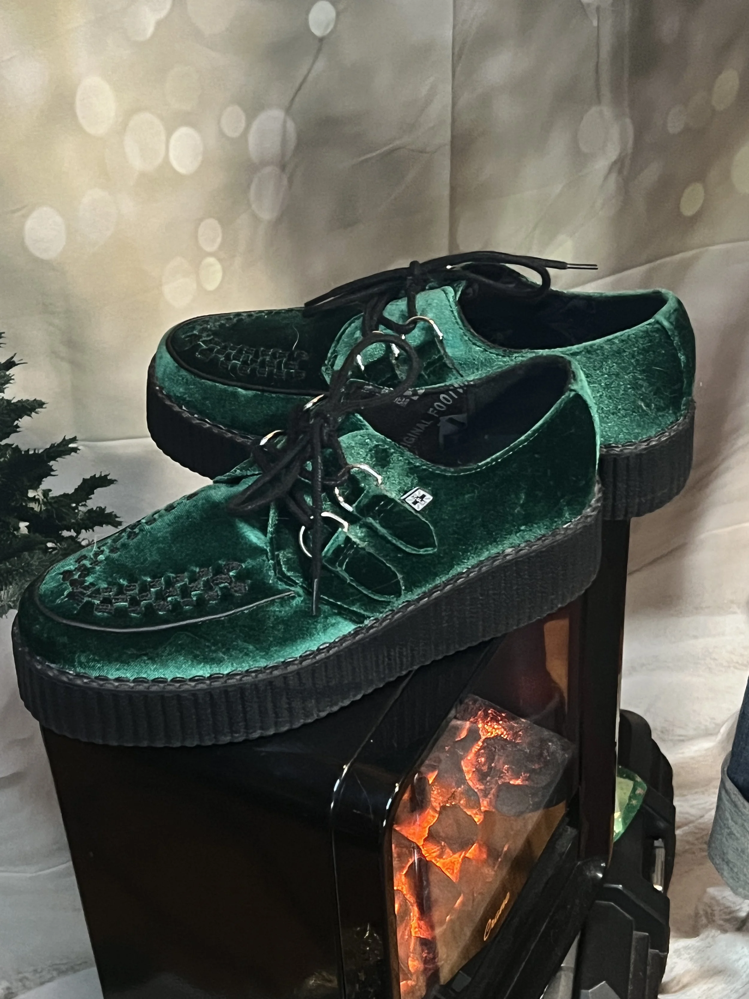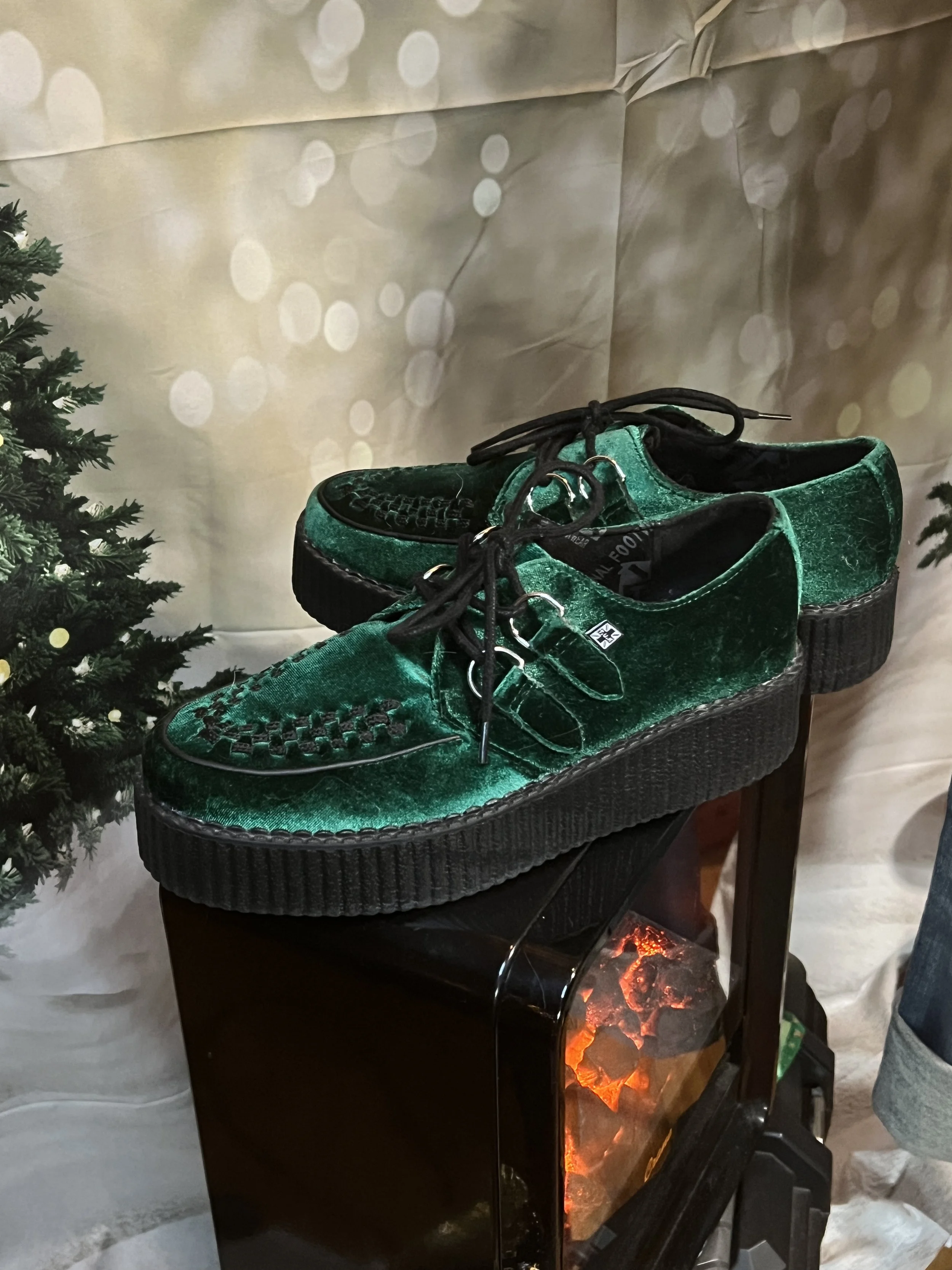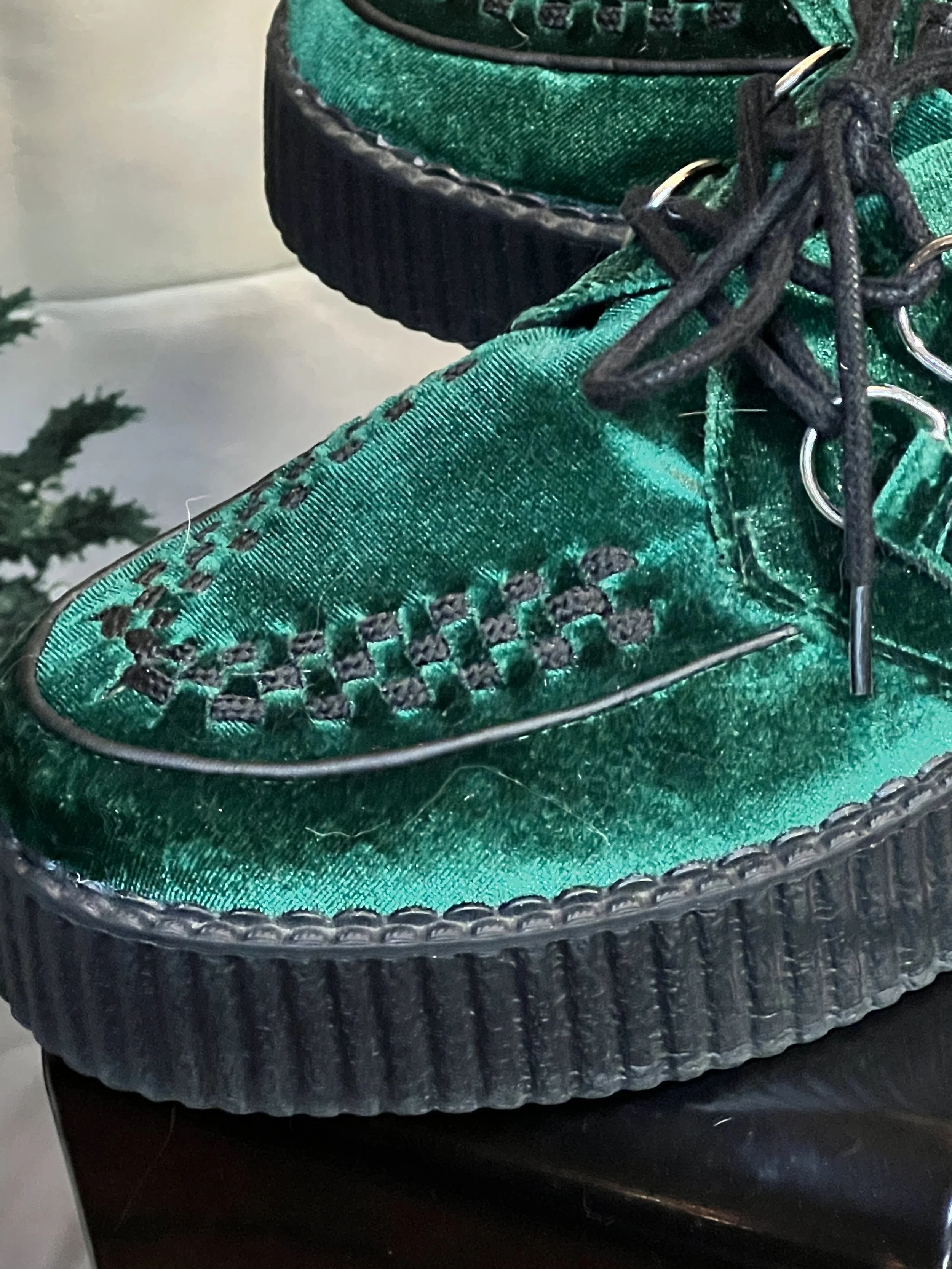 Elevate your style with T.U.K.'s Emerald Green Velvet Creepers, a perfect blend of retro charm and modern edge.
