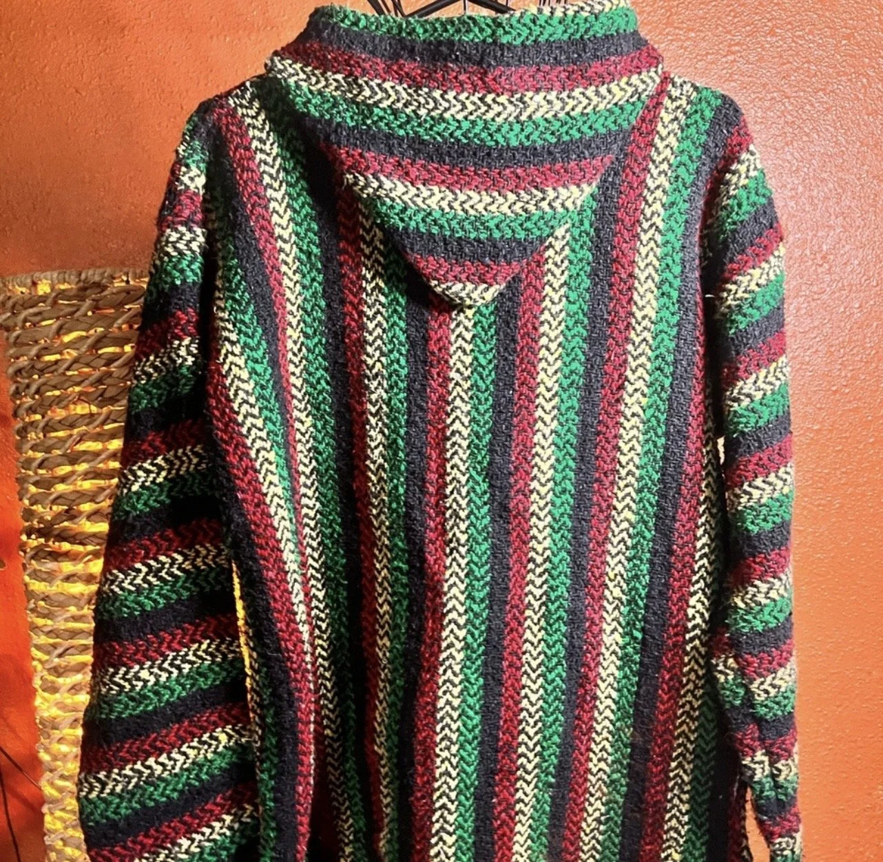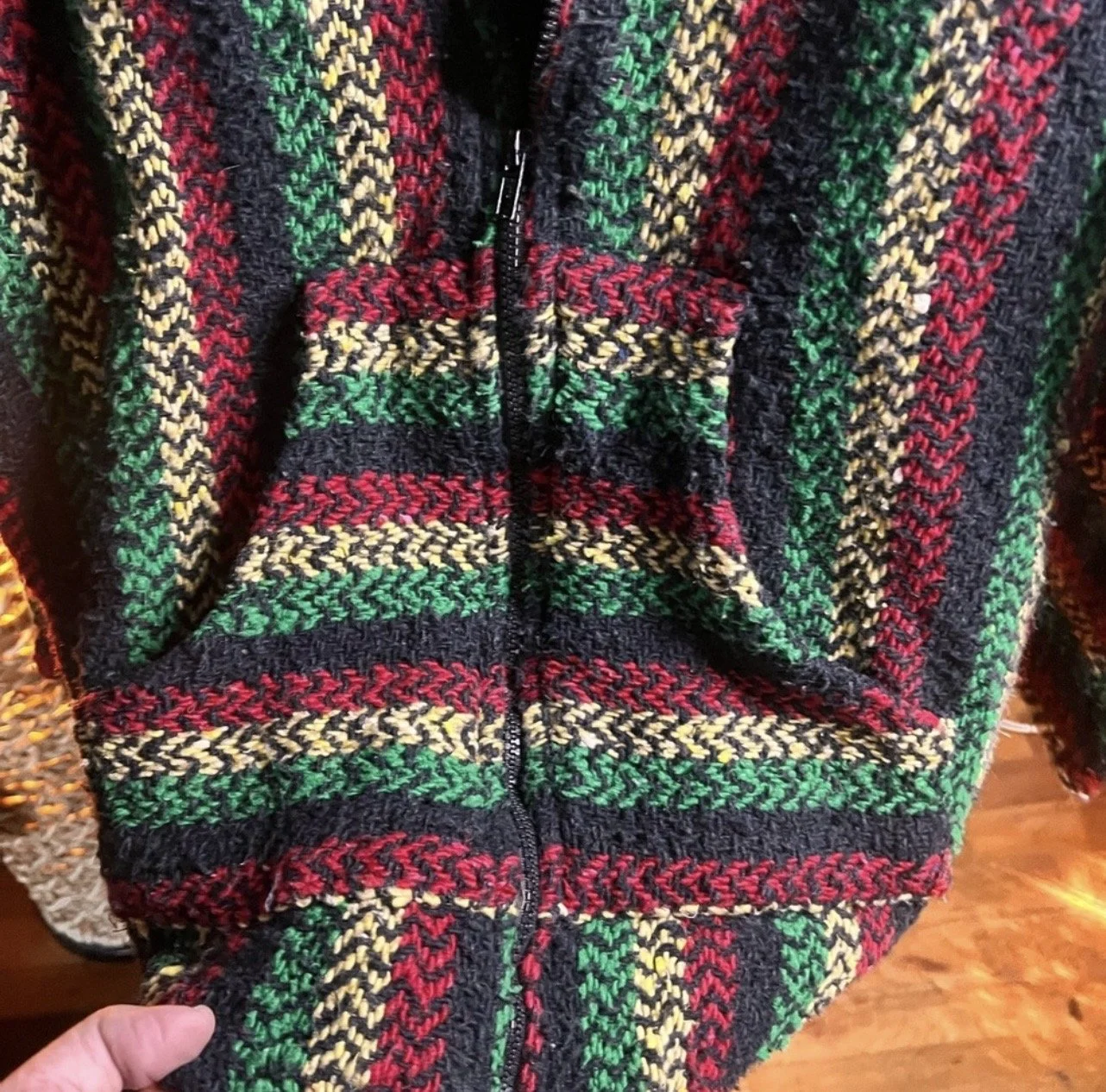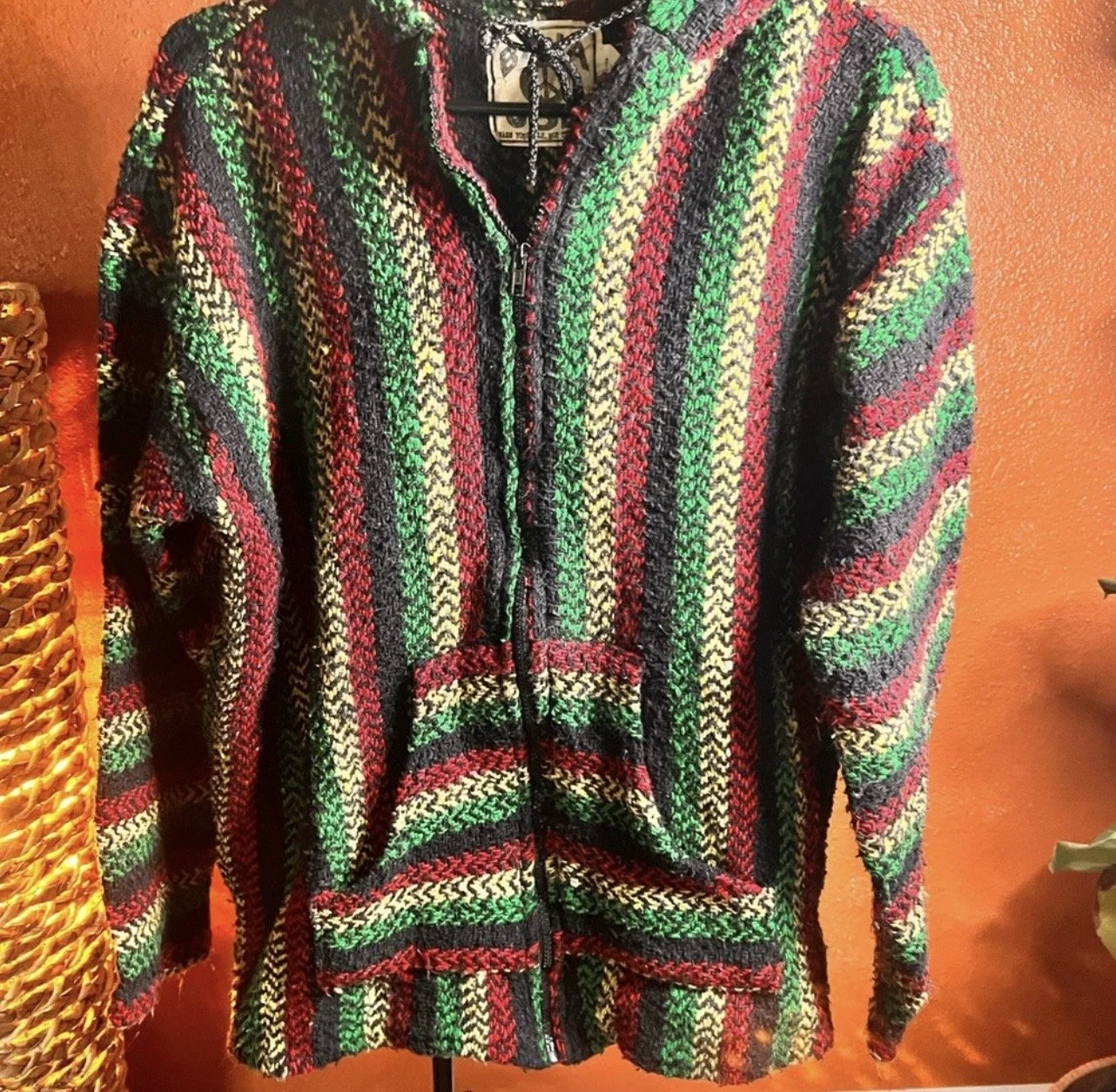 100% handmade with thick, multi-color yarn providing warmth and comfort.