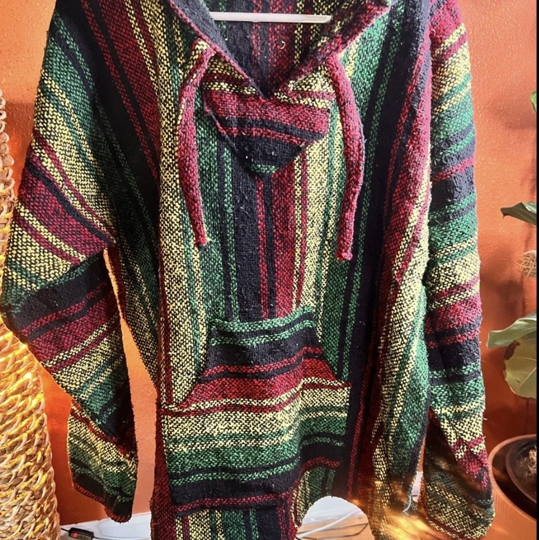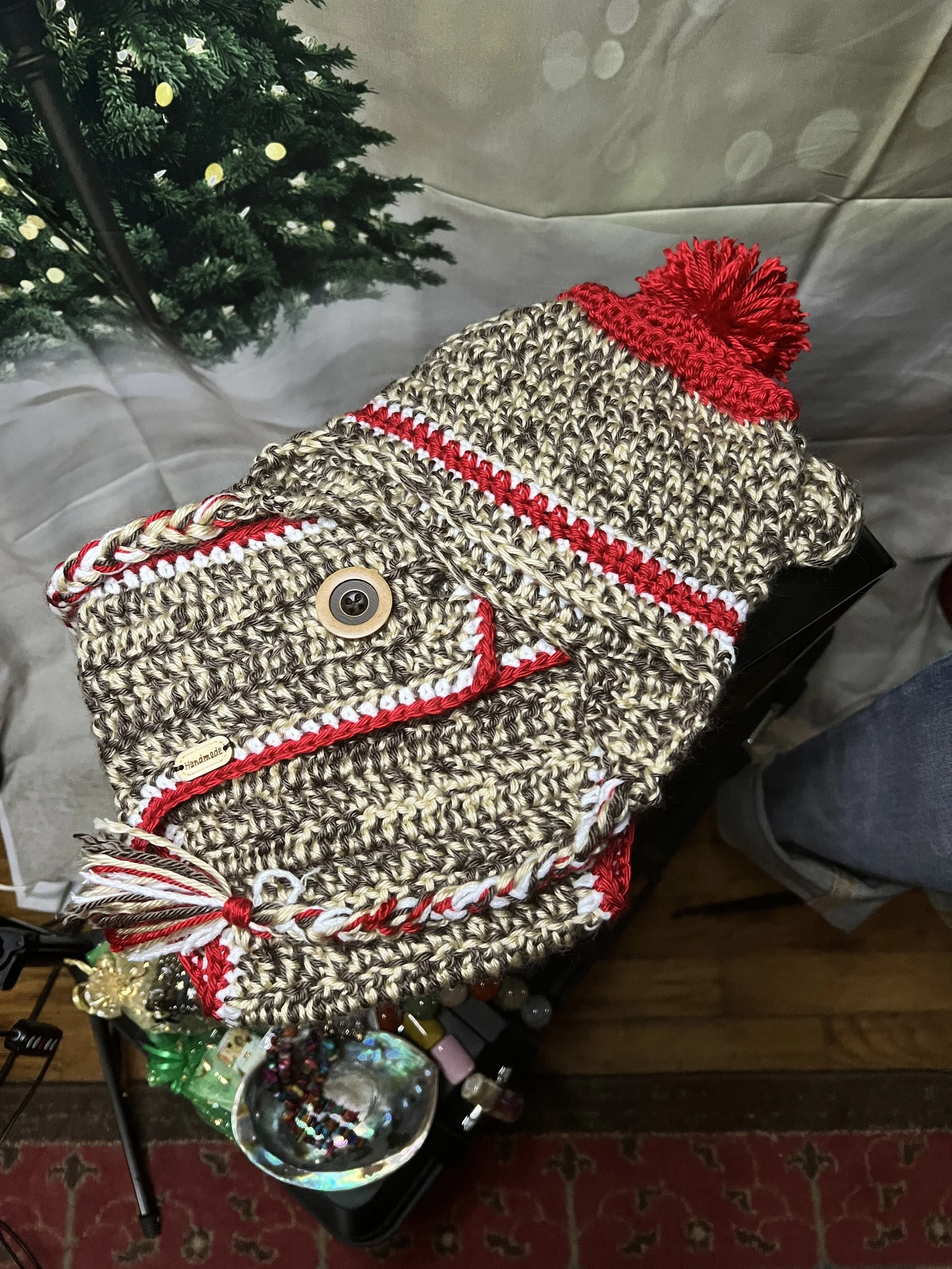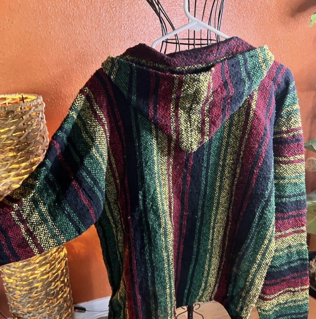 100% handmade with thick, multi-color yarn providing warmth and comfort.