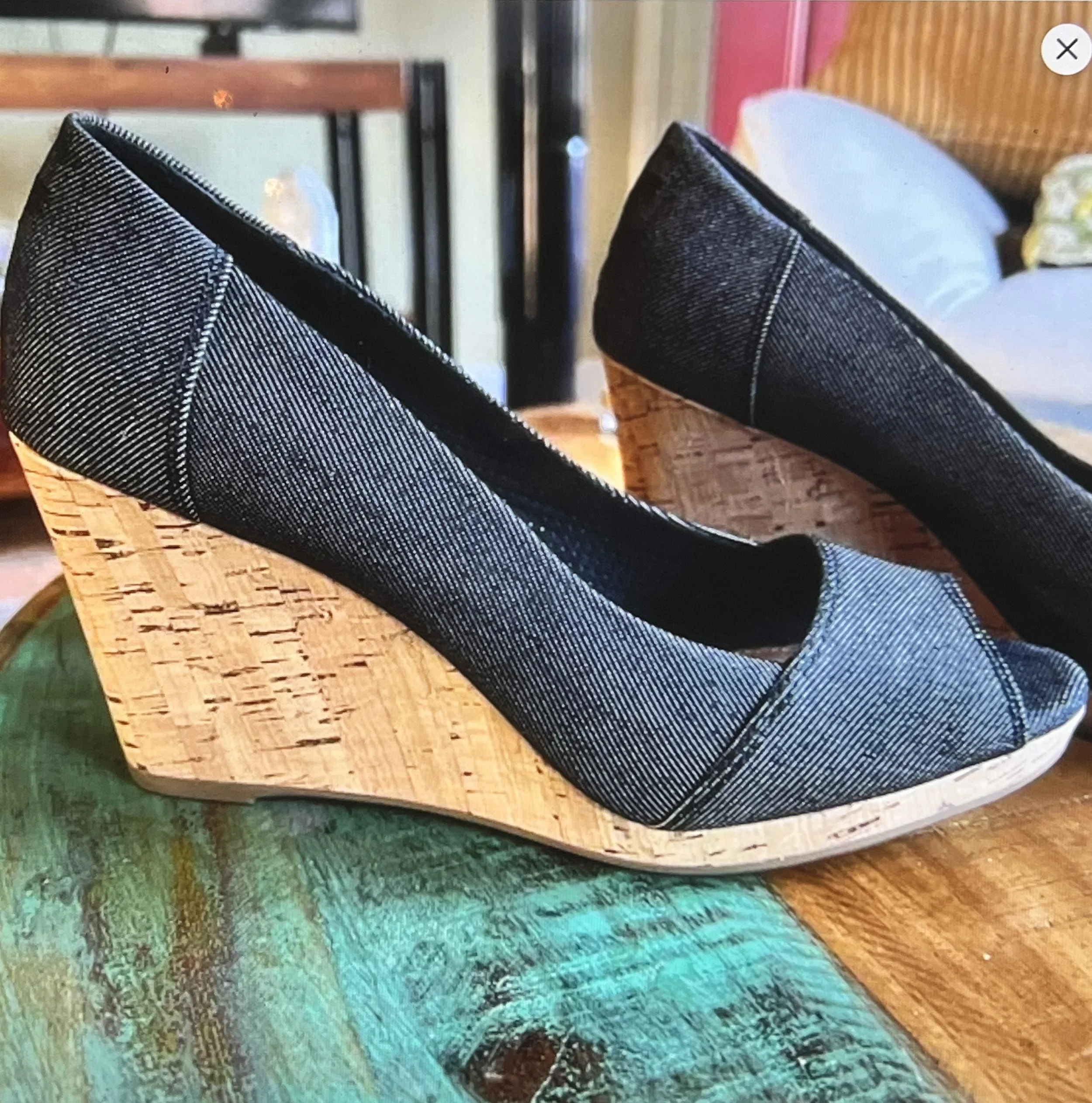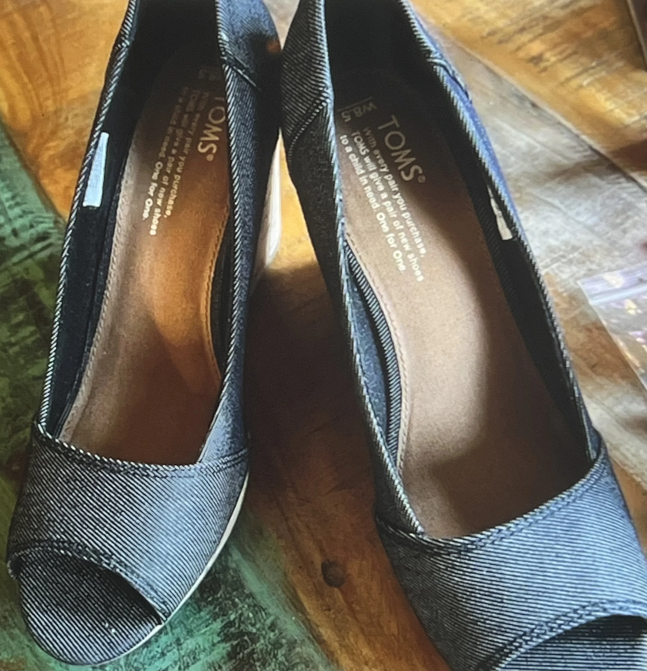Elevate your style and step out in confidence with Toms Denim Peep Toe Wedges, seamlessly blending comfort and edgy flair.