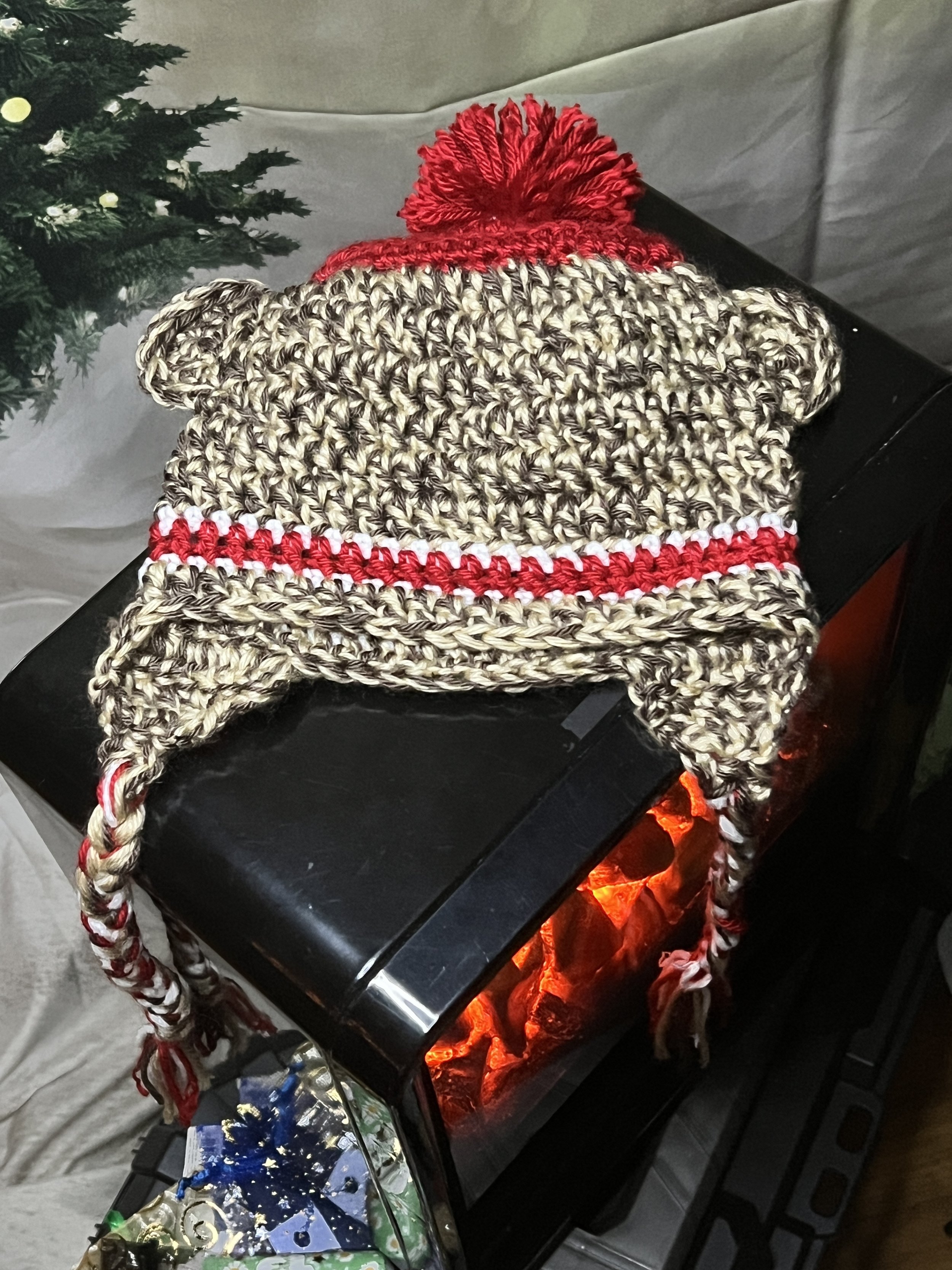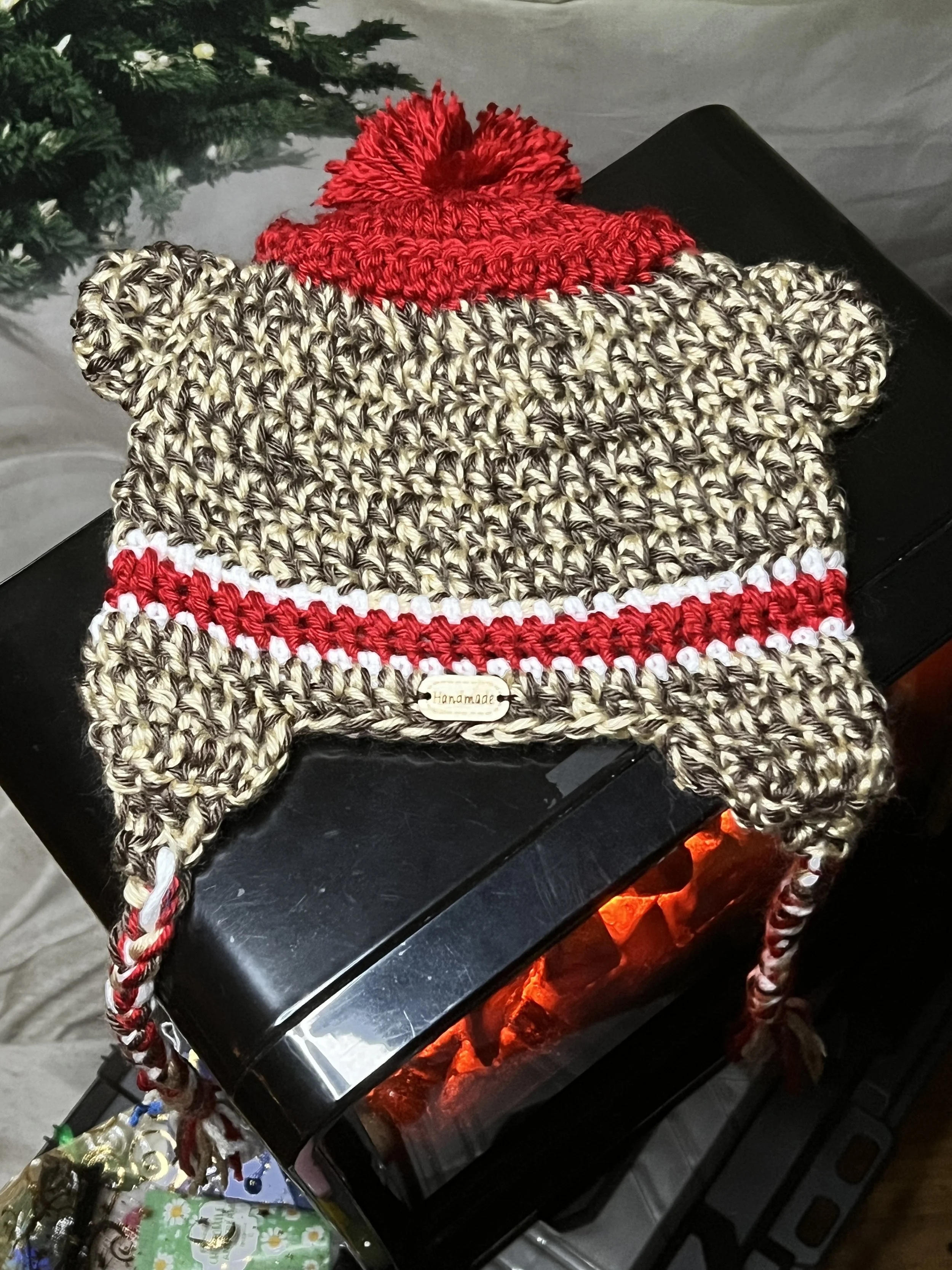 Sock monkey-inspired design with distinct trim, adding a playful touch.