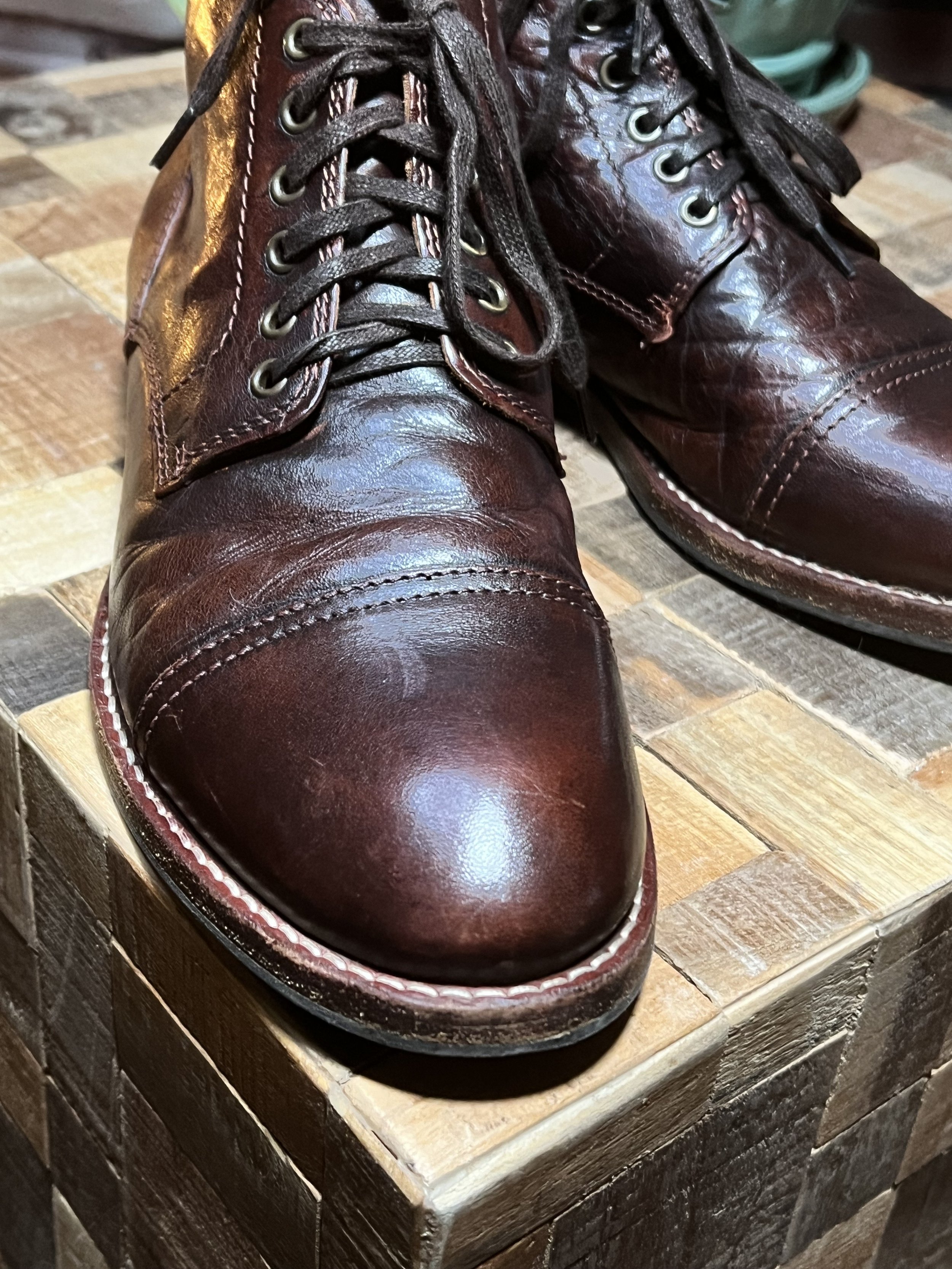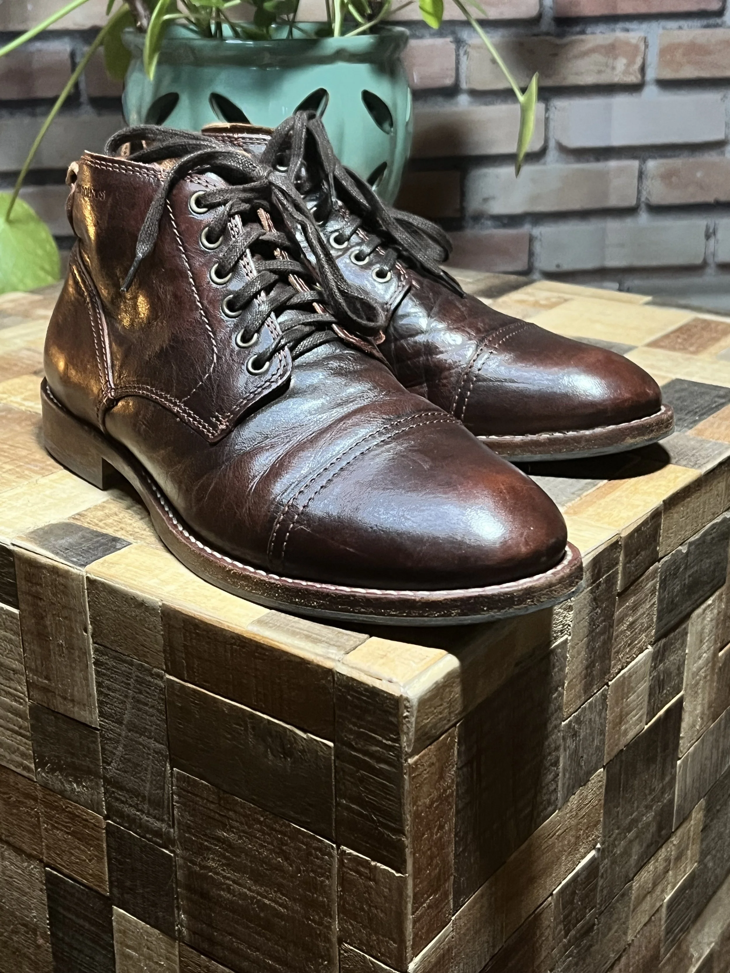 Genuine leather — factory-distressed (not scratches)