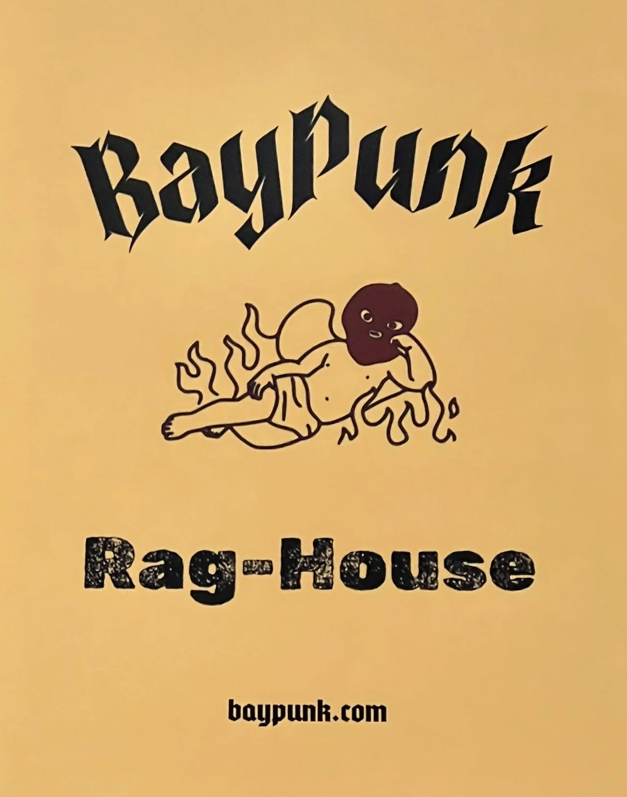 BayPunk Brand Sticker in Gold, featuring a daring angel engulfed in flames for that ultimate rebellious edge.
