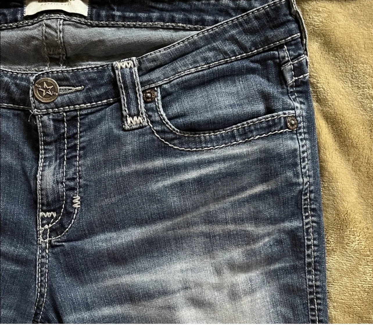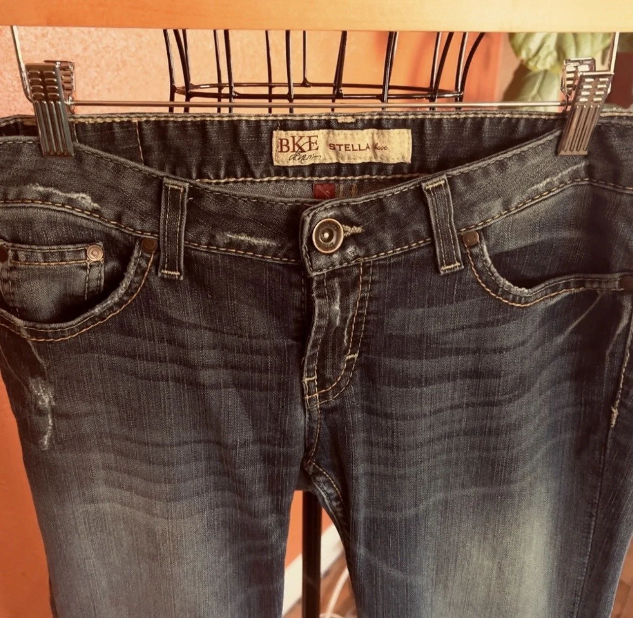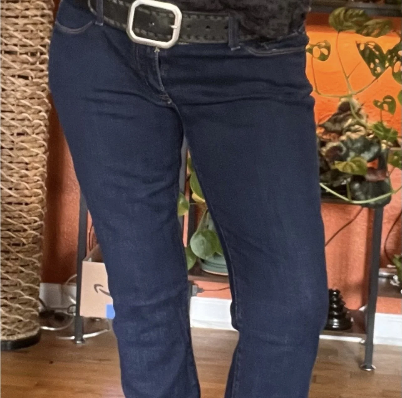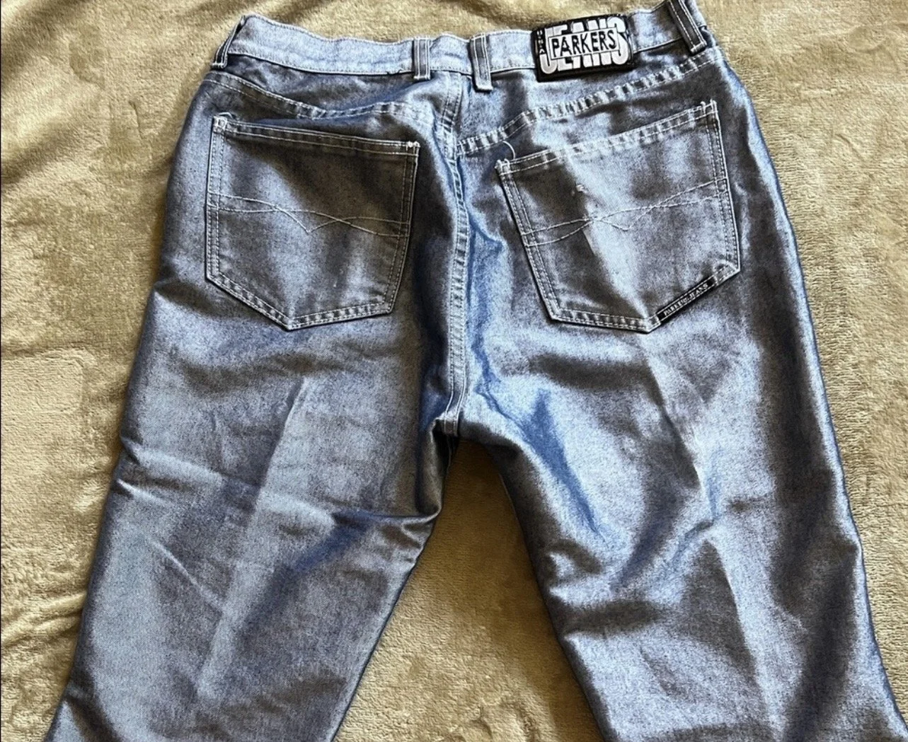 They’ve got a little extra “character” thanks to some real-life distressing—clearly someone had a good time in these. Mid-shine, mid-chaos, total Y2K vibe. Perfect with a baby tee, wedges, or whatever you’re brave enough to pull them off with