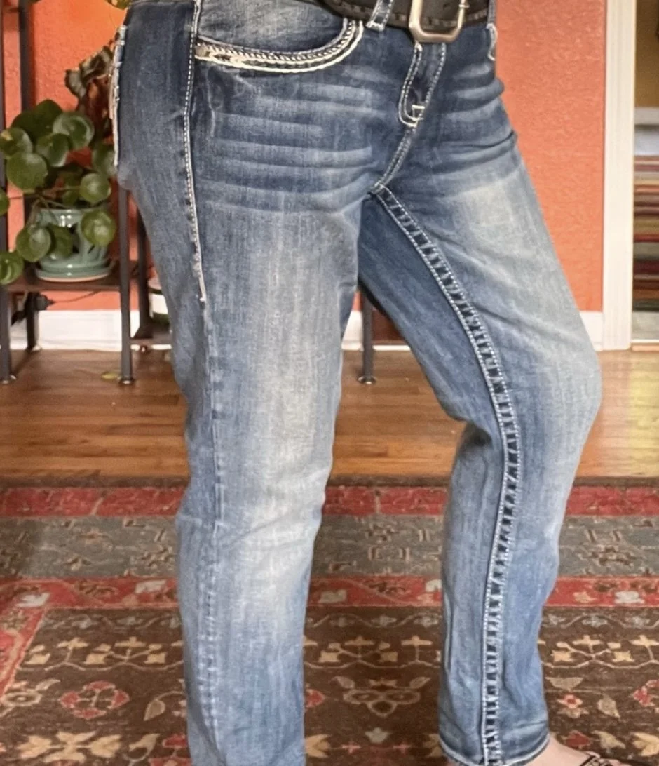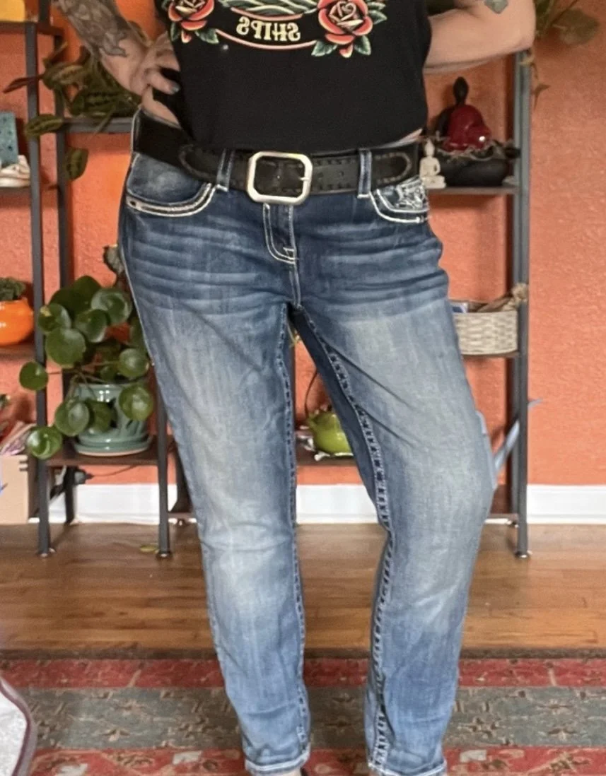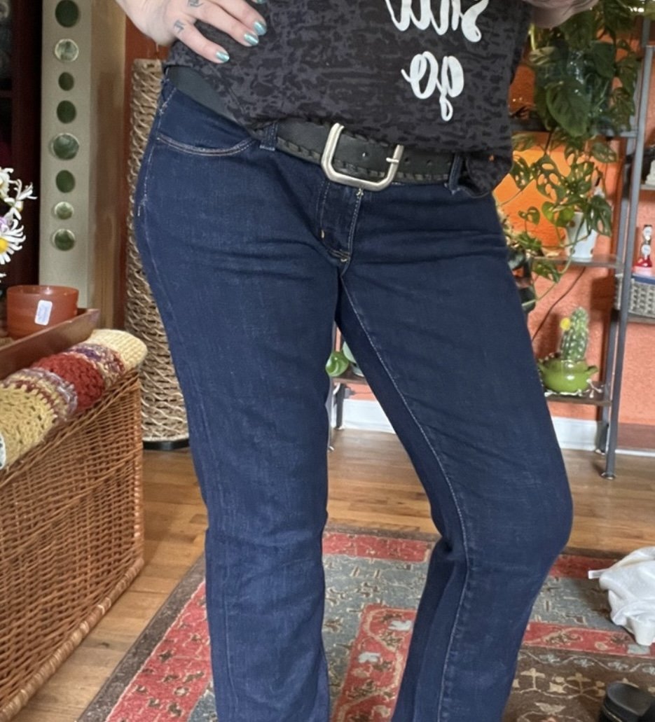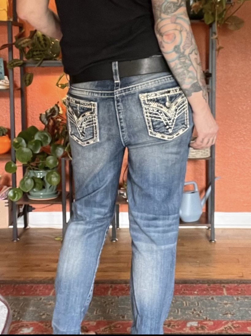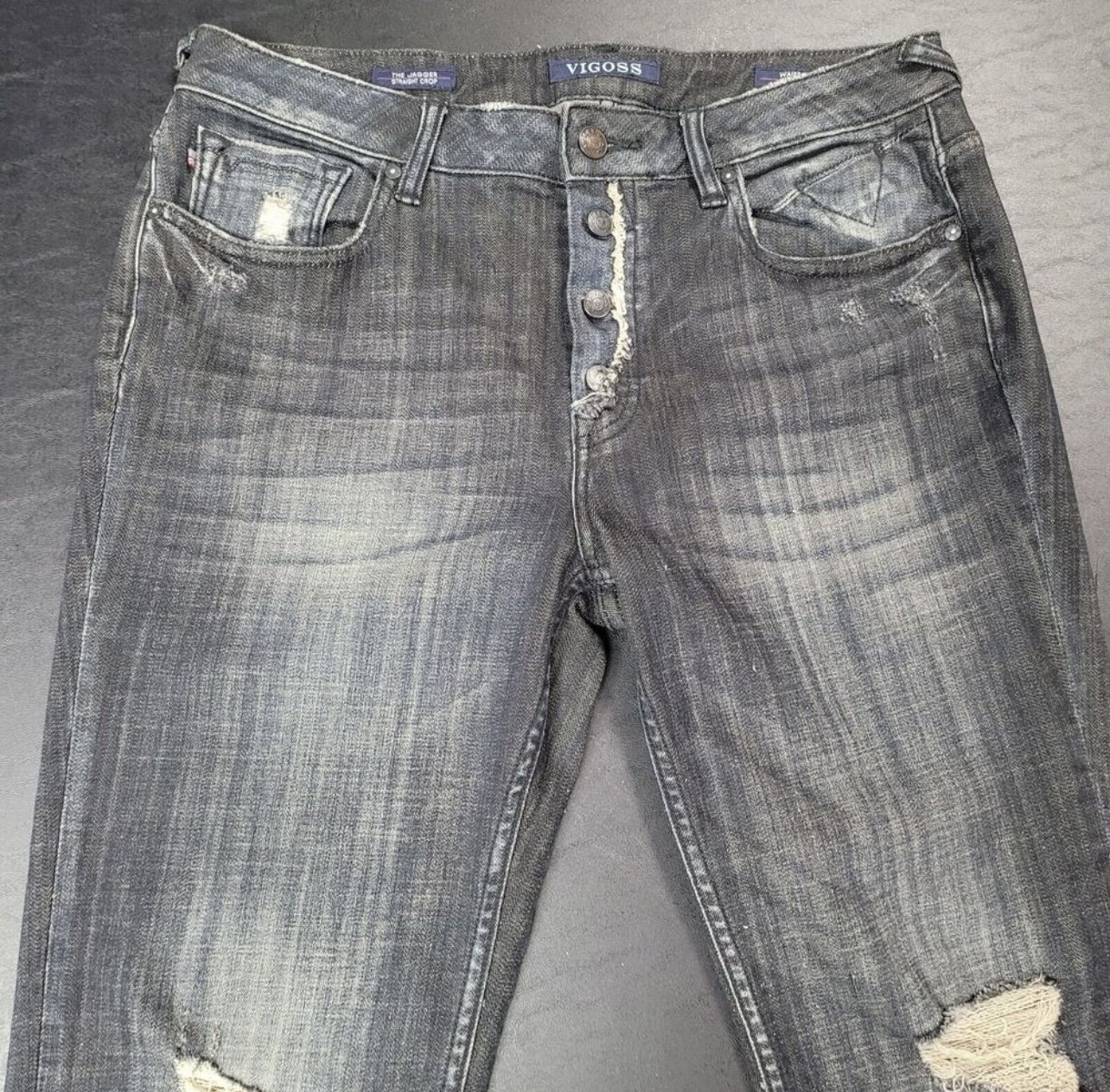 These Vigoss “Jagger” straight jeans (Size 31) bring that button-fly, high-waist attitude that’s perfect for anyone who loves the rib-cage rise life.