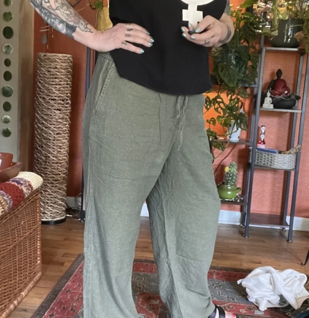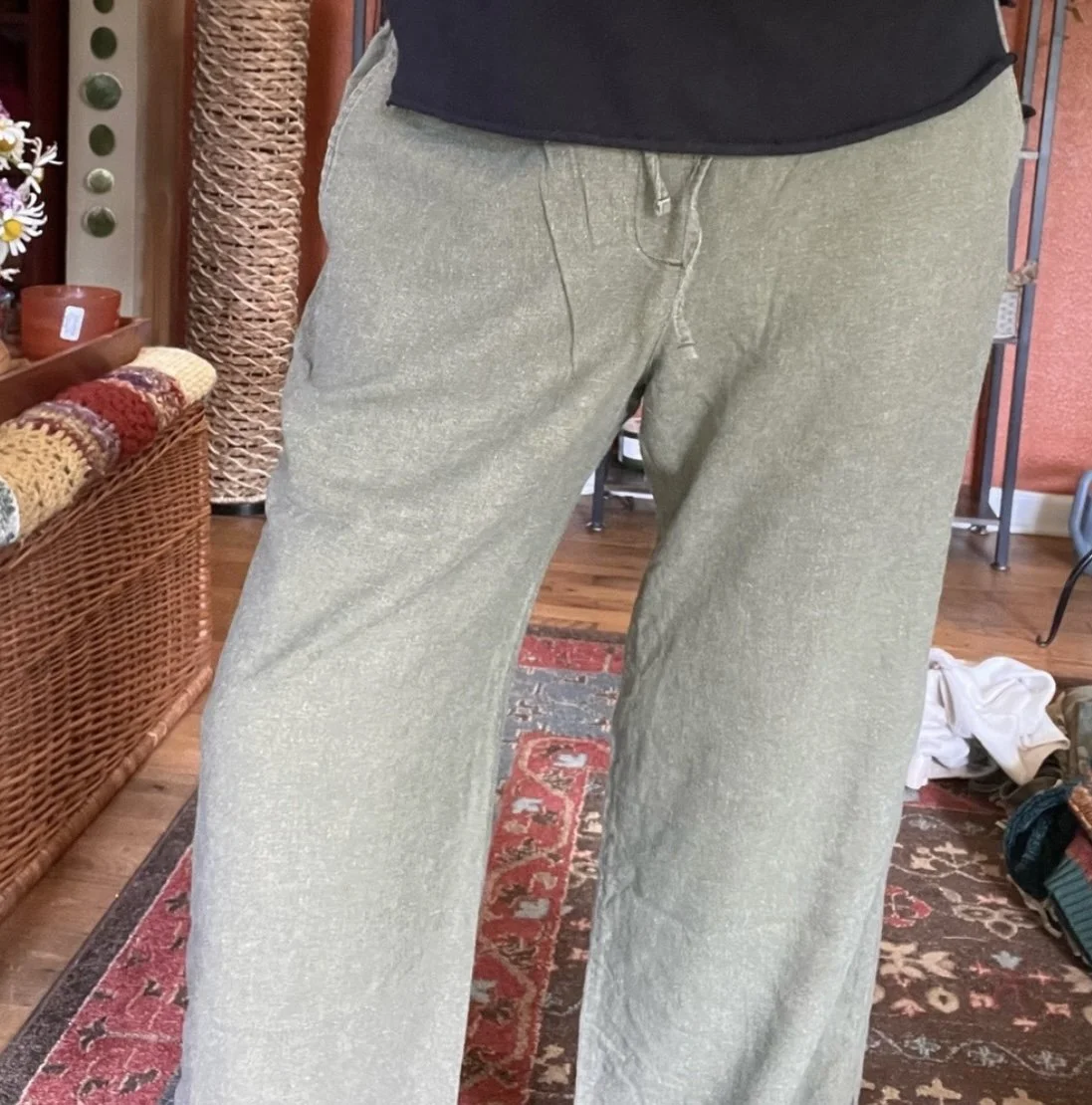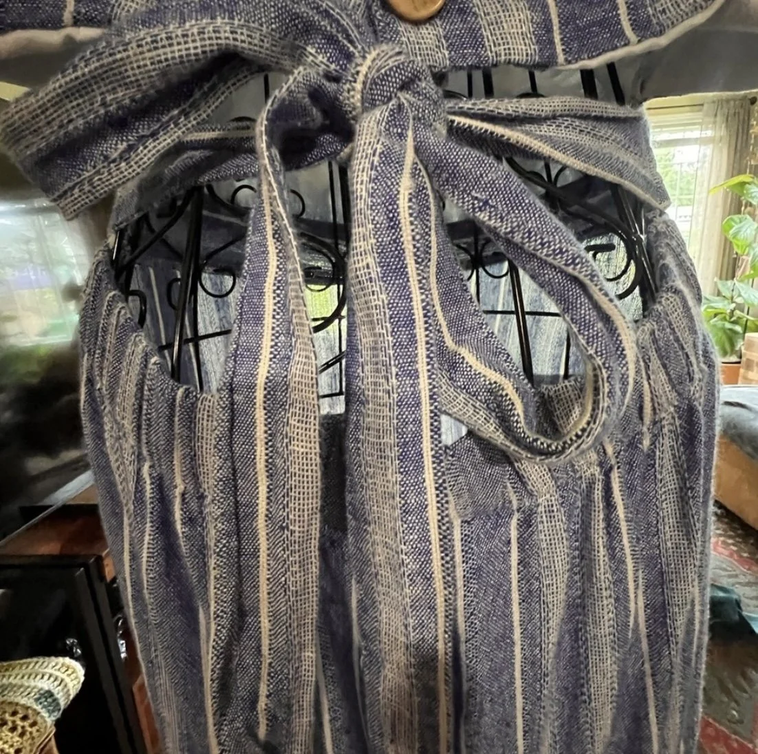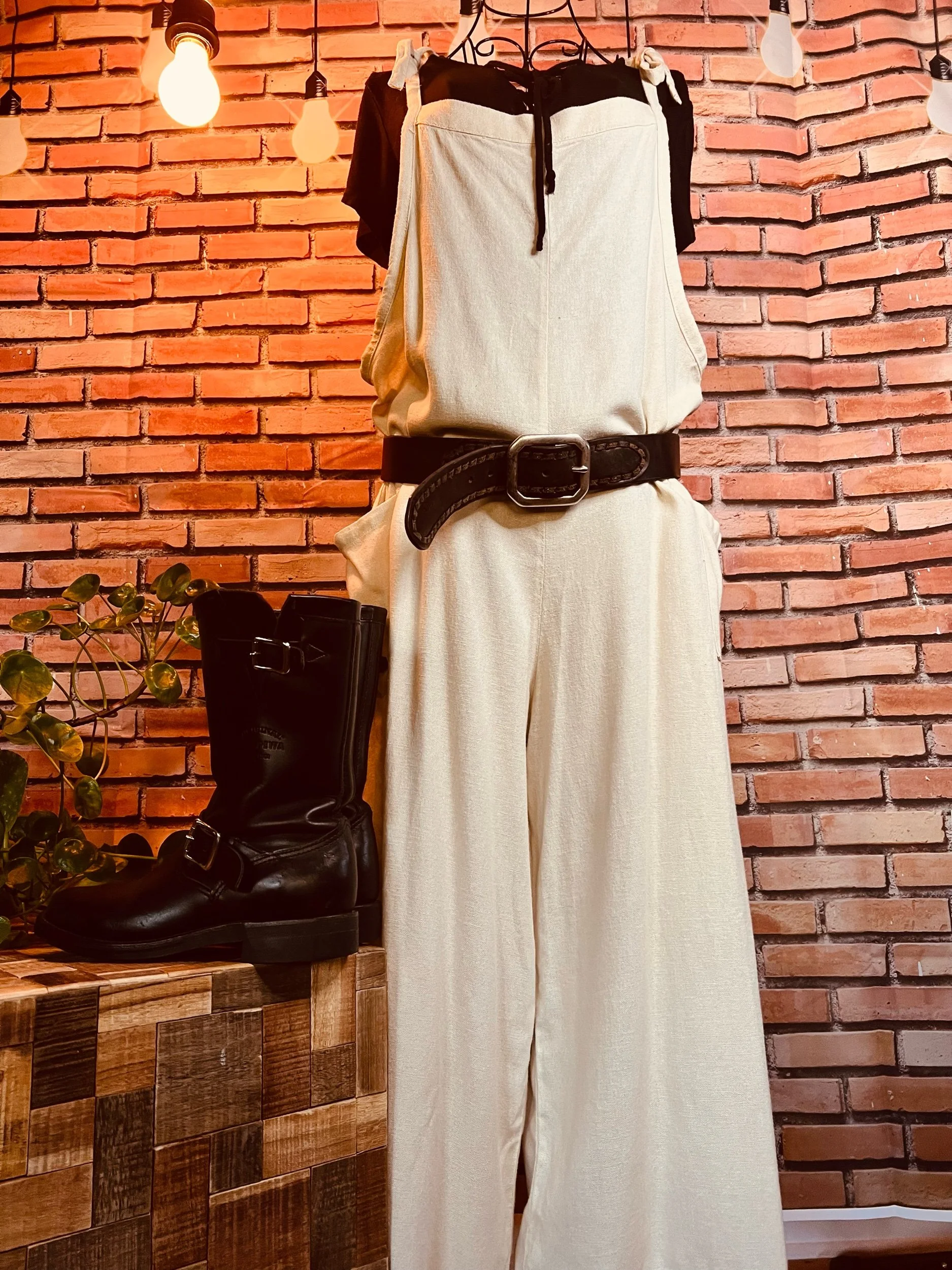 Linen summer jump suit, great for the beach or the park, buttons and ties in the back, comfortable not too tight elastic waistband and pockets and wide legs! NWOT