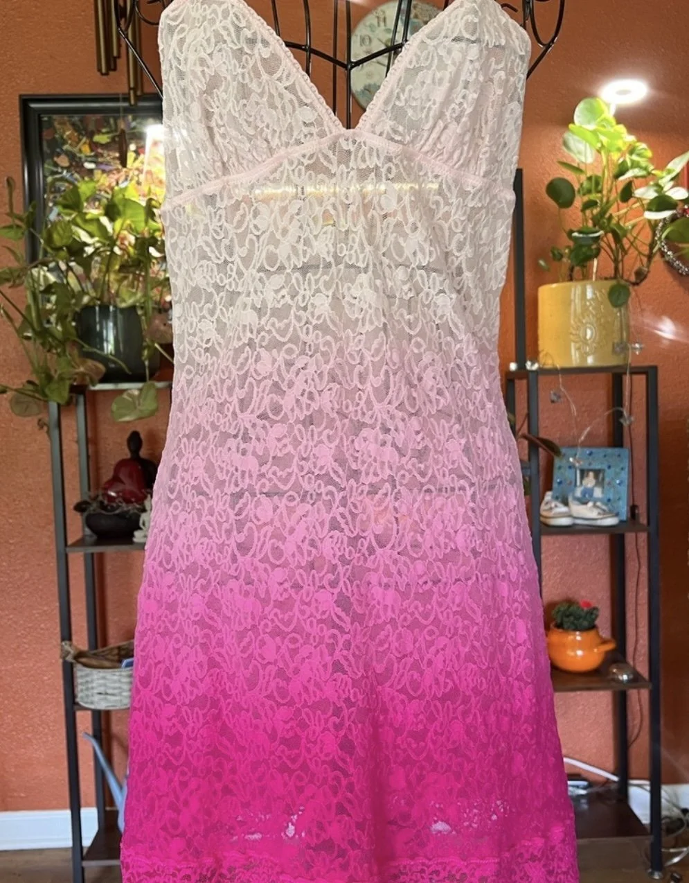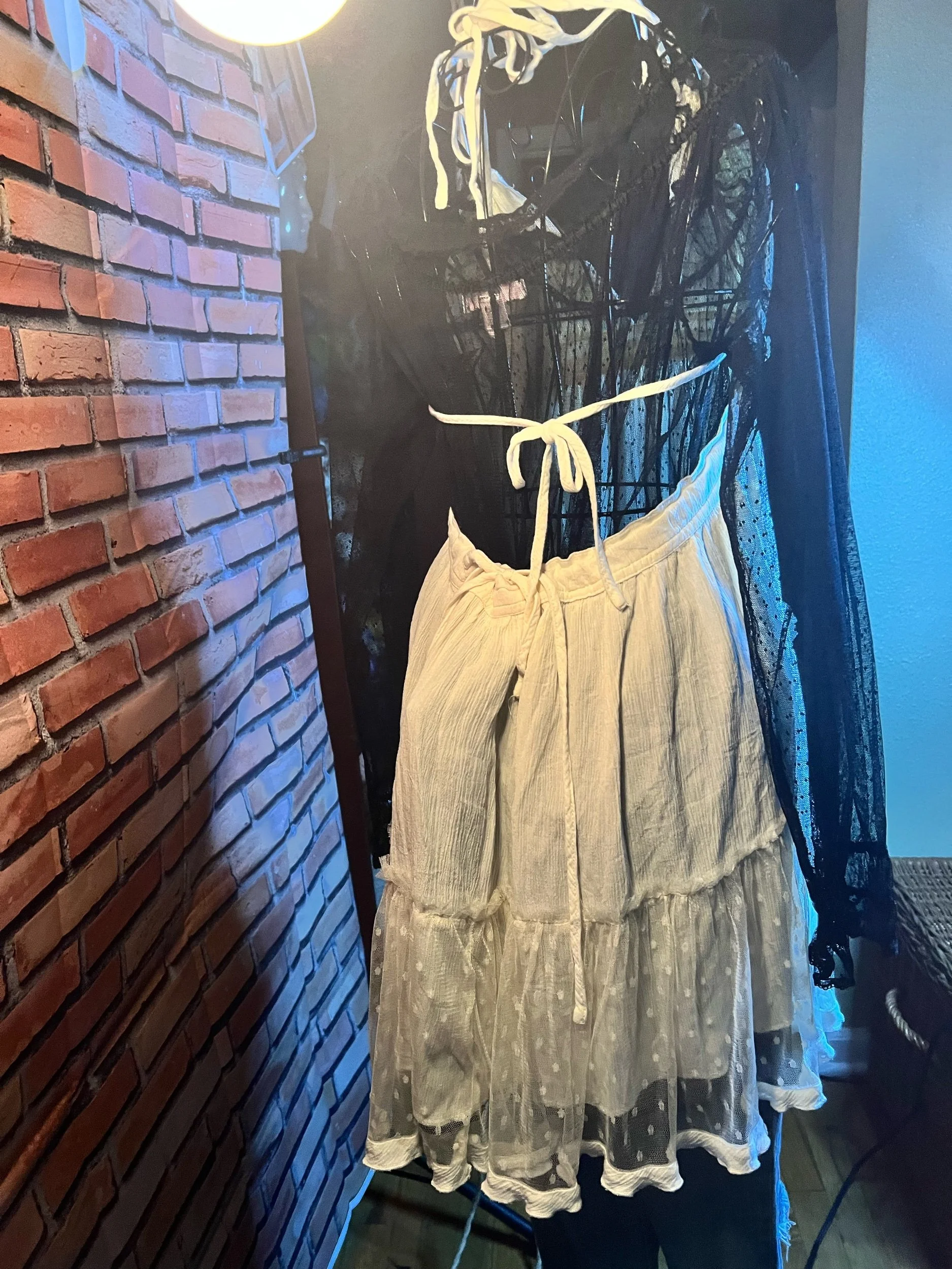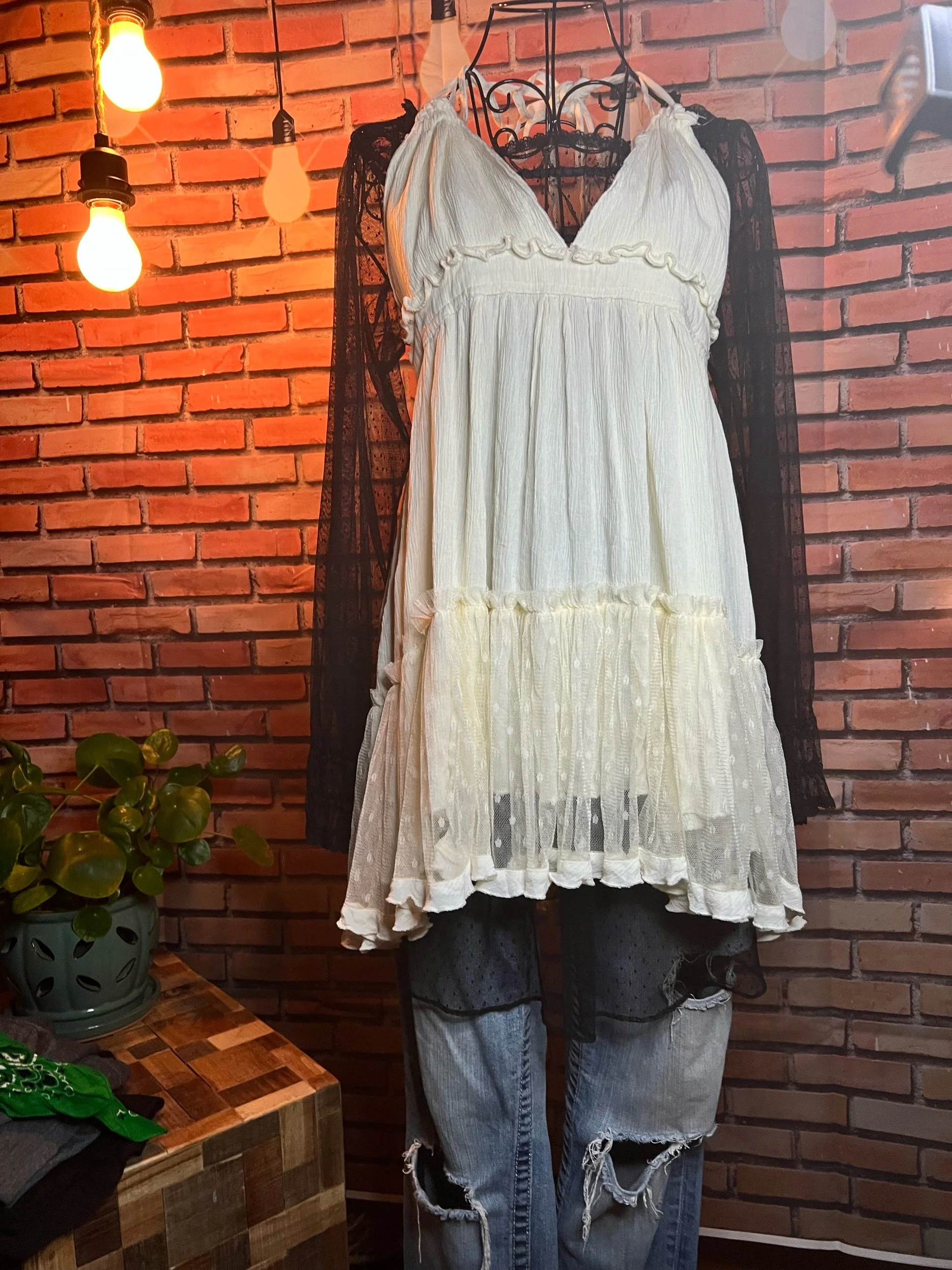 Sheer. Lacey. Dramatic. This black layering dress from Victoria’s Secret walks the fine line between gothic romantic and “none of your business what I’m wearing it for.” Lightweight mesh with subtle polka-dot texture, ruffled neckline, and cinched cuffs. Looks killer over a slip dress, bodysuit, or left to pure imagination???