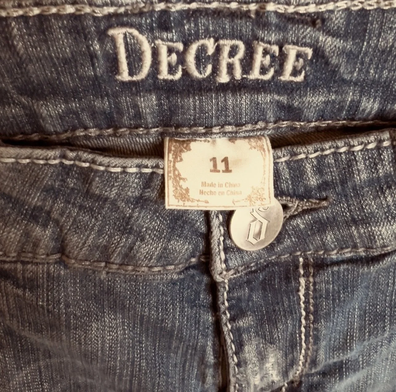 Decree denim delivering that classic Y2K mall-core vibe—straight leg cut, mid-rise fit, and the kind of jeans you’d wear to the food court with an Orange Julius in hand.