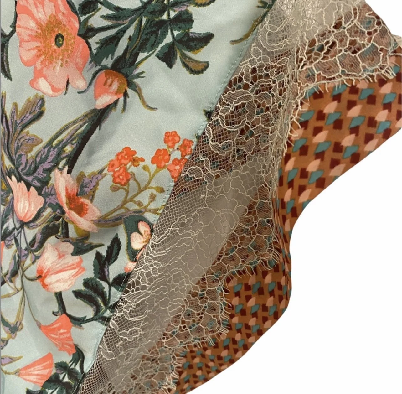Style Notes: Wild intricate print, luxe feel, takes belts extremely well