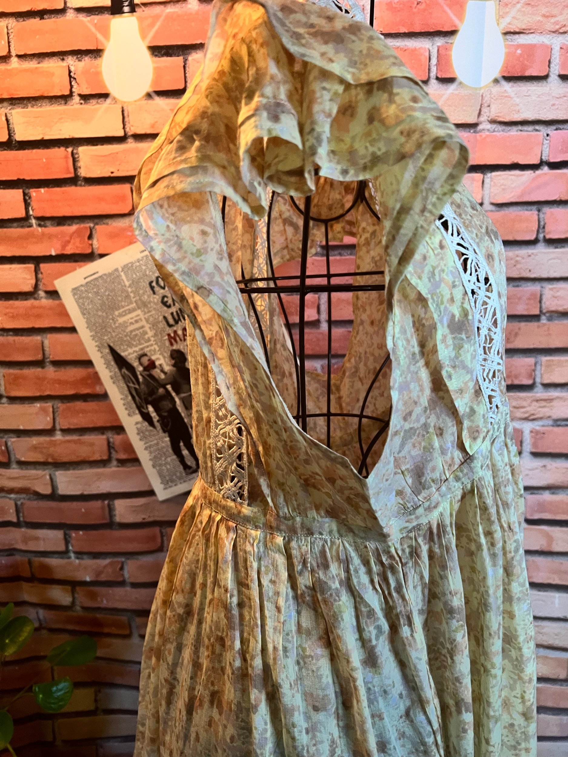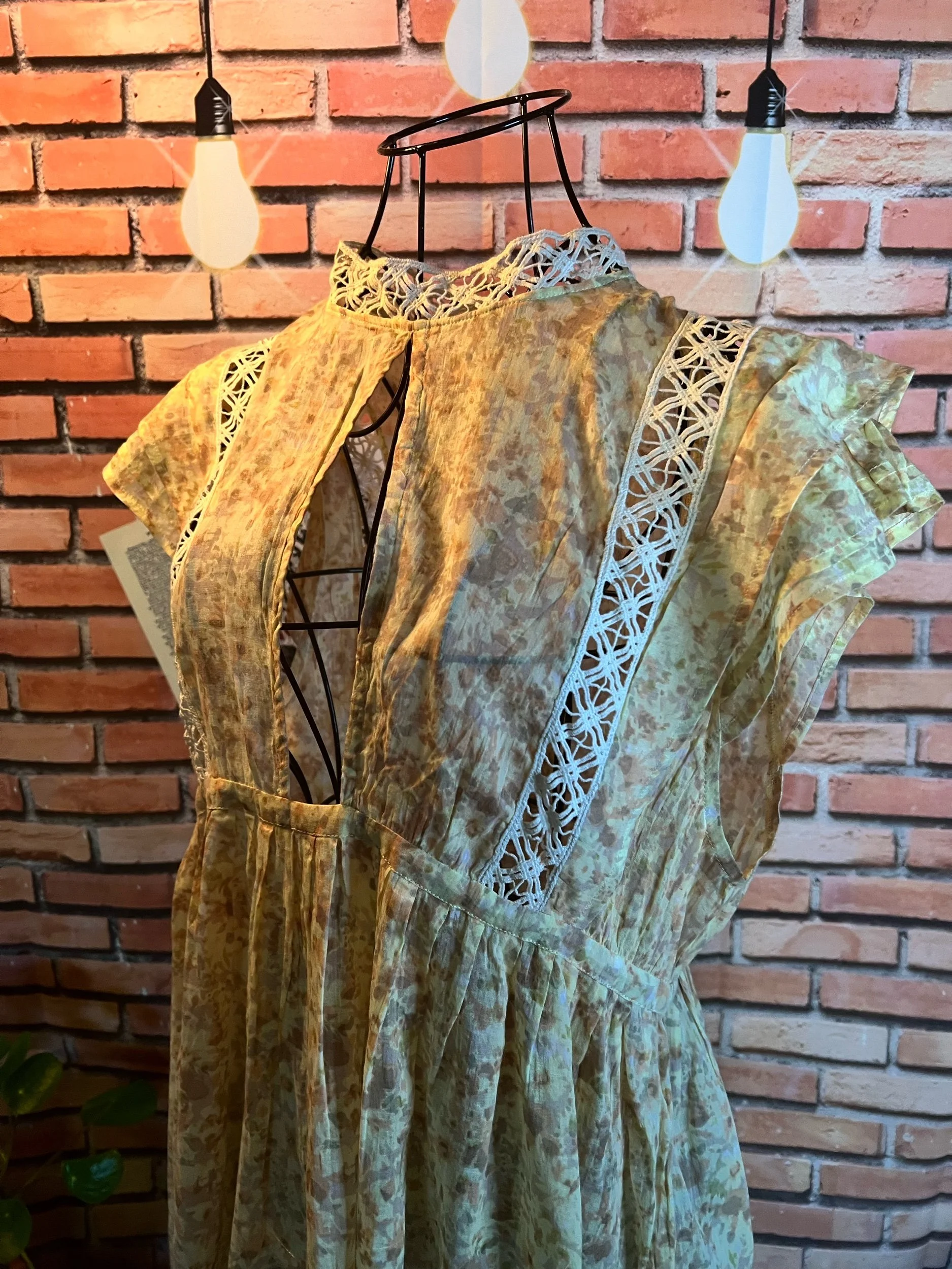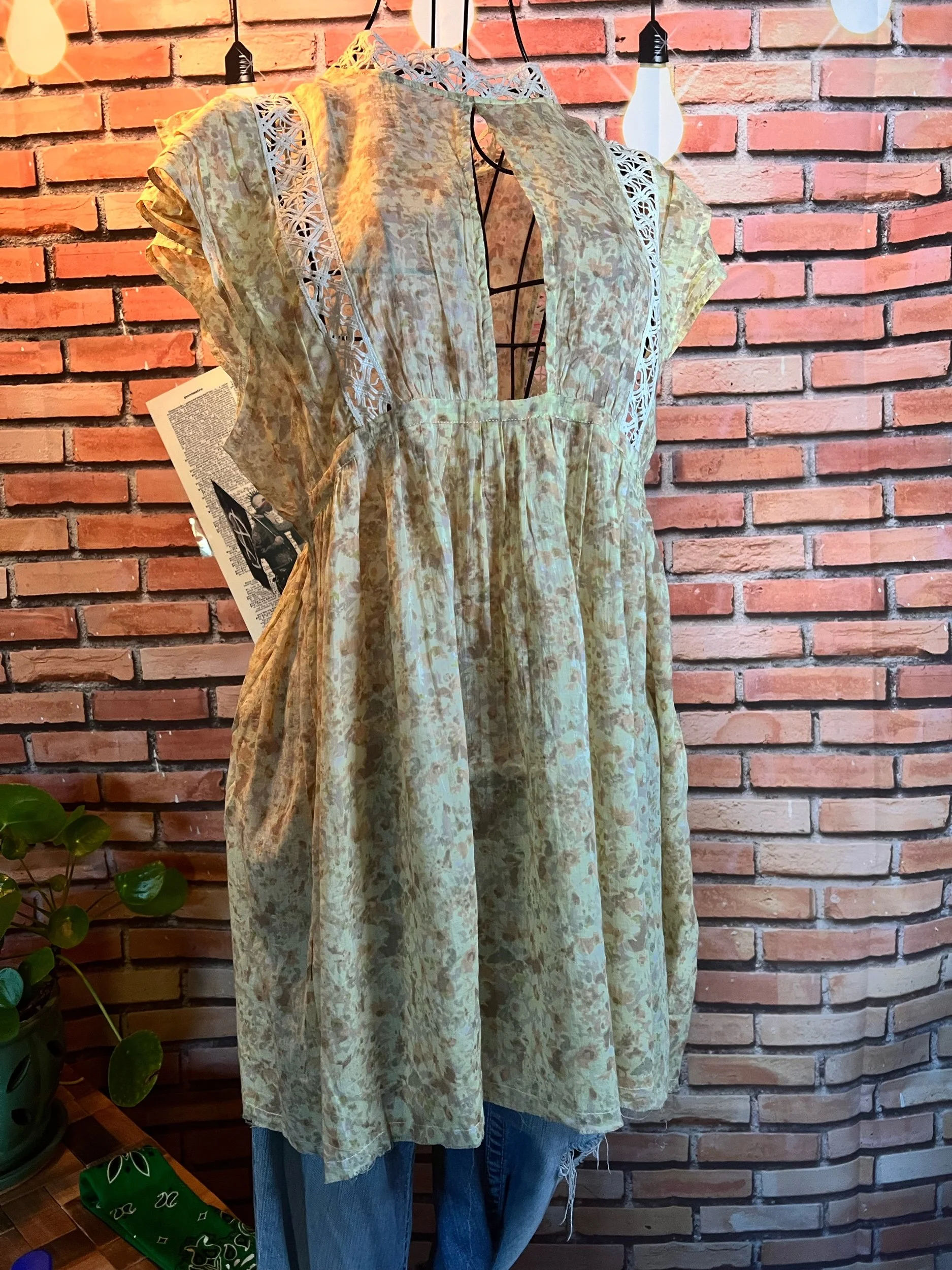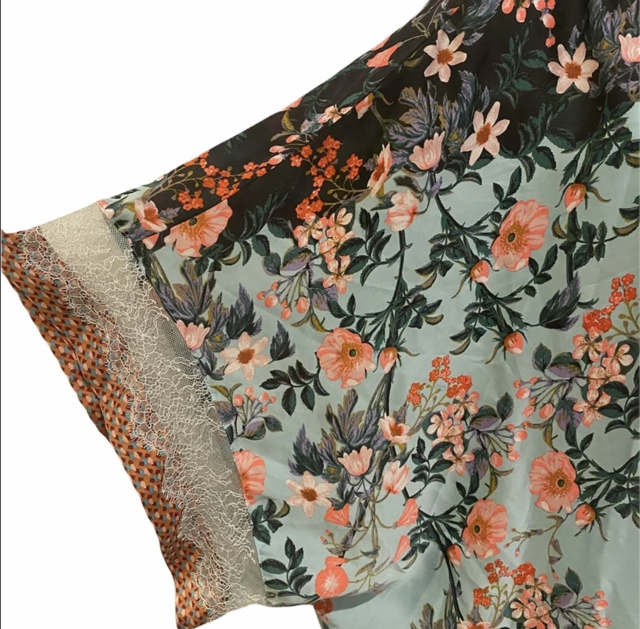 Don’t let the polyester fool you—this one’s a soft-daydream kind of top that happens to survive laundry day like a champ. Romantic floral print, breezy fit, and that quiet confidence that says, “Yeah, I thrift better than you.”