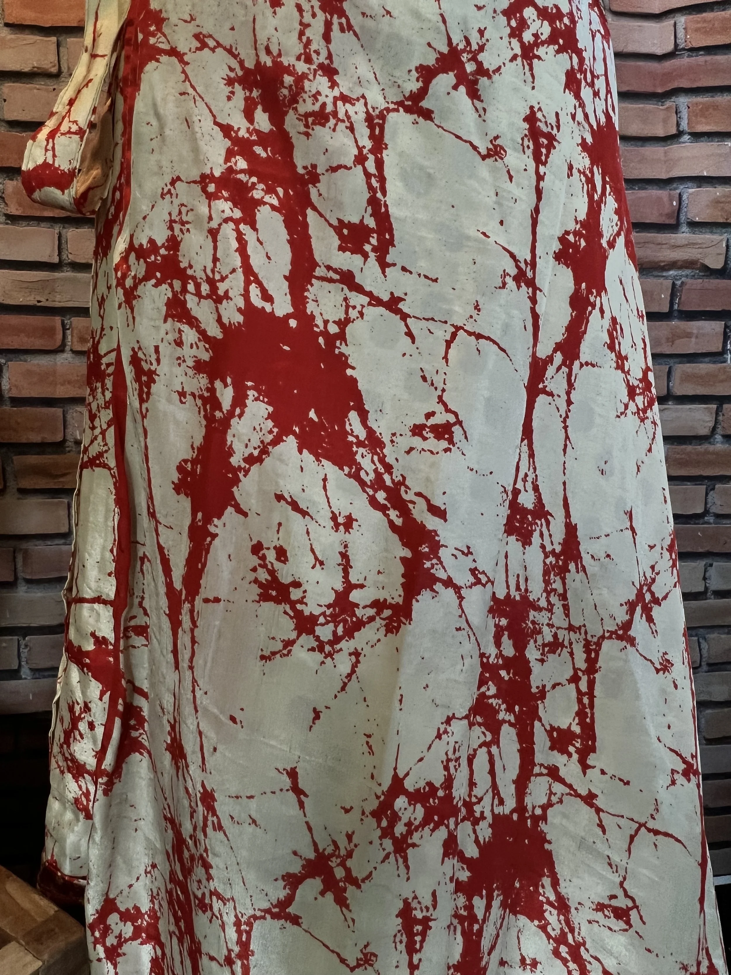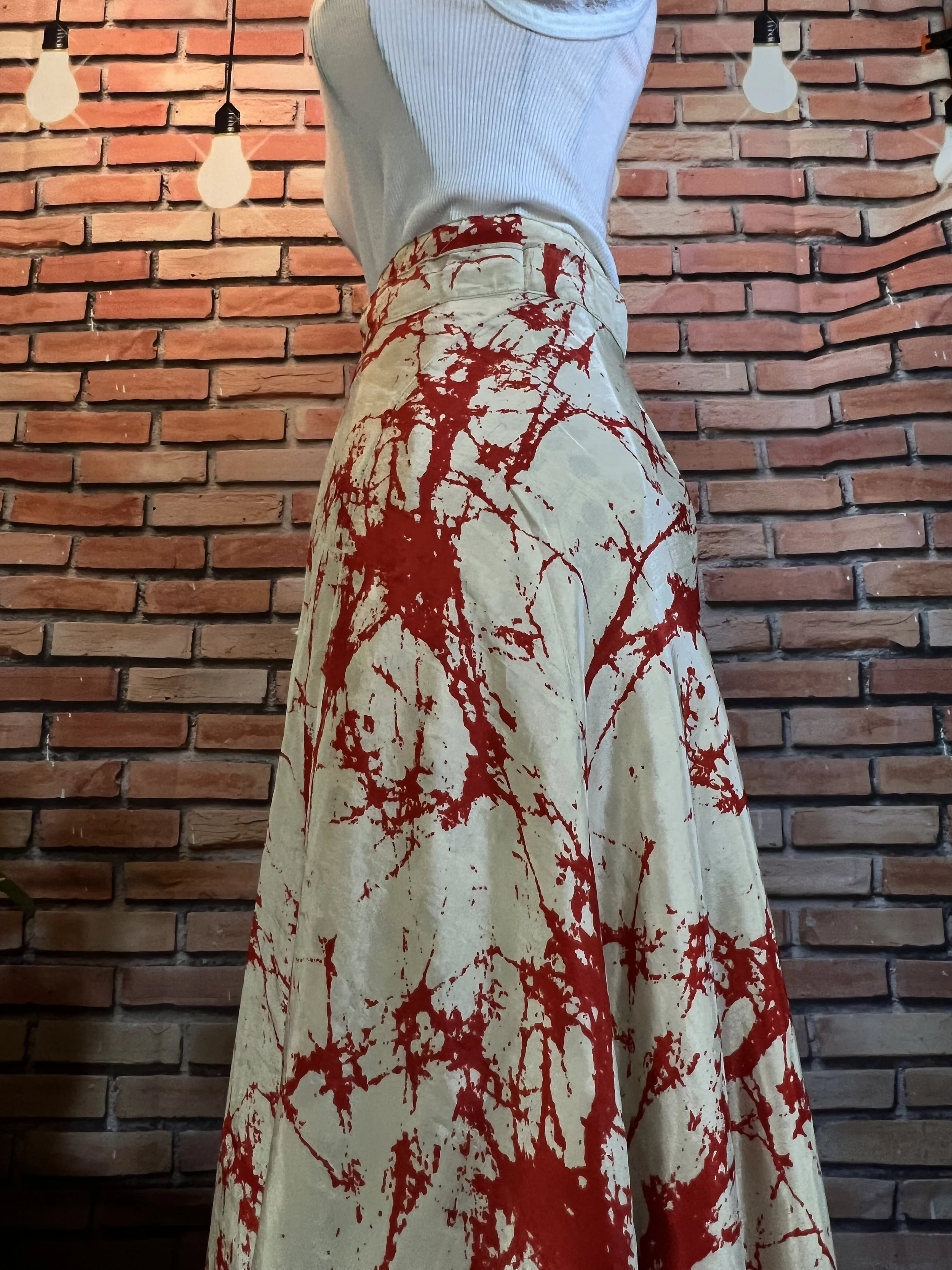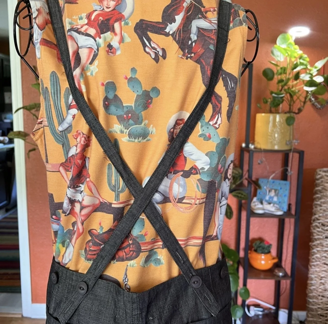 A bold, art-print dress with serious personality. Medium-weight, structured poly-elastane blend that feels almost like soft chambray but has stretch and body. Not flimsy. Not thin. A true statement dress you can style with a heavy belt, leggings, or boots — BayPunk Rag-House style.