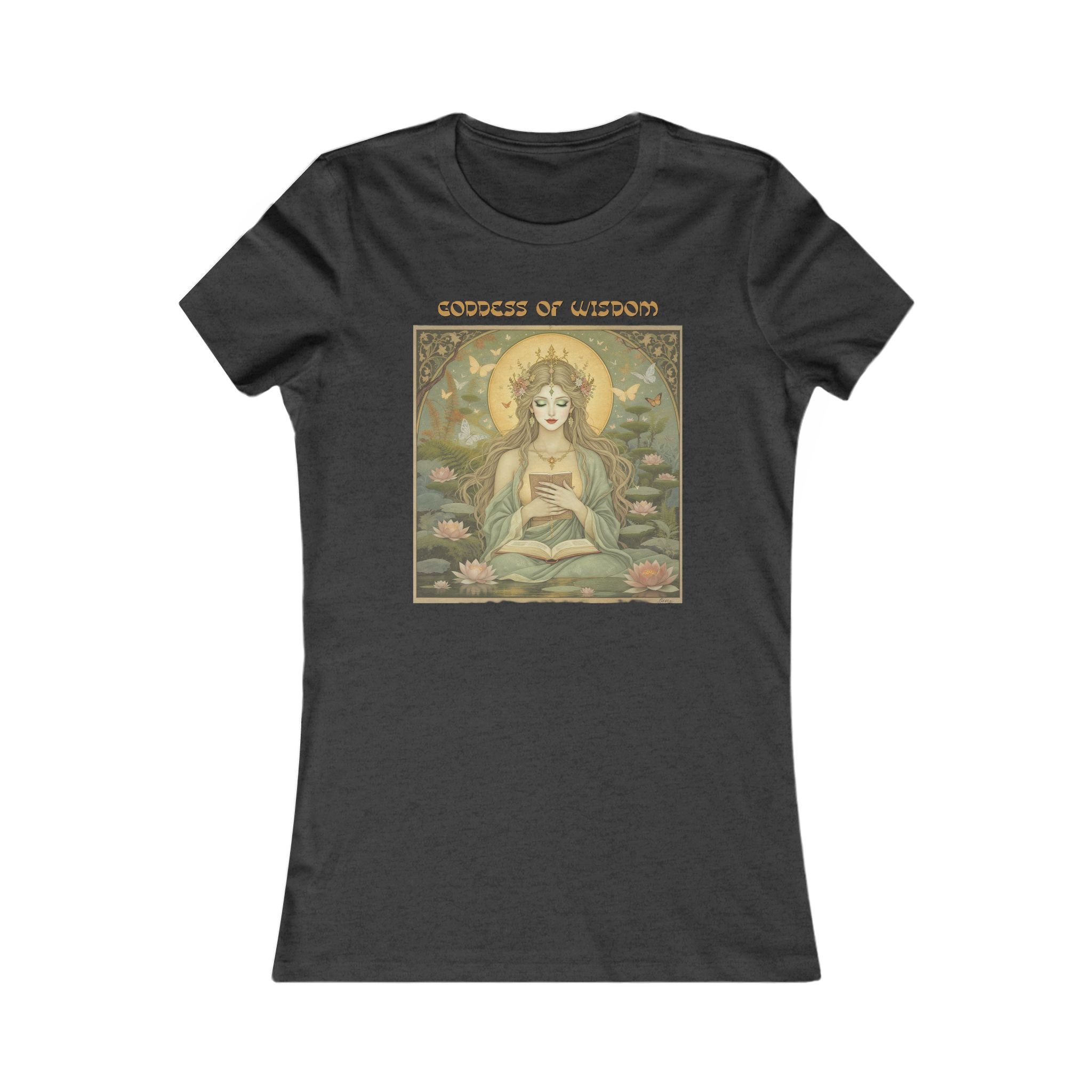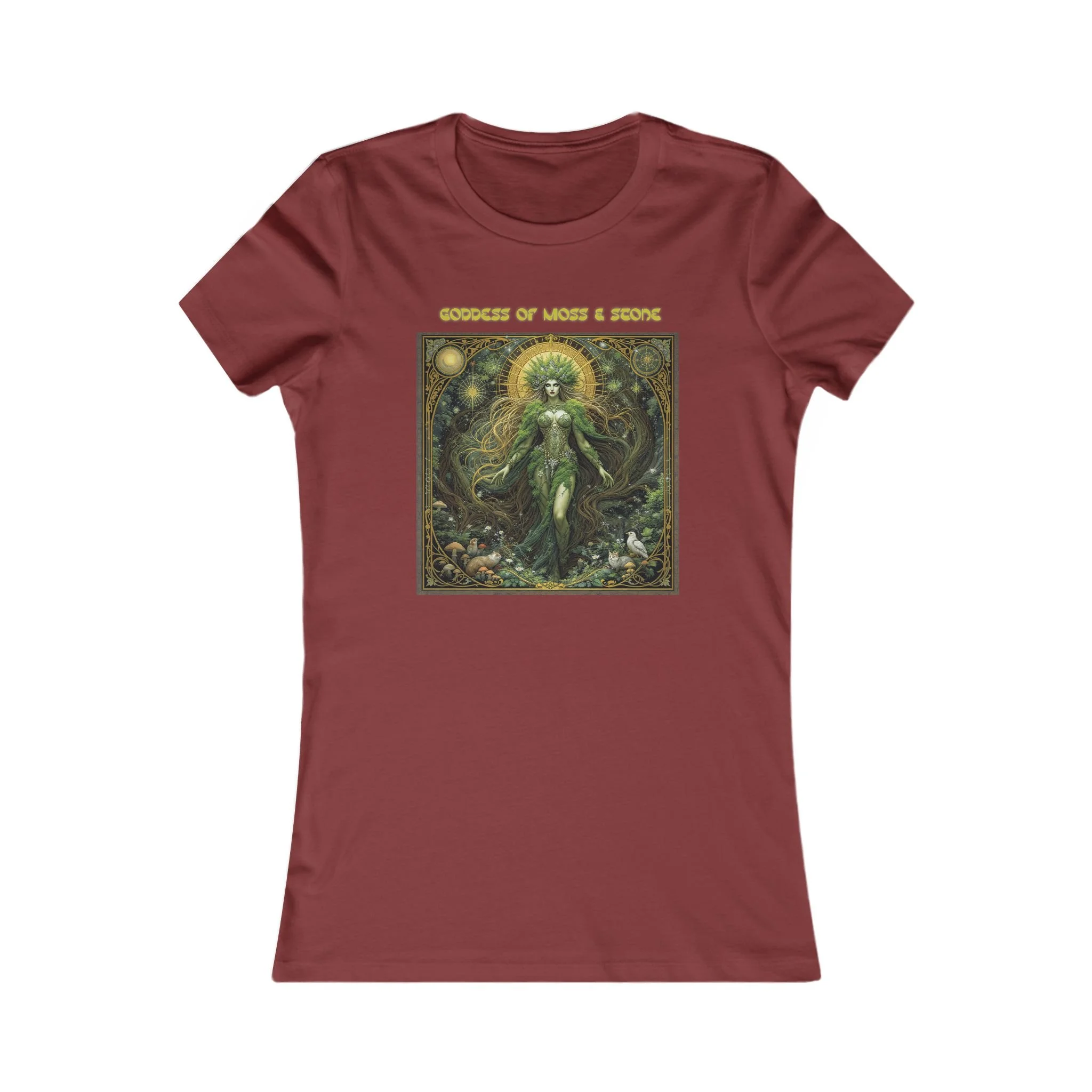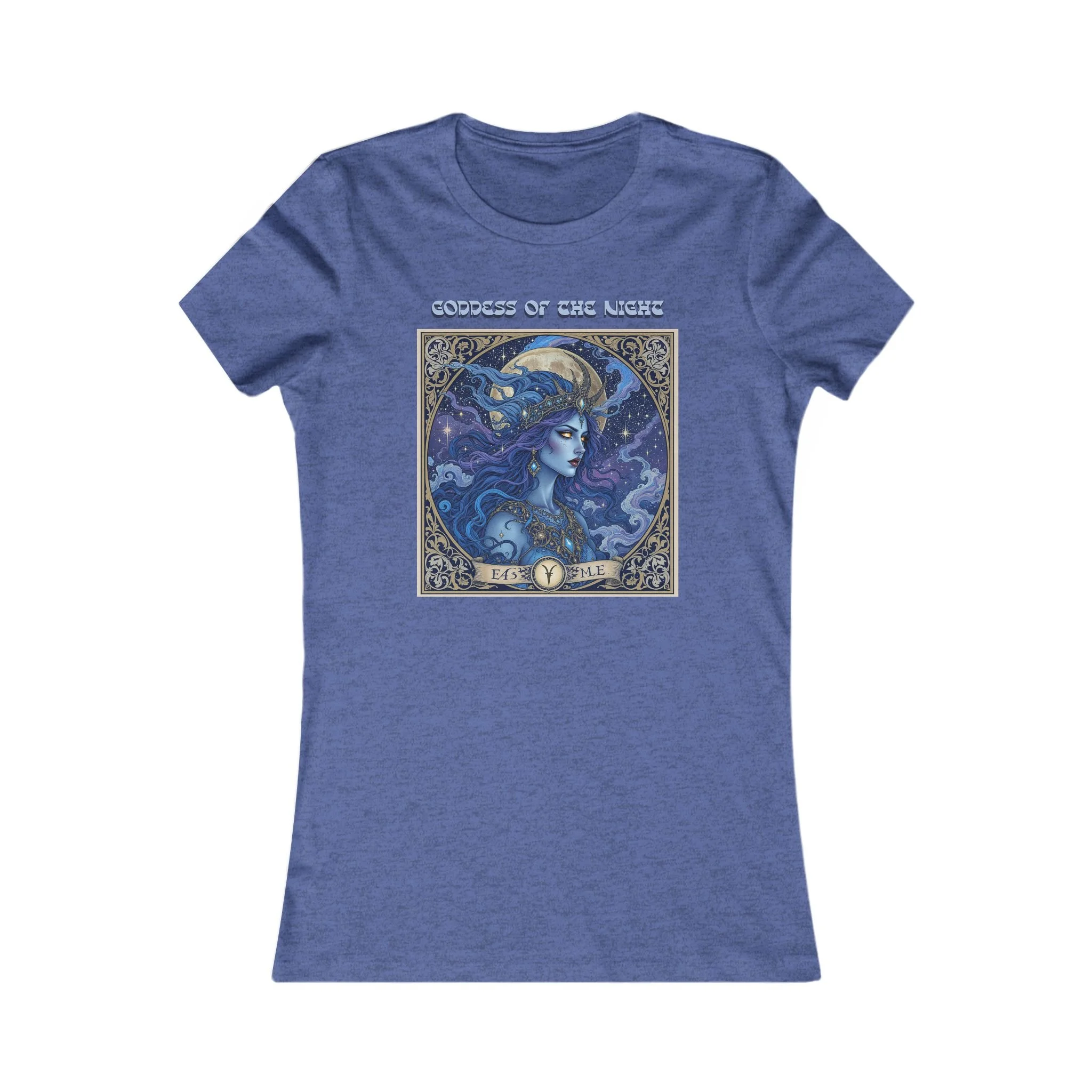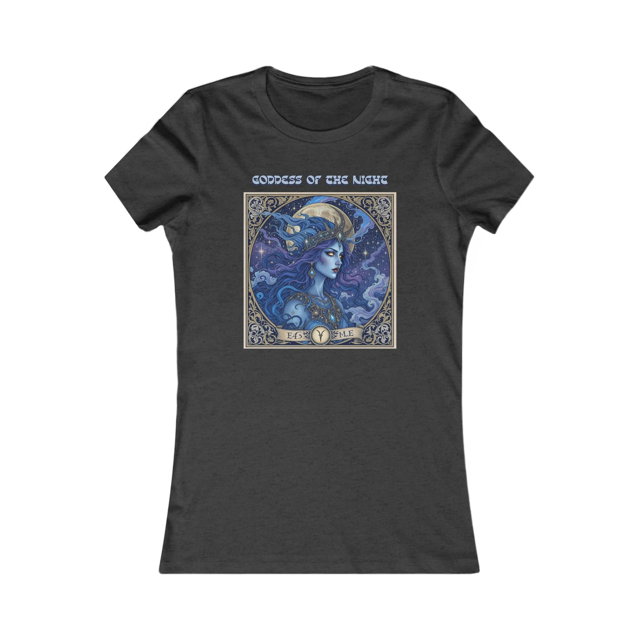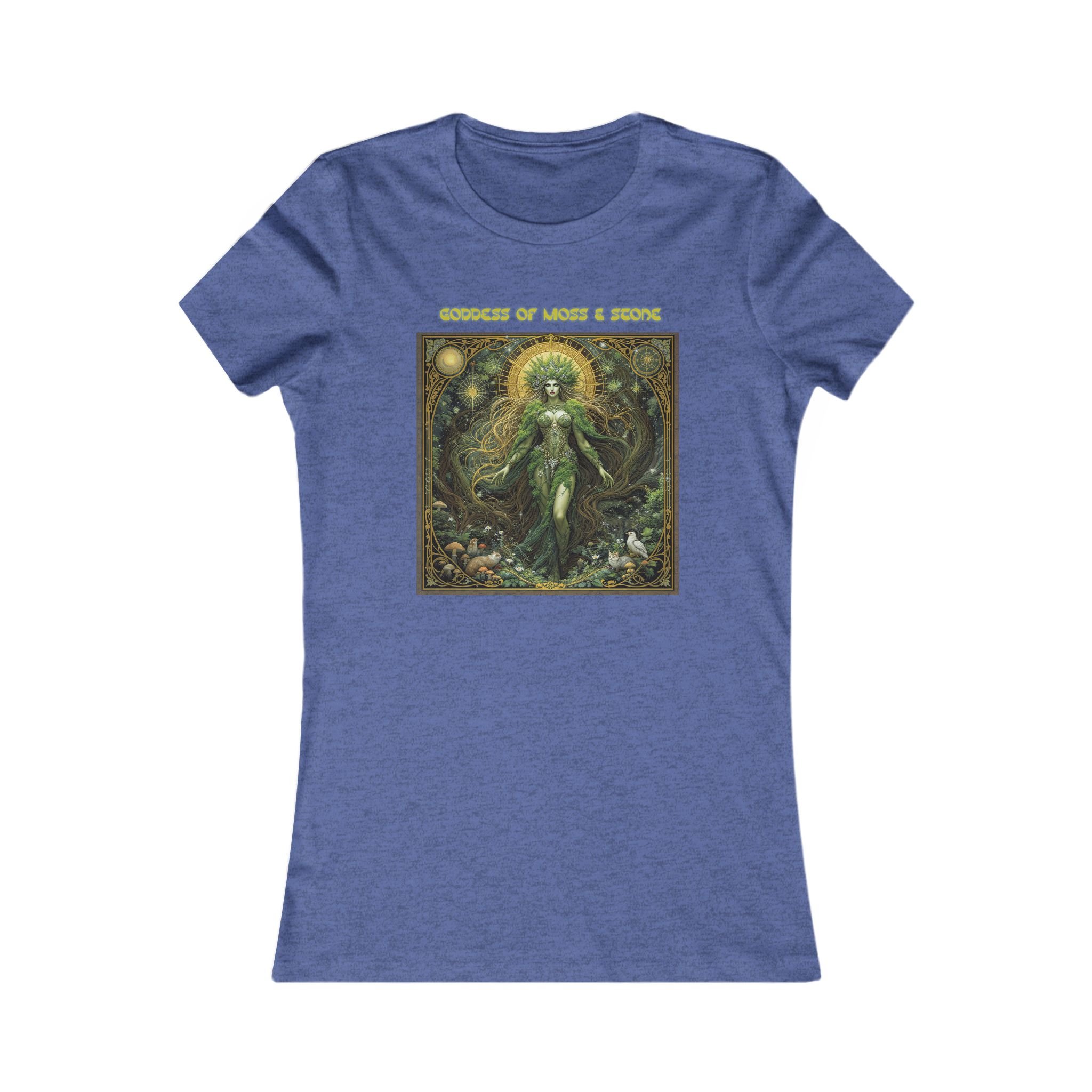 A slim, lightweight tee that feels like a second skin and carries a quiet, mystical presence. The art—an ornate, vintage-inspired goddess illustration framed in warm golds and muted earth tones—lands squarely on the chest, turning the shirt into a wearable talisman. It drapes close to the body without bulk, so the design stays front-and-center whether you’re layering it under a cardigan or wearing it solo. This tee speaks to those who collect soft, thoughtfully made pieces with a story: evenings lit by candles, record-player crackle, and a slow ritual of getting ready. It’s the kind of shirt you reach for when you want to feel grounded and a little enchanted.