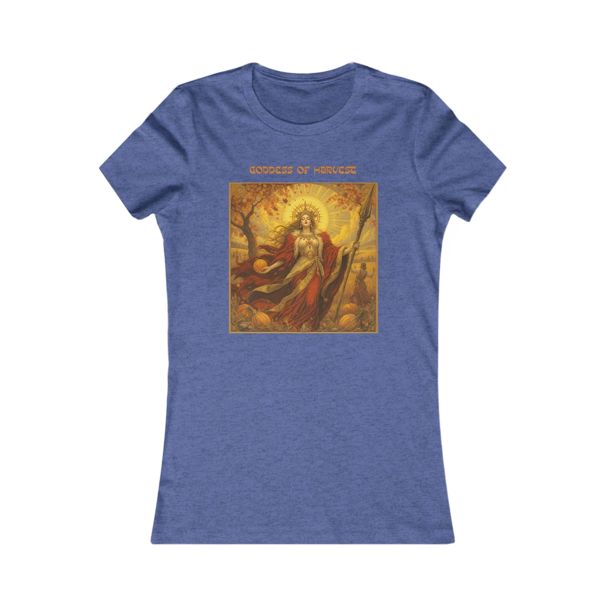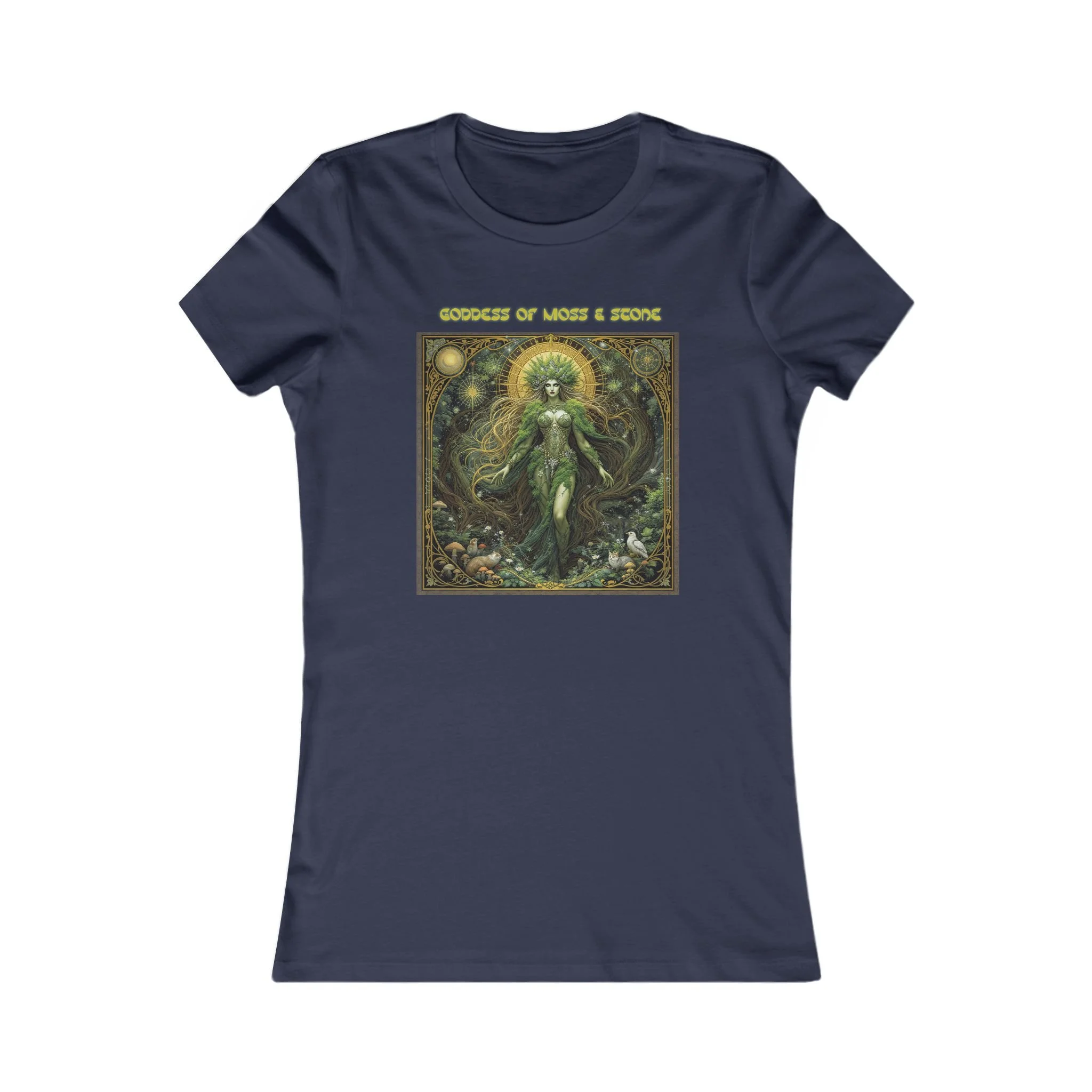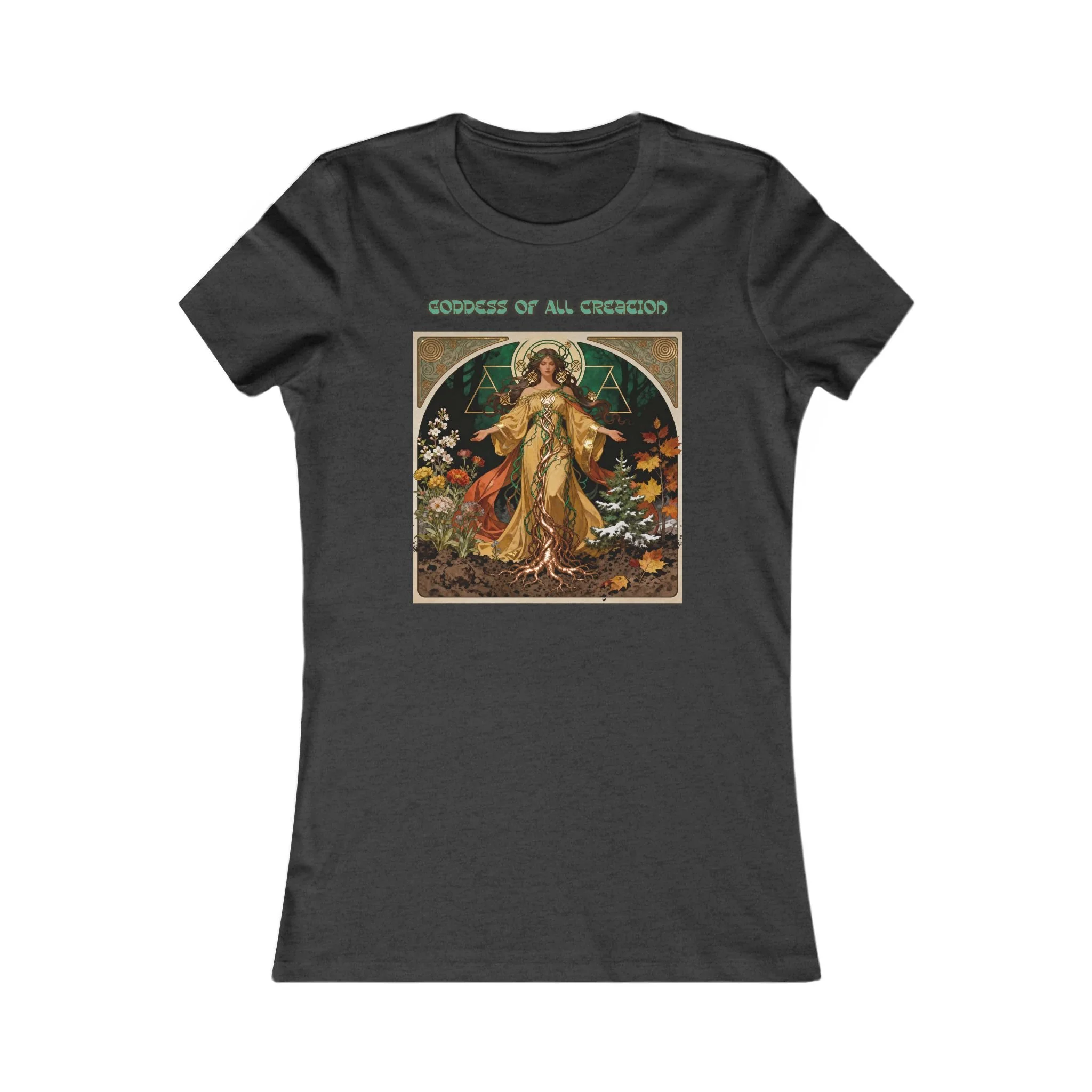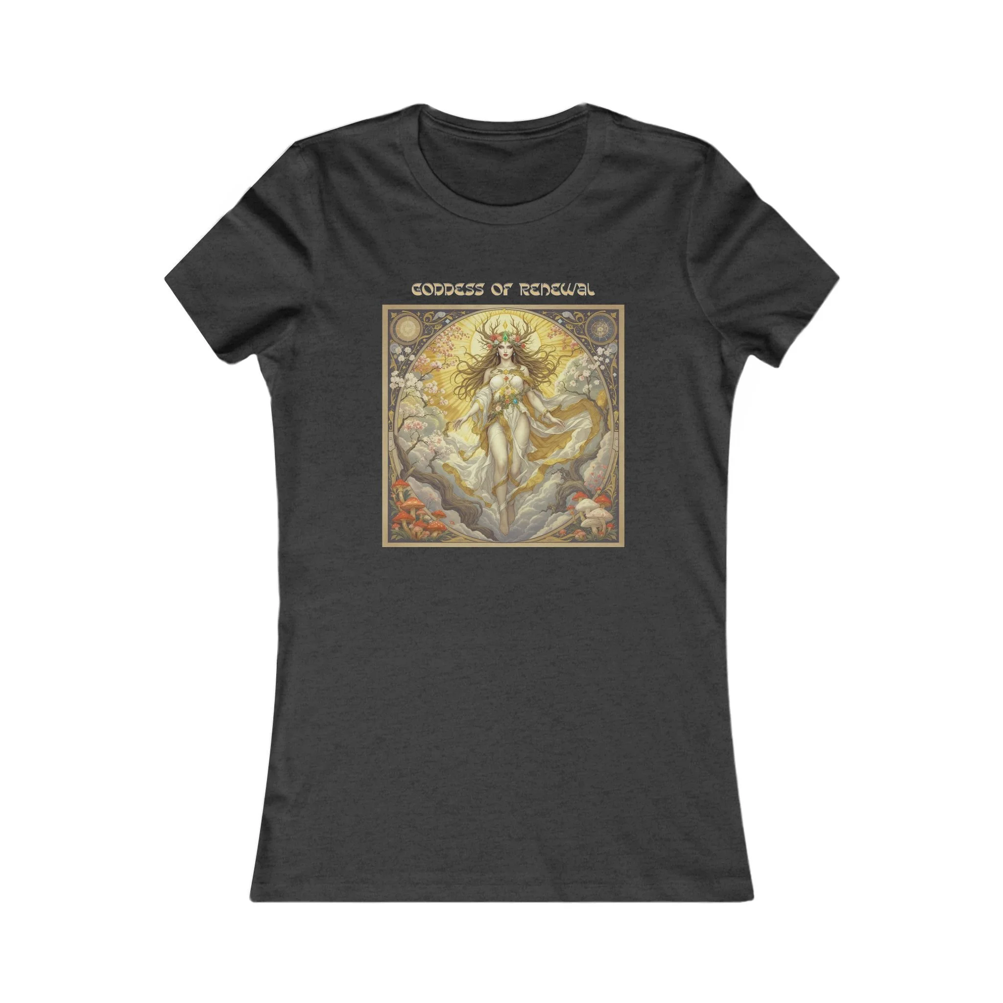 A slim, lightweight tee that feels like a second skin and carries a quiet, mystical presence. The art—an ornate, vintage-inspired goddess illustration framed in warm golds and muted earth tones—lands squarely on the chest, turning the shirt into a wearable talisman. It drapes close to the body without bulk, so the design stays front-and-center whether you’re layering it under a cardigan or wearing it solo. This tee speaks to those who collect soft, thoughtfully made pieces with a story: evenings lit by candles, record-player crackle, and a slow ritual of getting ready. It’s the kind of shirt you reach for when you want to feel grounded and a little enchanted.