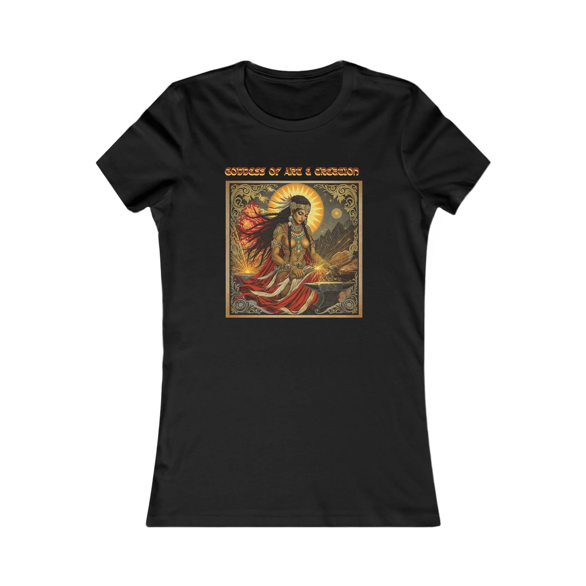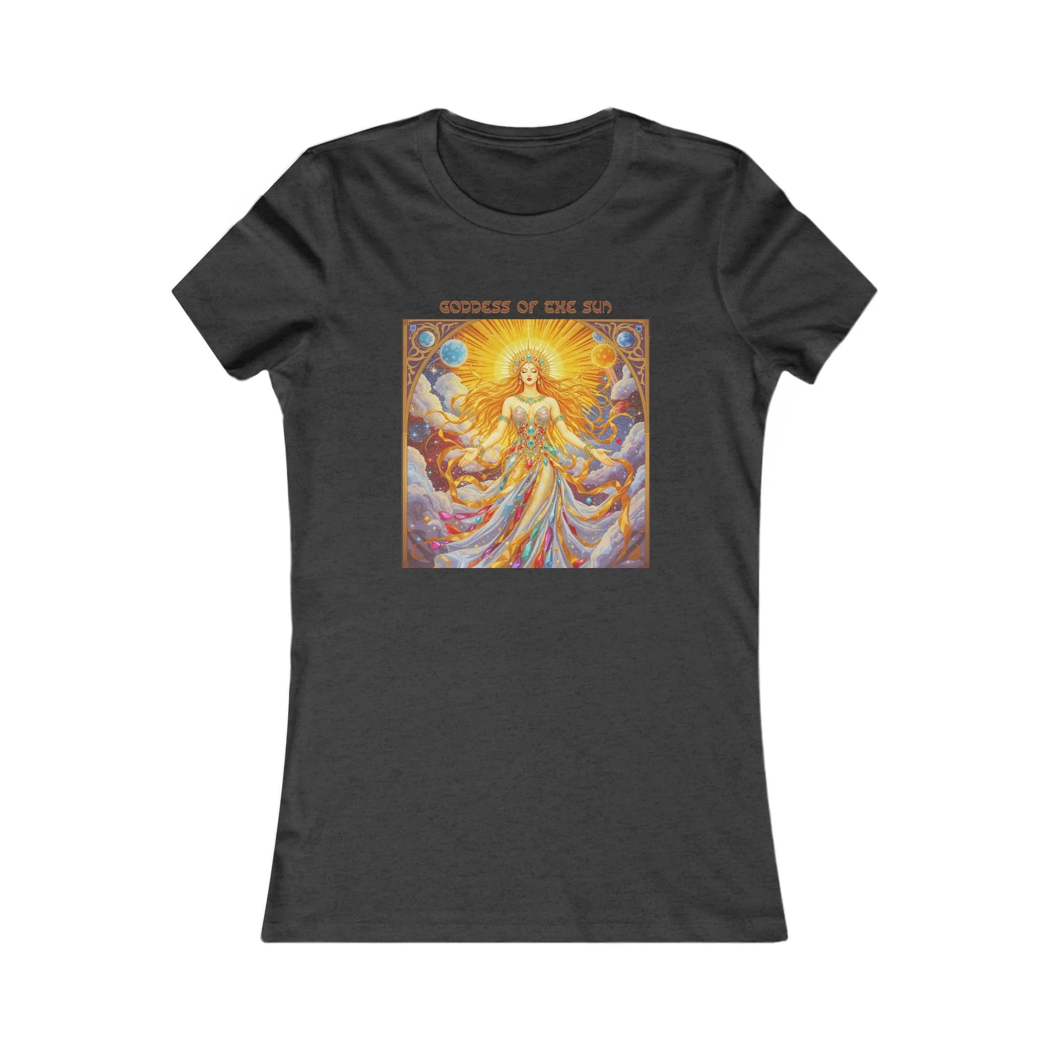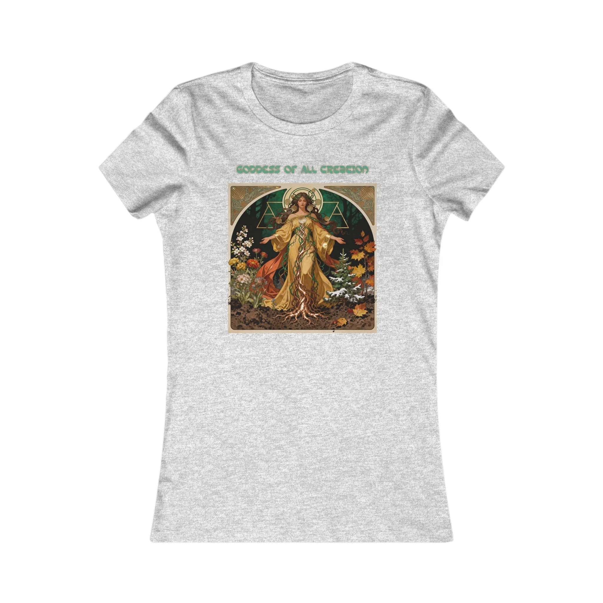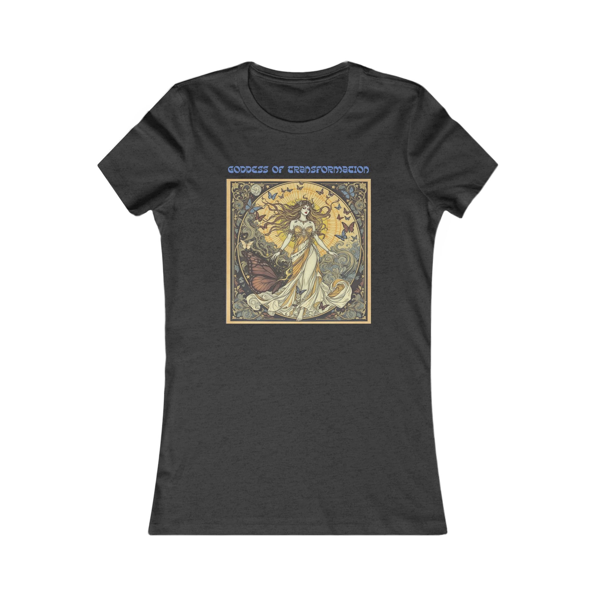 A slim, lightweight tee that feels like a second skin and carries a quiet, mystical presence. The art—an ornate, vintage-inspired goddess illustration framed in warm golds and muted earth tones—lands squarely on the chest, turning the shirt into a wearable talisman. It drapes close to the body without bulk, so the design stays front-and-center whether you’re layering it under a cardigan or wearing it solo. This tee speaks to those who collect soft, thoughtfully made pieces with a story: evenings lit by candles, record-player crackle, and a slow ritual of getting ready. It’s the kind of shirt you reach for when you want to feel grounded and a little enchanted.