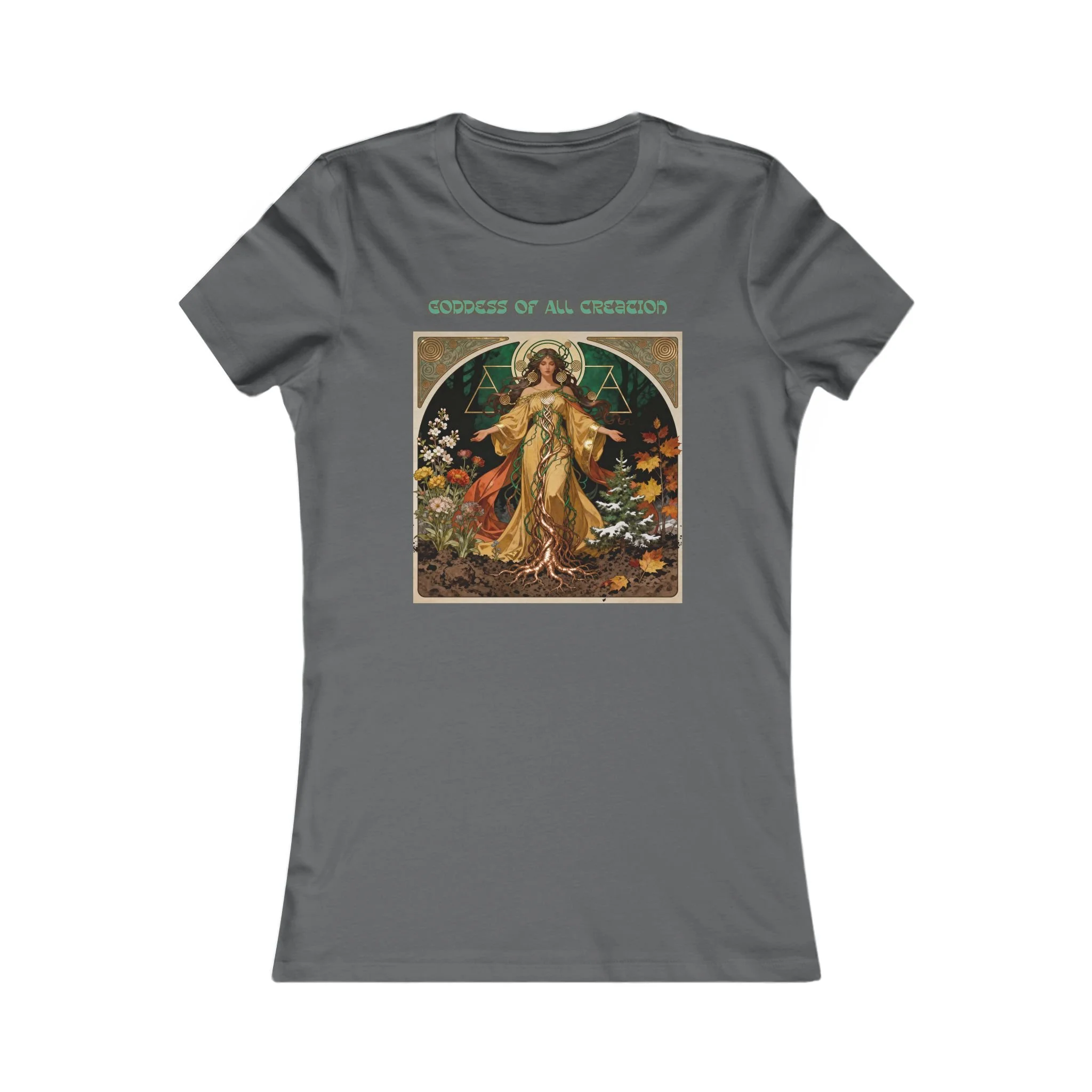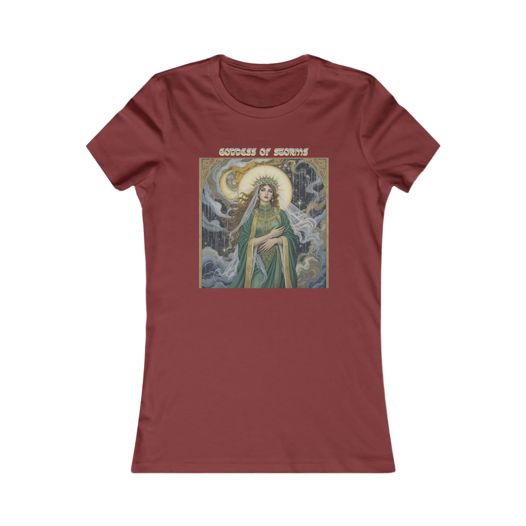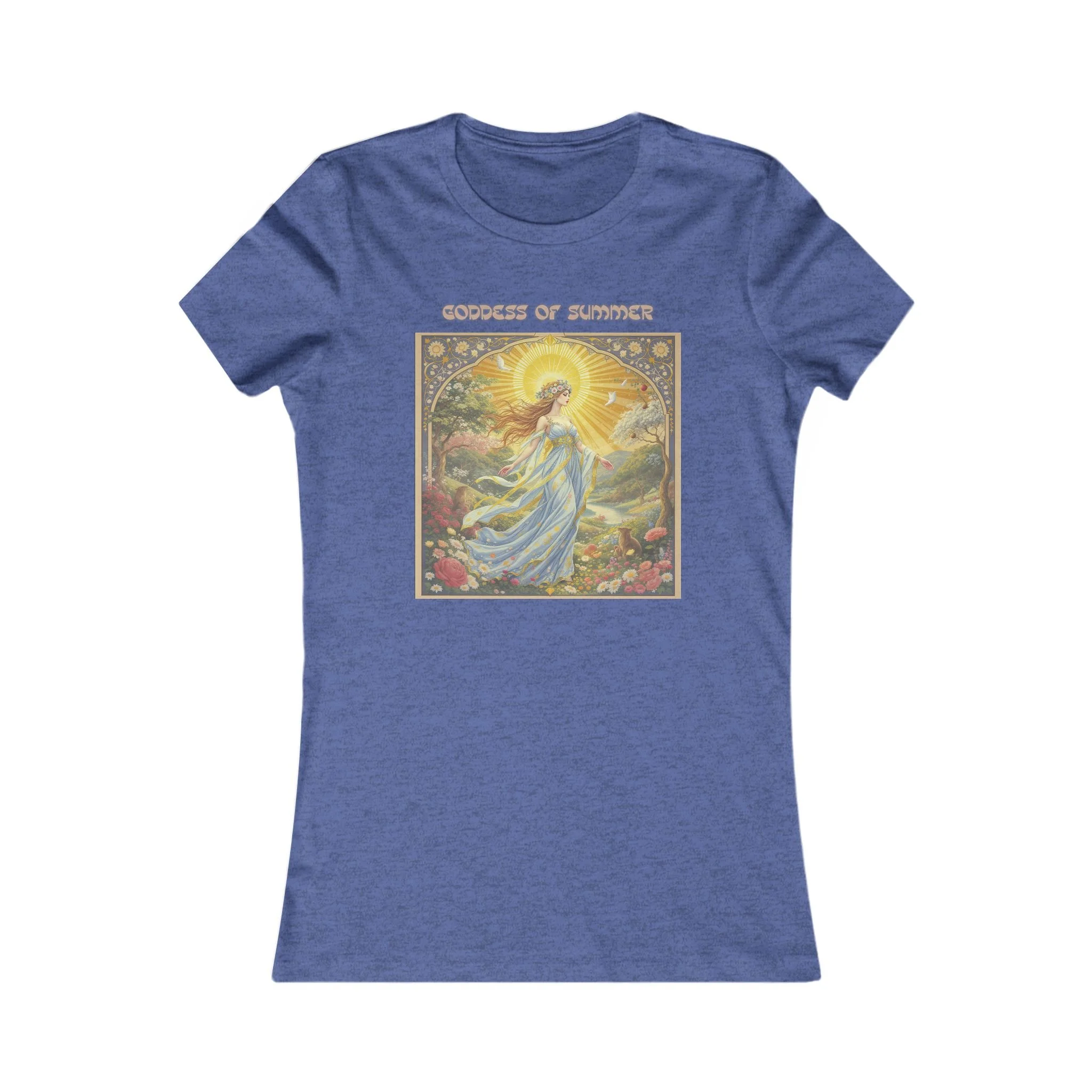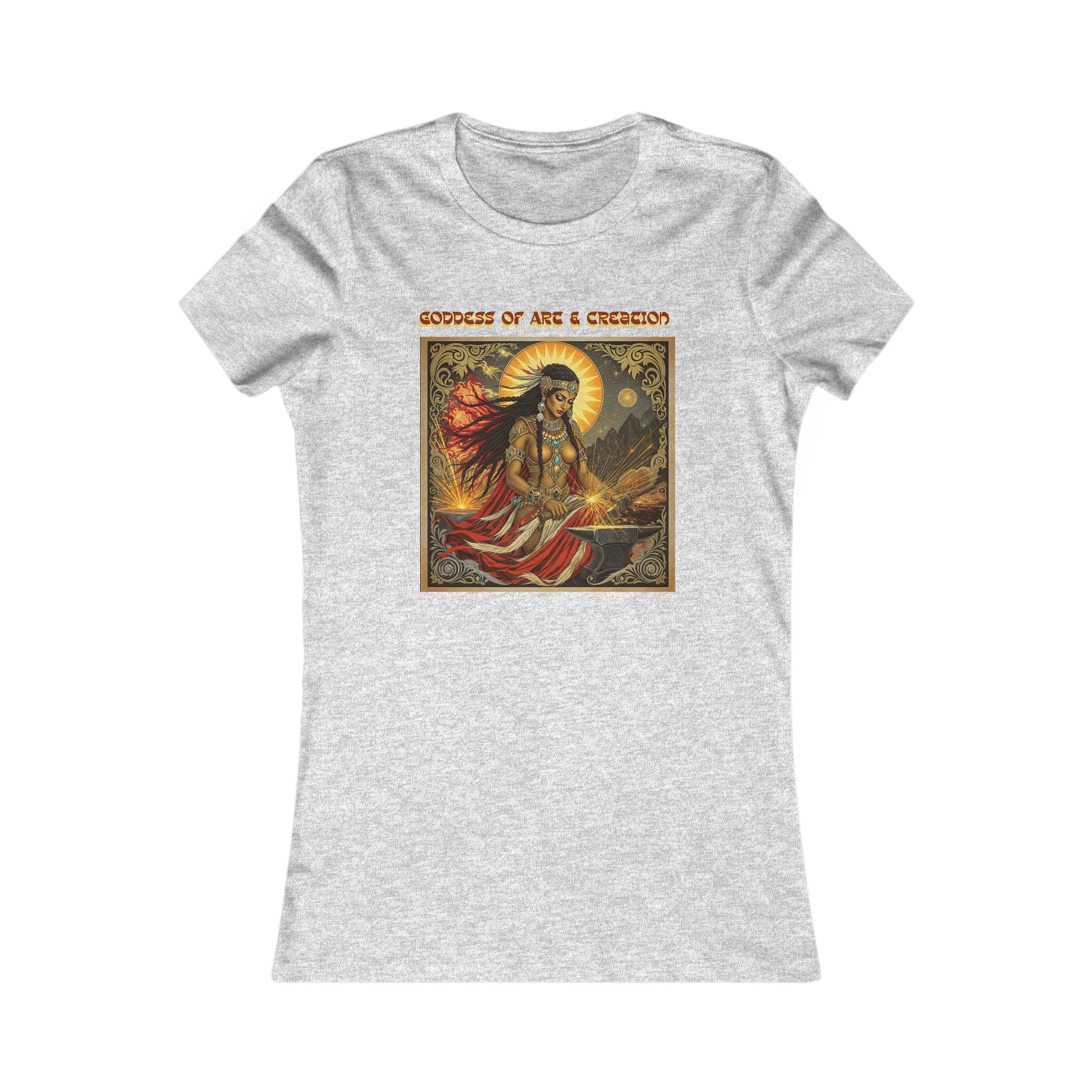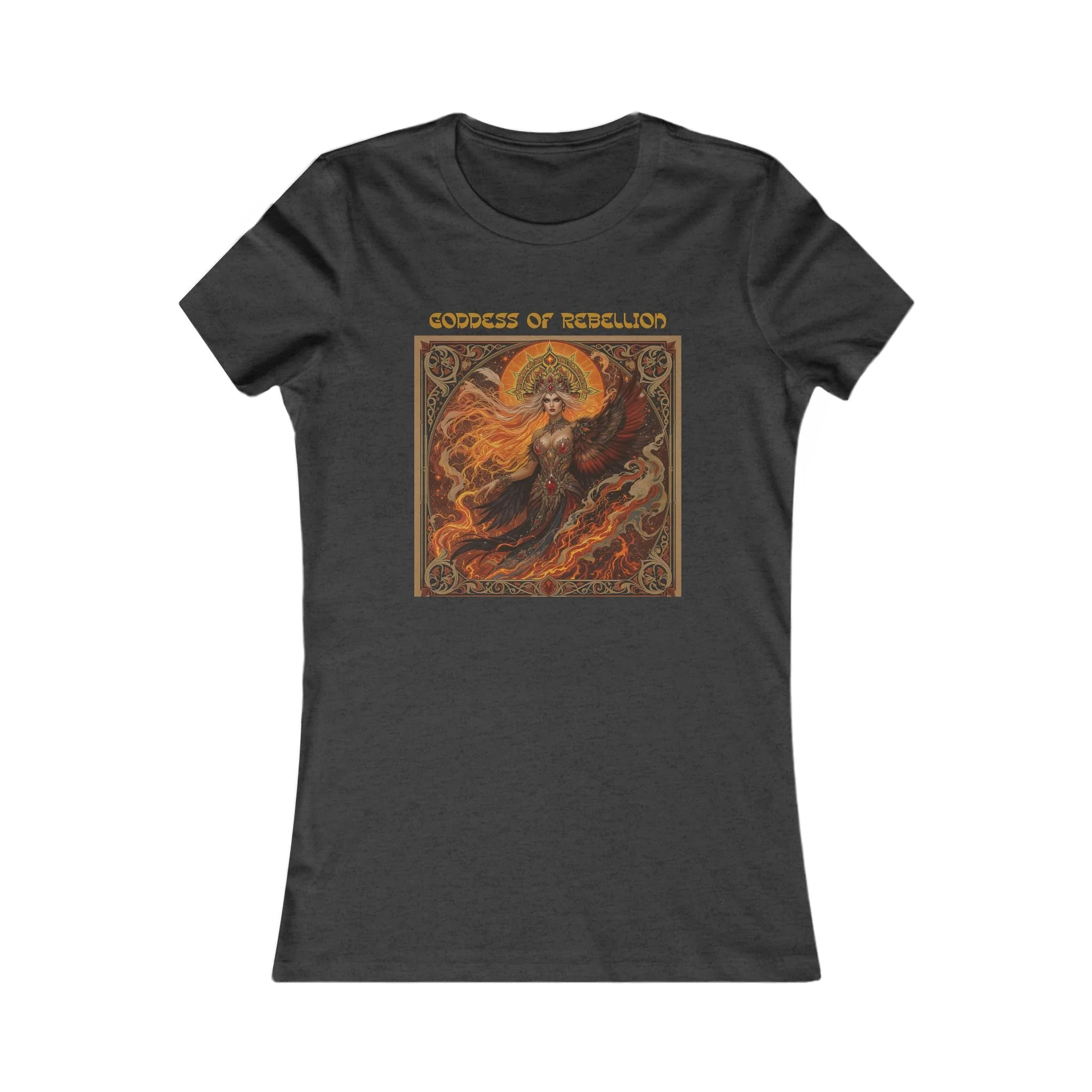 A slim, lightweight tee that feels like a second skin and carries a quiet, mystical presence. The art—an ornate, vintage-inspired goddess illustration framed in warm golds and muted earth tones—lands squarely on the chest, turning the shirt into a wearable talisman. It drapes close to the body without bulk, so the design stays front-and-center whether you’re layering it under a cardigan or wearing it solo. This tee speaks to those who collect soft, thoughtfully made pieces with a story: evenings lit by candles, record-player crackle, and a slow ritual of getting ready. It’s the kind of shirt you reach for when you want to feel grounded and a little enchanted.