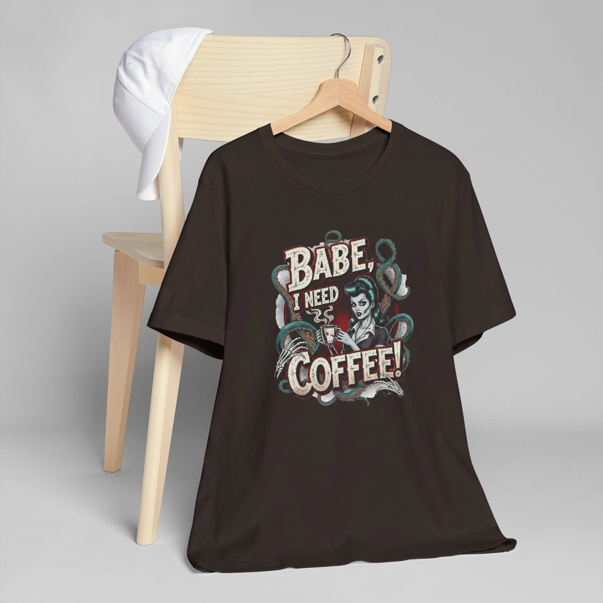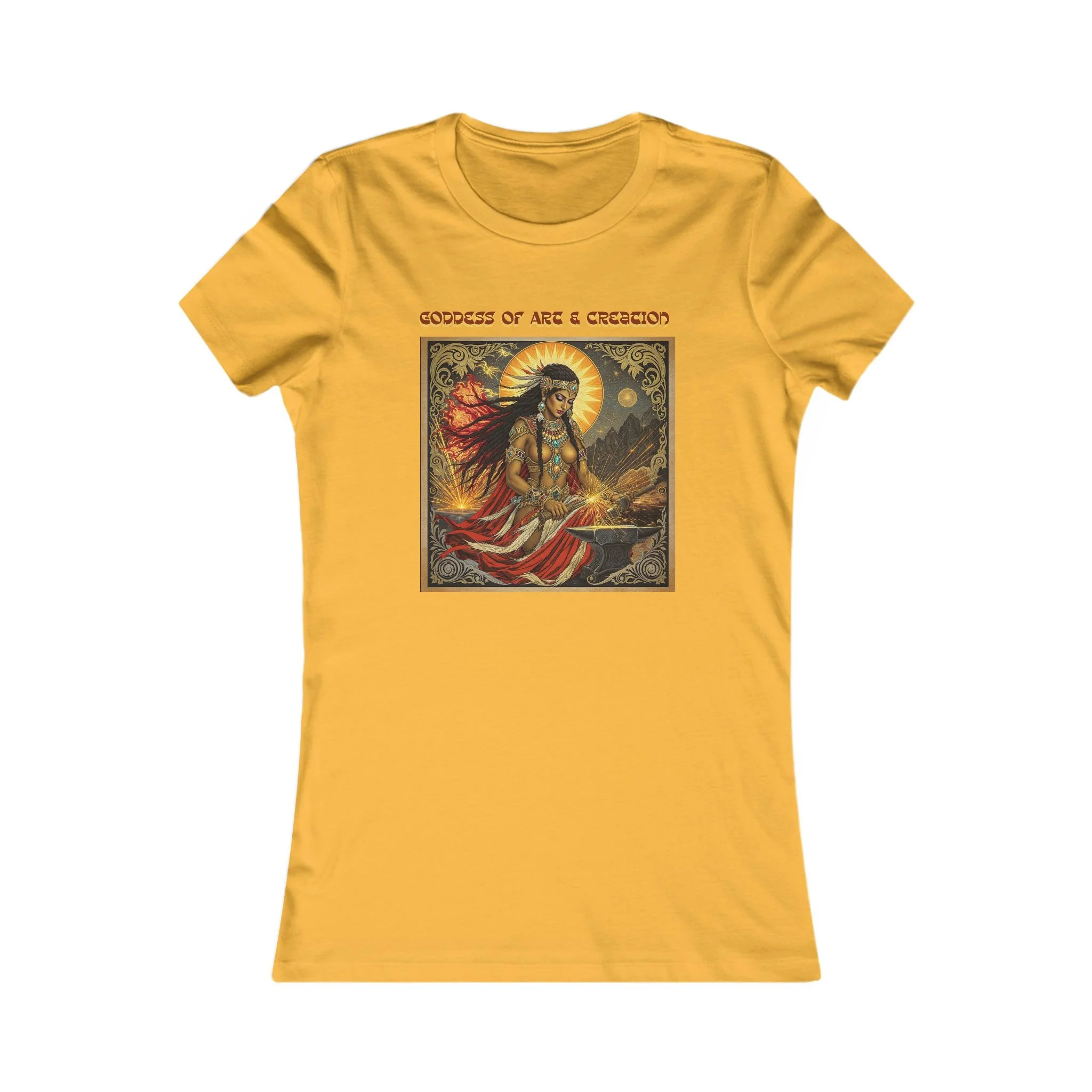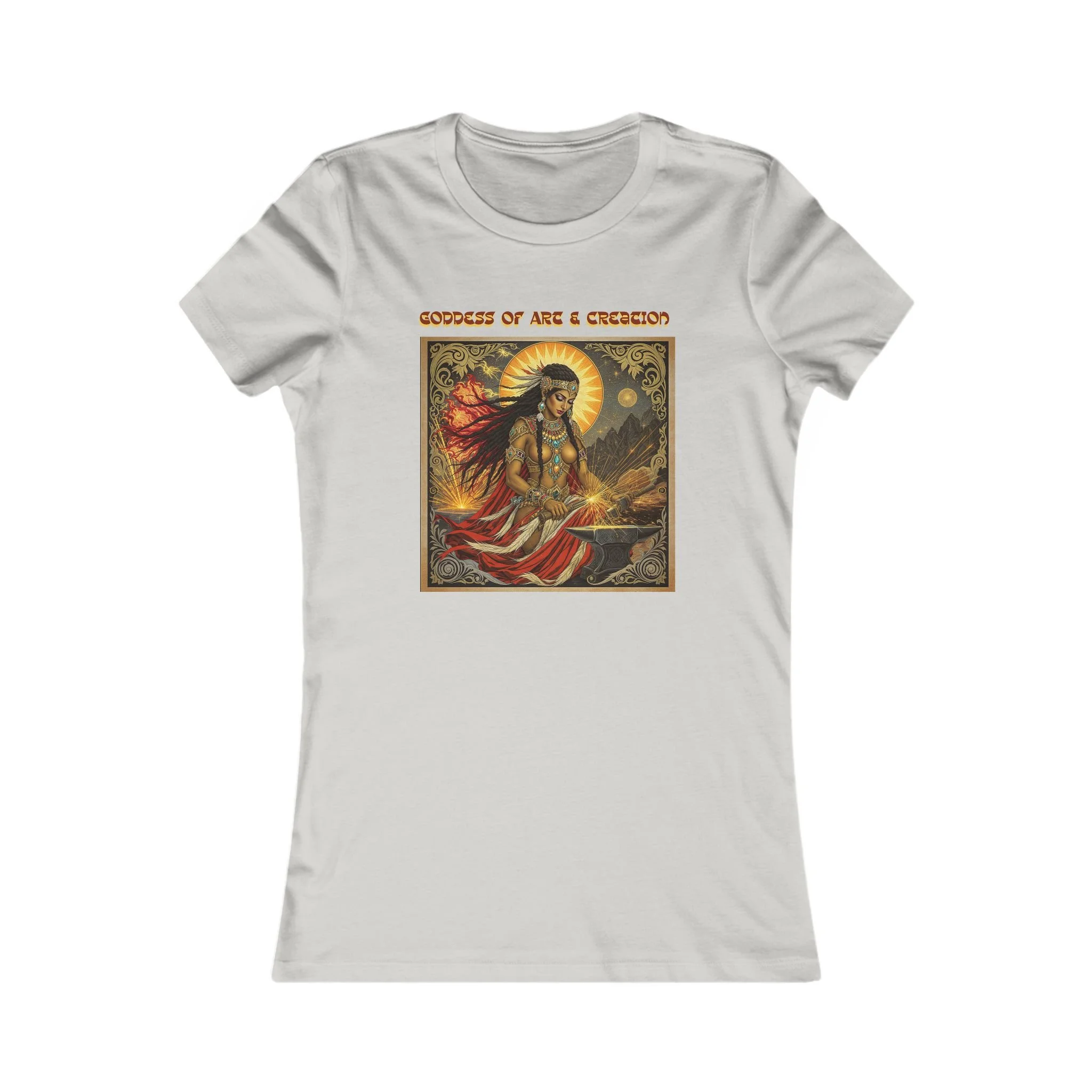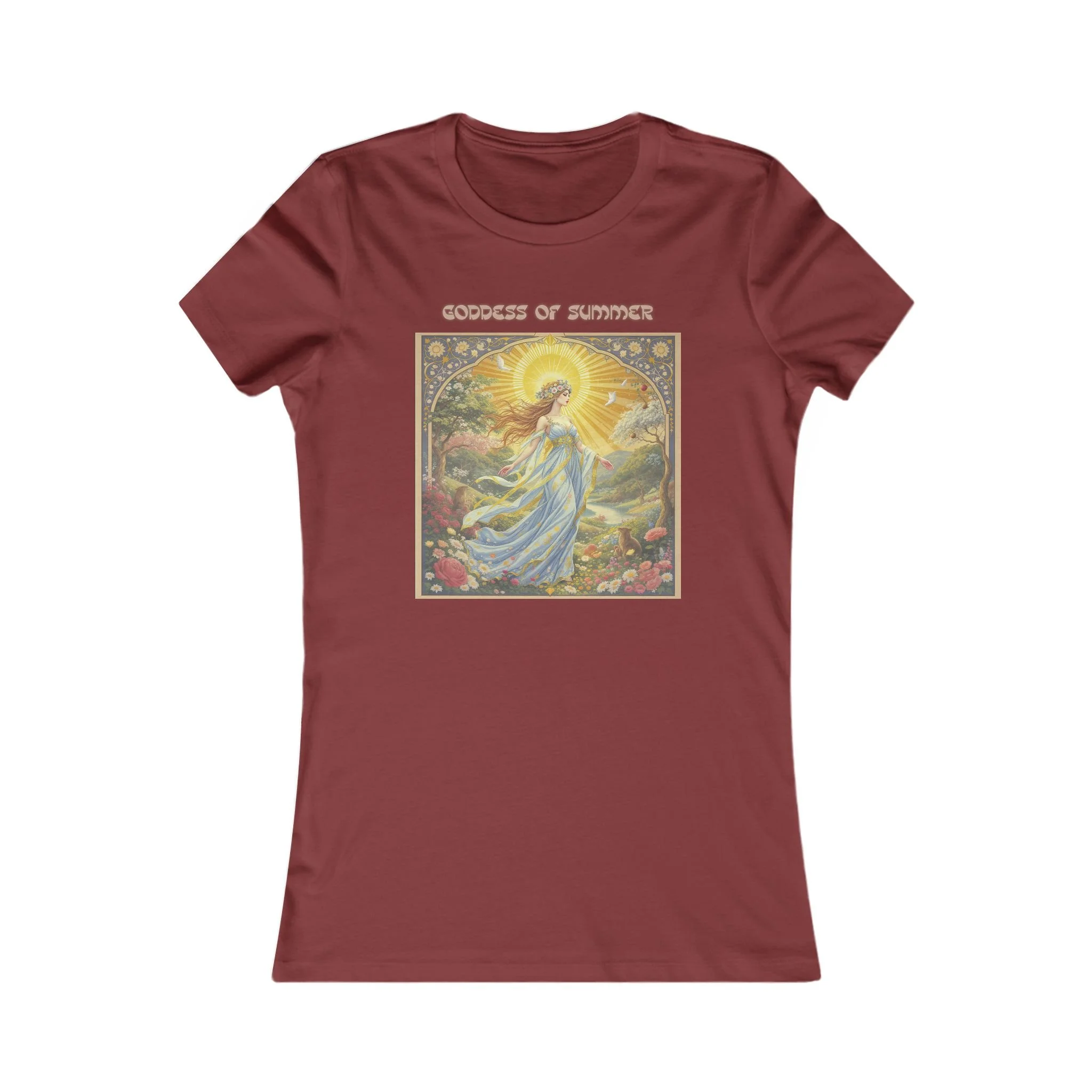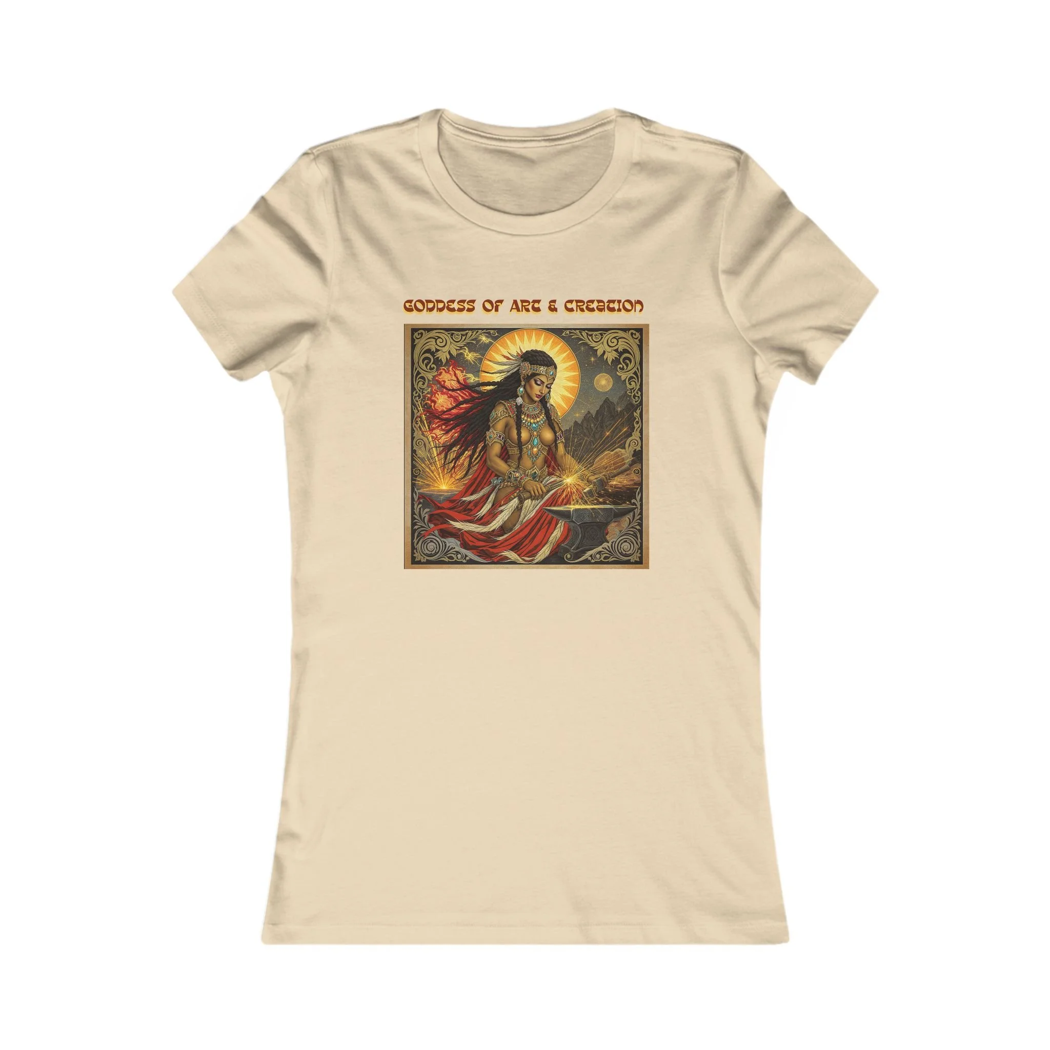 A slim, lightweight tee that feels like a second skin and carries a quiet, mystical presence. The art—an ornate, vintage-inspired goddess illustration framed in warm golds and muted earth tones—lands squarely on the chest, turning the shirt into a wearable talisman. It drapes close to the body without bulk, so the design stays front-and-center whether you’re layering it under a cardigan or wearing it solo. This tee speaks to those who collect soft, thoughtfully made pieces with a story: evenings lit by candles, record-player crackle, and a slow ritual of getting ready. It’s the kind of shirt you reach for when you want to feel grounded and a little enchanted.