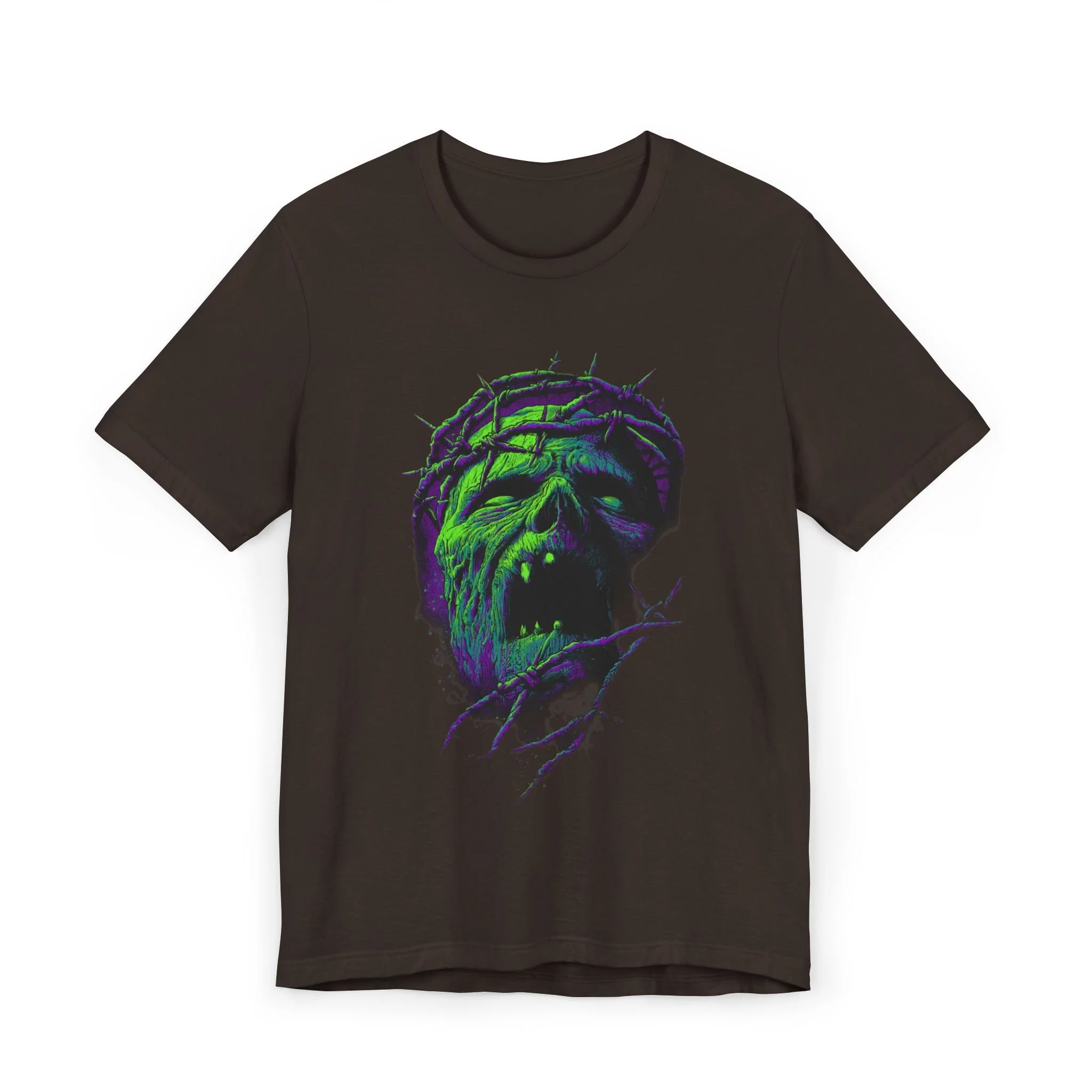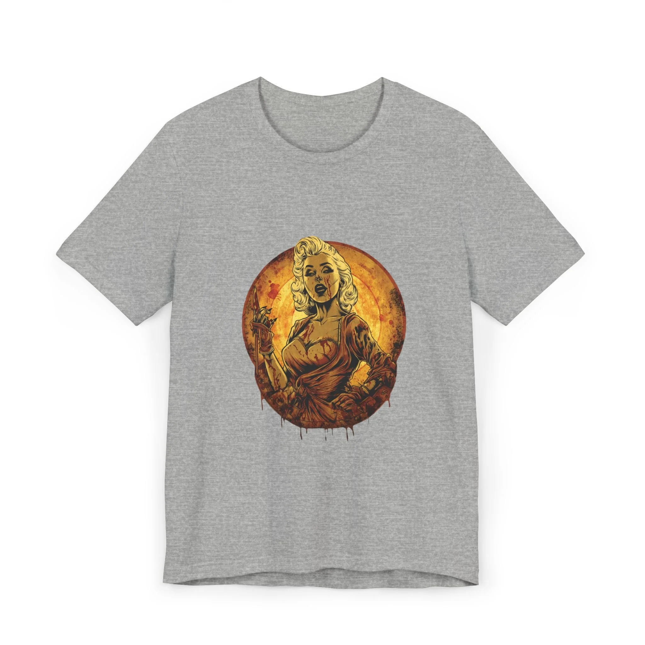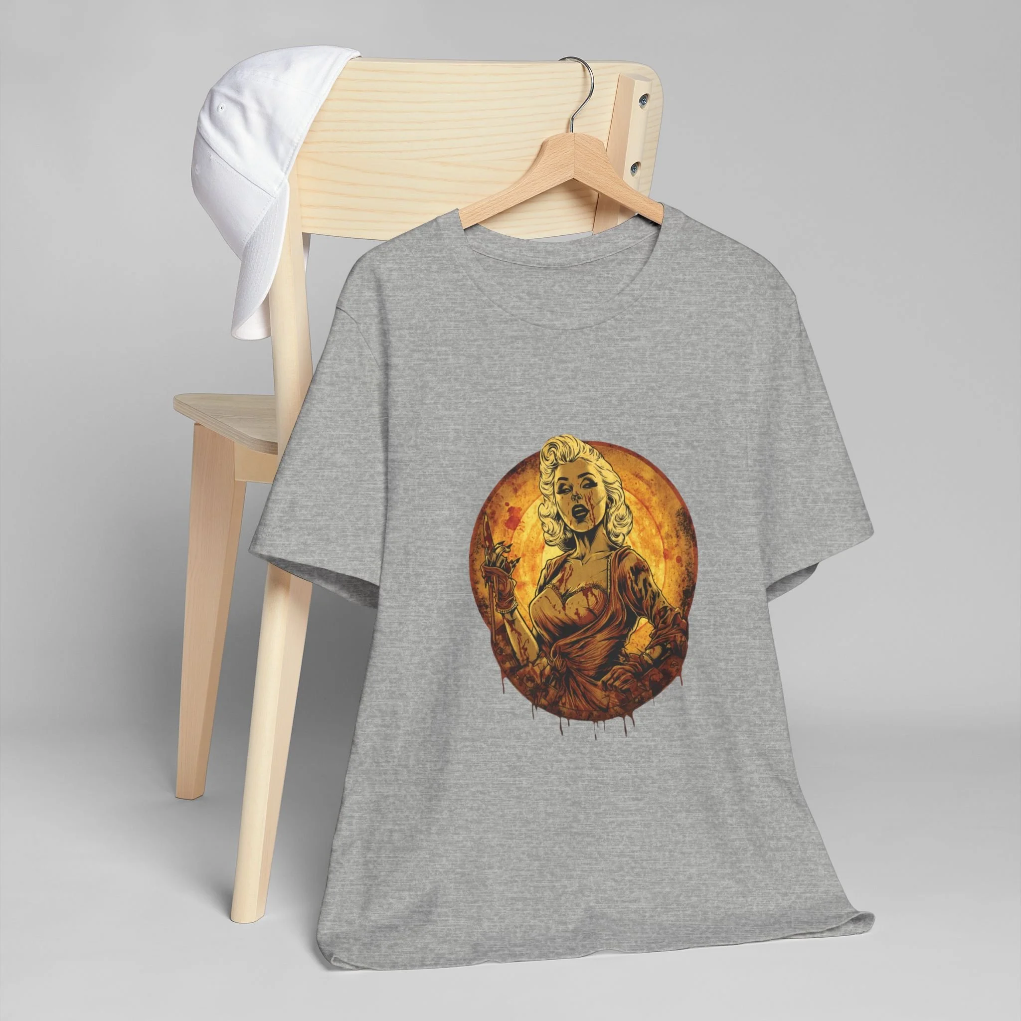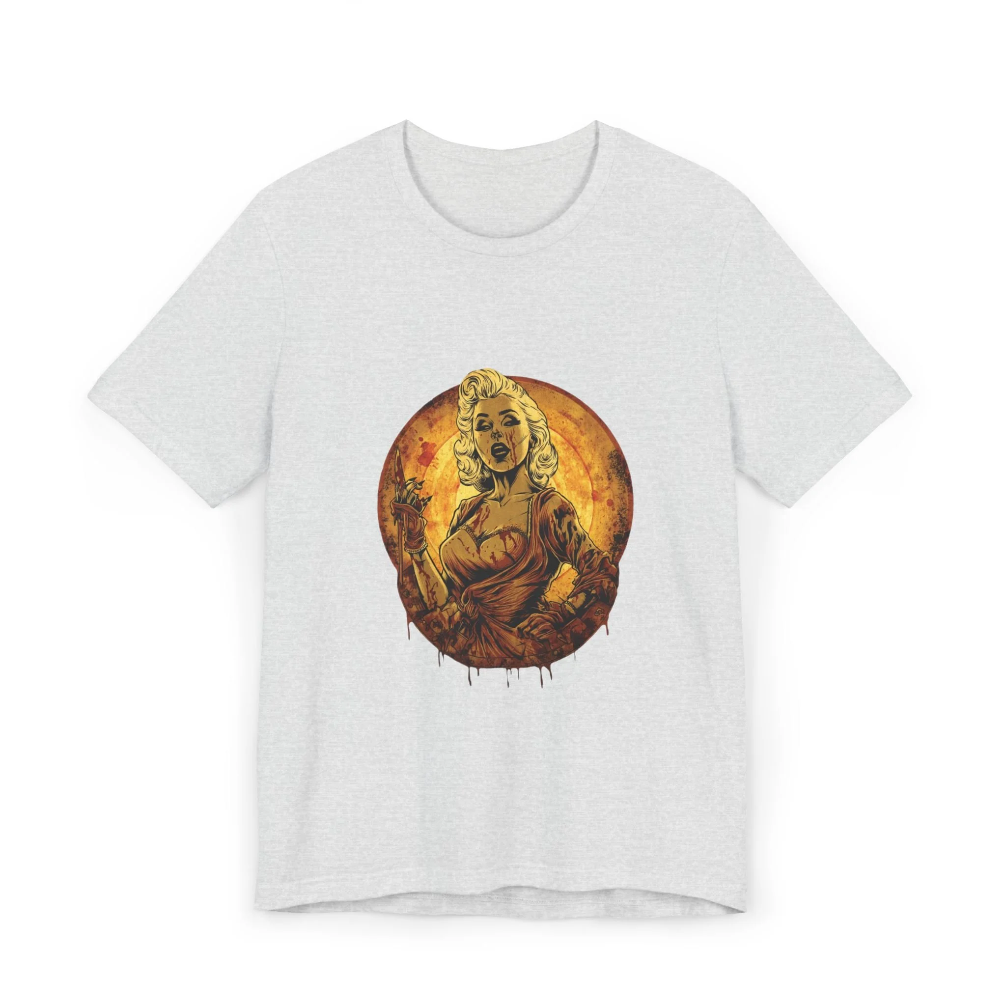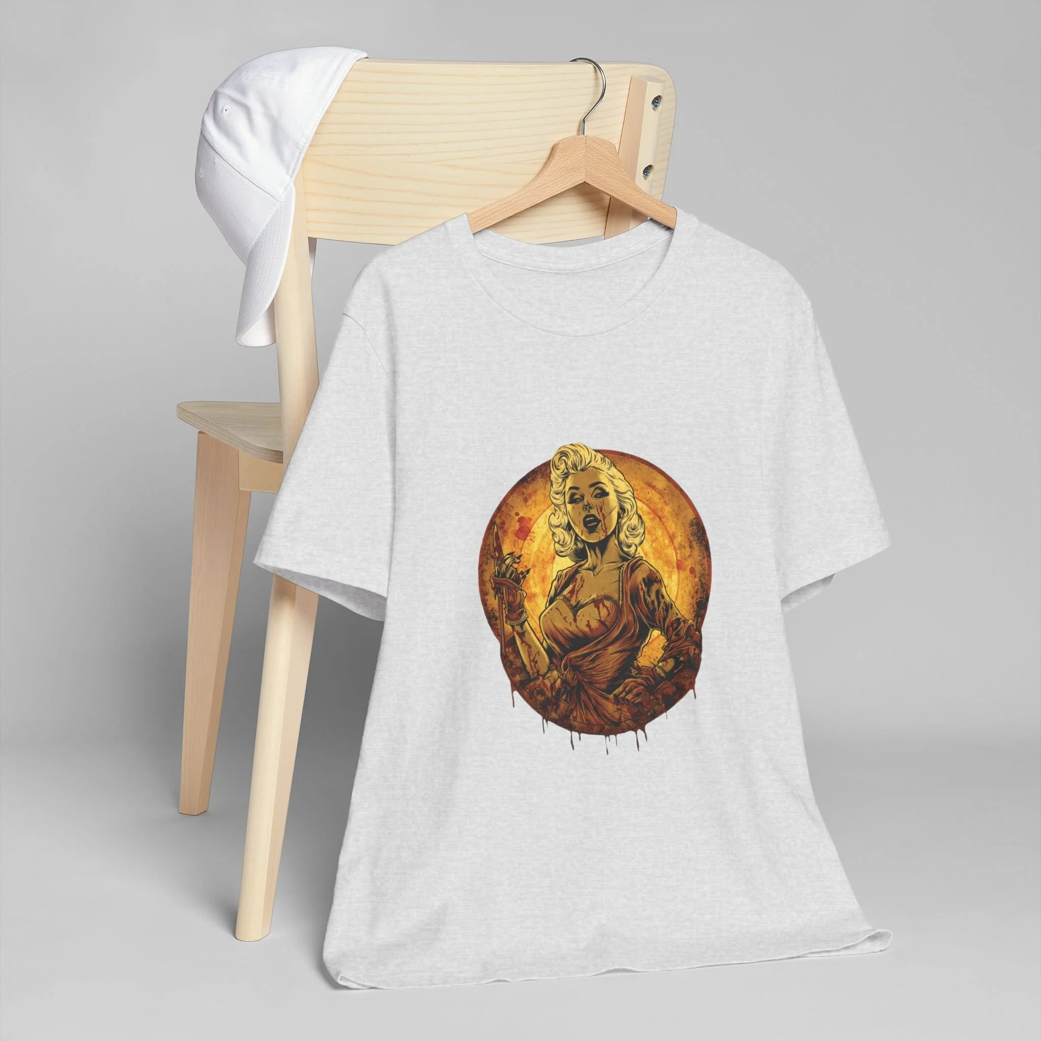 A slim-fit tee that carries the hush of a moonlit winter forest. The artwork shows a pale, ethereal figure framed by falling snow and a full moon — a quiet, gothic elegance that pairs easily with layered jackets or flowing skirts. Lightweight and form-fitting, this shirt becomes a wearable mood: cool nights, candlelit playlists, and slow walks home through frosted streets. Wear it to nights out with friends who appreciate darker aesthetics, to seasonal gatherings, or when you want to lean into a calm, otherworldly vibe.