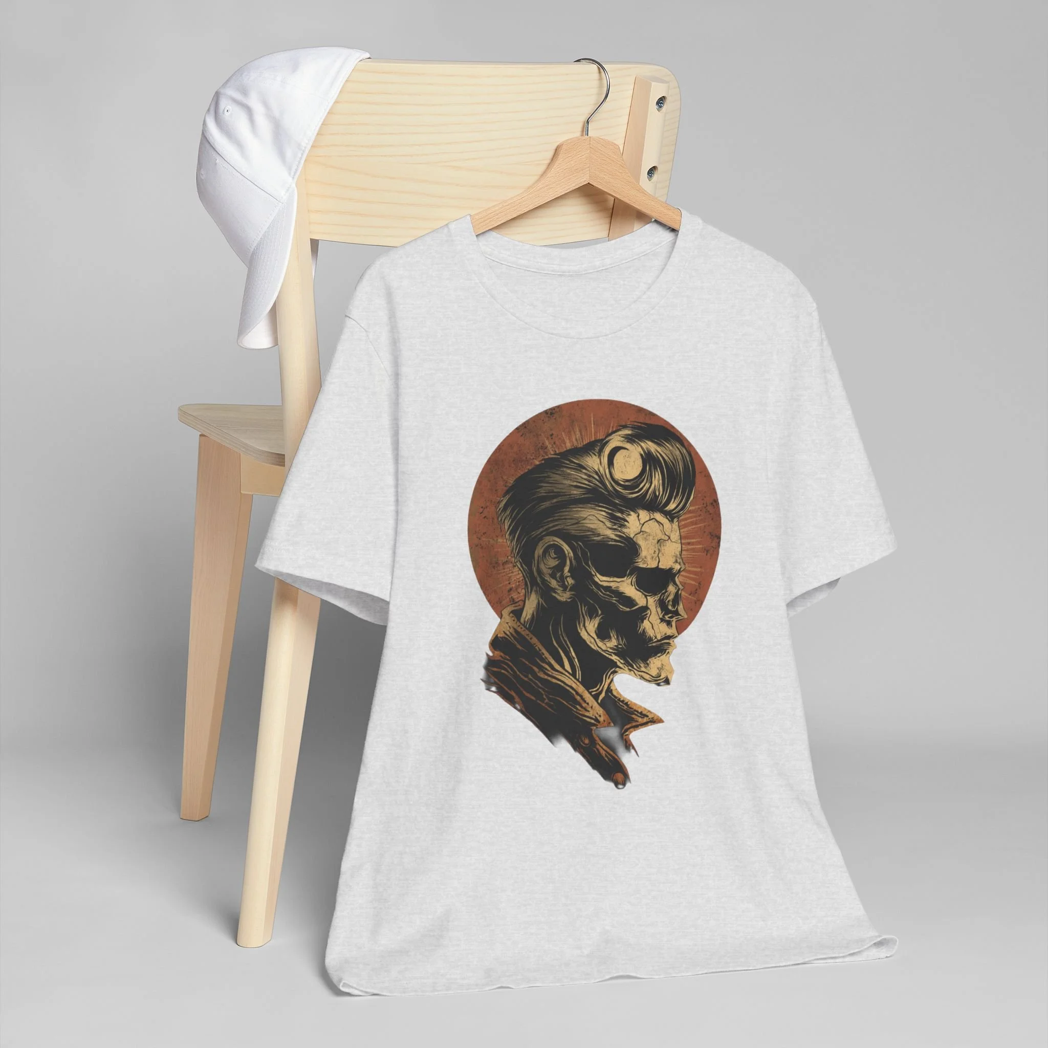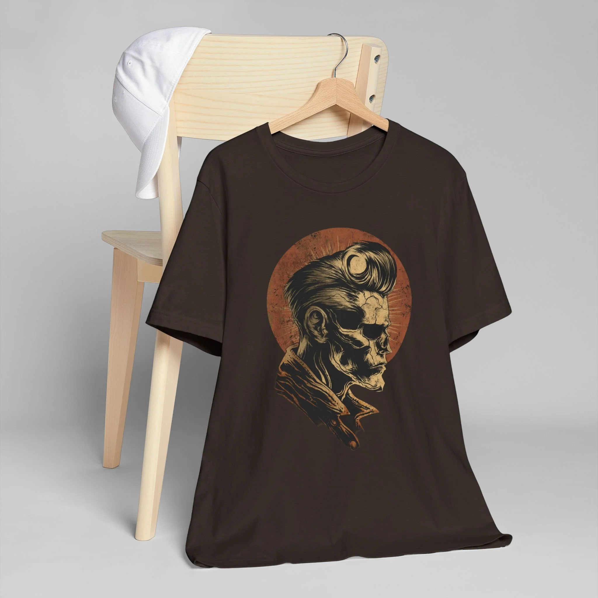 Wear it to late-night shows, gallery openings, or slow weekend coffee runs. It layers well beneath an oversized cardigan or under a leather jacket for contrast. The tone is contemplative: this tee pairs with worn denim, stacked boots, and playlists that linger on cinematic instrumentals. If you collect music posters, vintage prints, or little talismans, this shirt joins that story — a low-key statement that hints at curiosity, a love of old illustrations, and an eye for detail.
