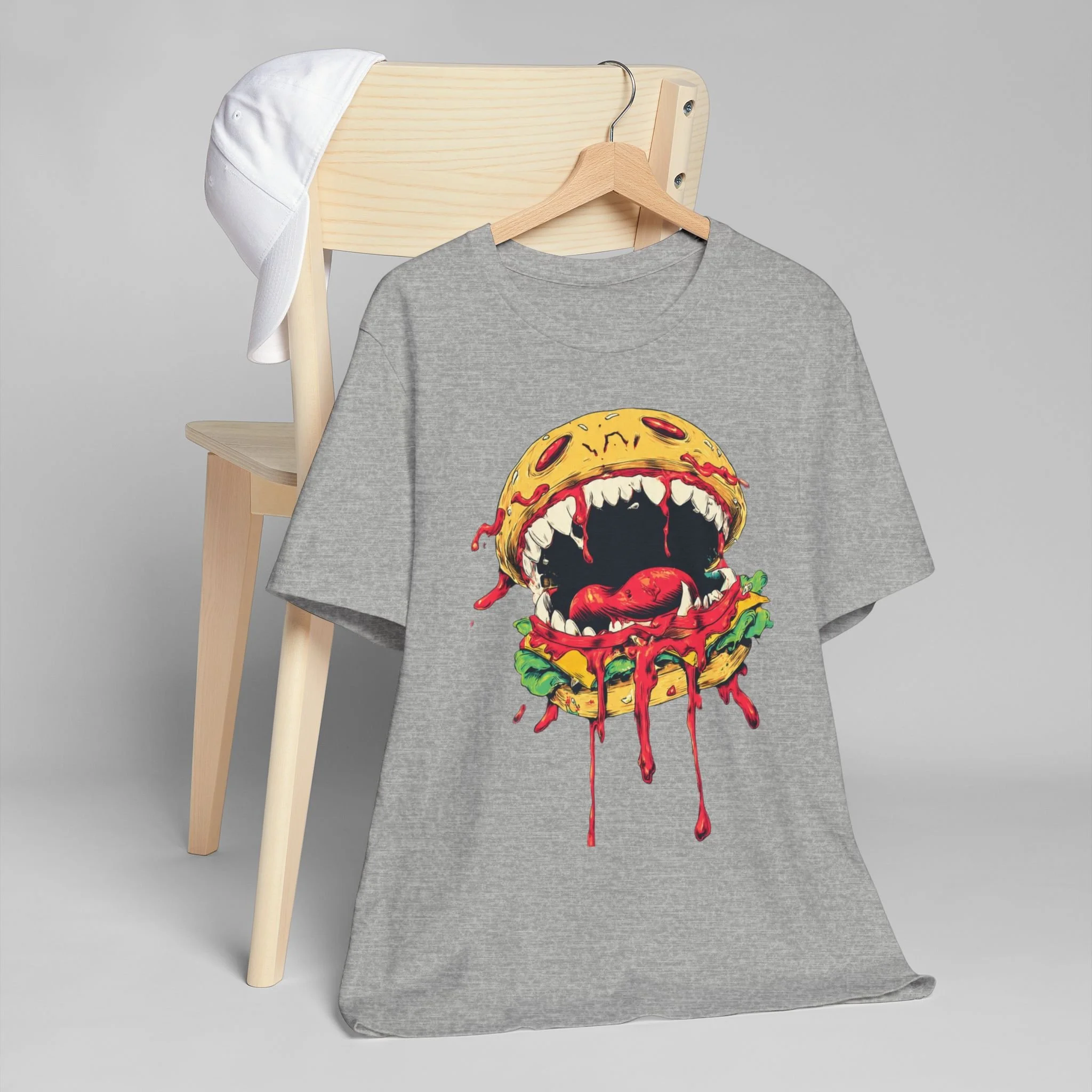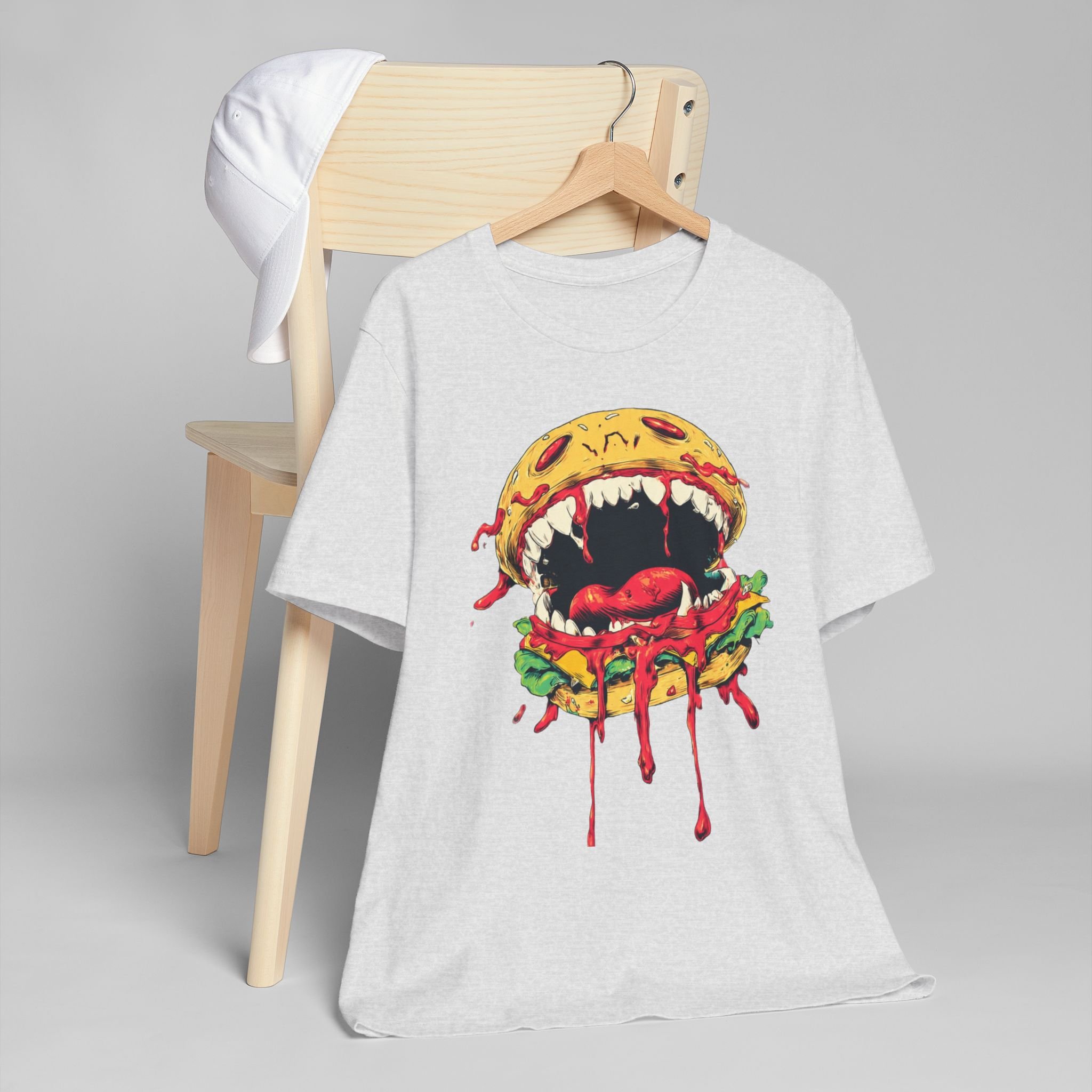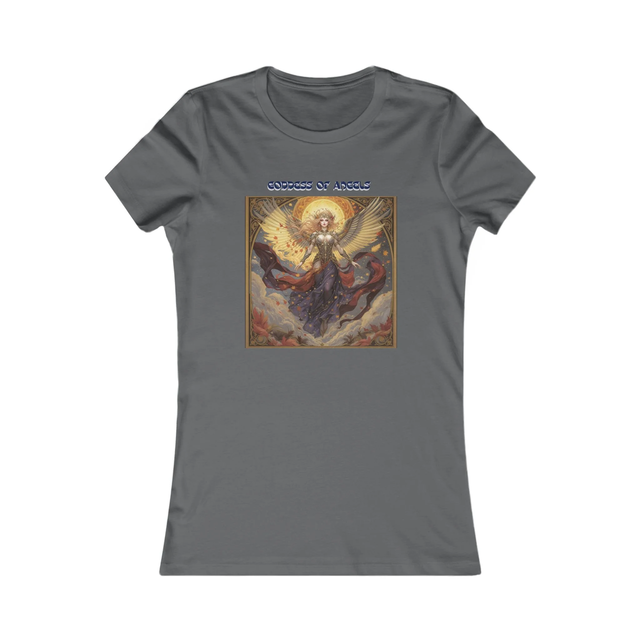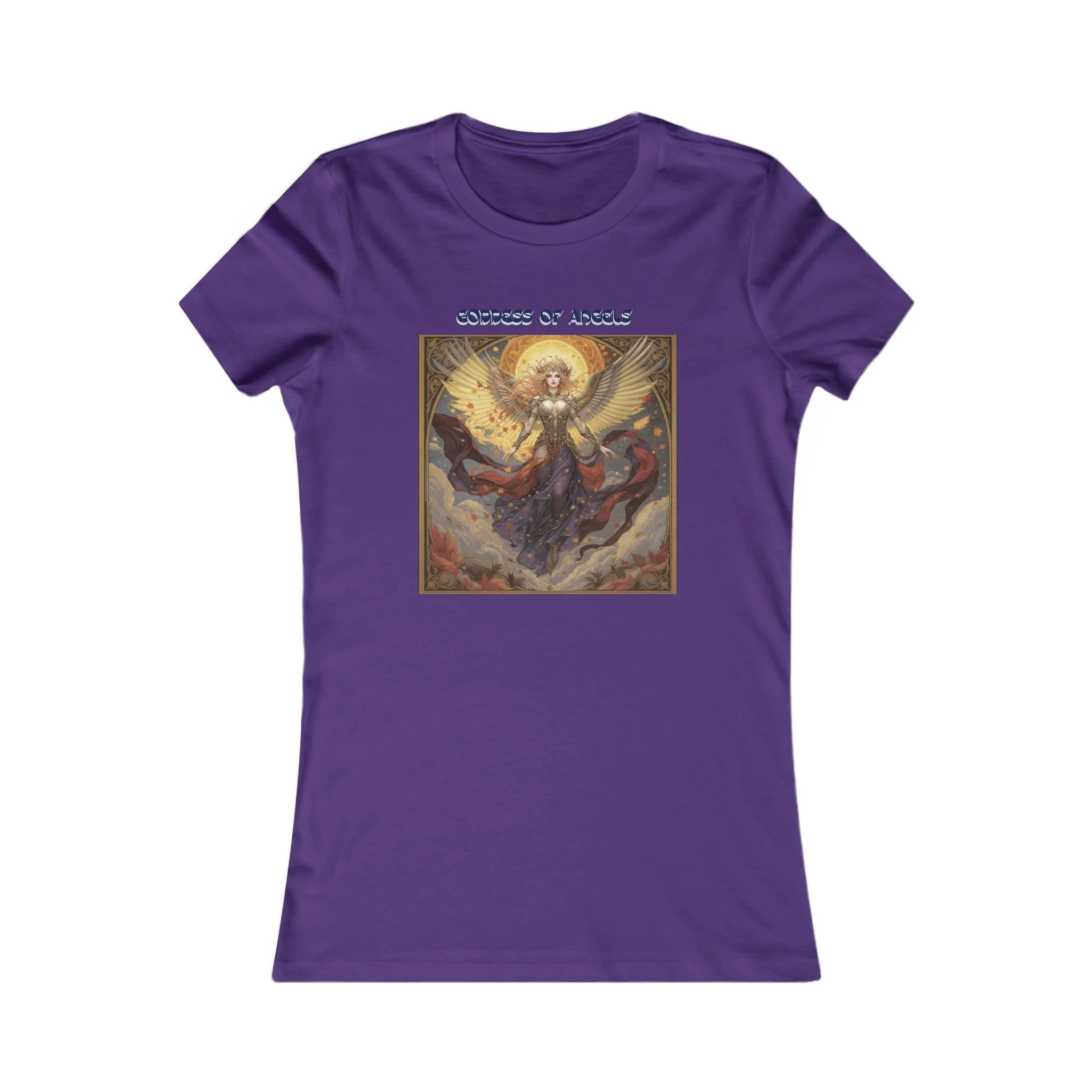 This slim-fit tee carries an old-world, mythic illustration at its heart — a radiant winged figure framed by clouds and twilight, with subtle lettering above. Lightweight and soft to the touch, it sits closer to the body and falls a bit longer, creating a flattering silhouette under jackets or worn alone. The dark background lets the warm golds and muted reds of the artwork glow, giving the shirt a wearable piece-of-art vibe. It’s for someone who prefers clothing that feels personal and quietly expressive — a t-shirt that reads like a favorite album cover or an art print you can move in.