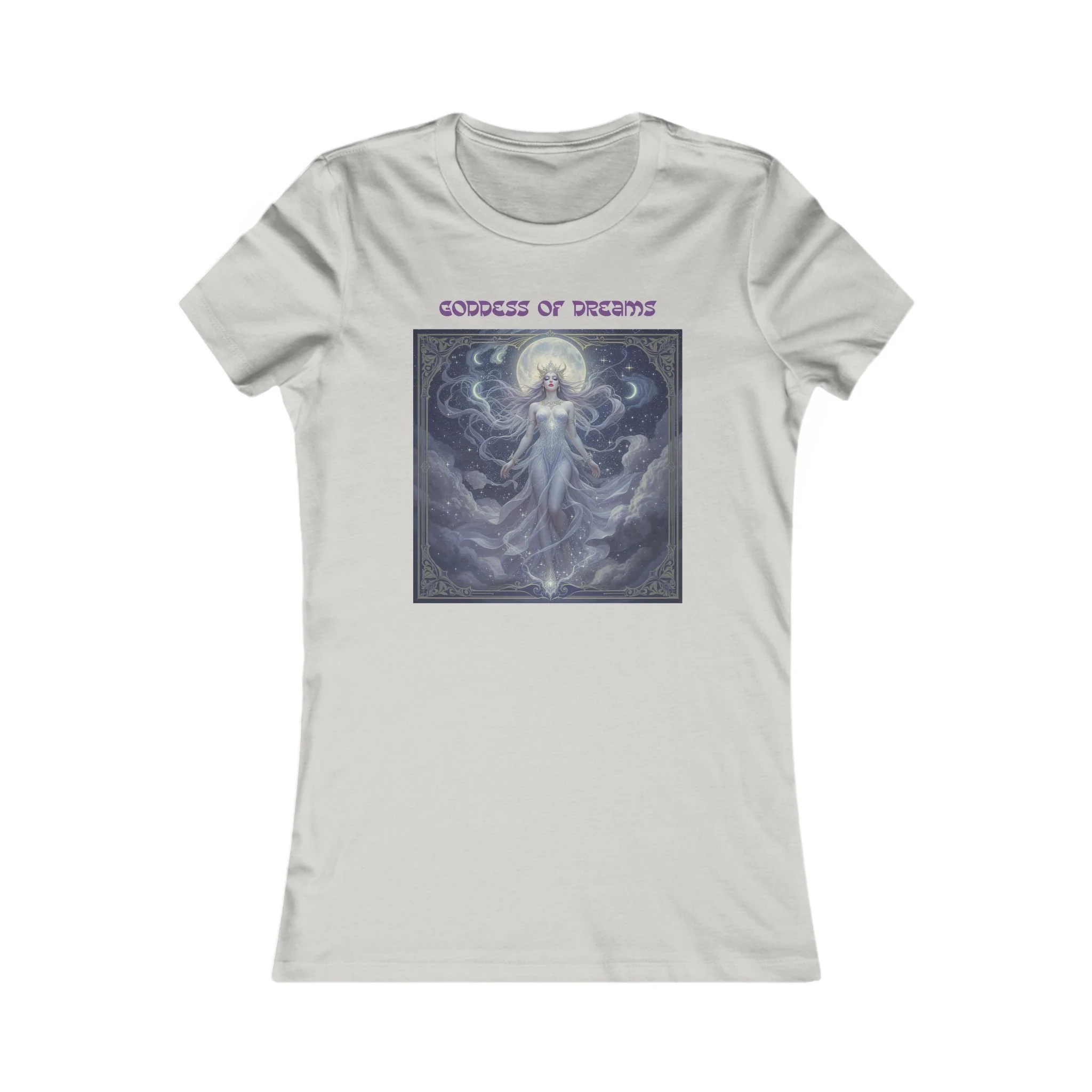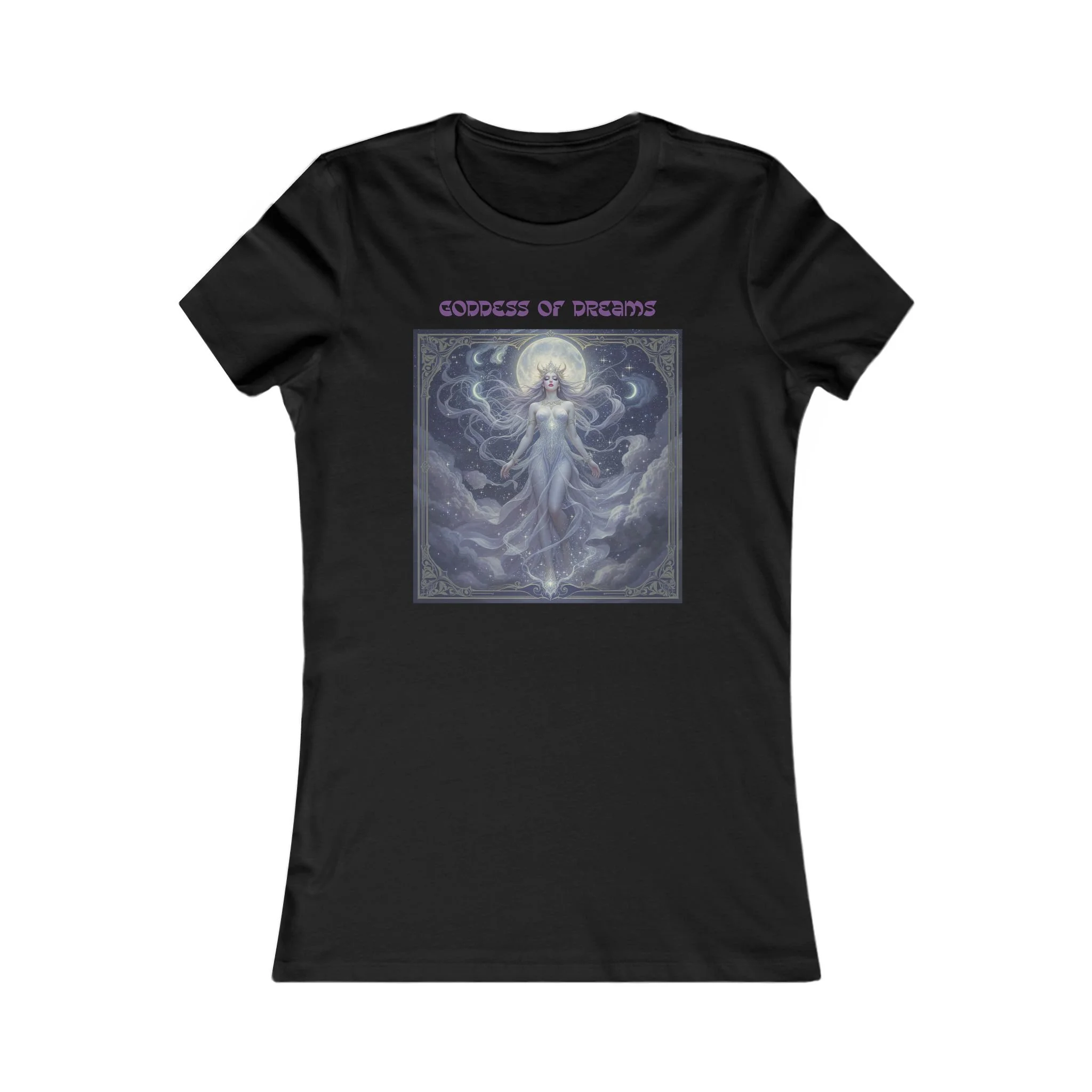 Soft, light, and subtly mystical — this slim-fit tee carries an artful illustration of a moonlit figure titled “Goddess of Dreams.” The image sits centered on the chest, surrounded by a halo of stars and swirling night-sky textures that invite quiet reflection. Wear it as a layered staple for late-night walks, low-key gatherings, or slow mornings with tea. The breathable, finely combed cotton drapes close to the body without feeling heavy, letting the artwork remain the focus while offering gentle support and movement.